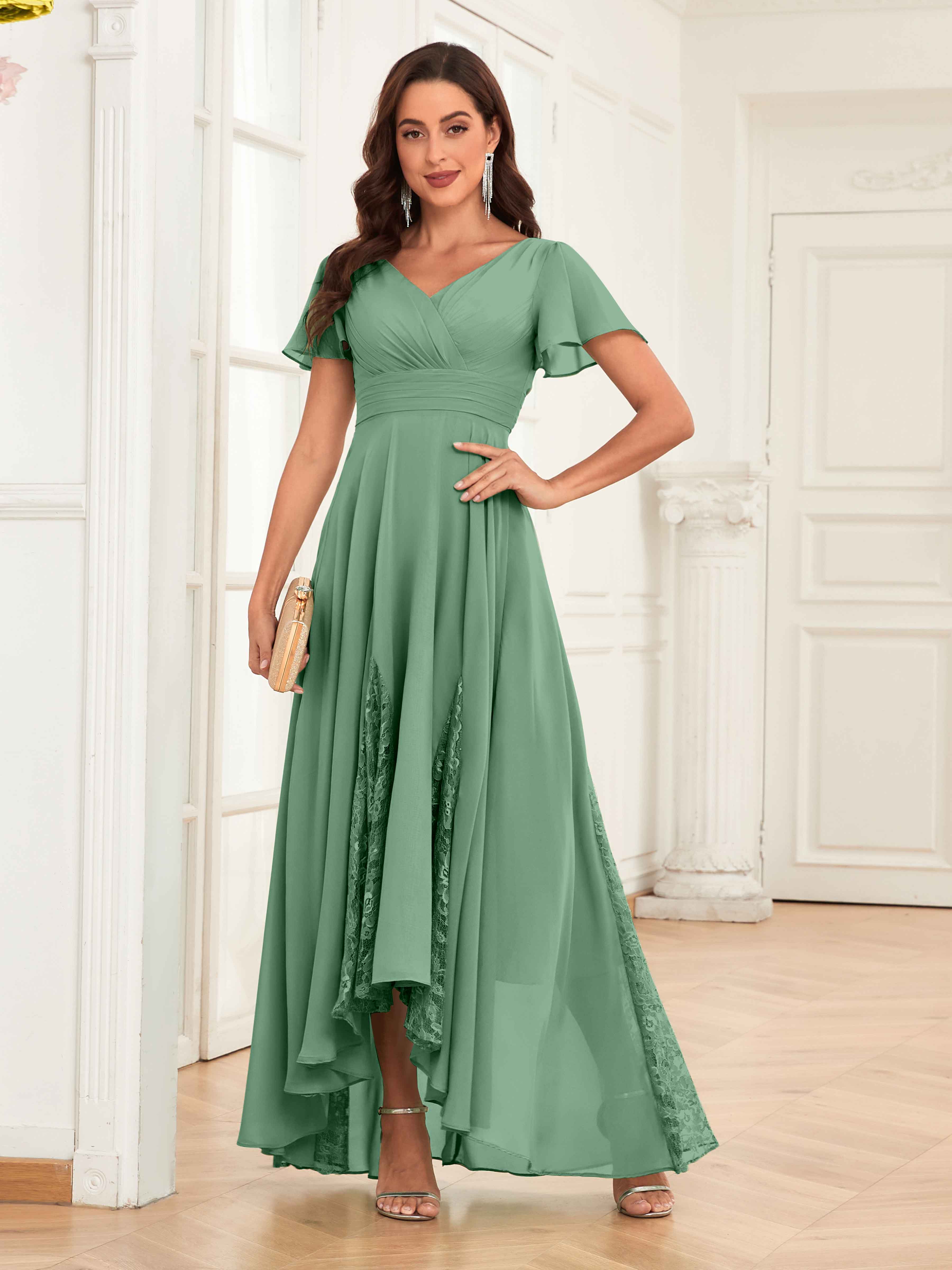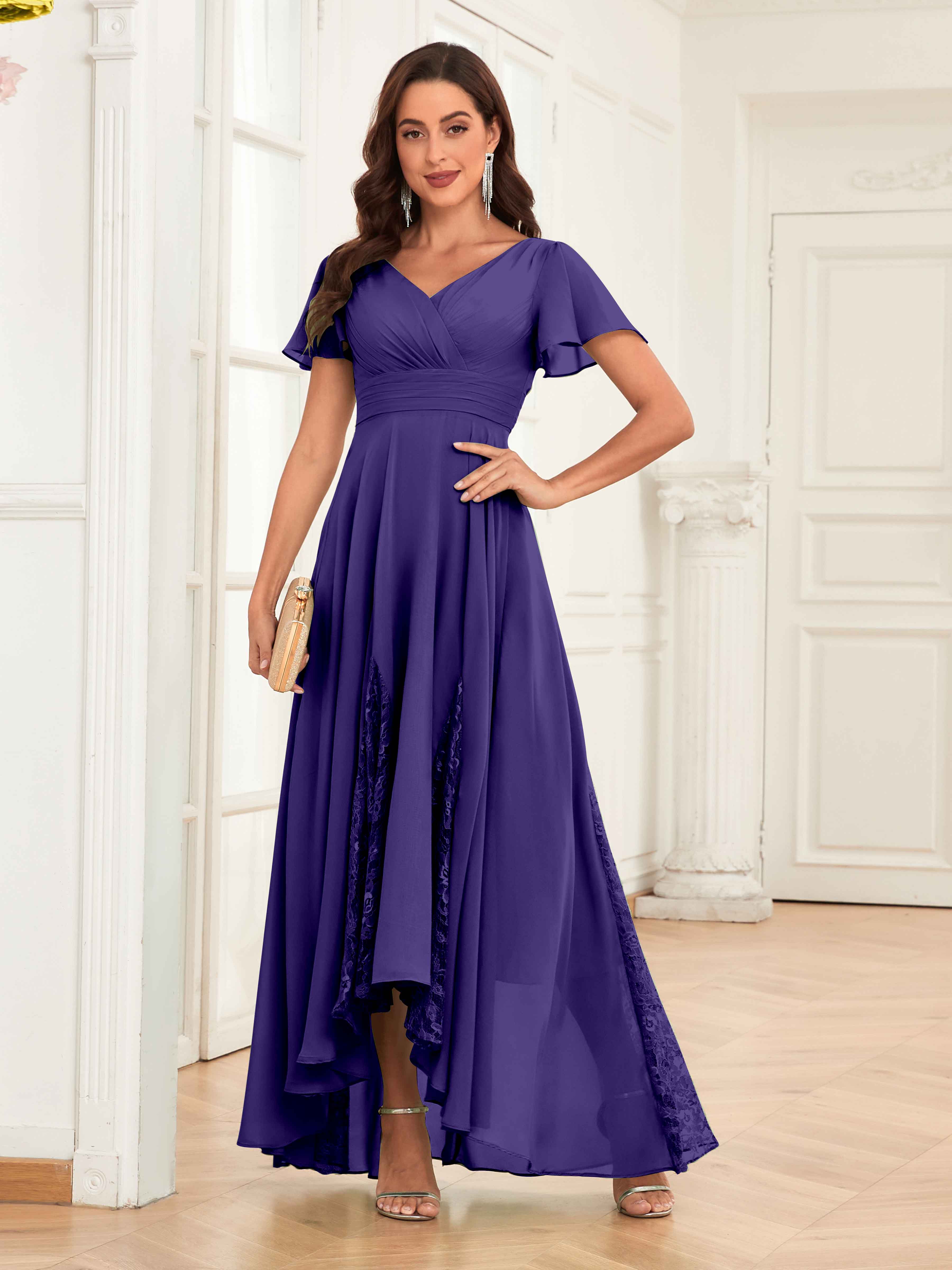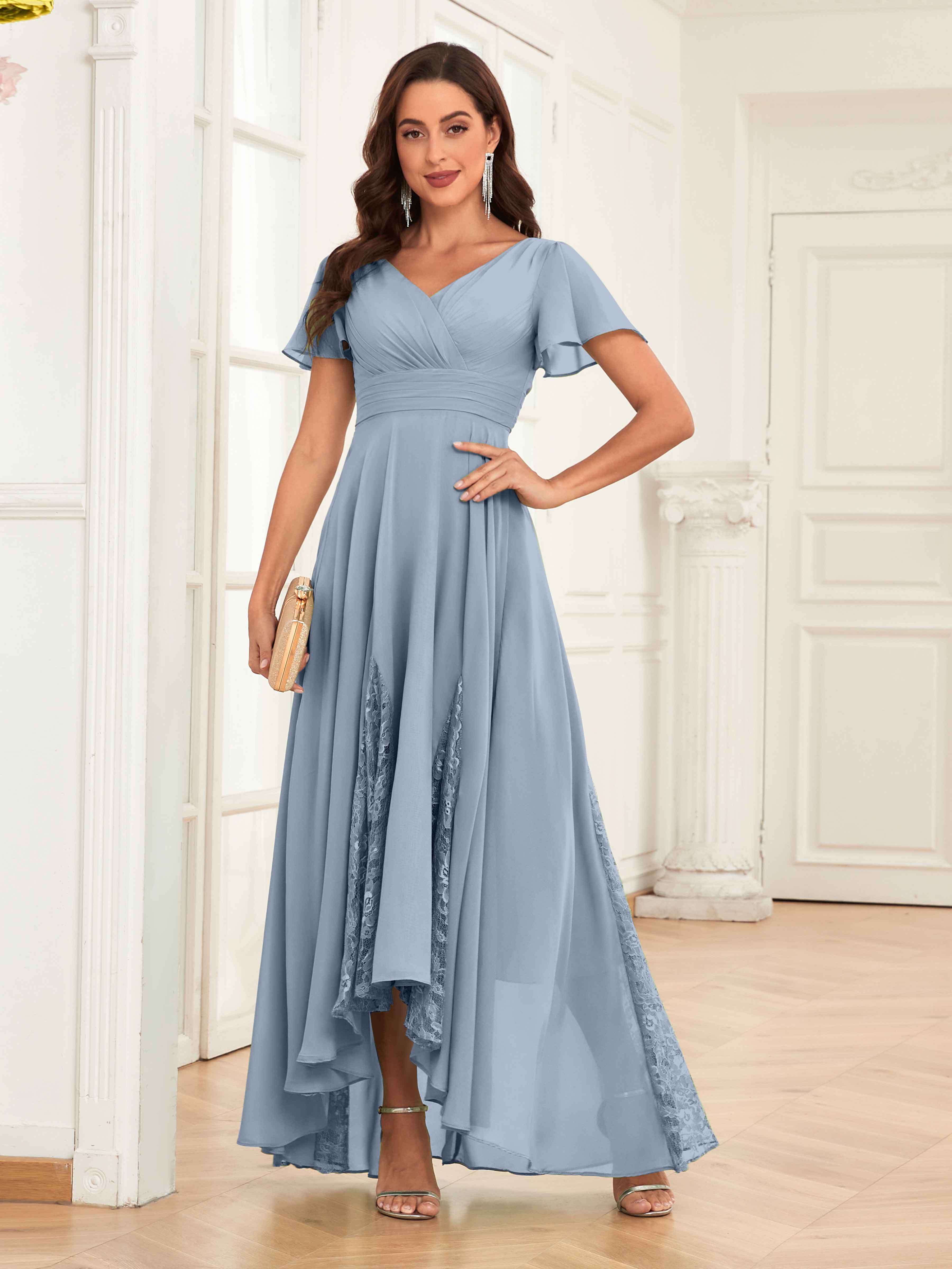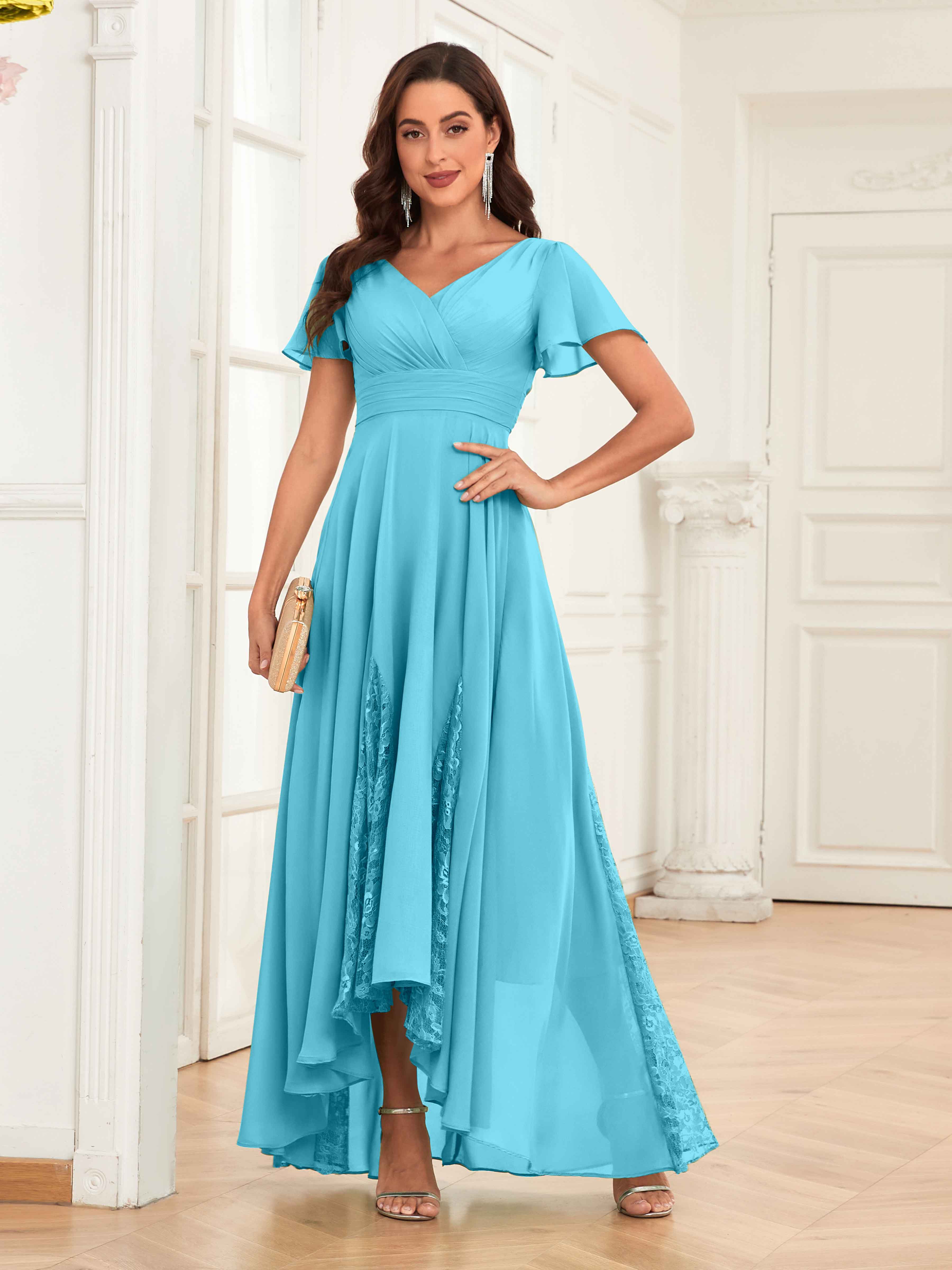 Charlee Graceful Ruched Lace Hem Mother Of The Bride Dresses with Cap Sleeves