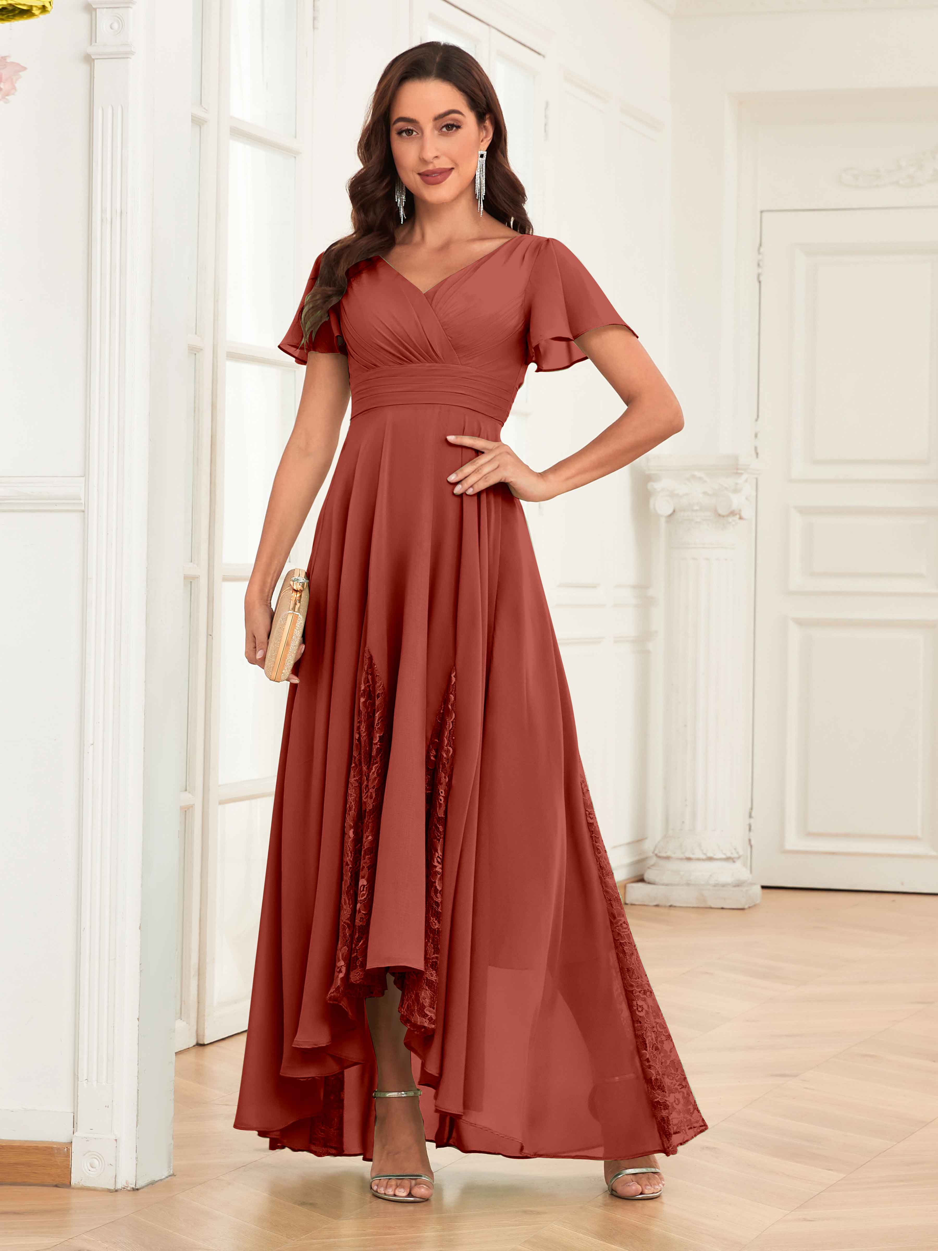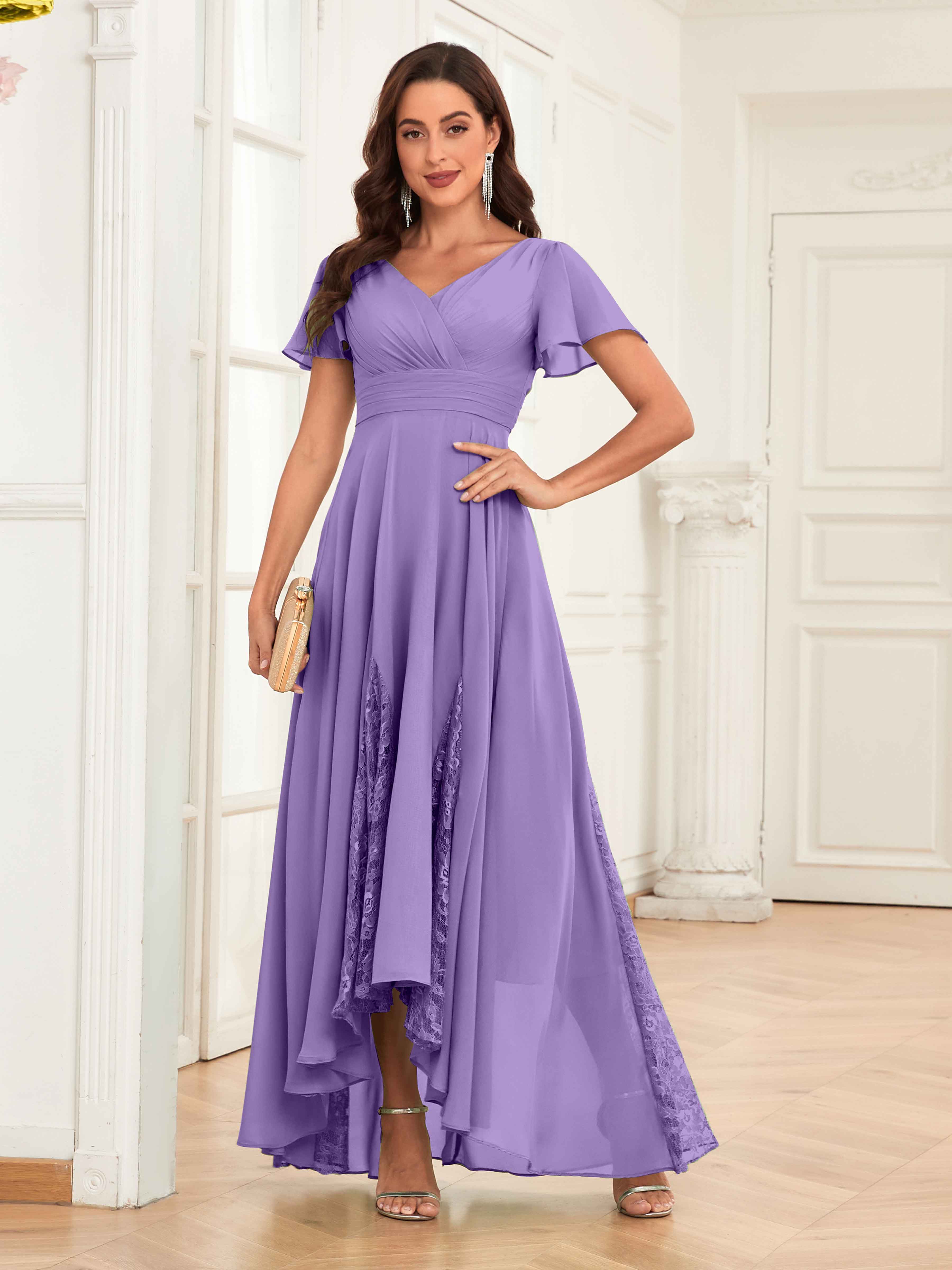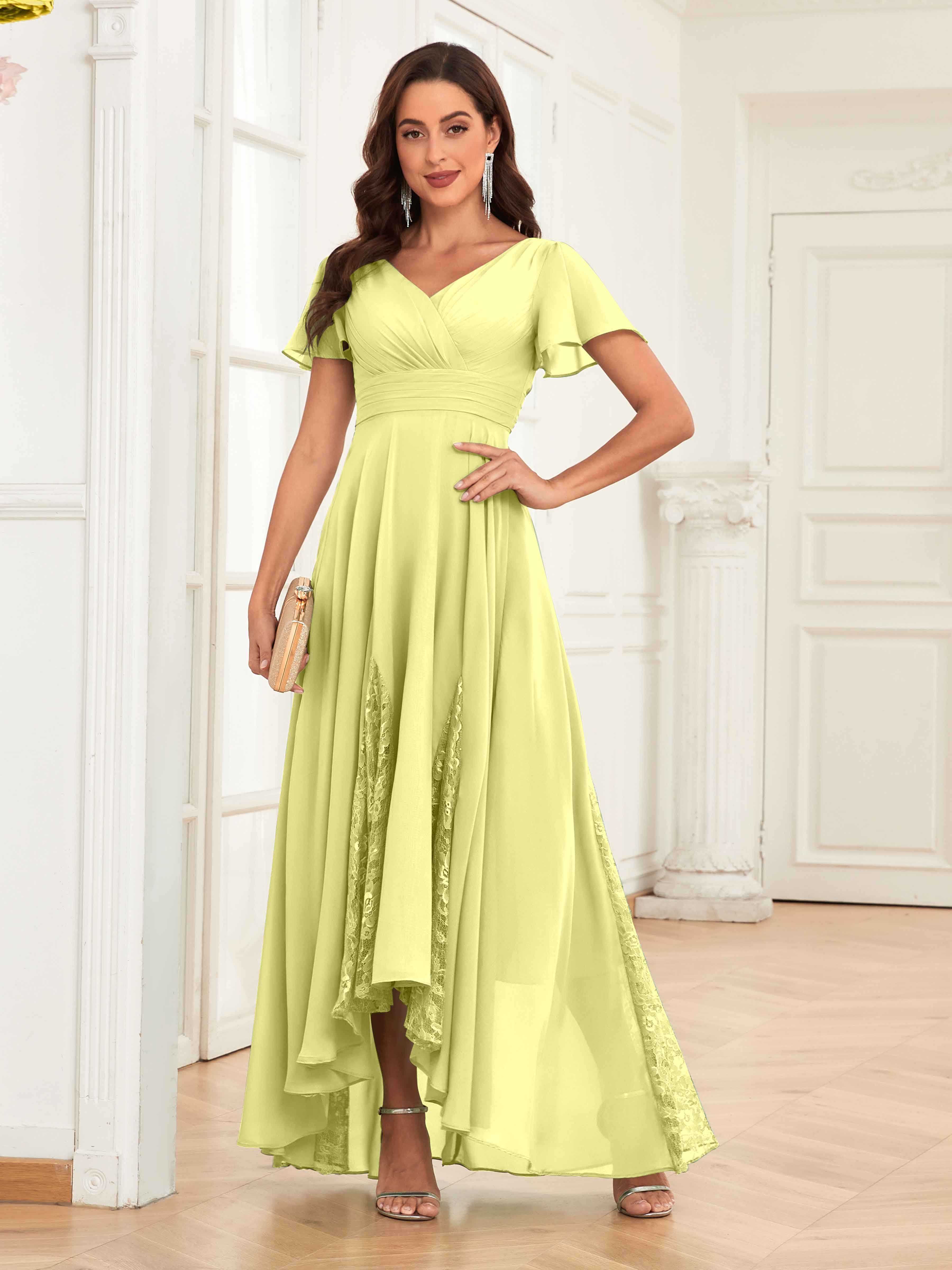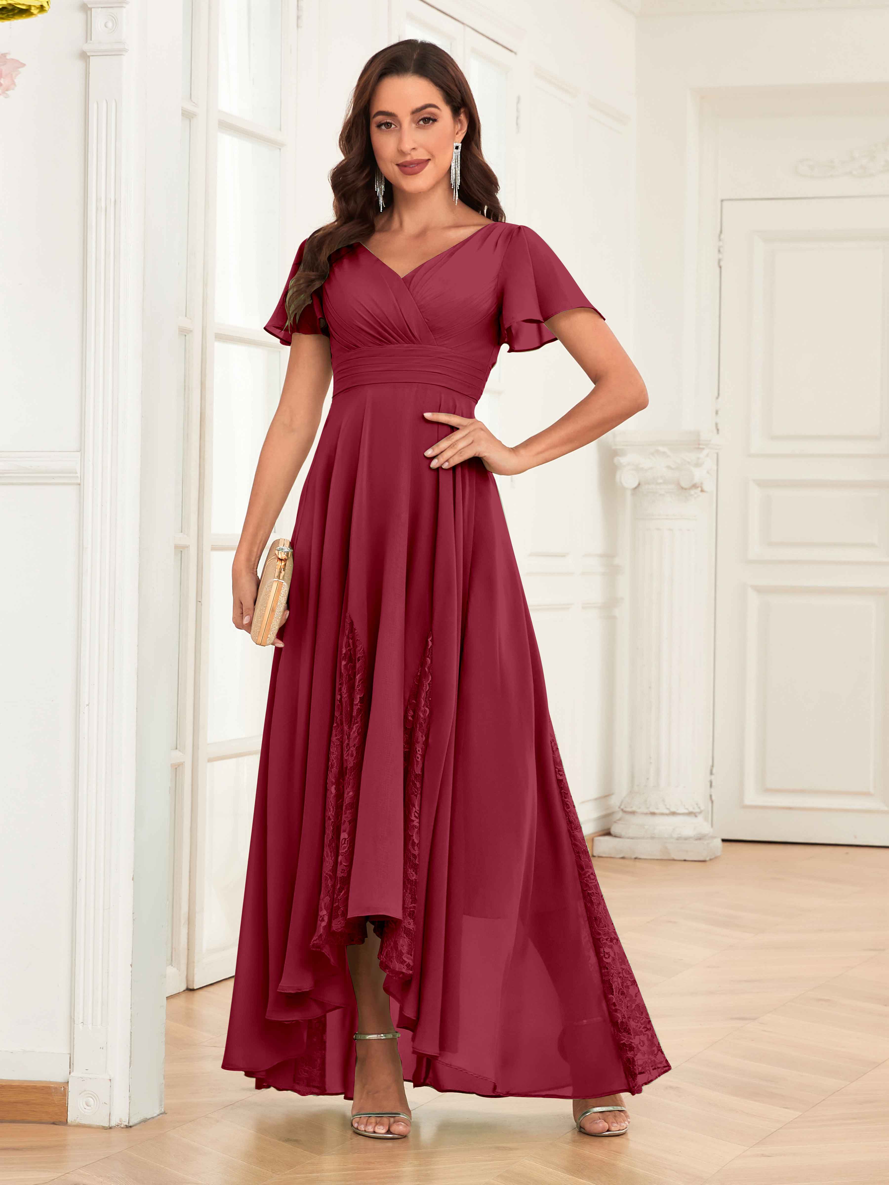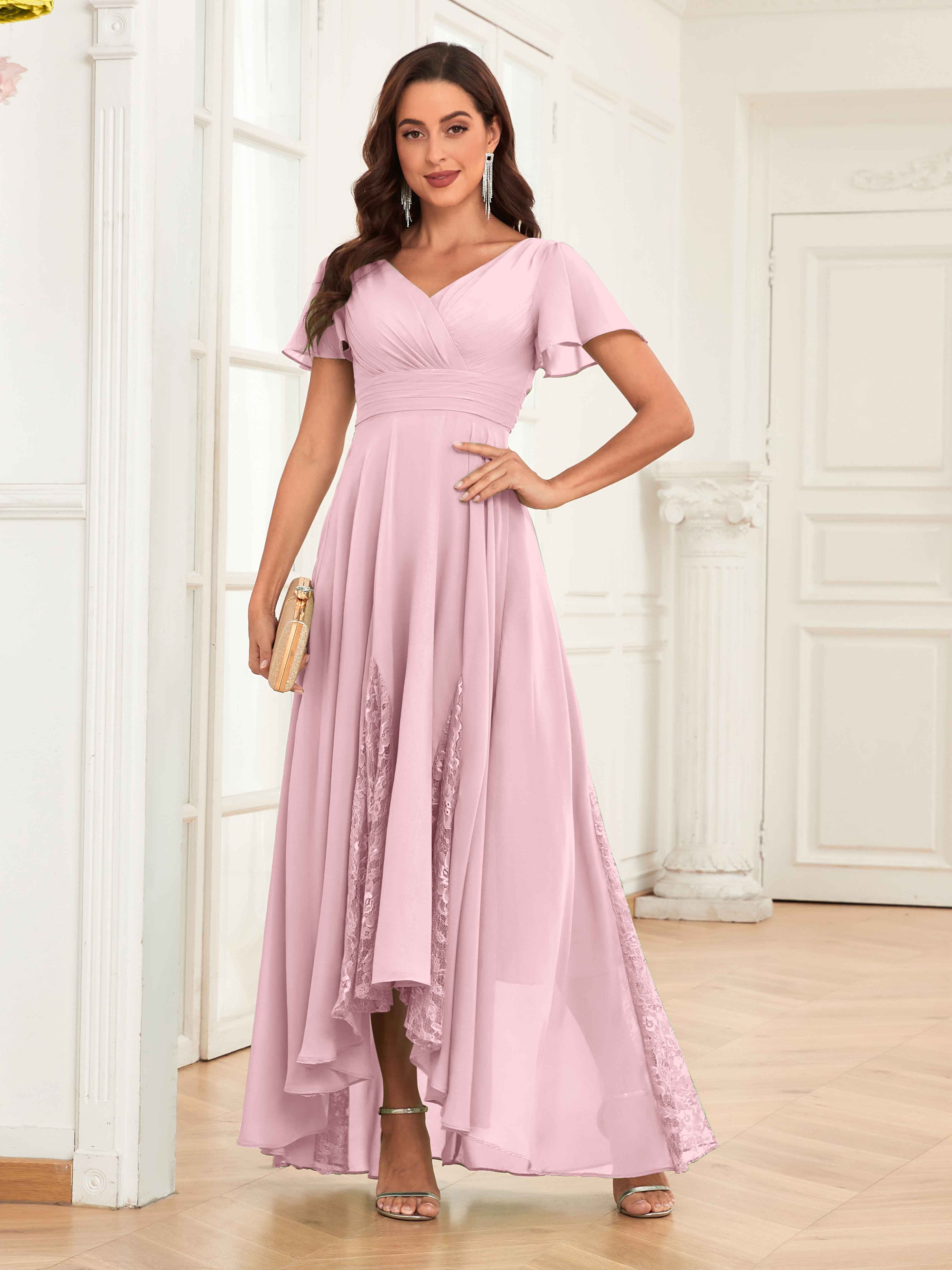 Charlee Graceful Ruched Lace Hem Mother Of The Bride Dresses with Cap Sleeves