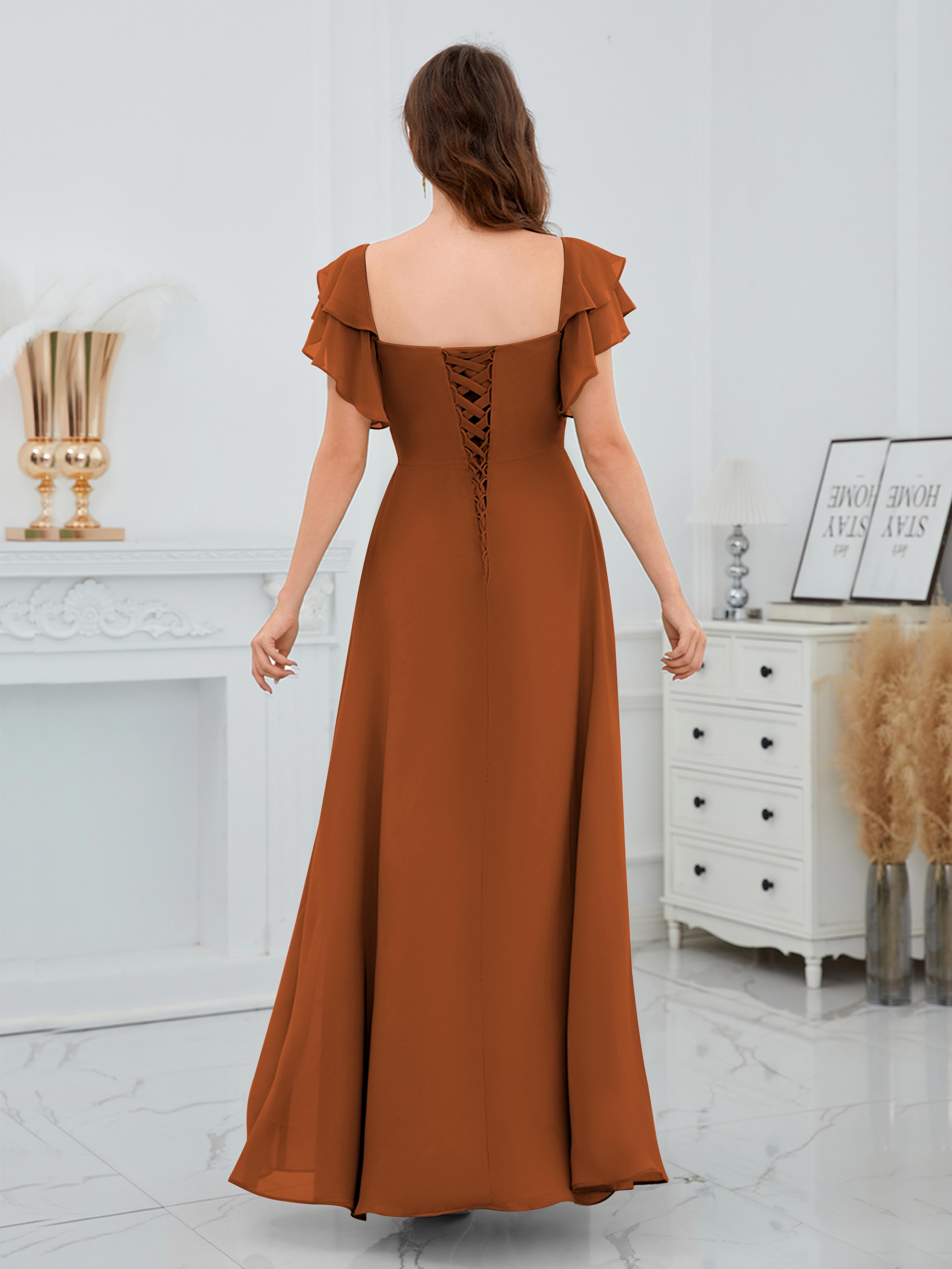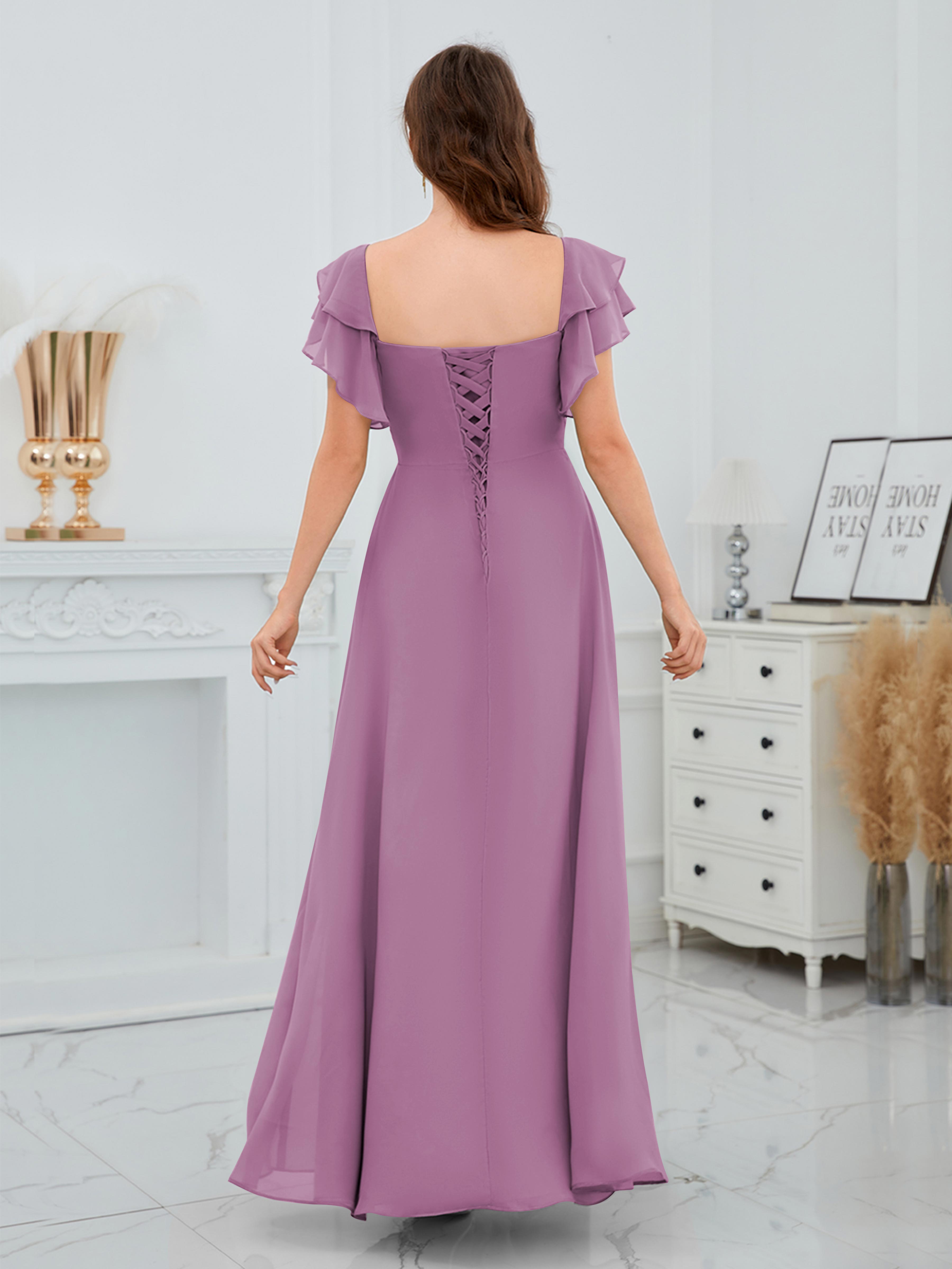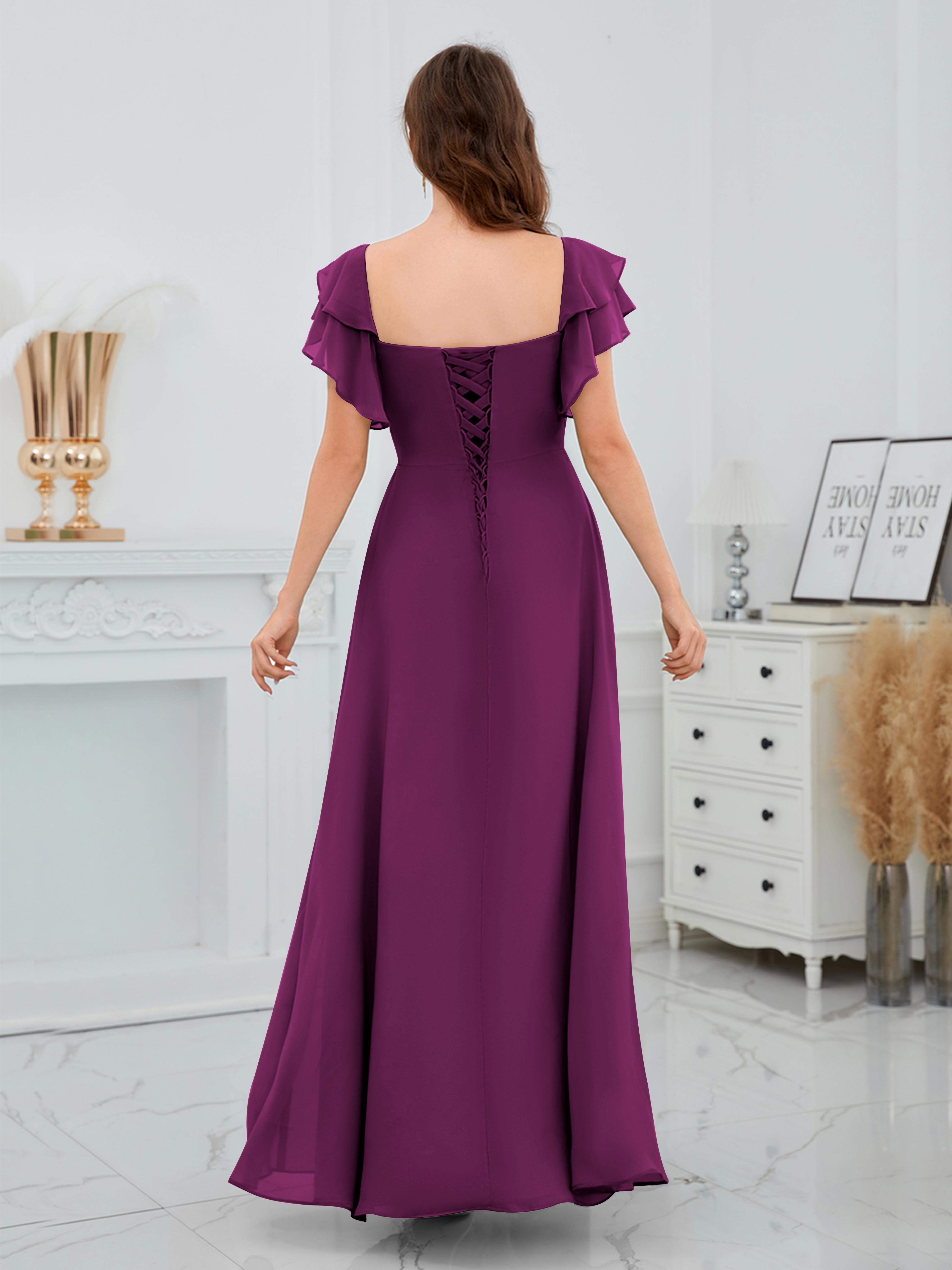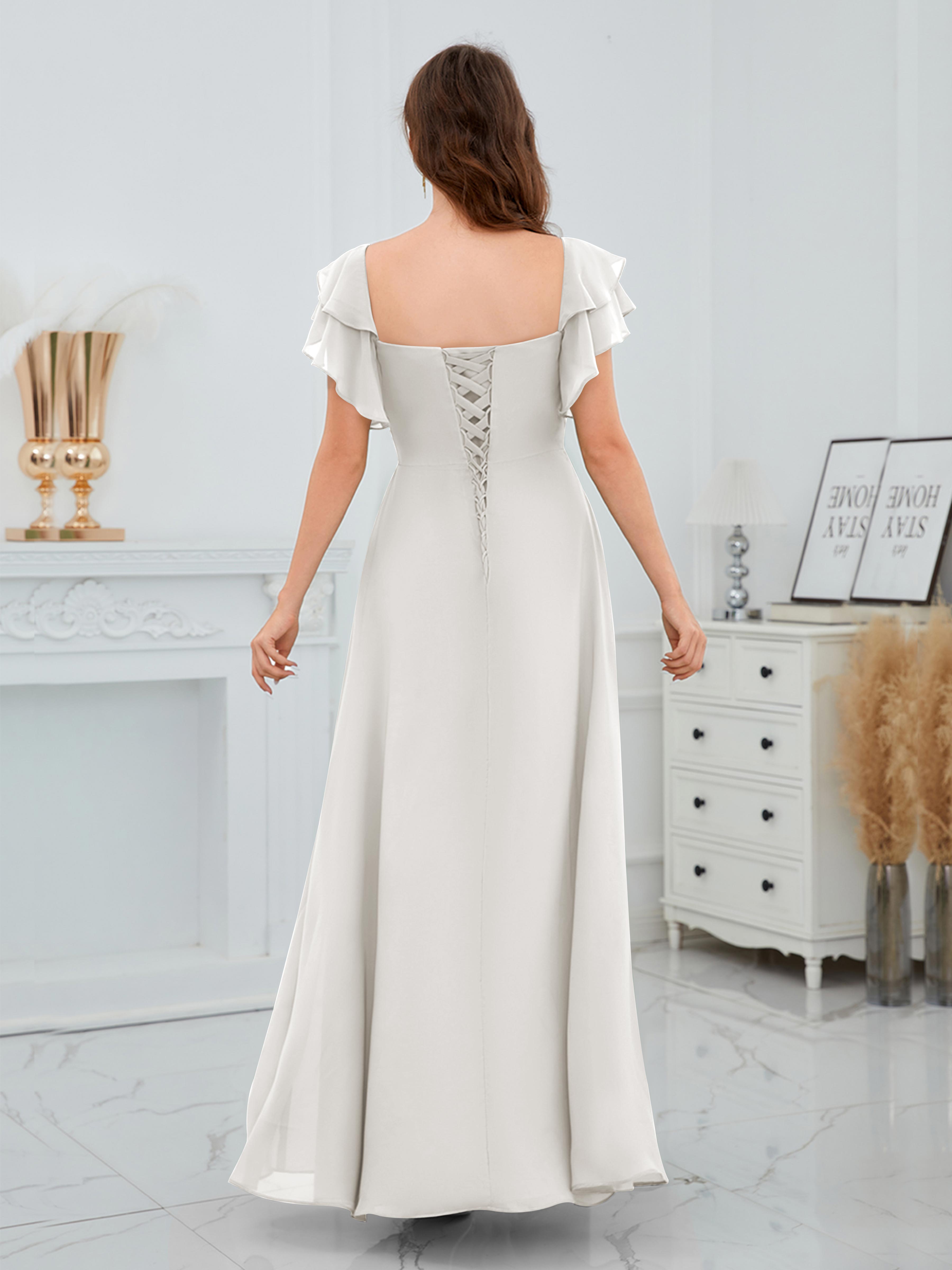 Charleigh Trendy A-Line Square Short Sleeves Long Chiffon Bridesmaid Dresses