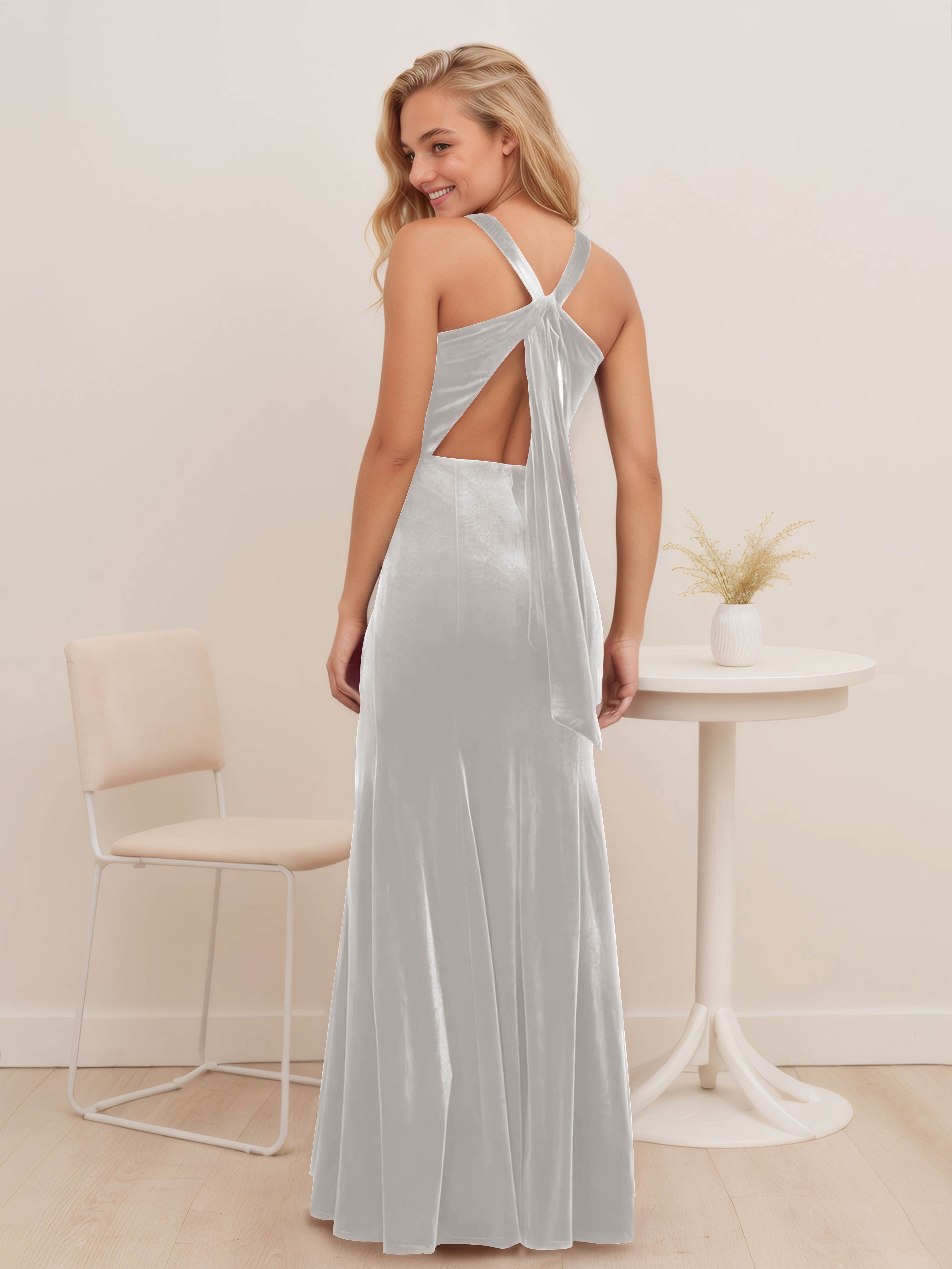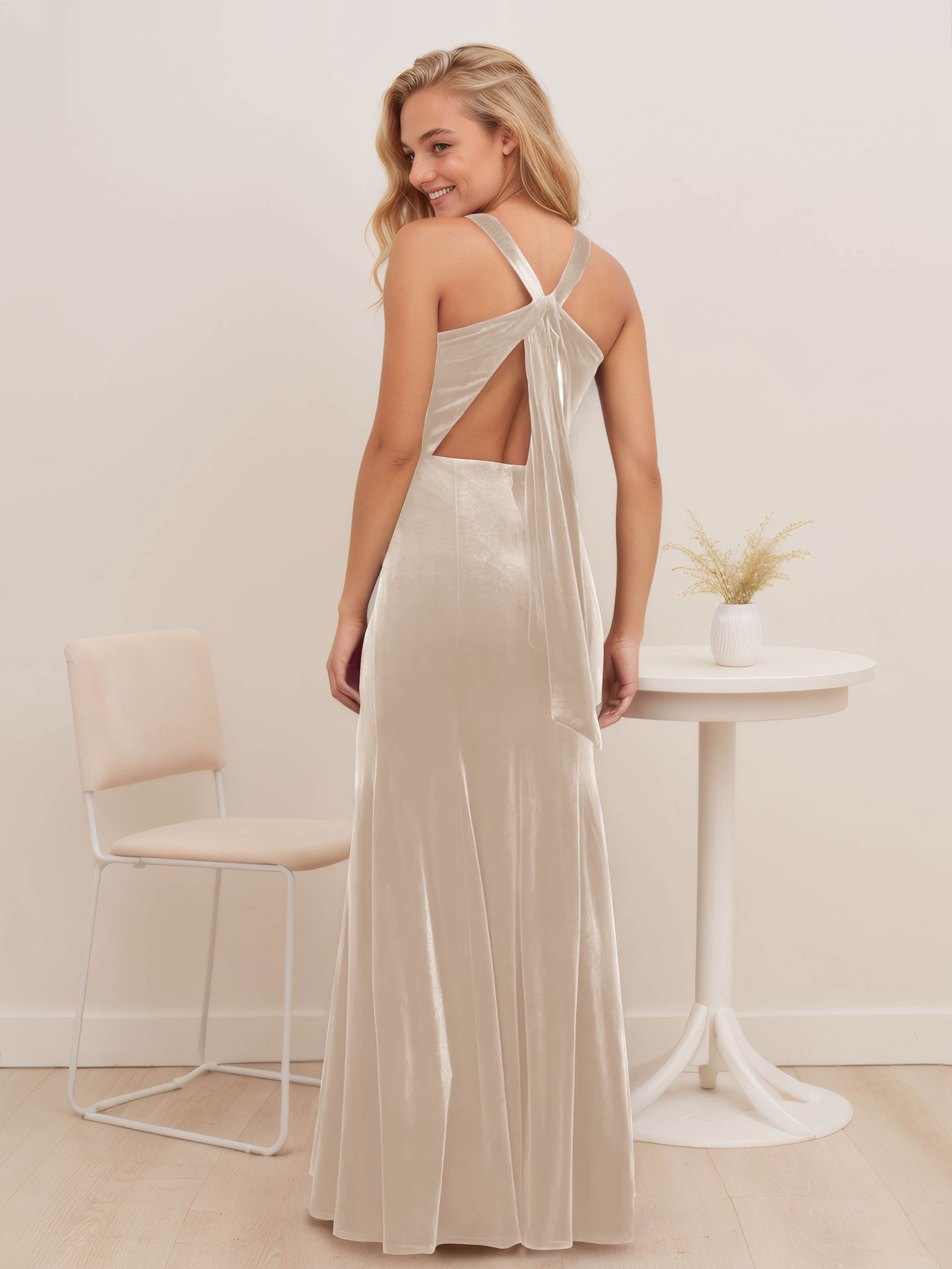 Charley Enchanting Halter Slit Long Velvet Formal Dresses