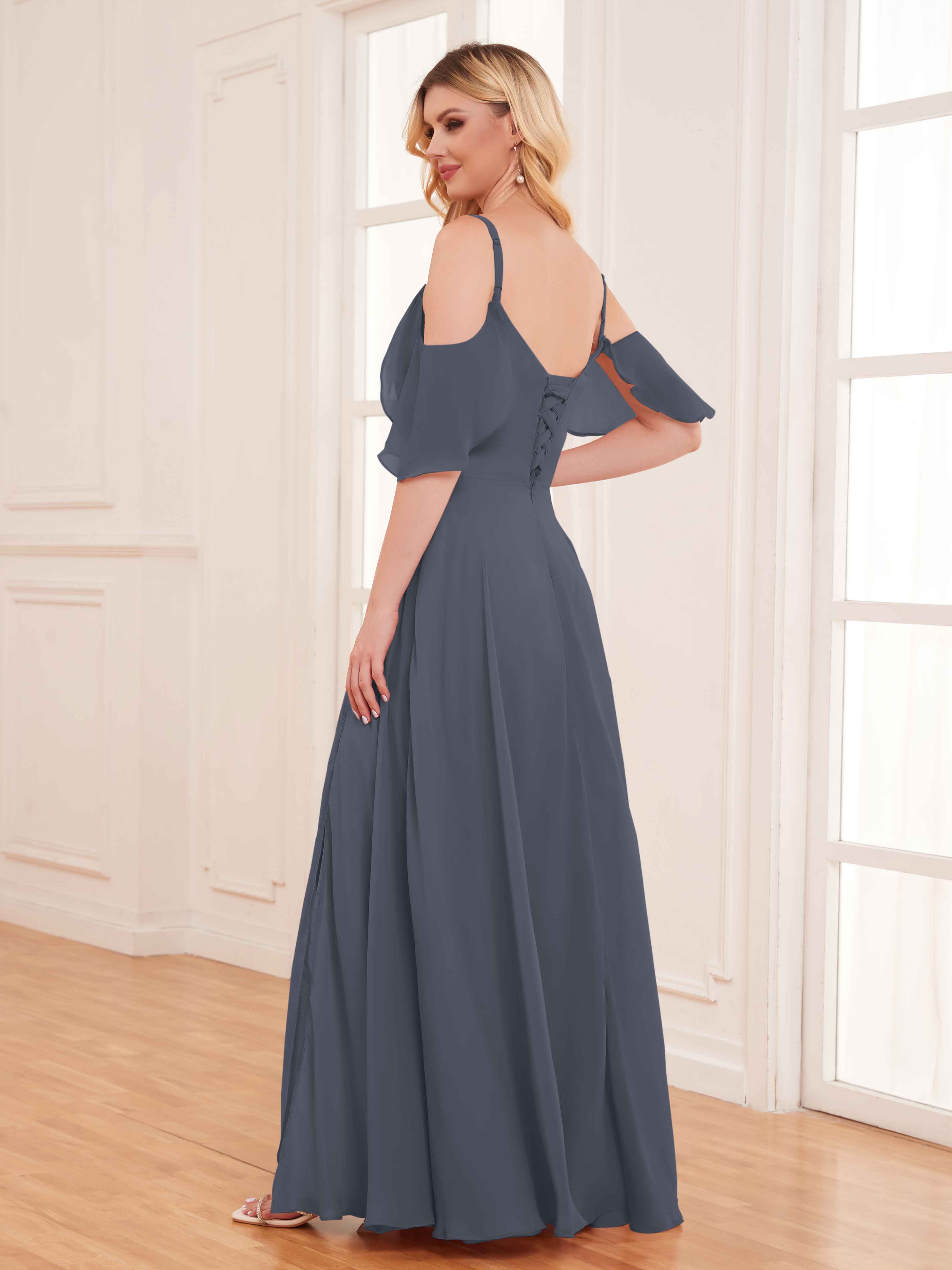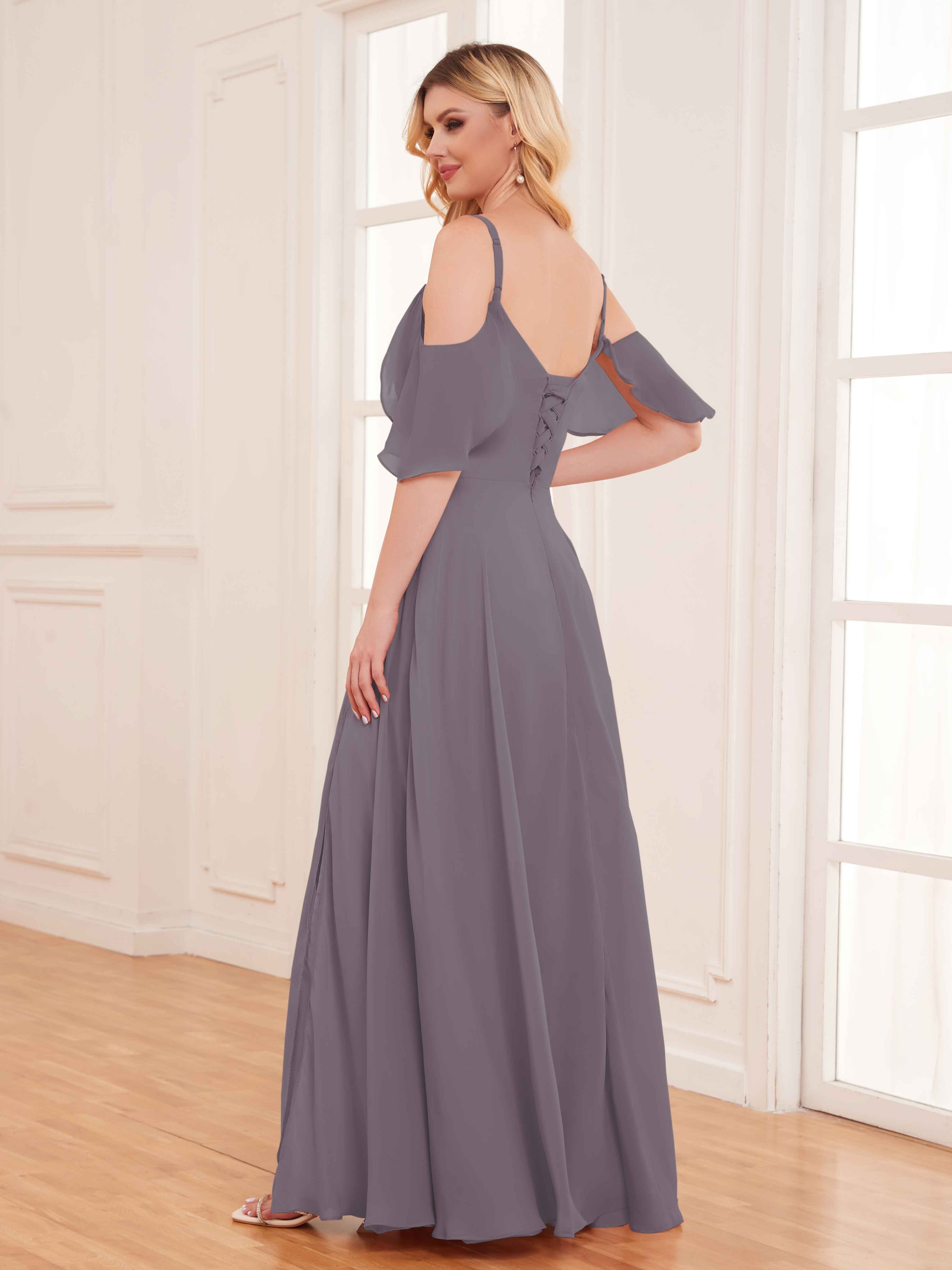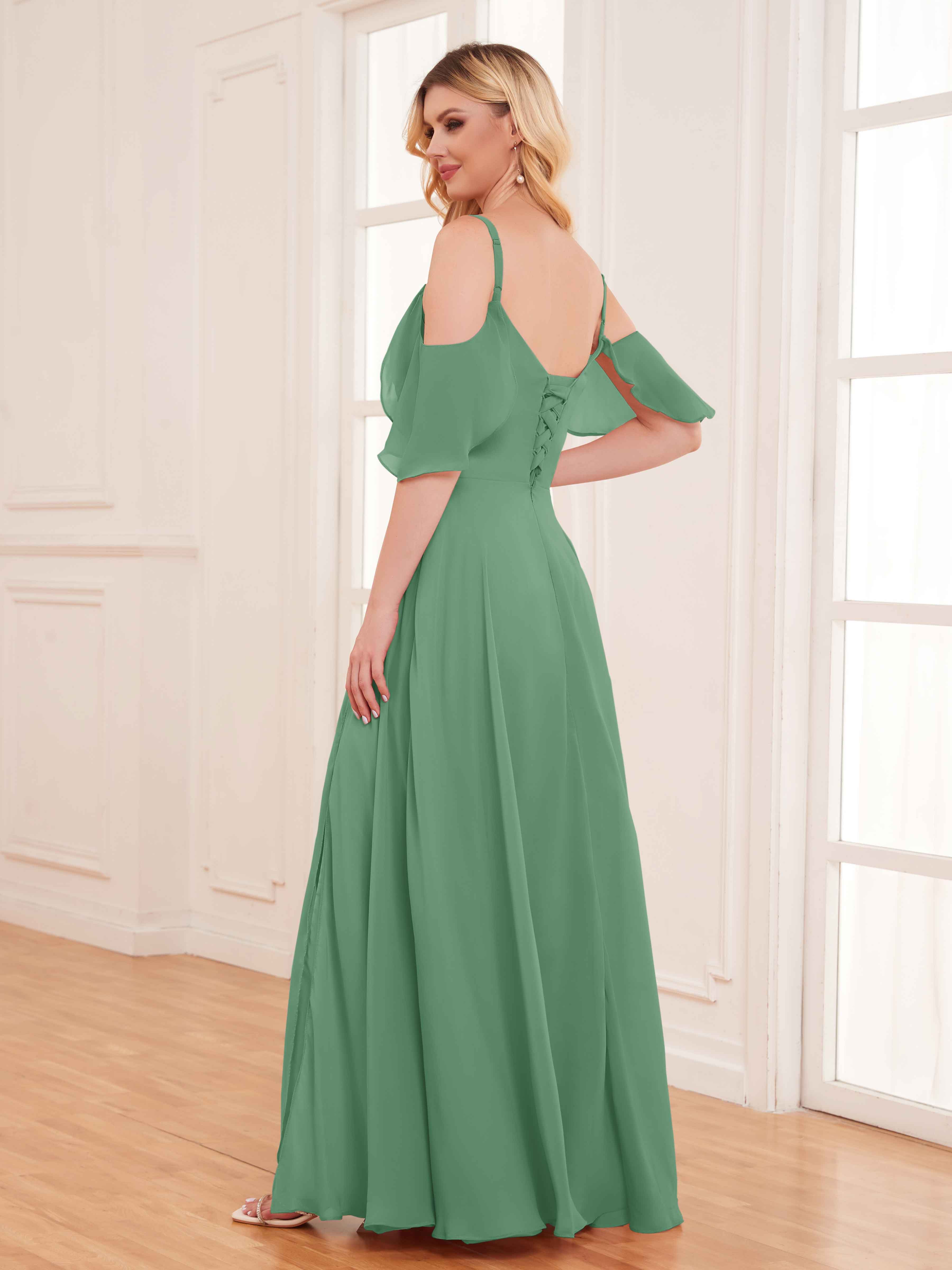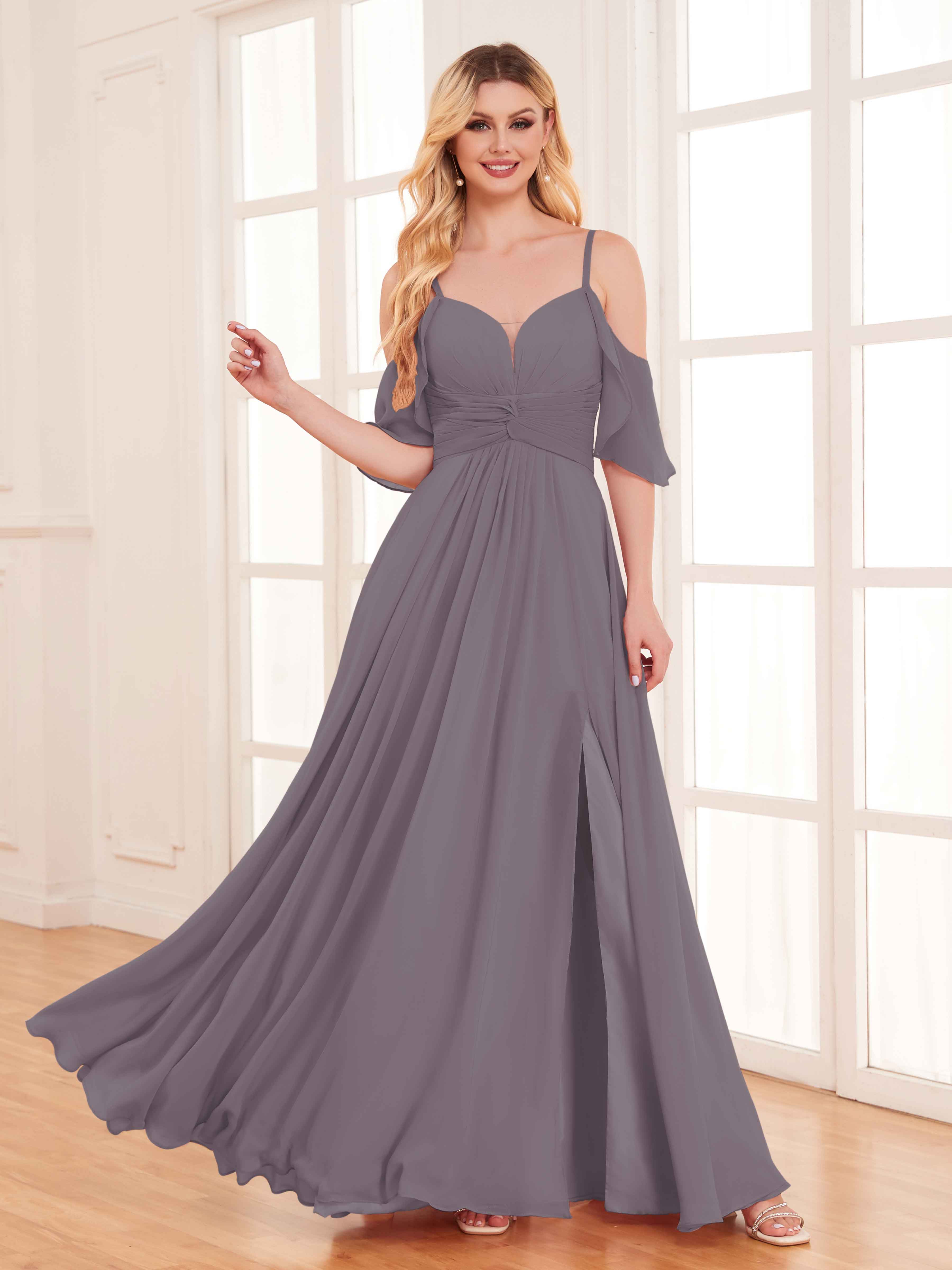 Charlie Unique V Neck Draped Sleeves Chiffon Bridesmaid Dresses