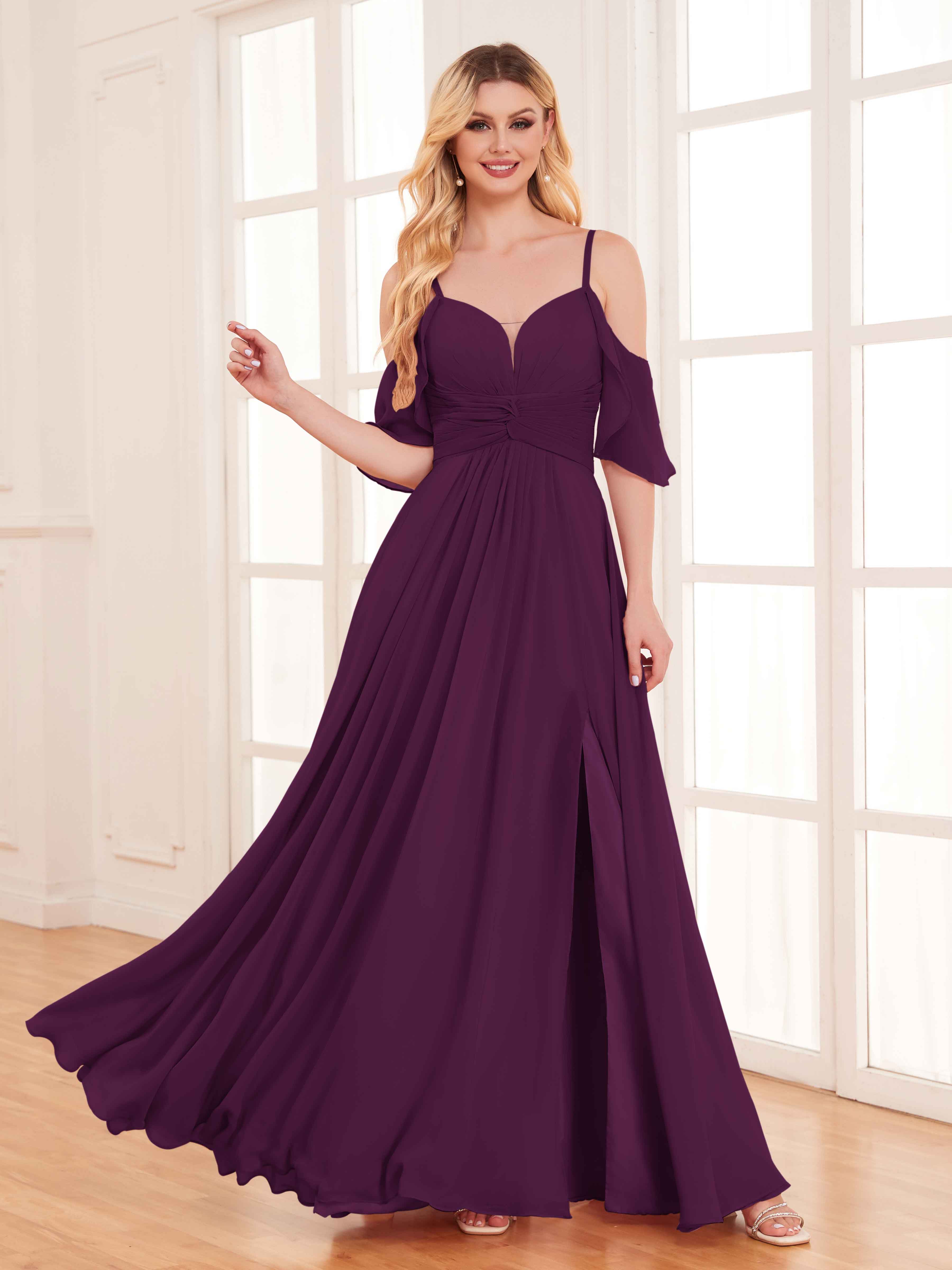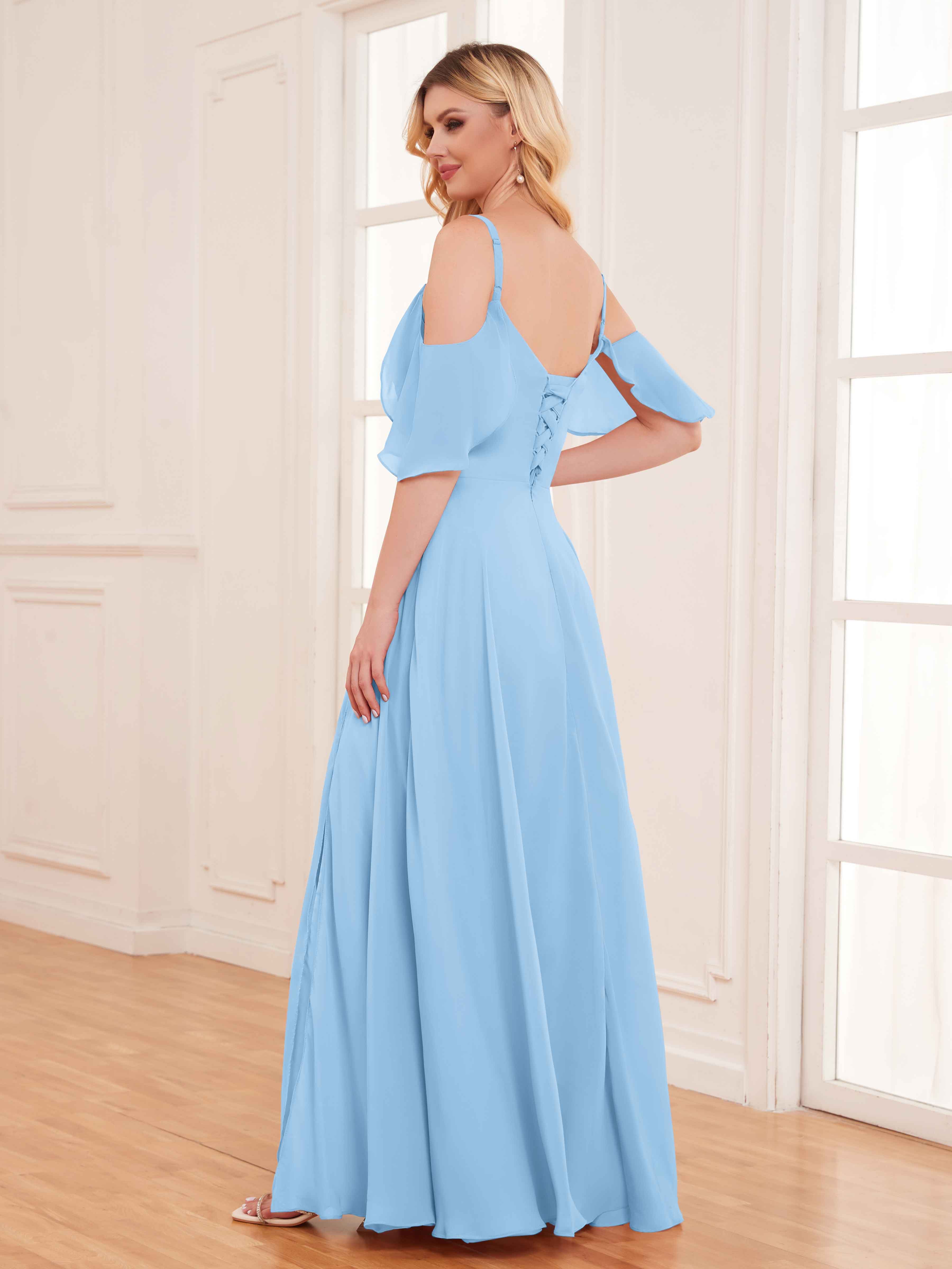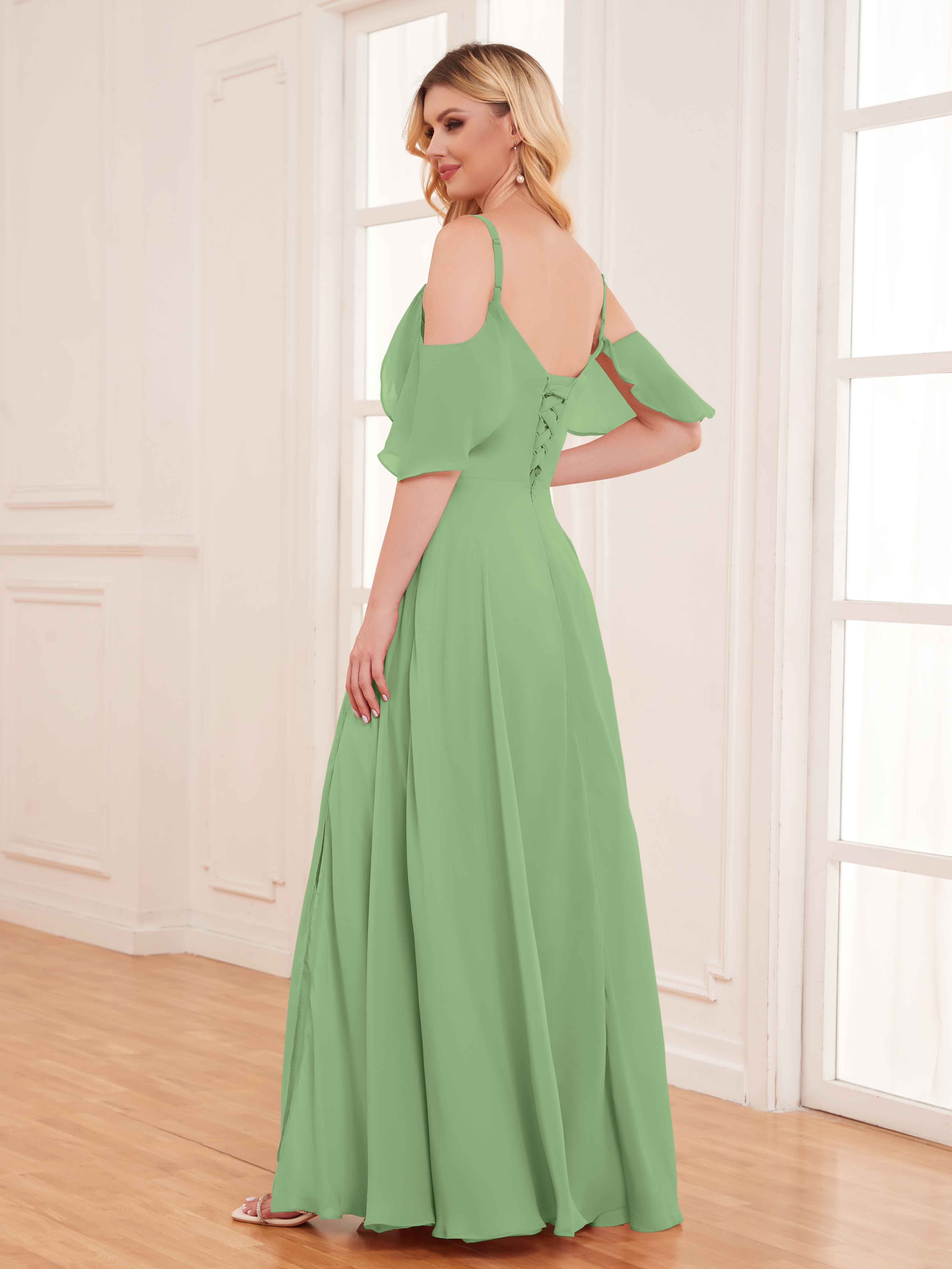 Charlie Unique V Neck Draped Sleeves Chiffon Bridesmaid Dresses