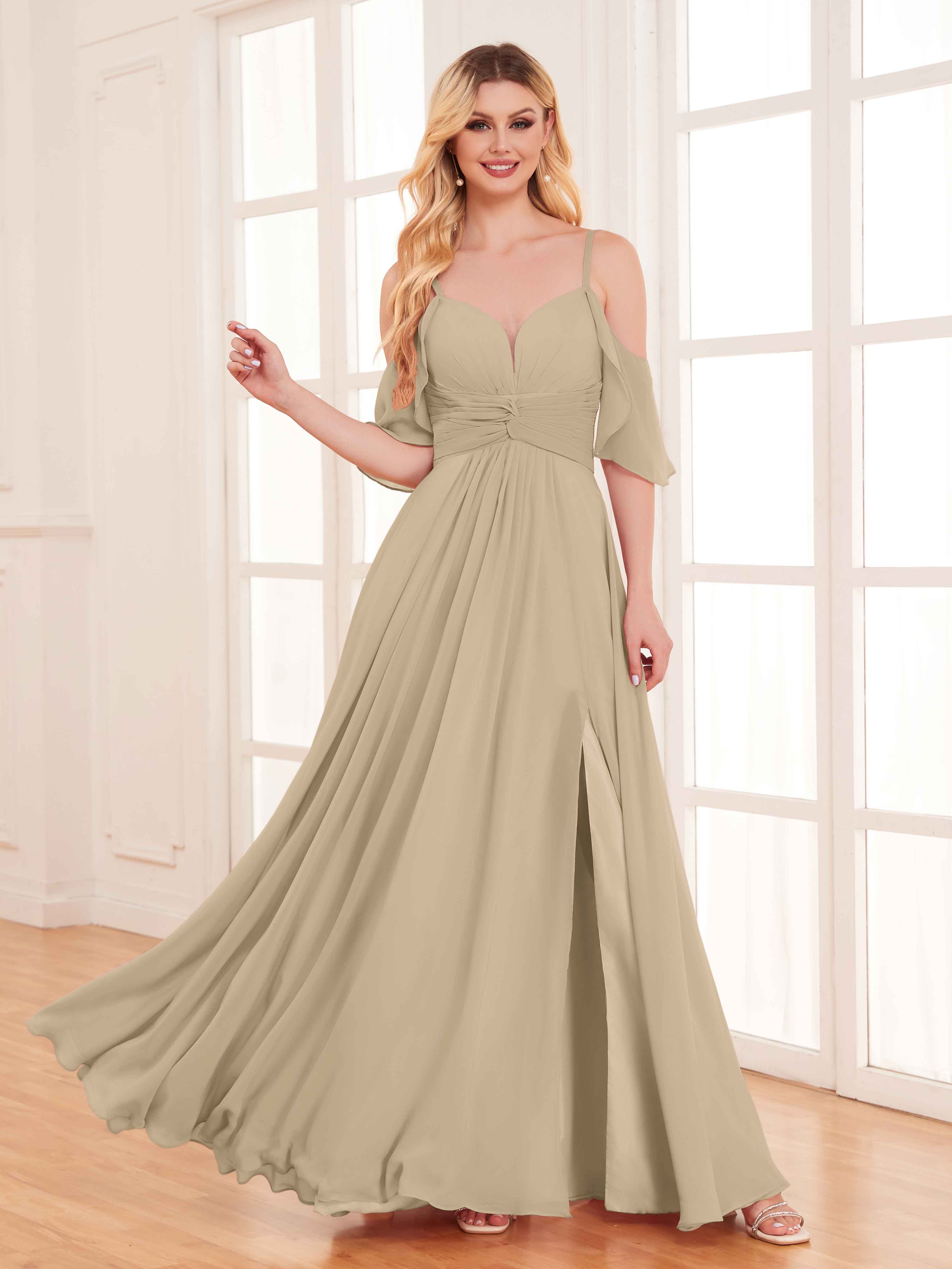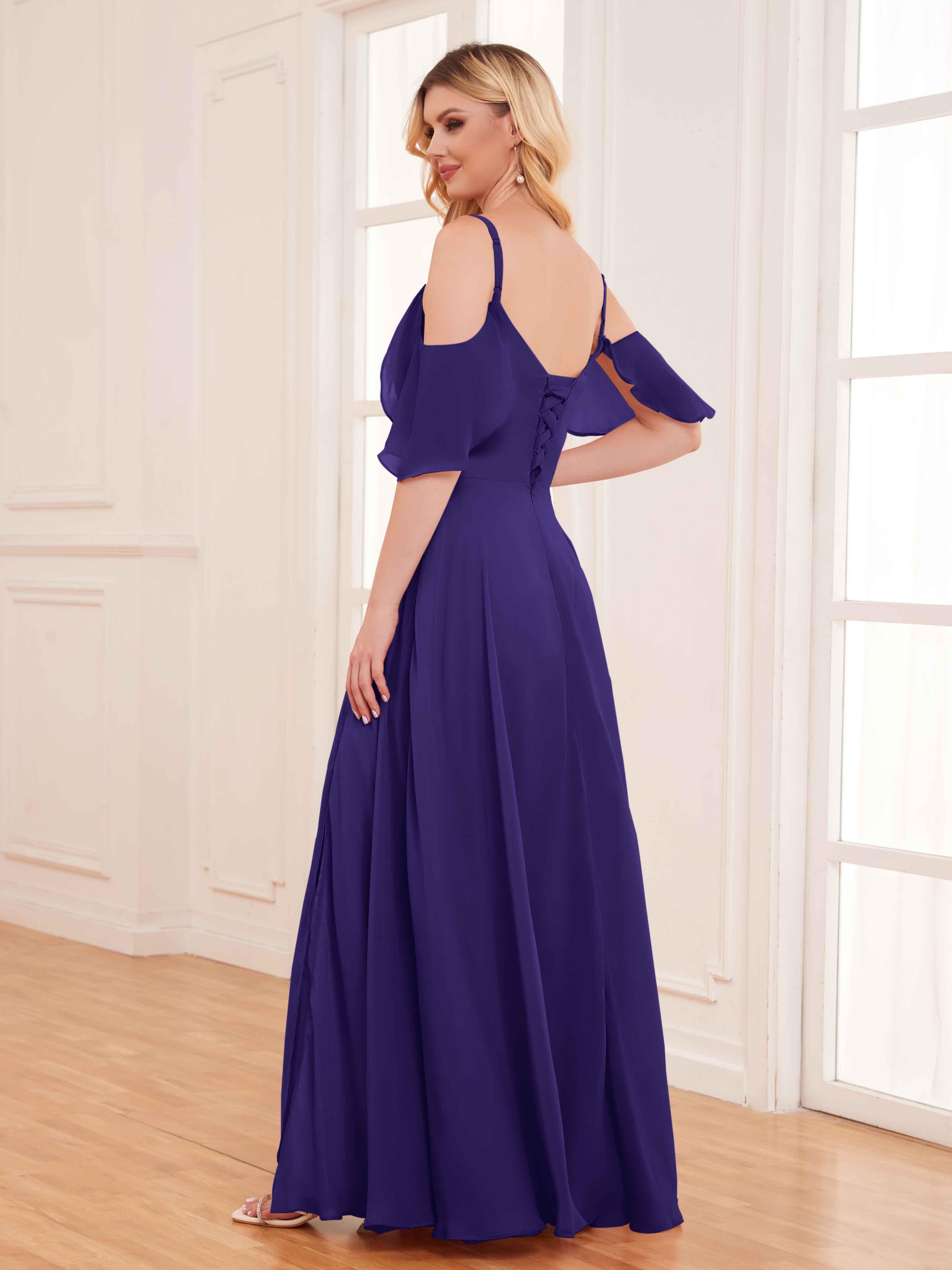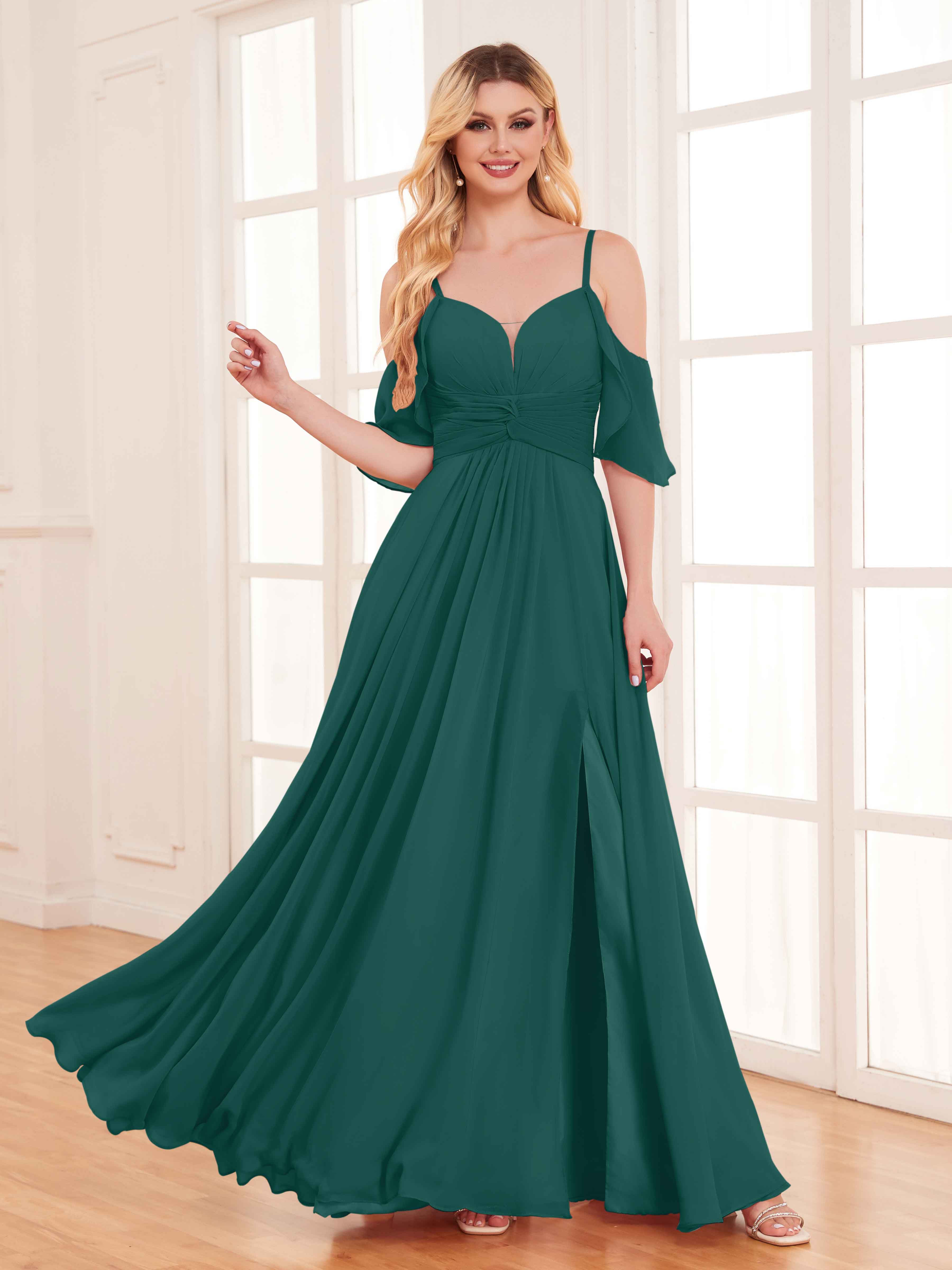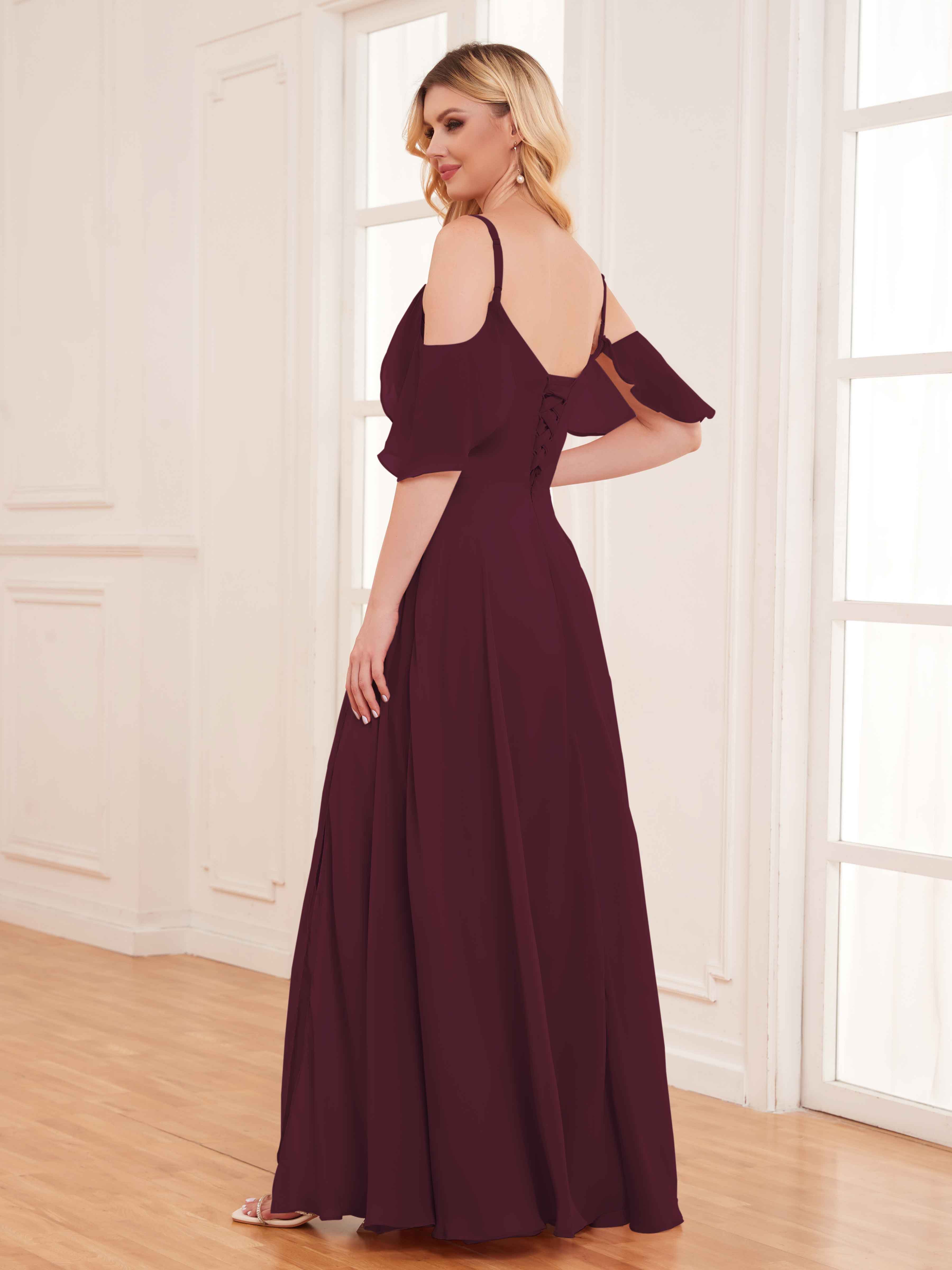 Charlie Unique V Neck Draped Sleeves Chiffon Bridesmaid Dresses