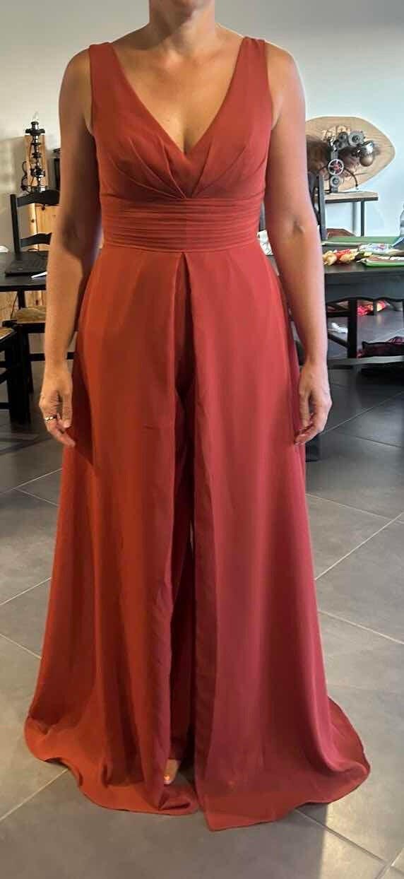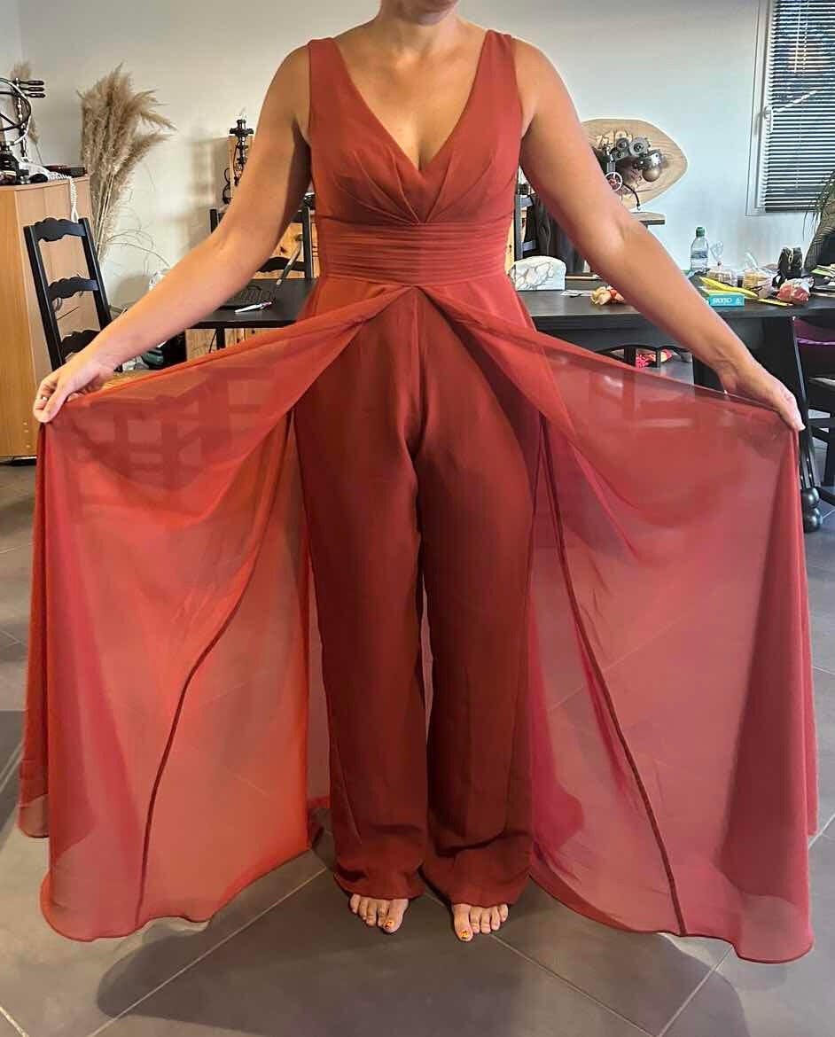 Chic V Neck Ruched Long Chiffon Jumpsuits For Bridesmaids