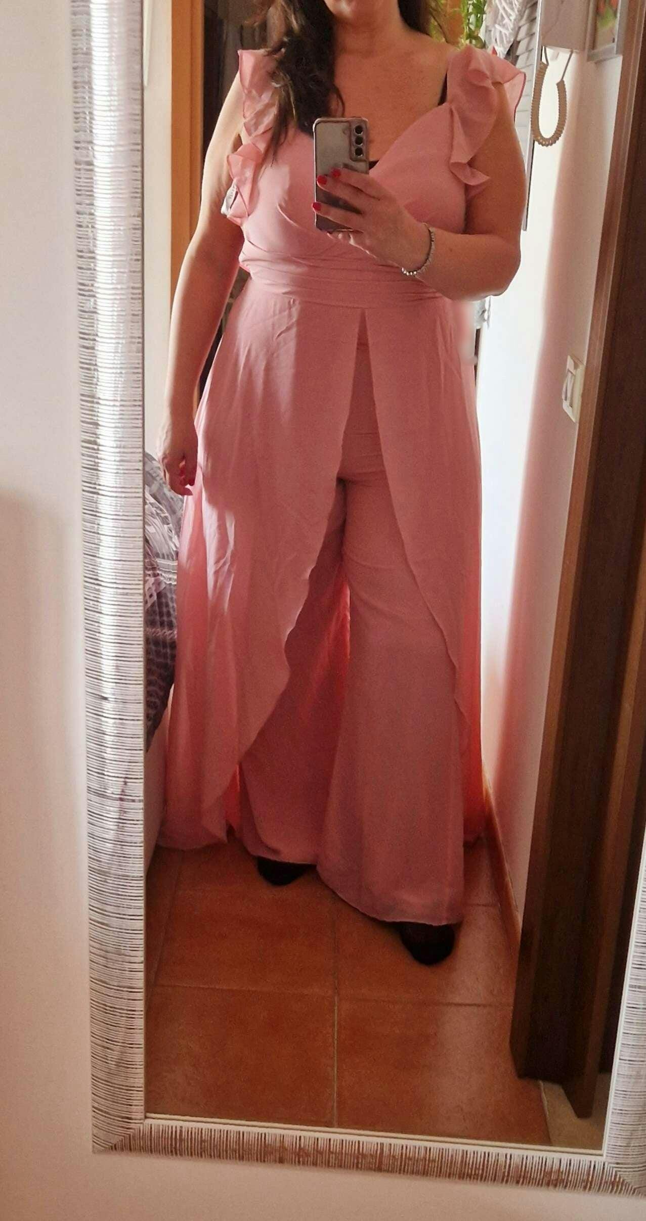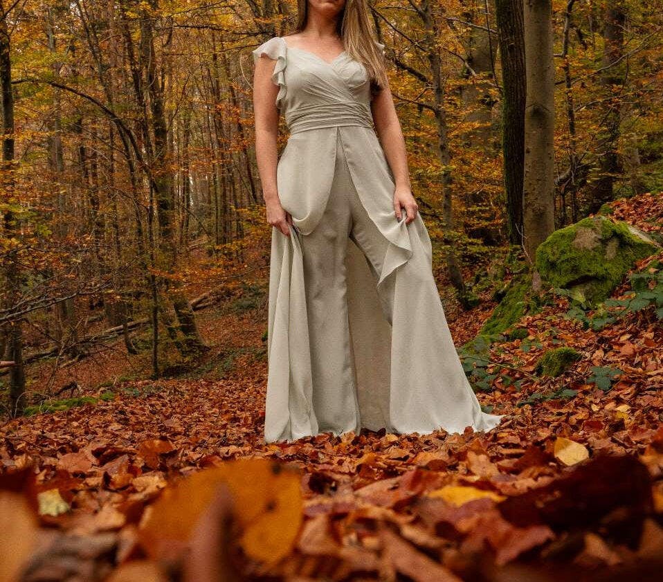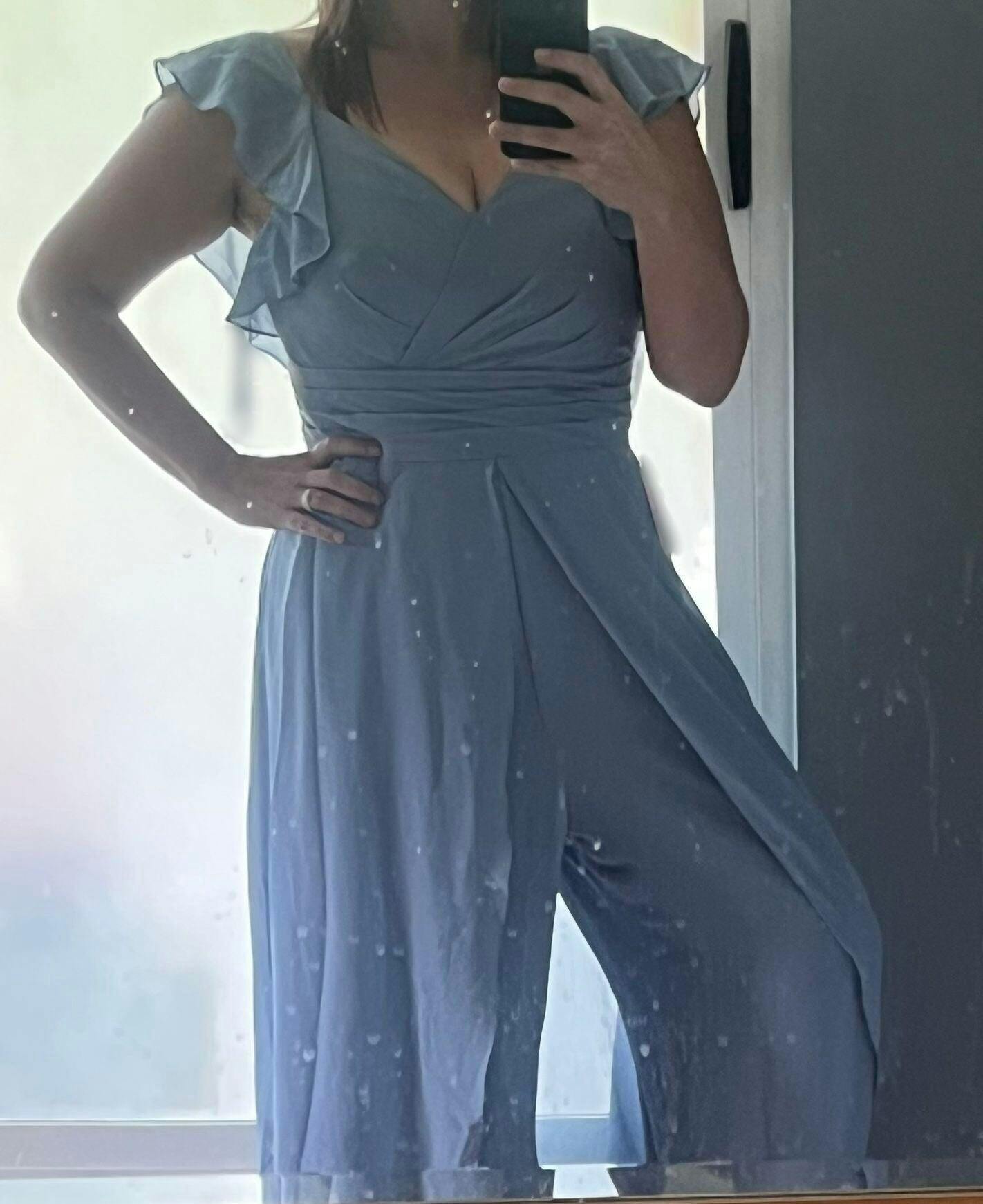 Chic V-Neck Ruffles Sleeves Long Chiffon Jumpsuits For Bridesmaids
