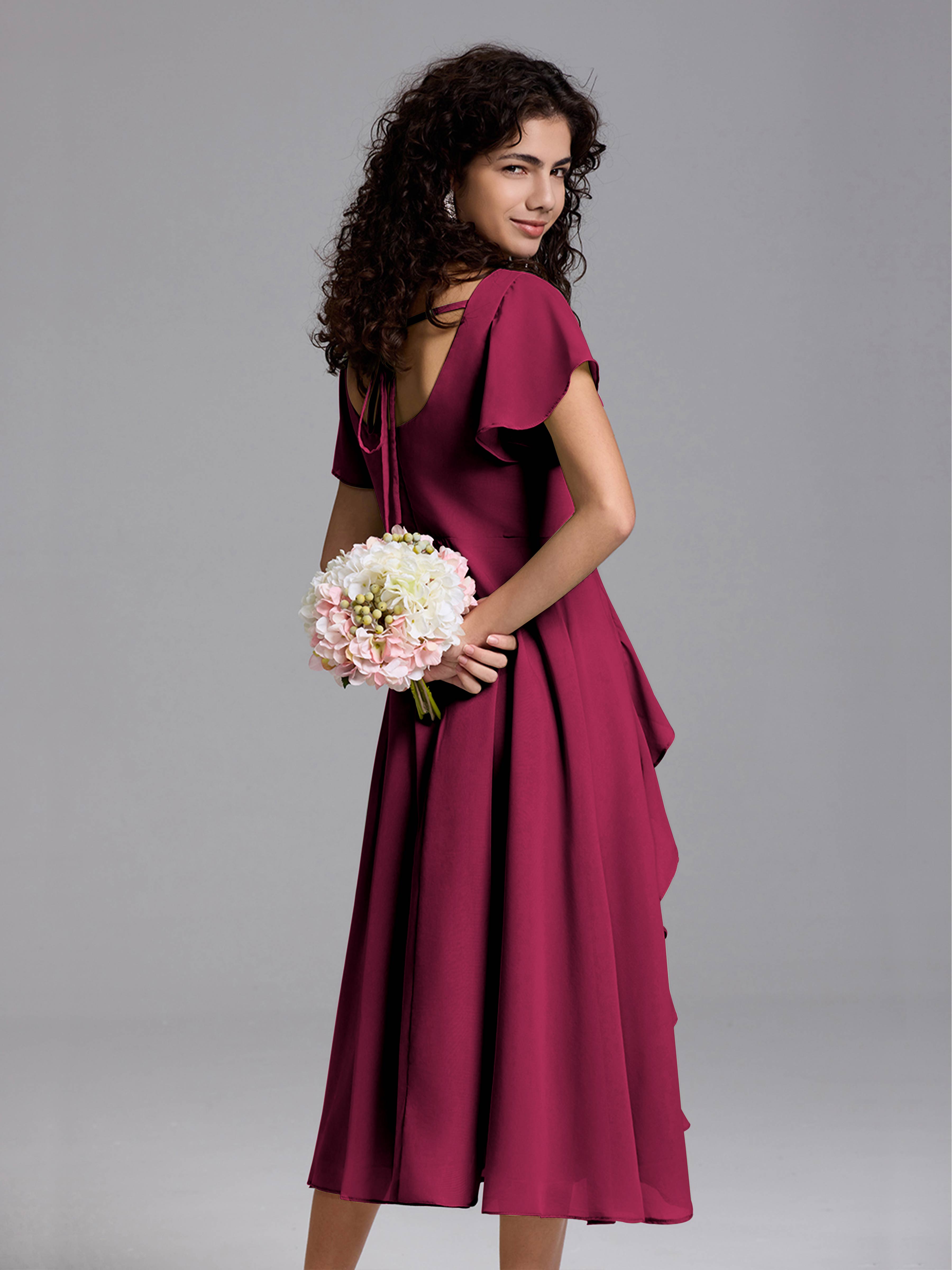 Christina Charming Square Ruffles Tea Length Chiffon Bridesmaid Dresses