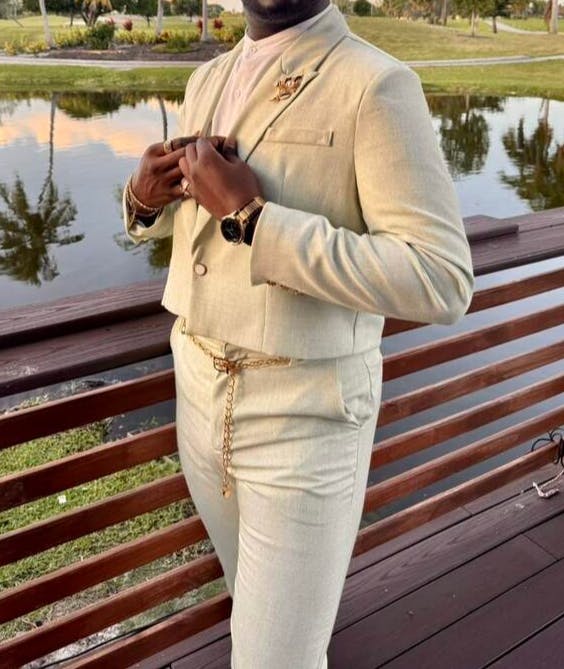 Designer Cropped Peak Lapel Men's 2 Pieces Suit for Events & Casual Wear
