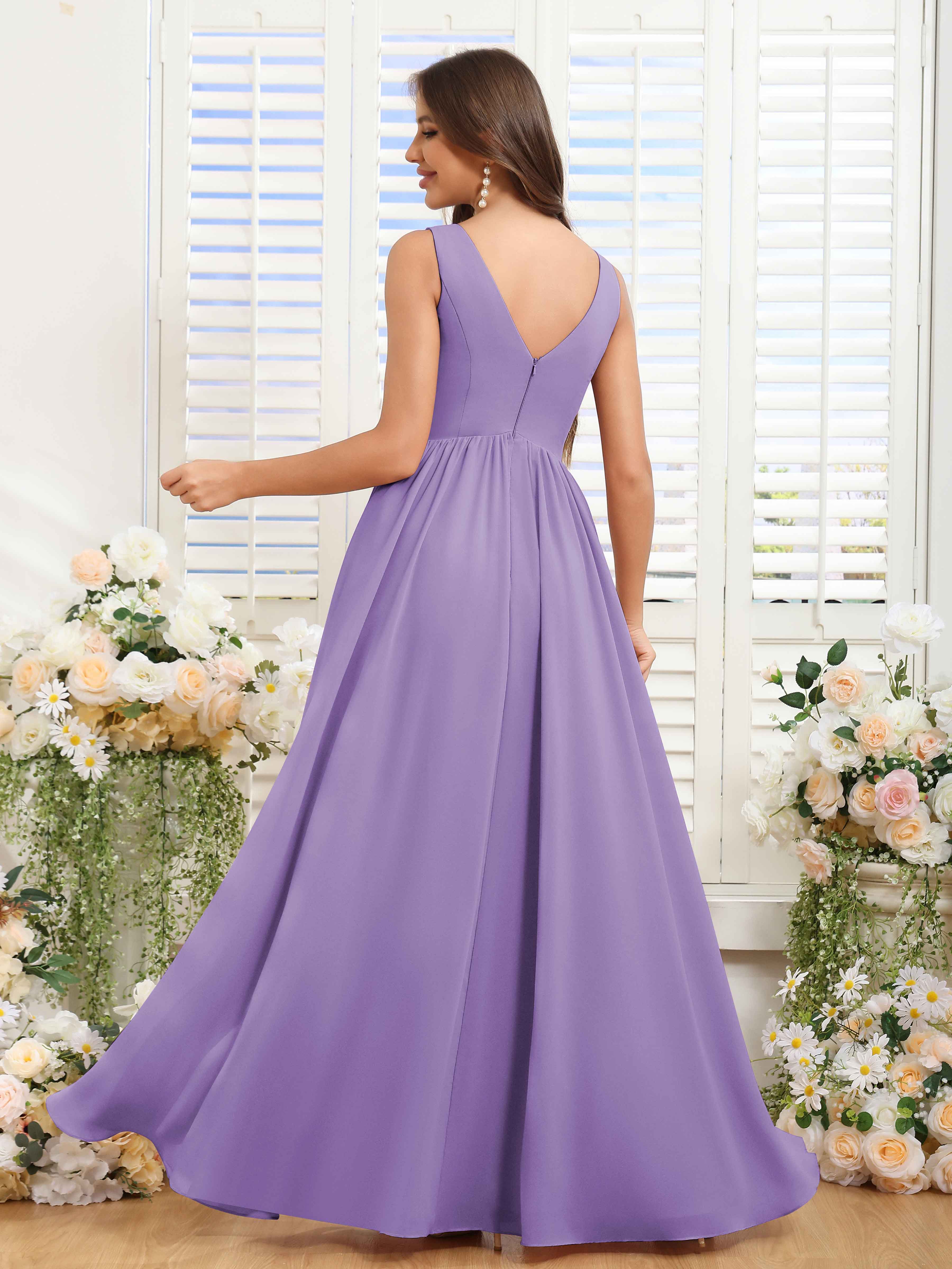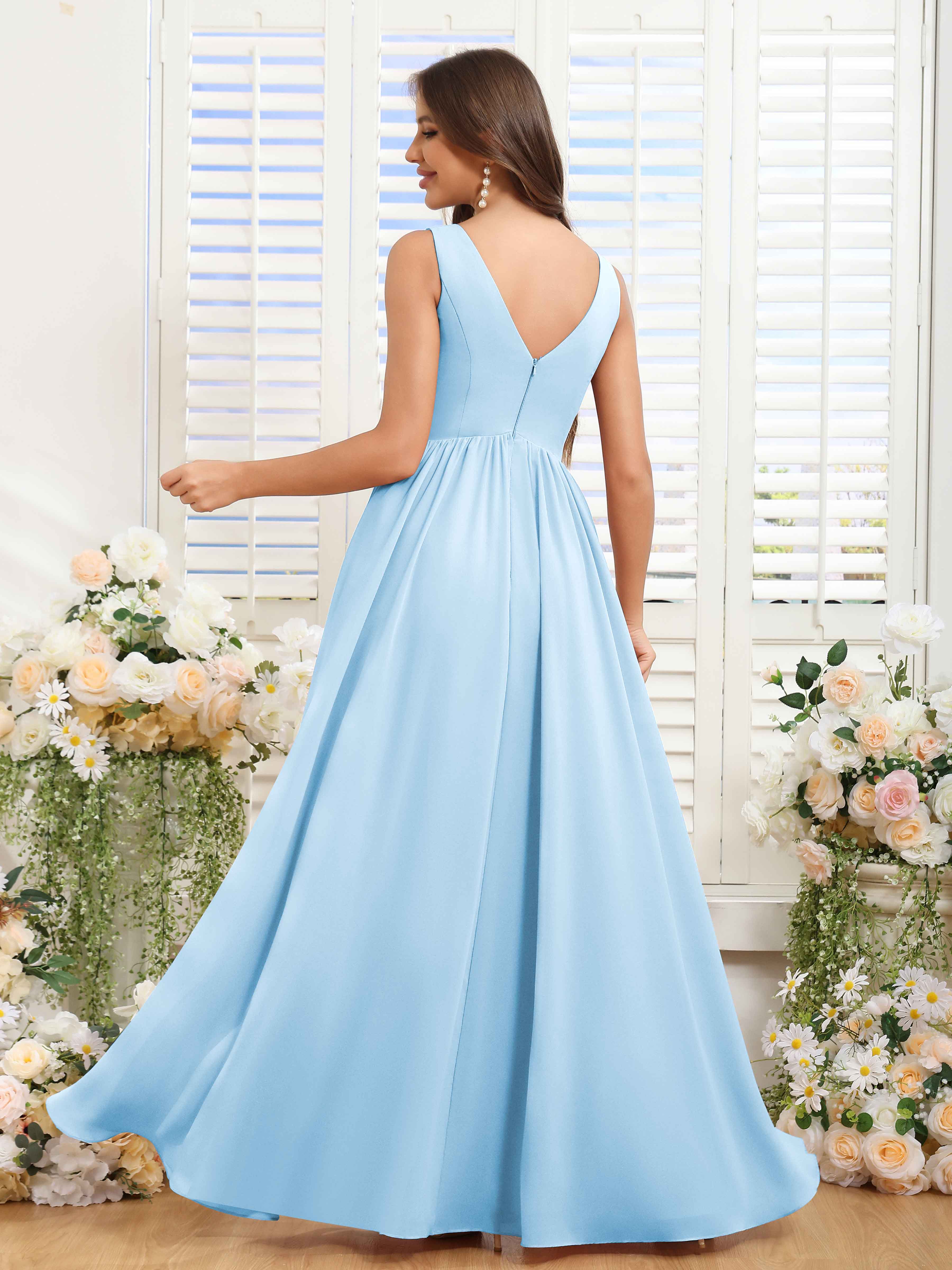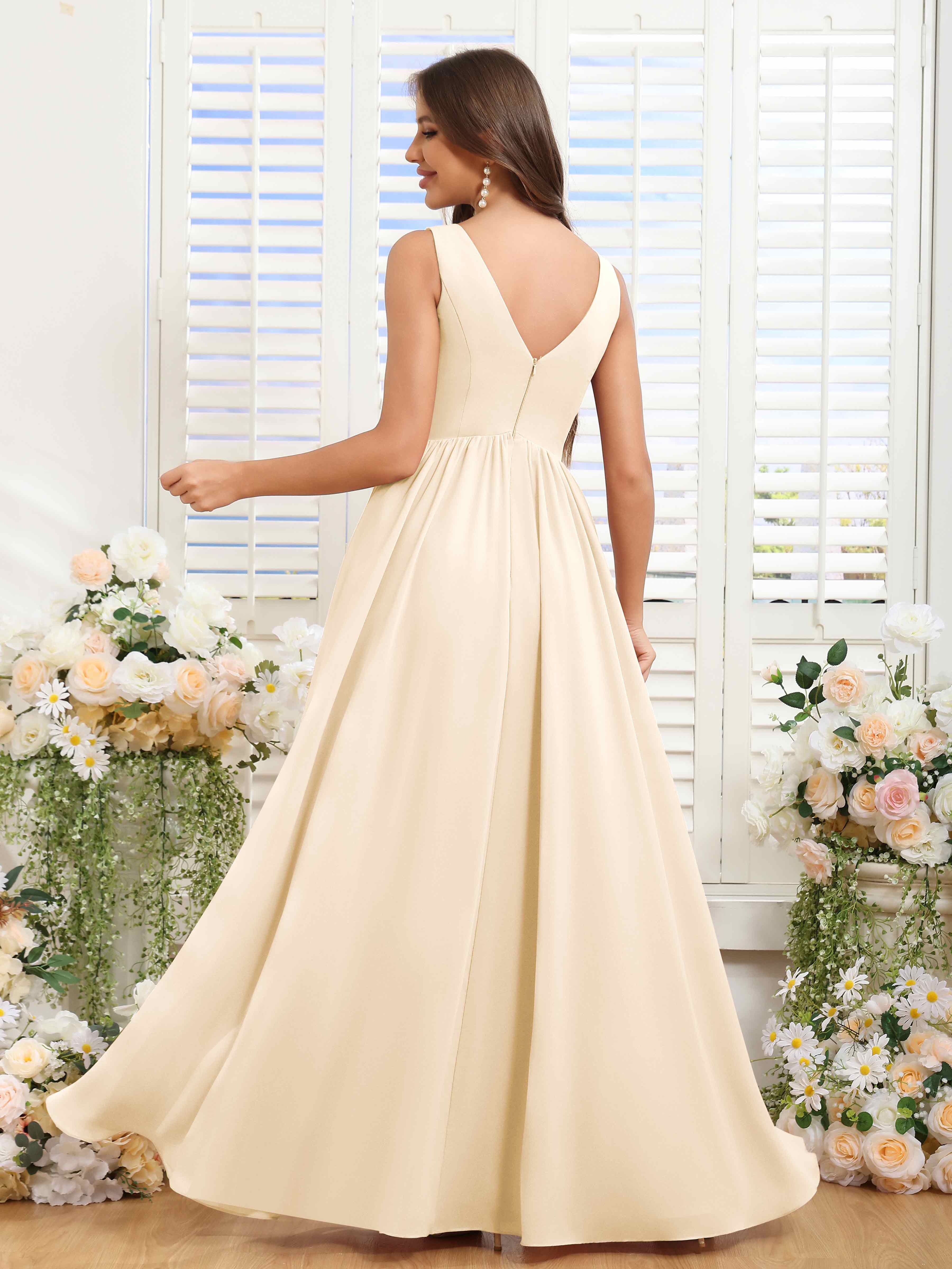 Eira Modern A-Line V Neck Ruched Floor Length Bridesmaid Dresses