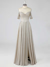 Elegant A-Line Off the Shoulder Floor Length Glitter Prom Dresses UK