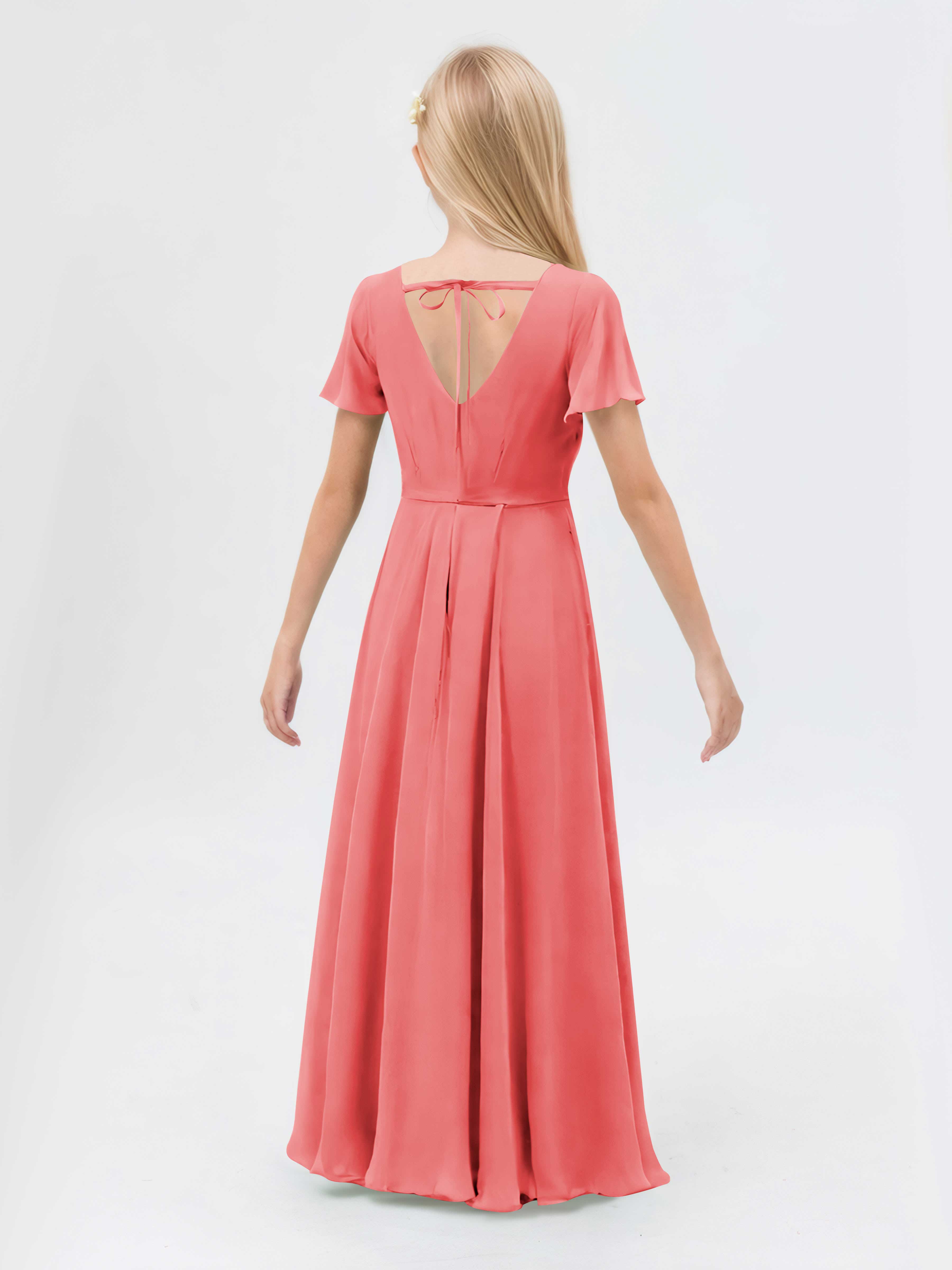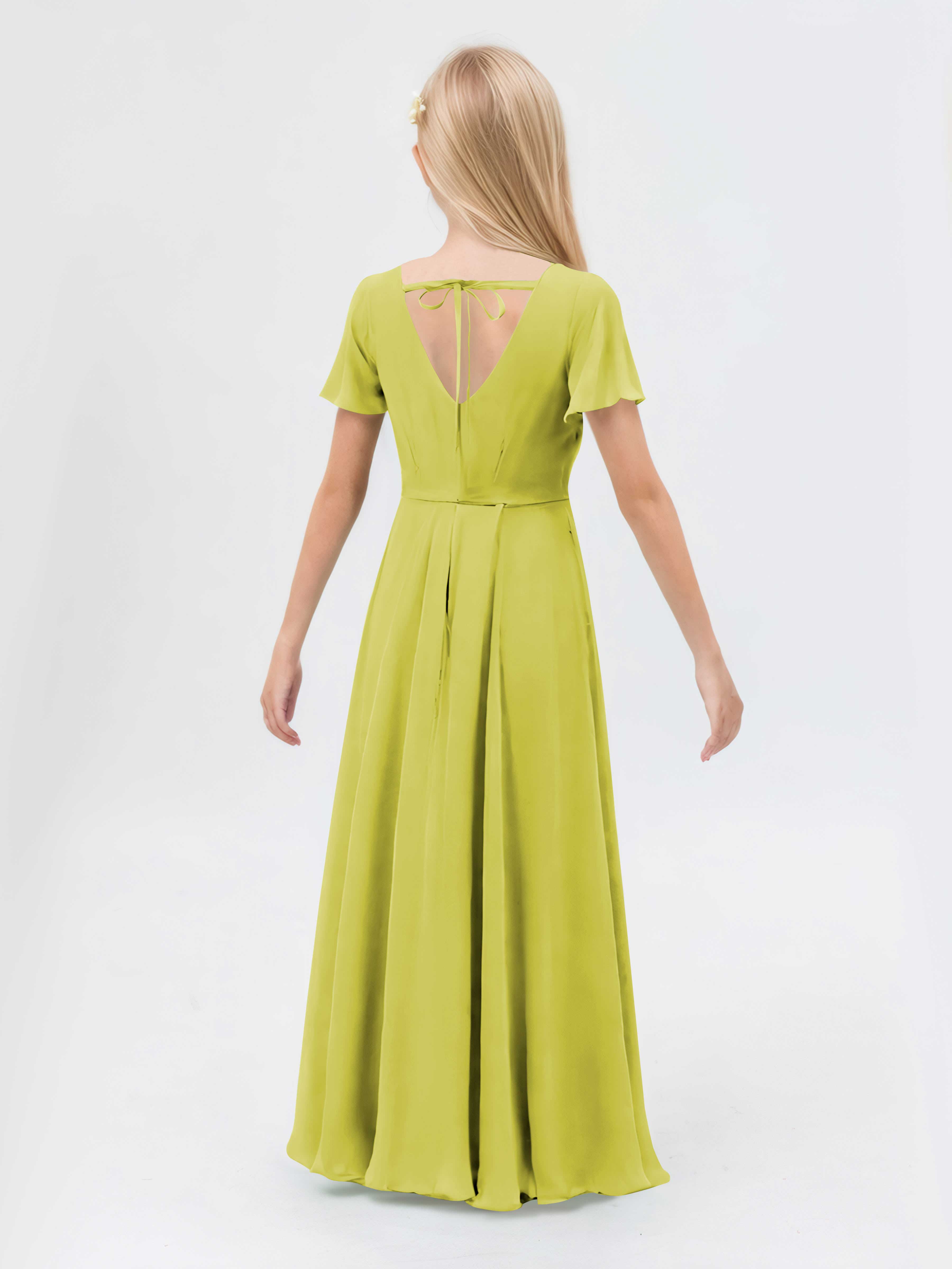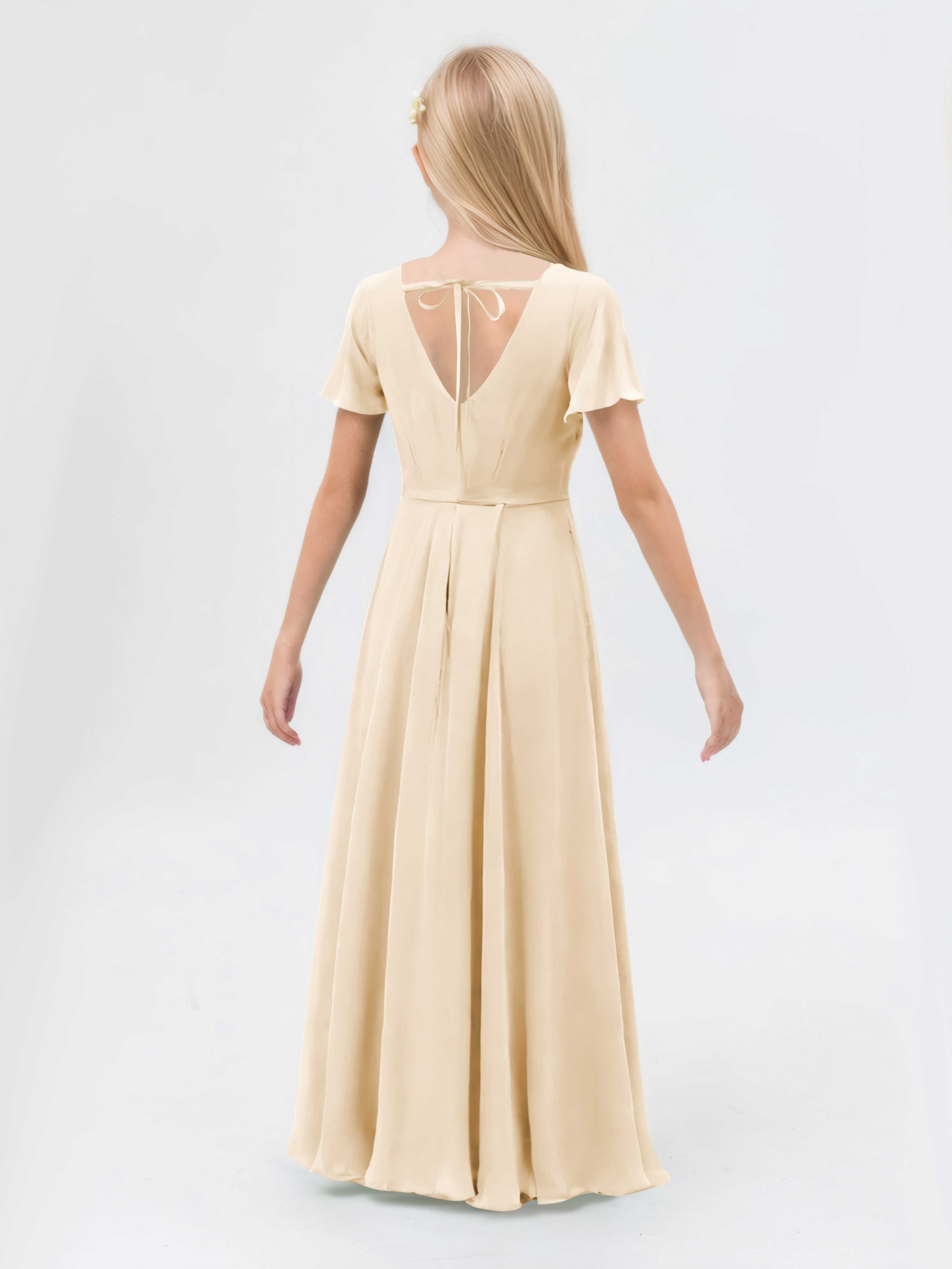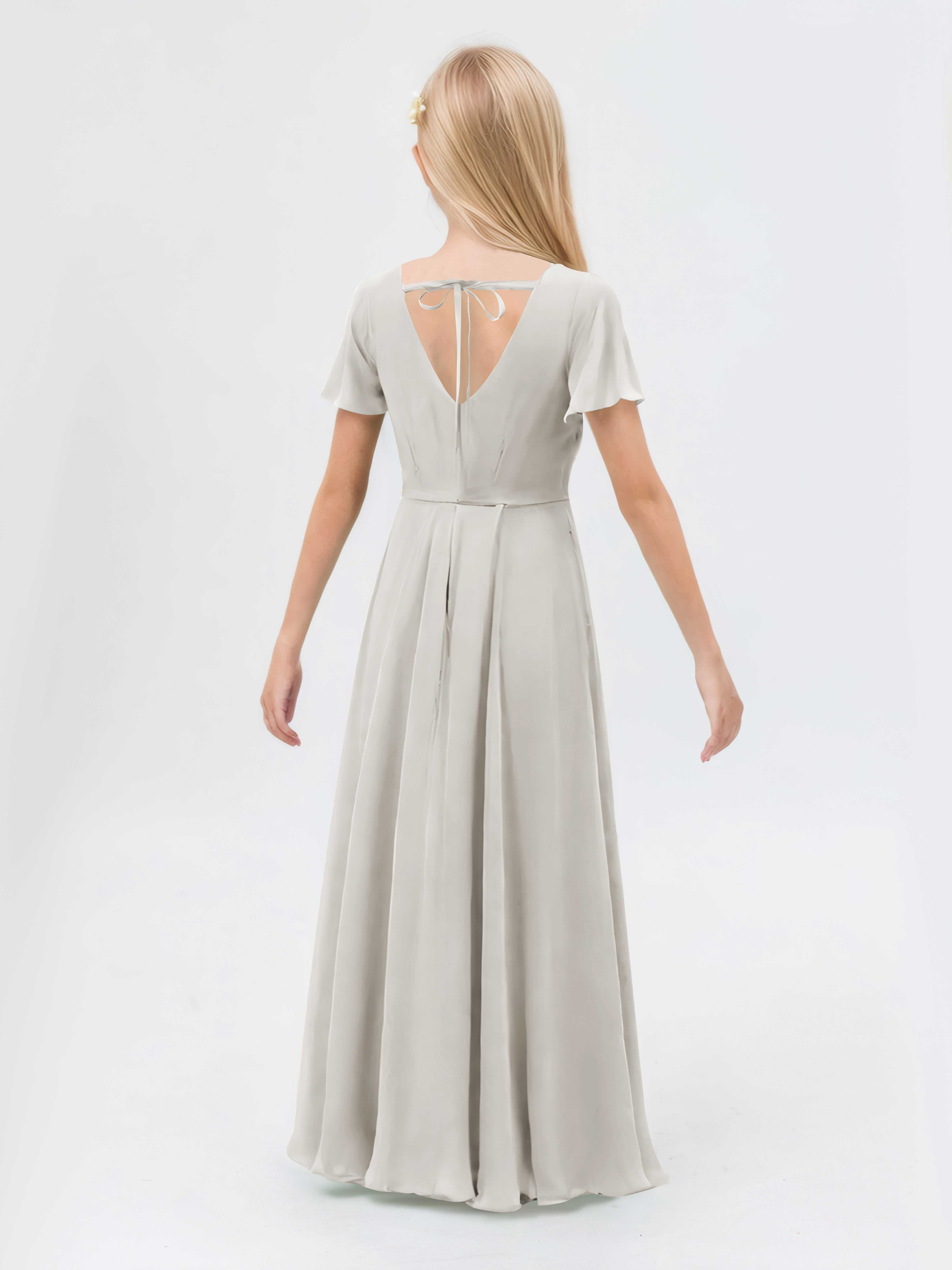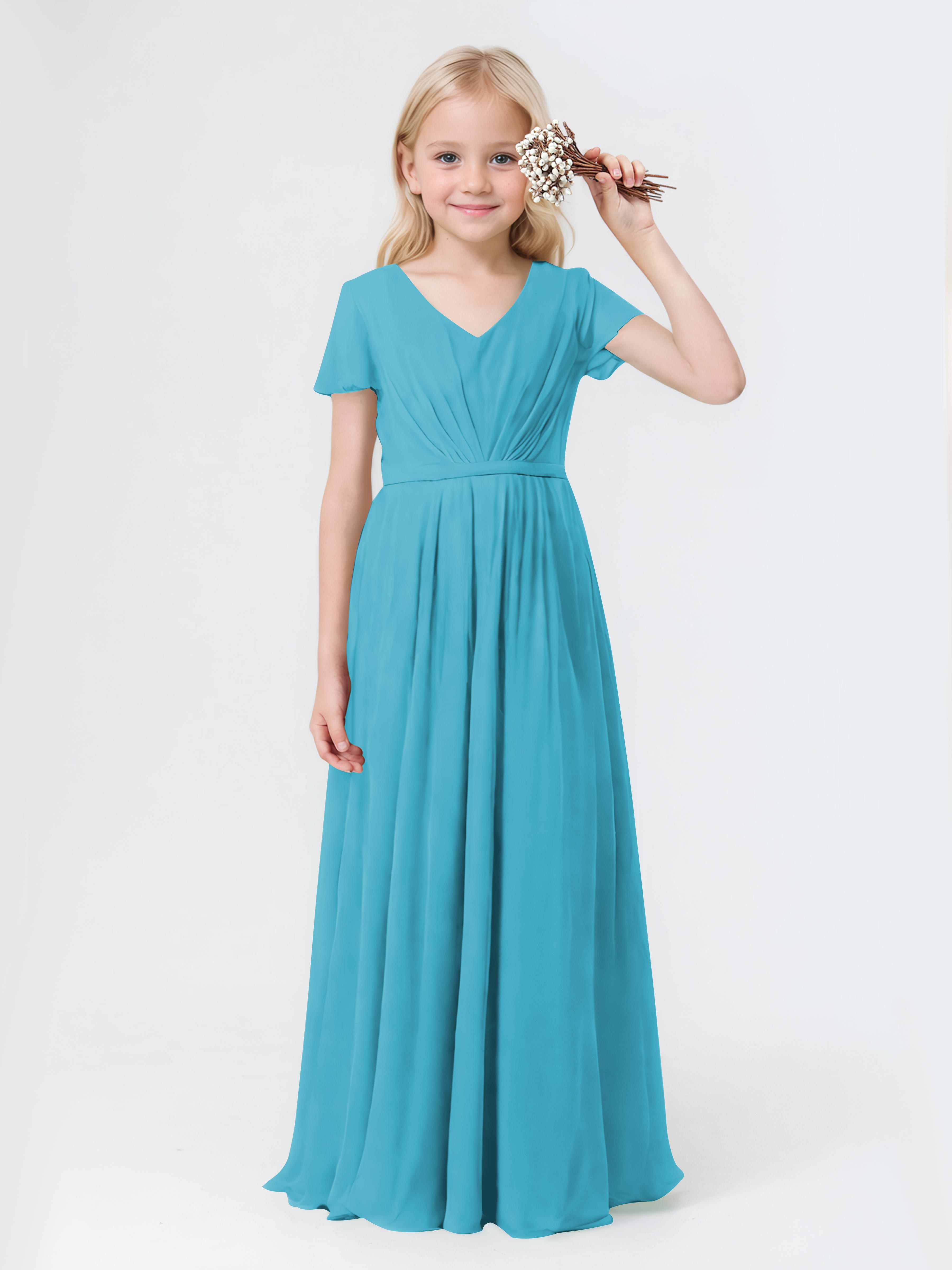 Elegant A-Line Short Sleeves Long Chiffon Junior Bridesmaid Dresses