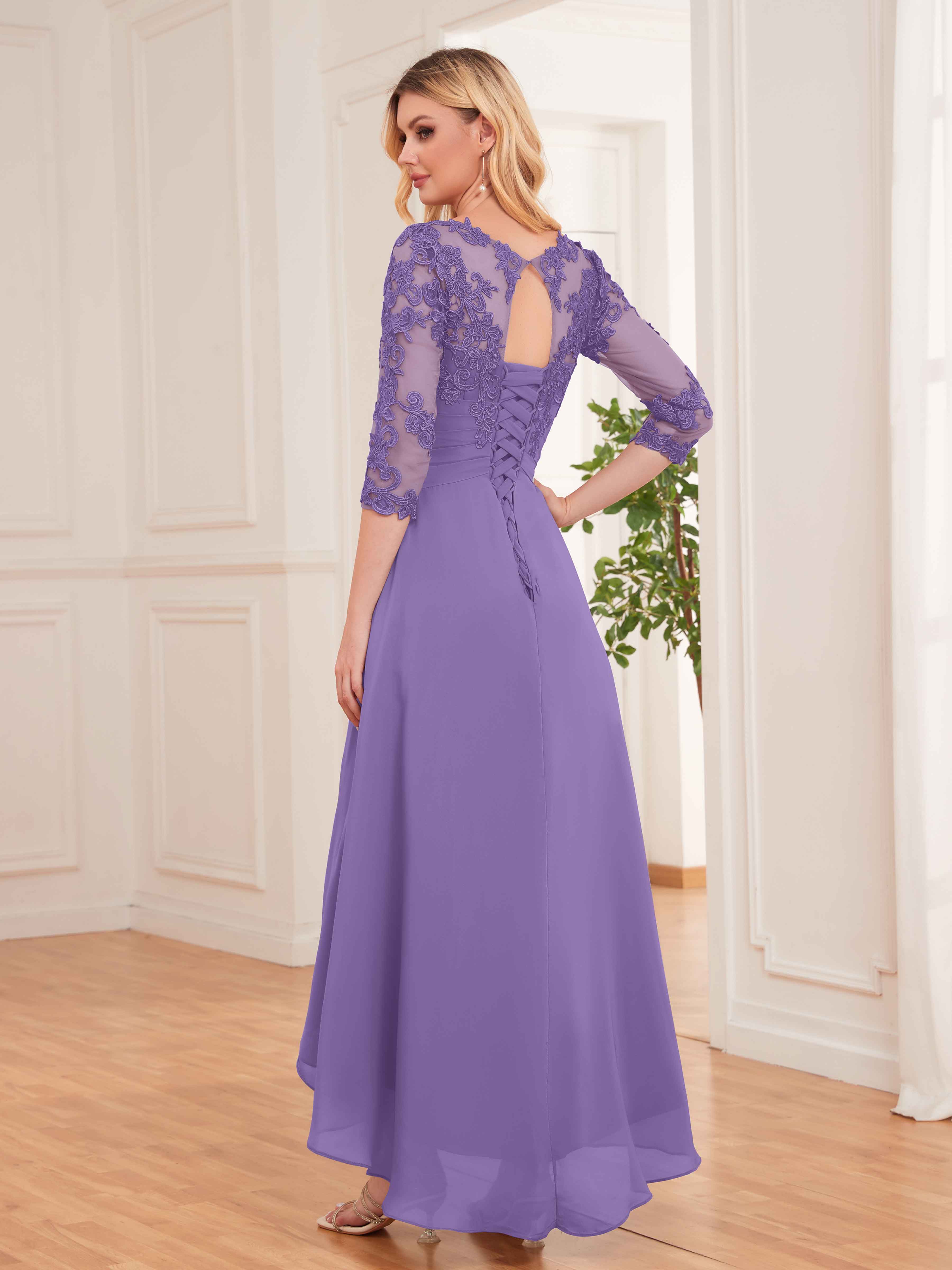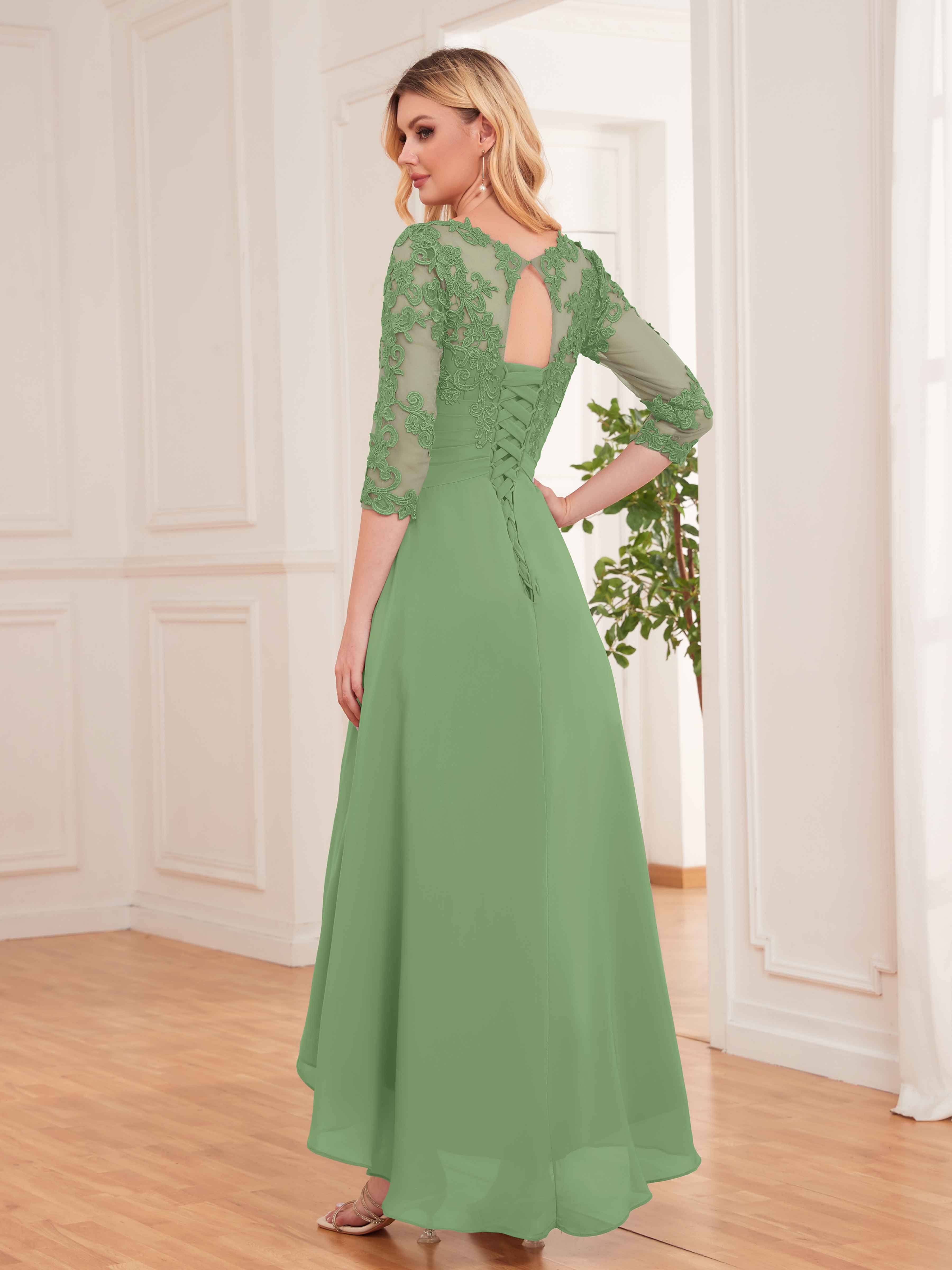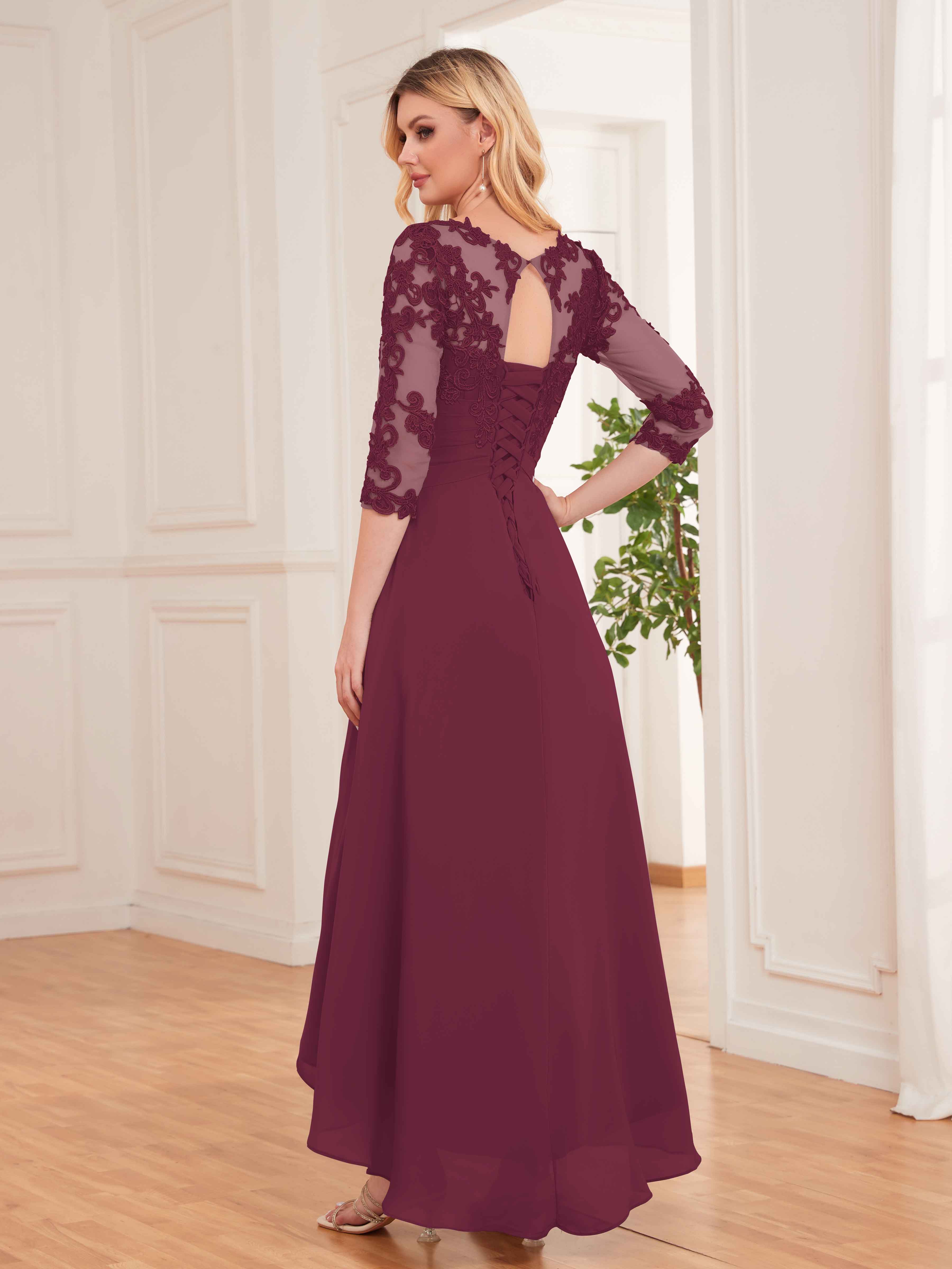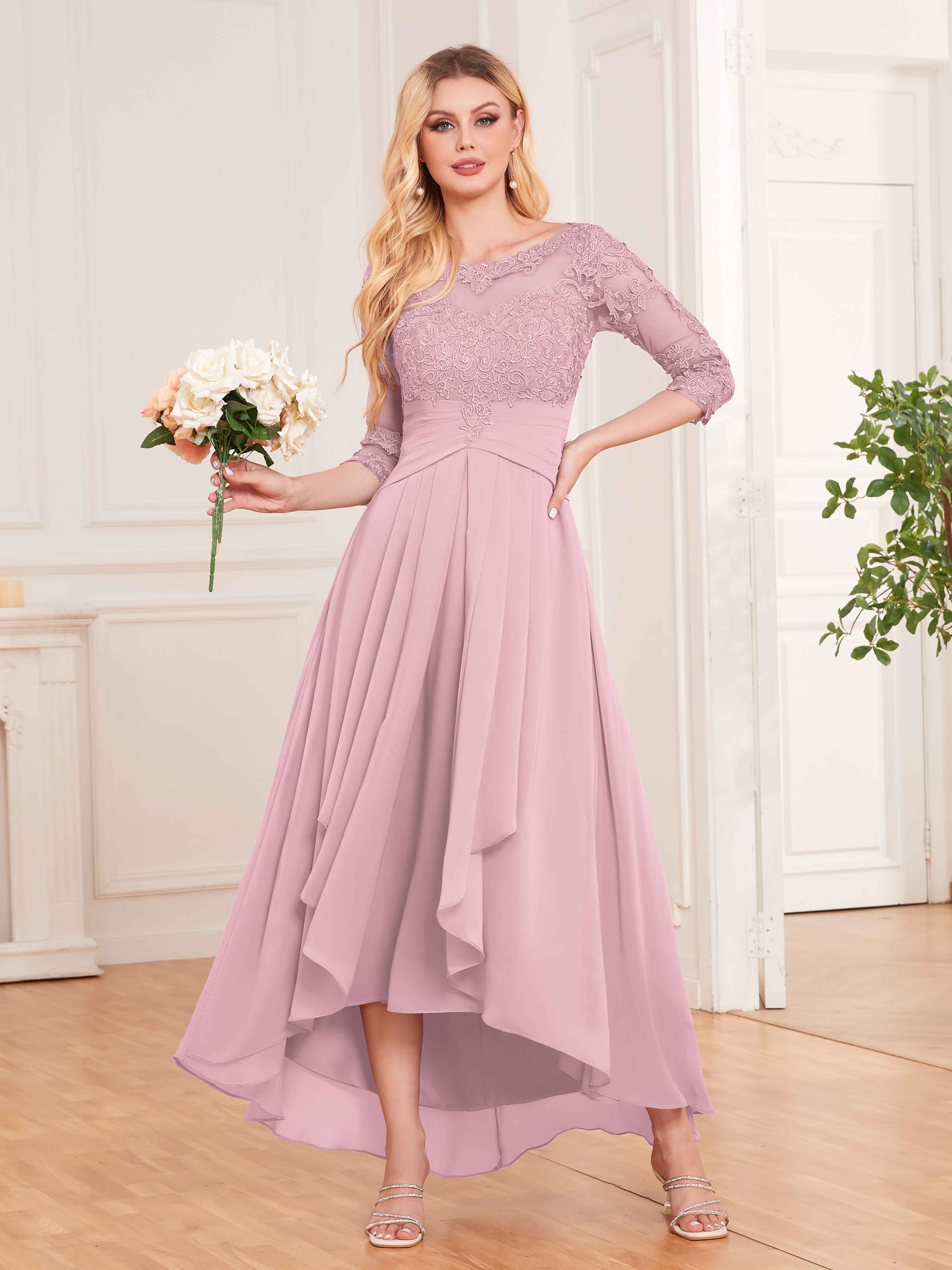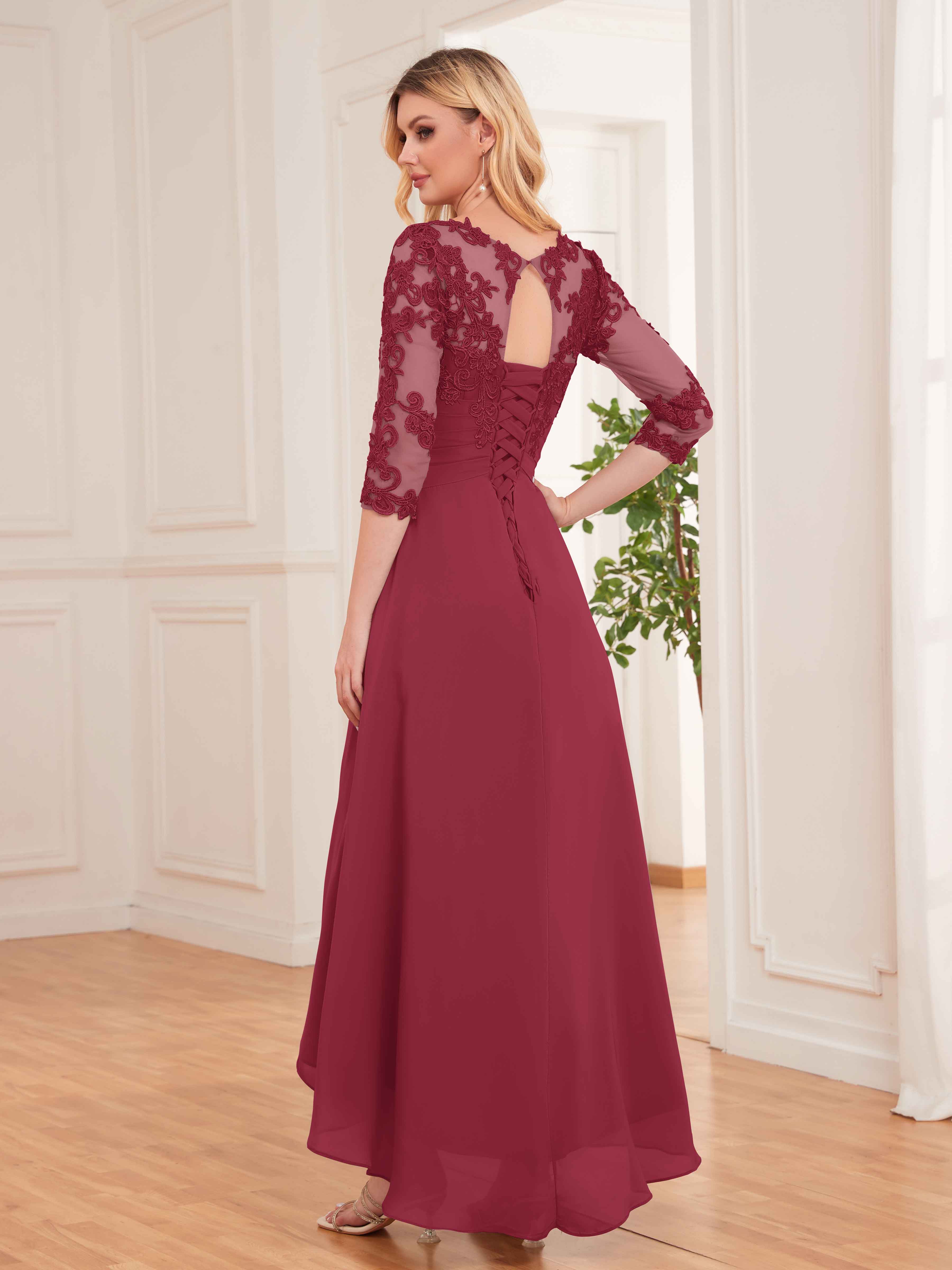 Emersyn Charming Keyhole Asymmetrical Lace Chiffon Bridesmaid Dresses