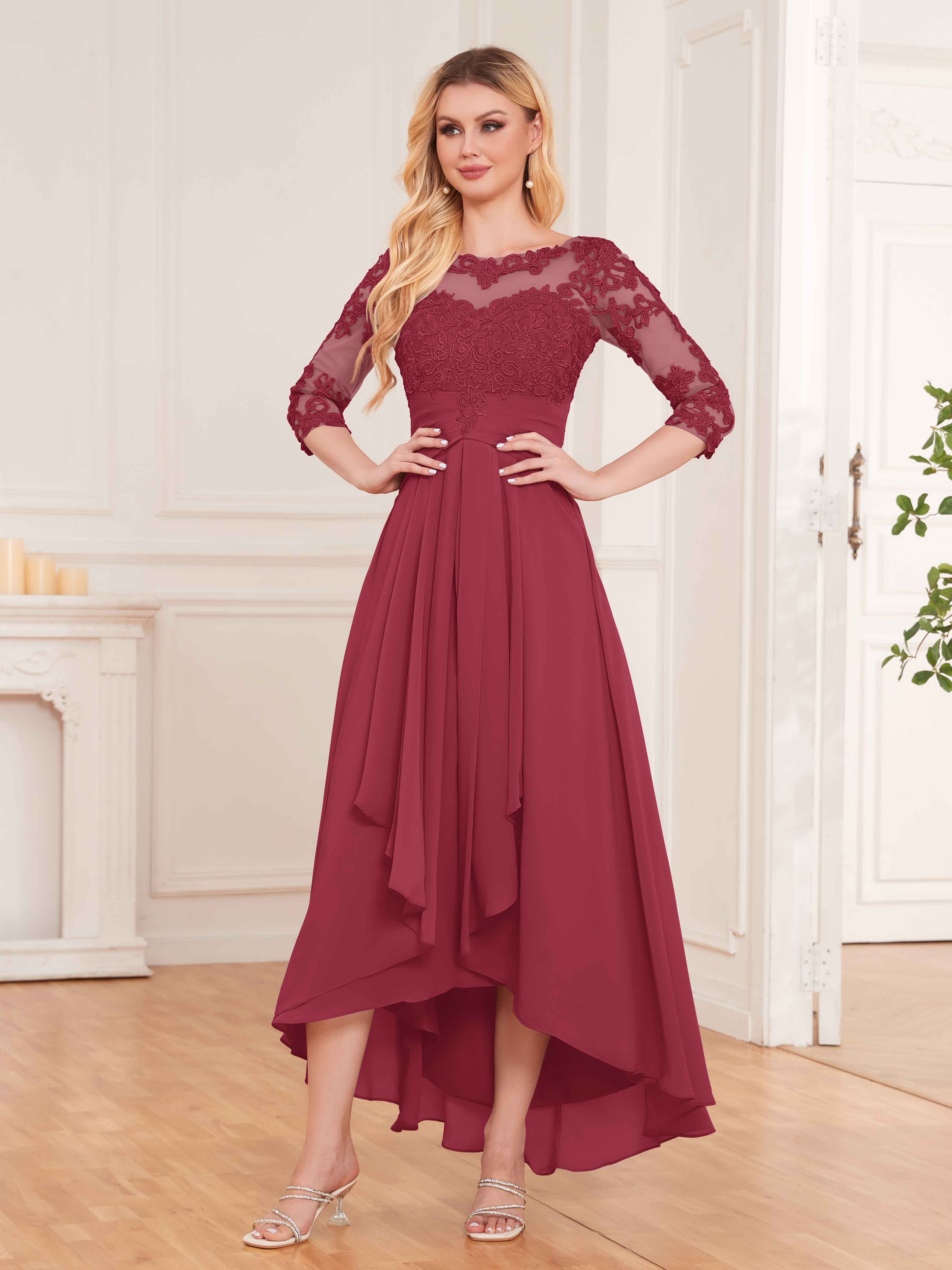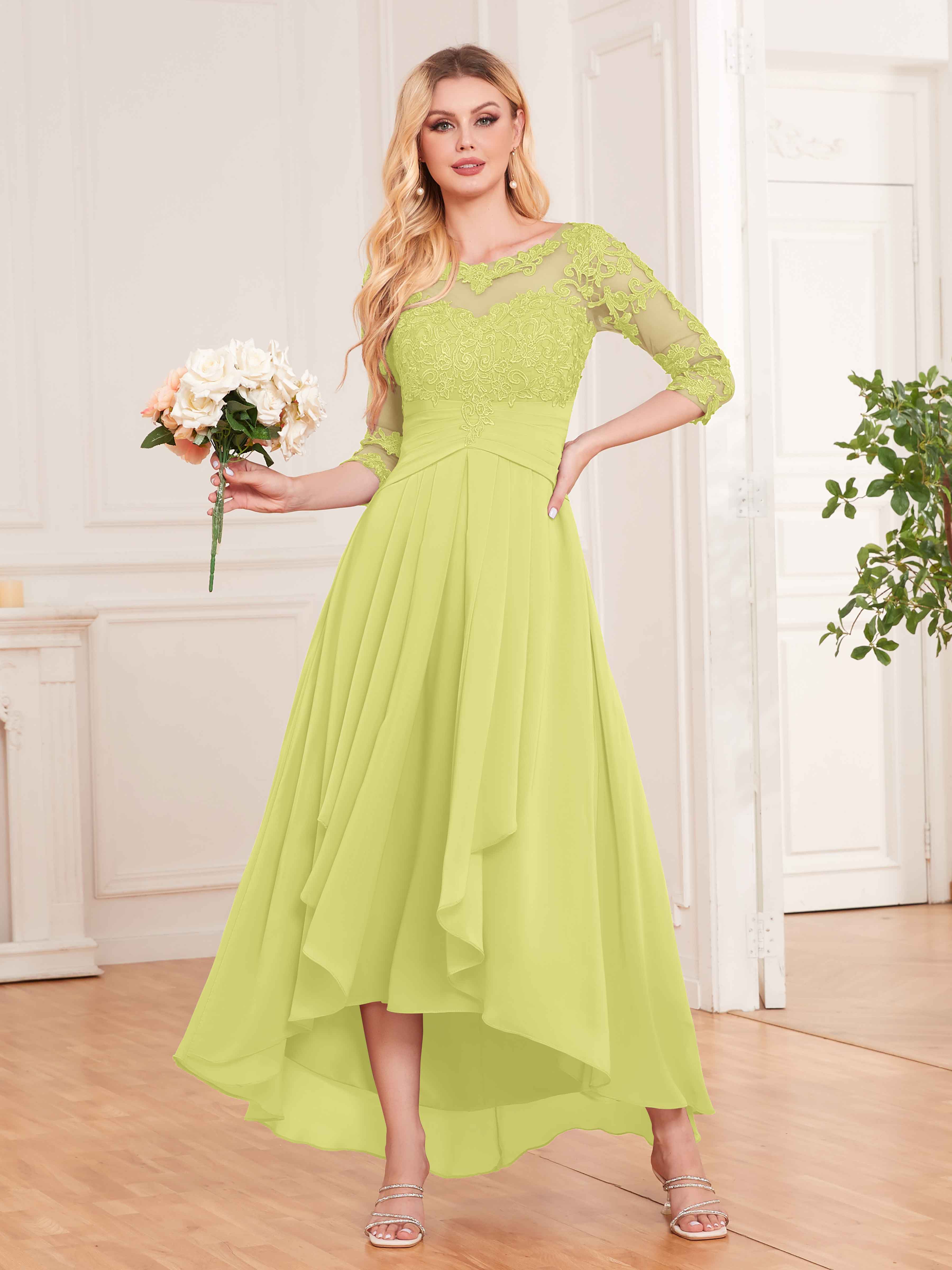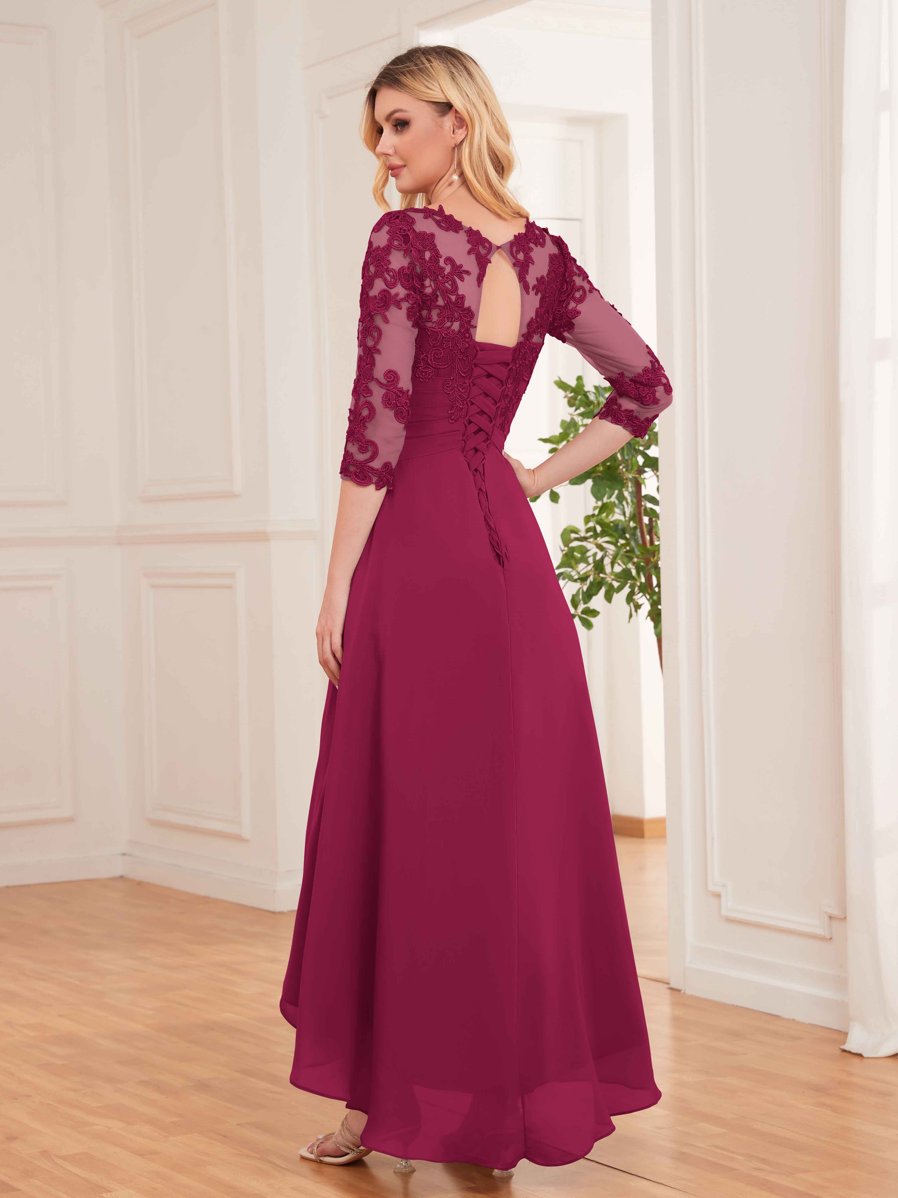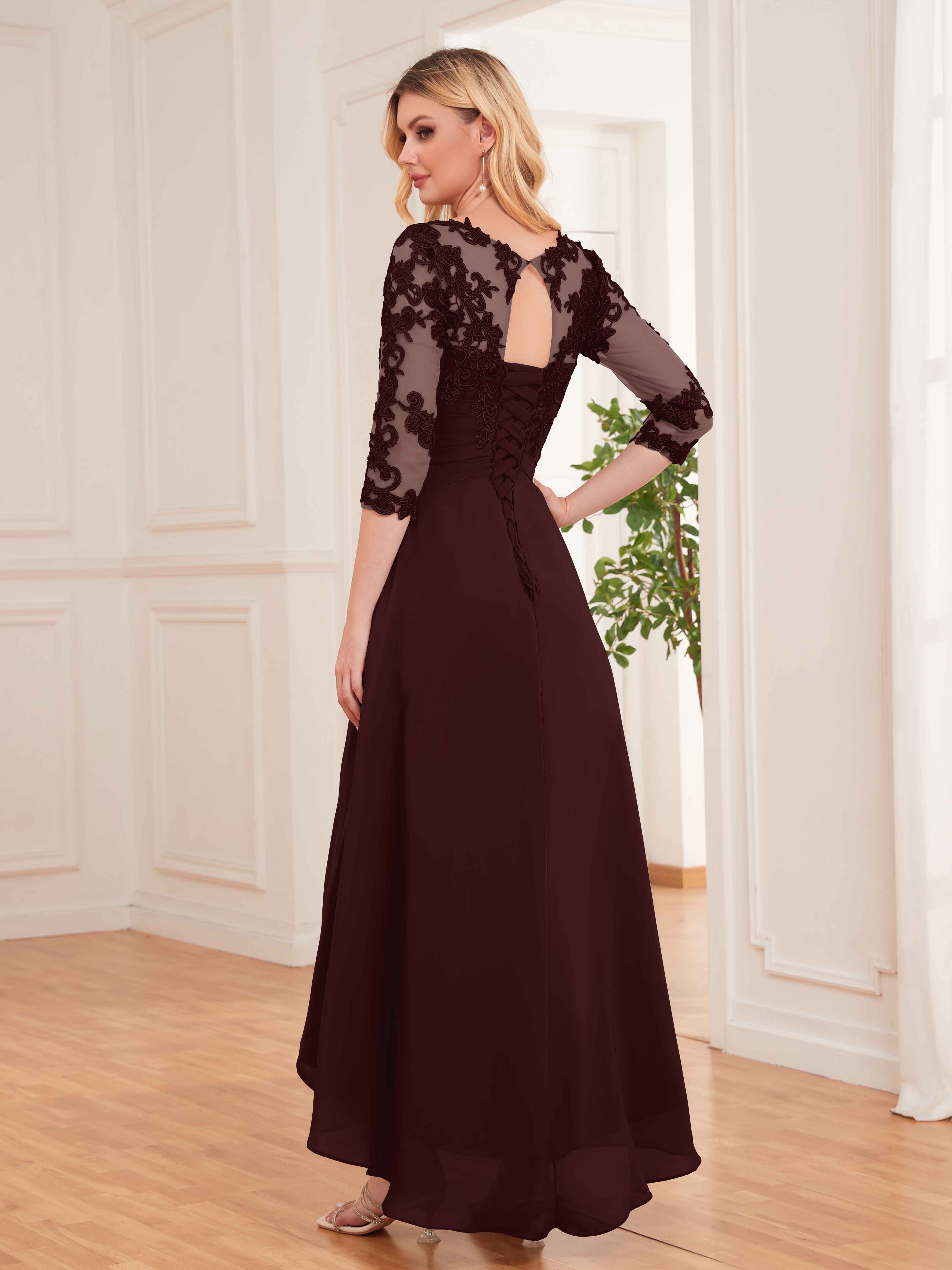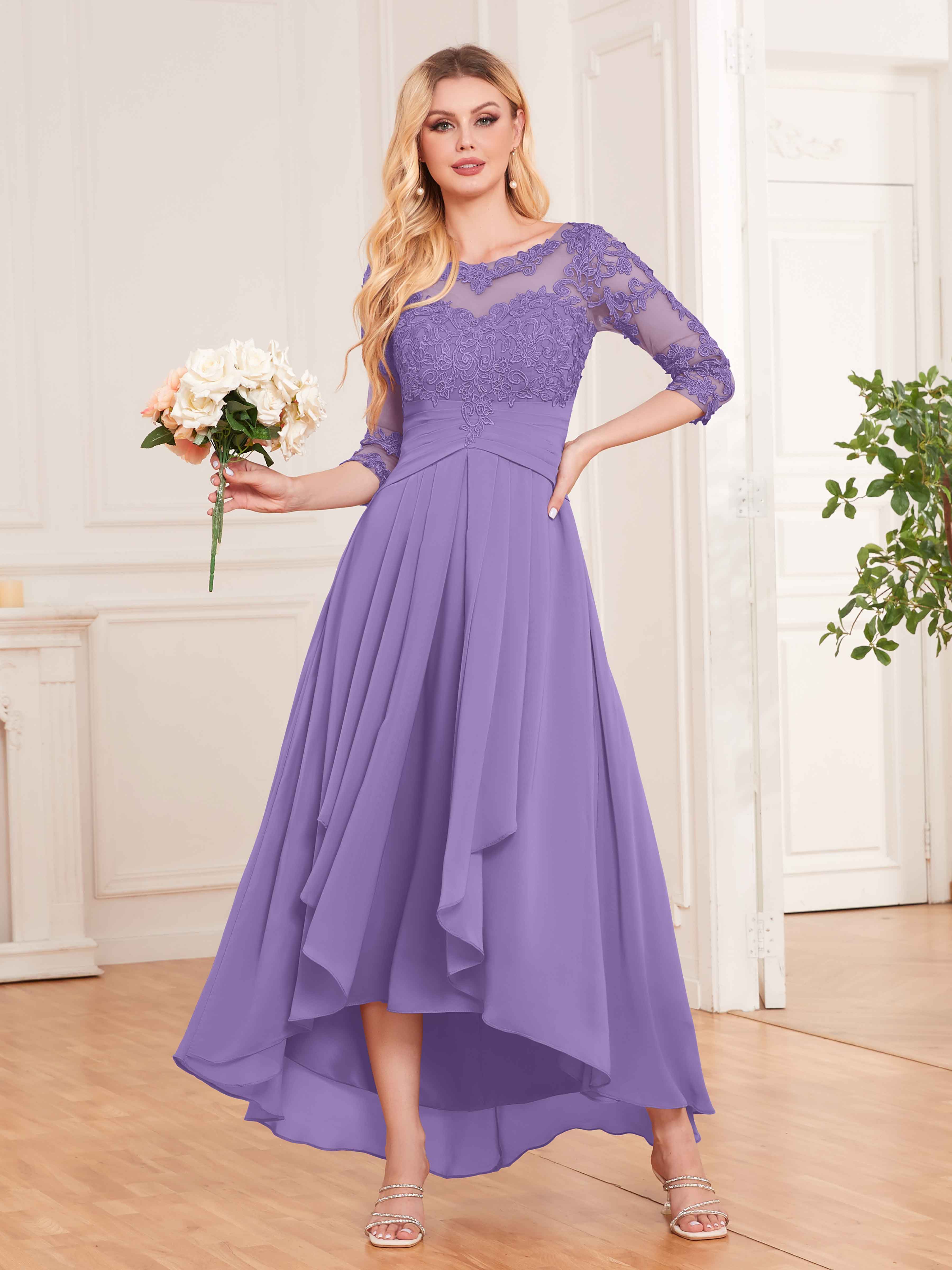 Emersyn Charming Keyhole Asymmetrical Lace Chiffon Bridesmaid Dresses