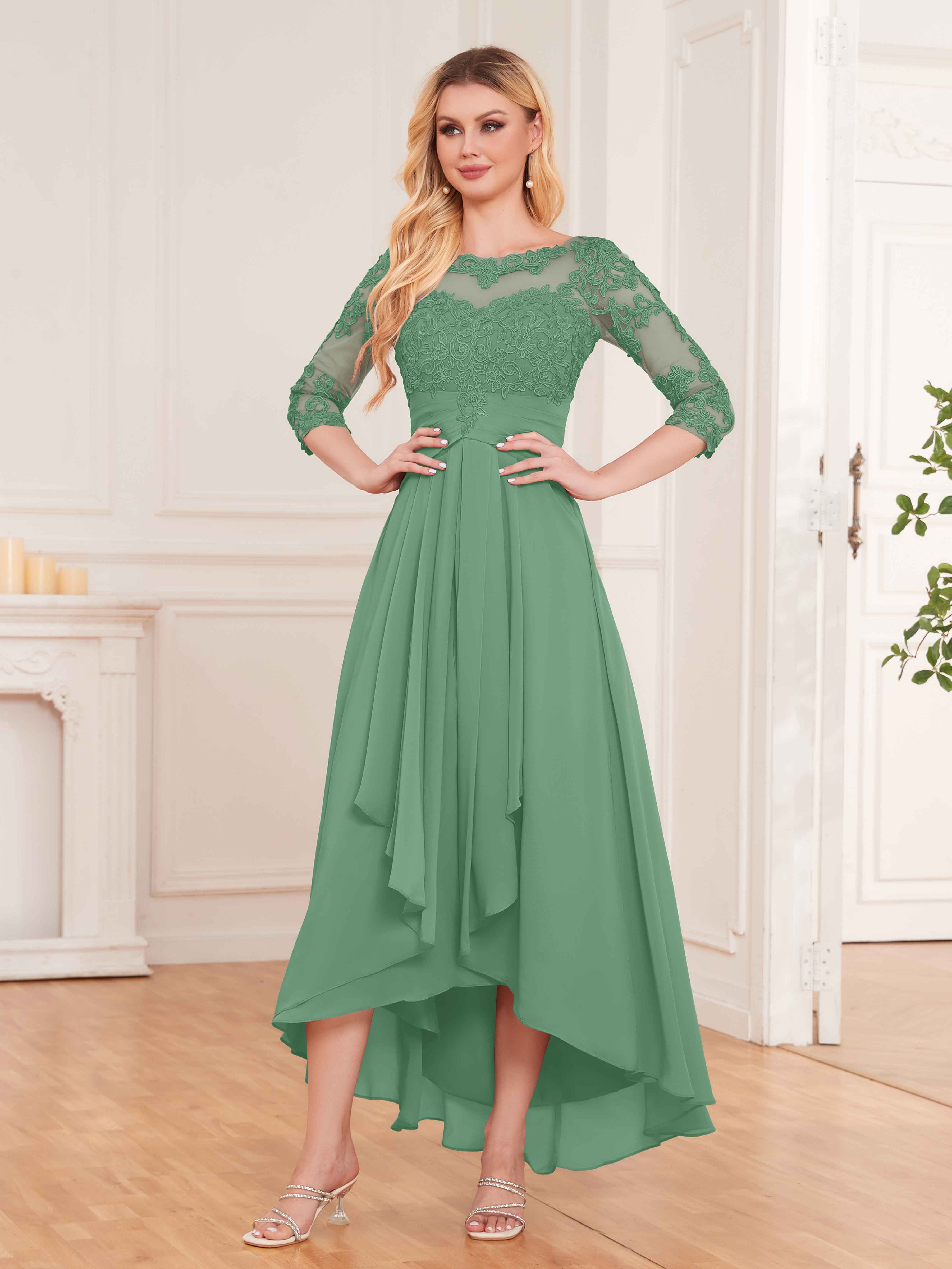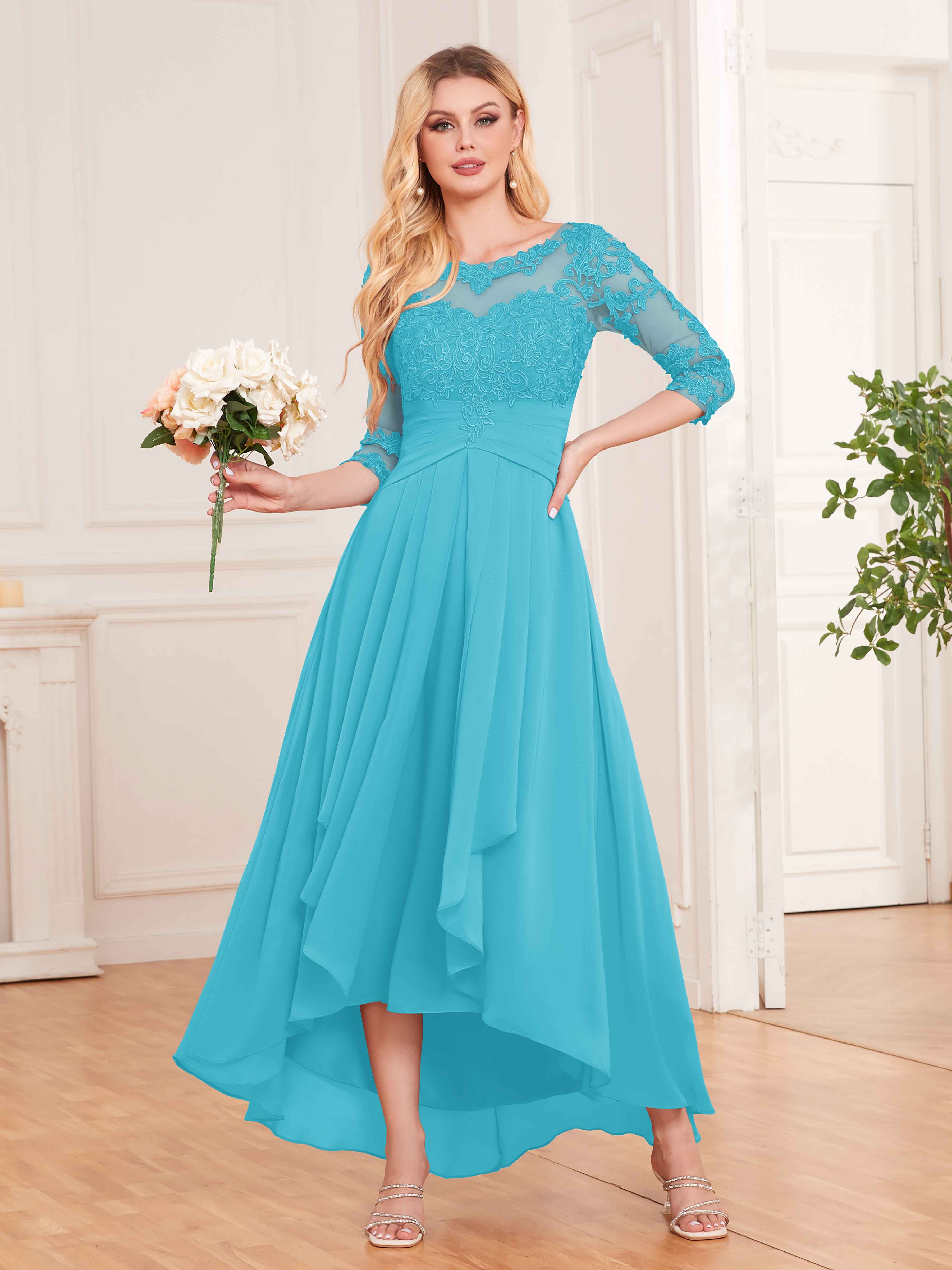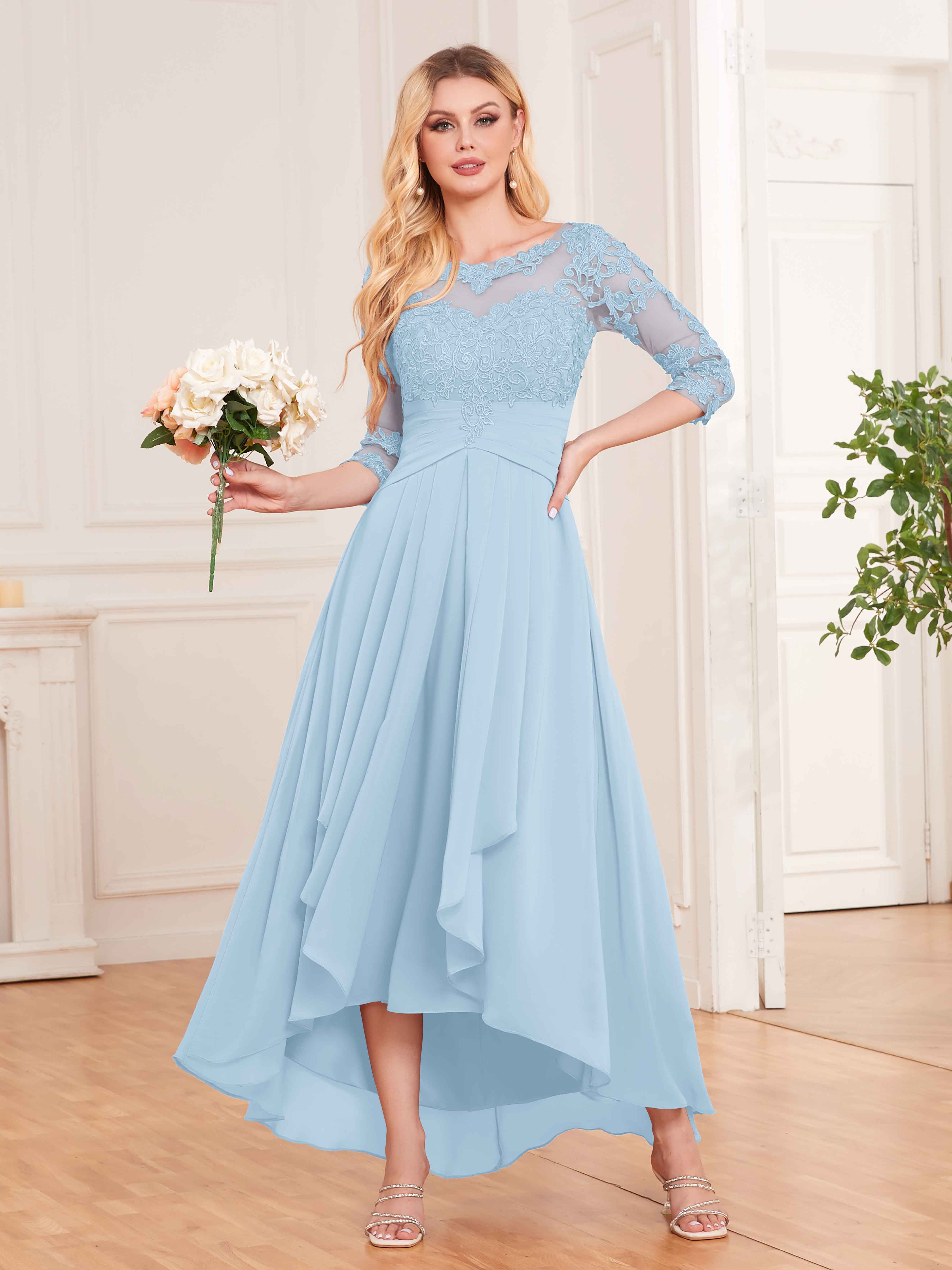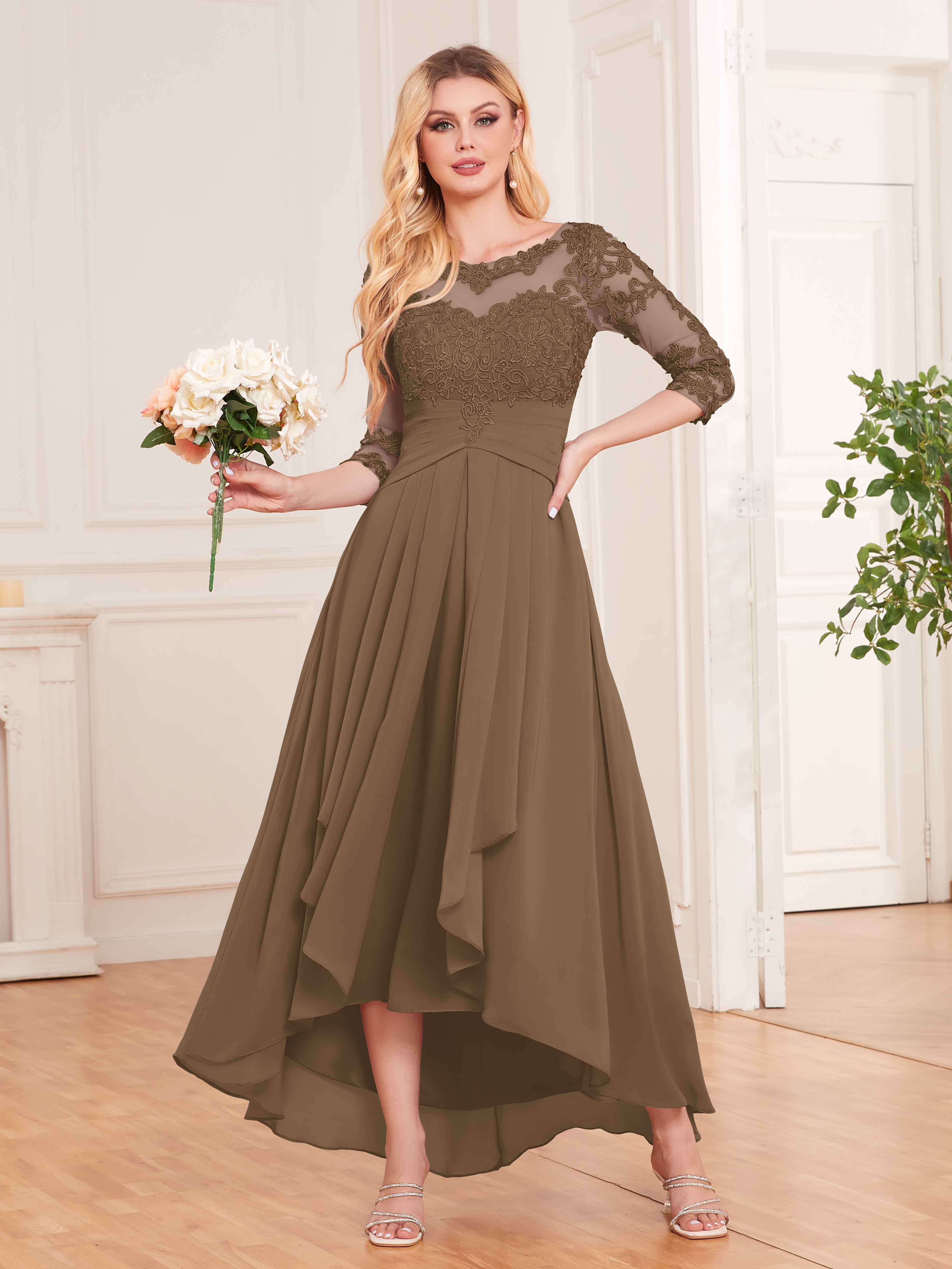 Emersyn Charming Keyhole Asymmetrical Lace Chiffon Bridesmaid Dresses