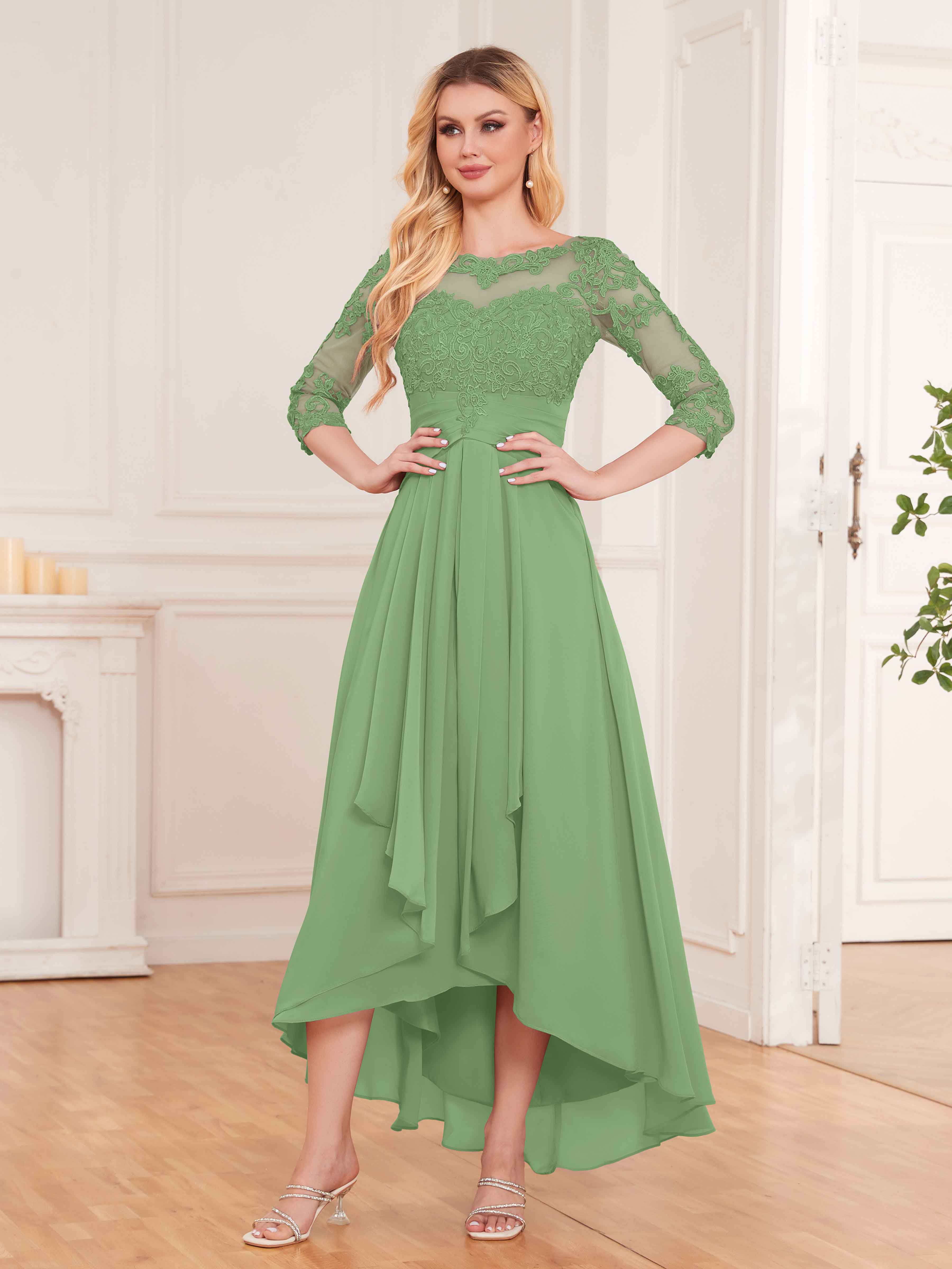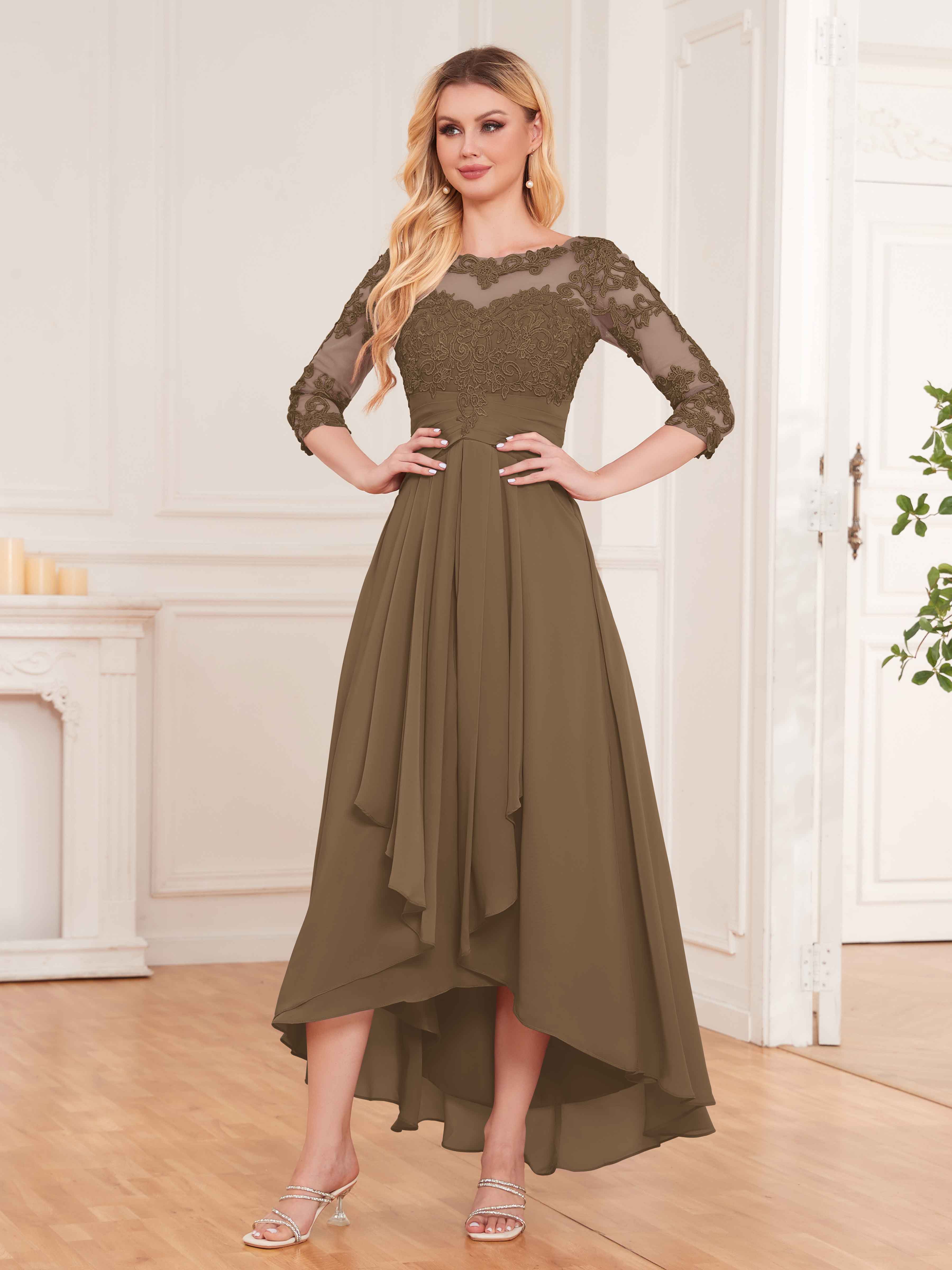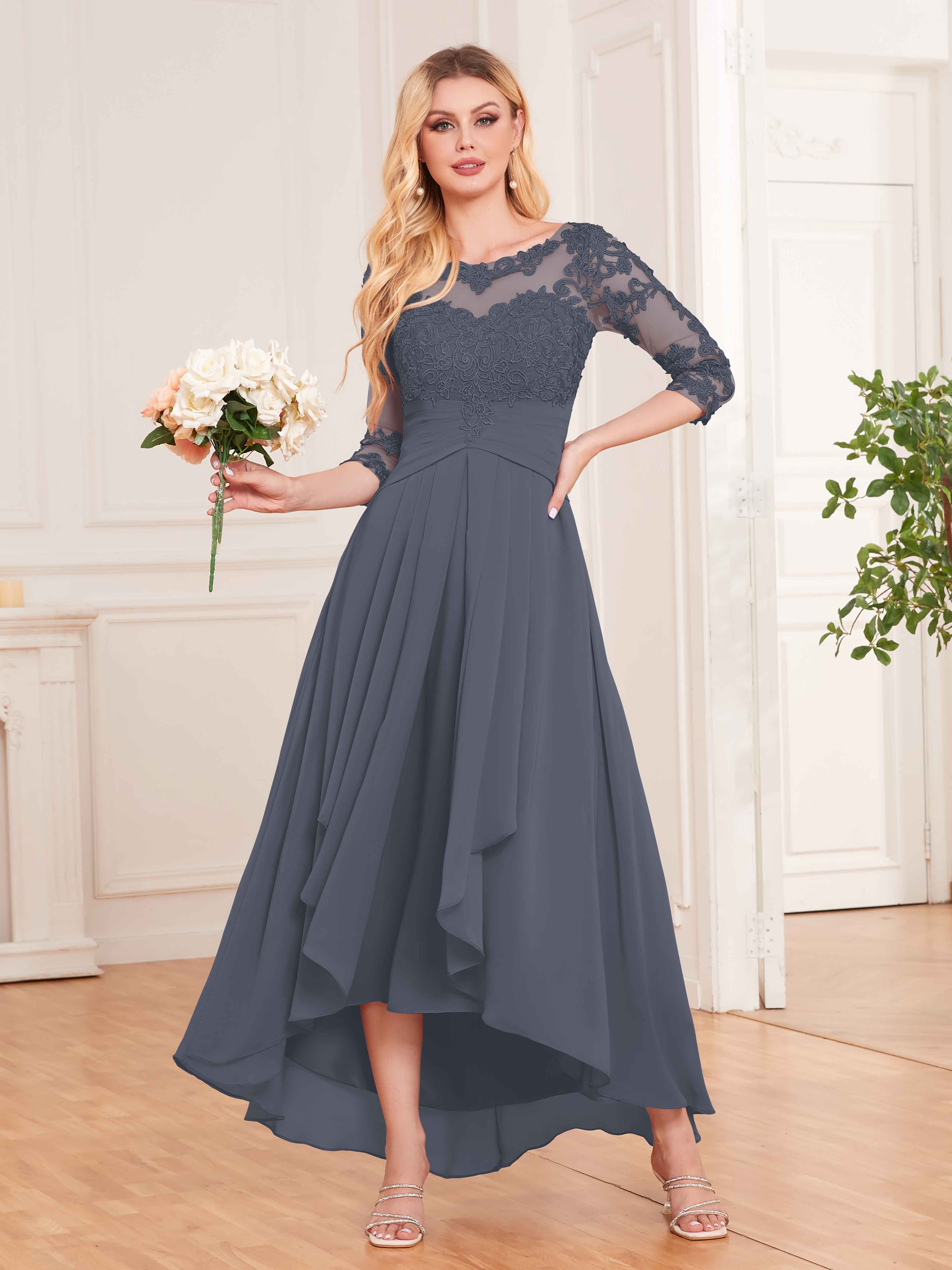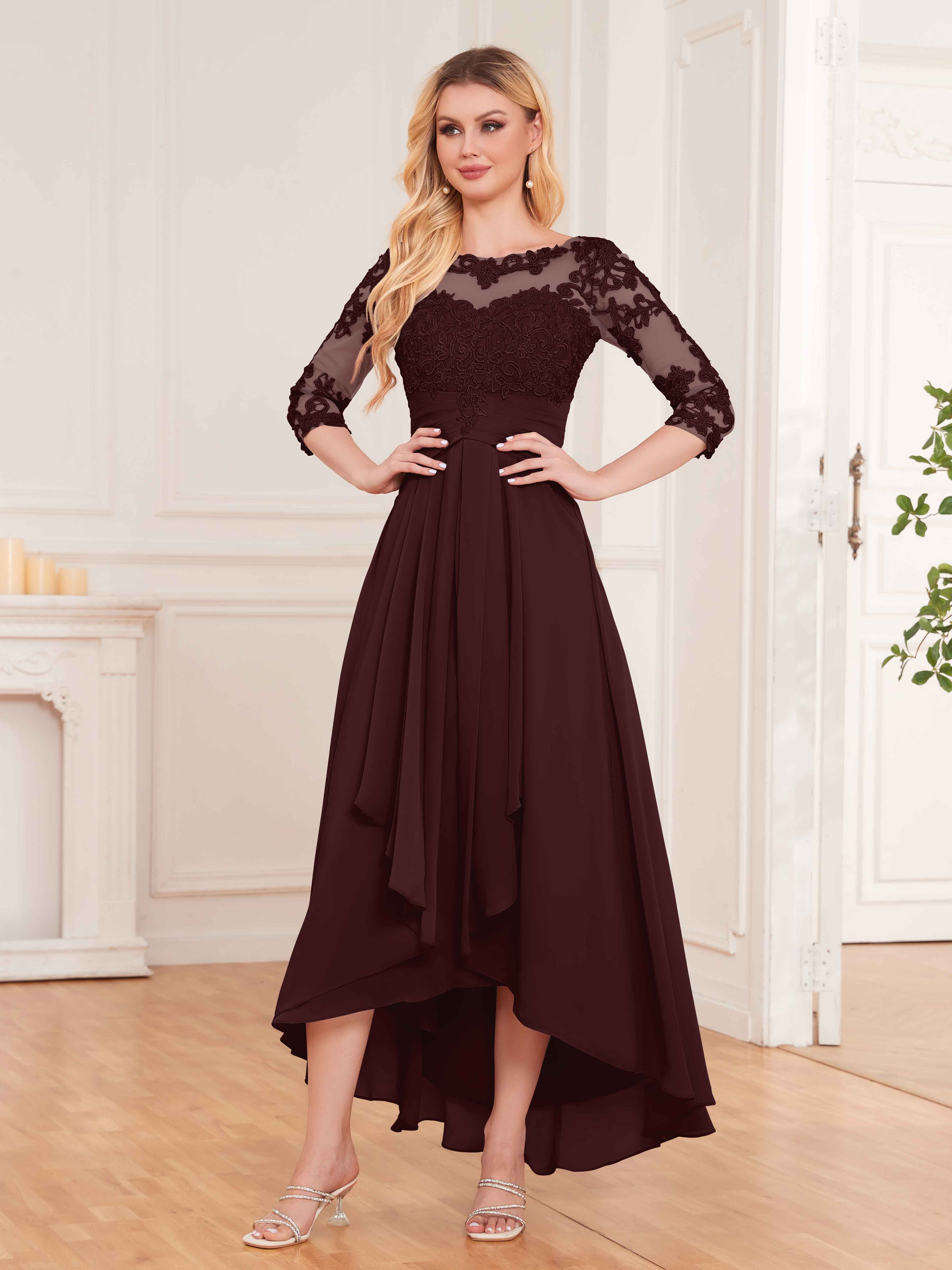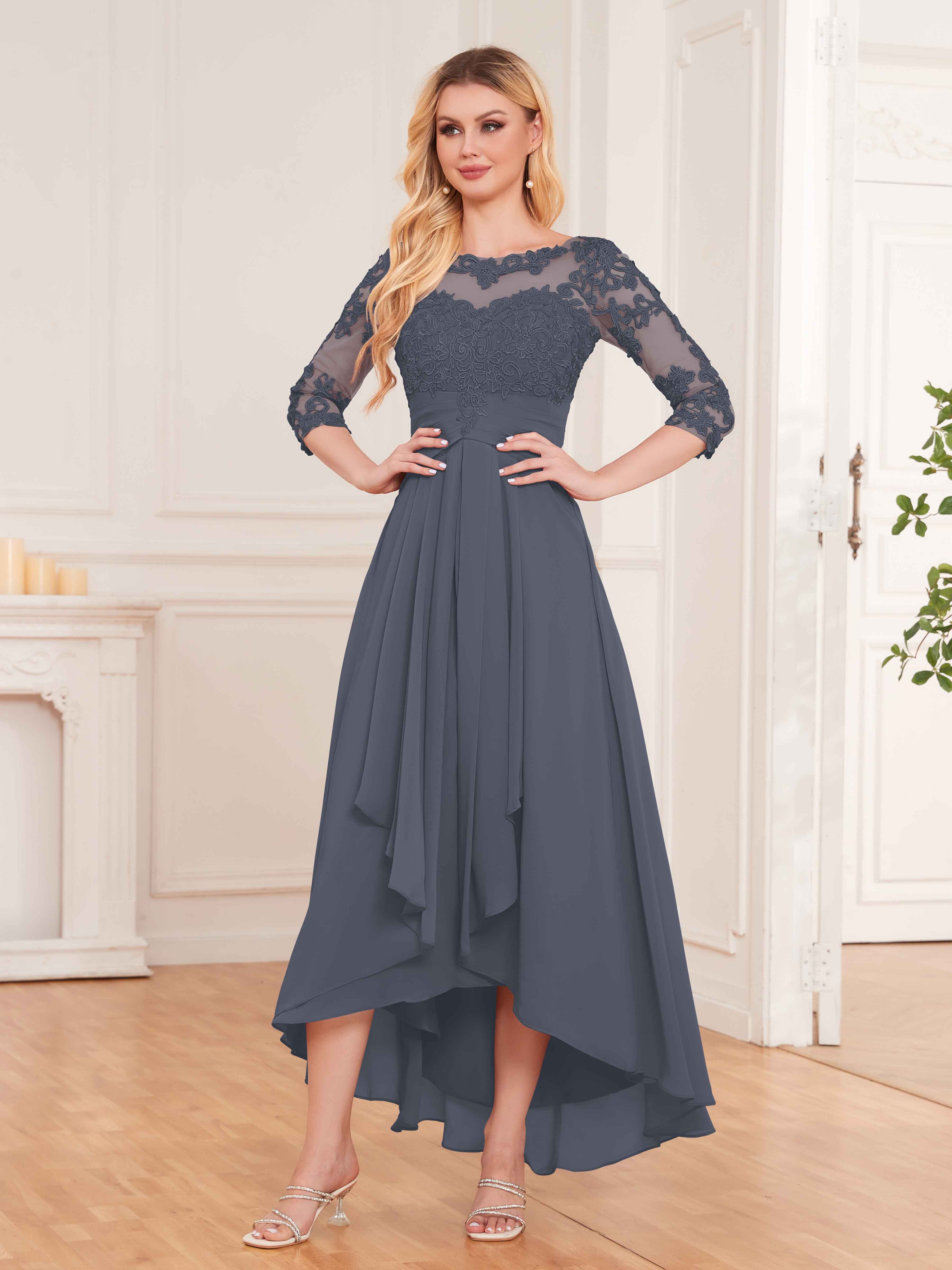 Emersyn Charming Keyhole Asymmetrical Lace Chiffon Bridesmaid Dresses