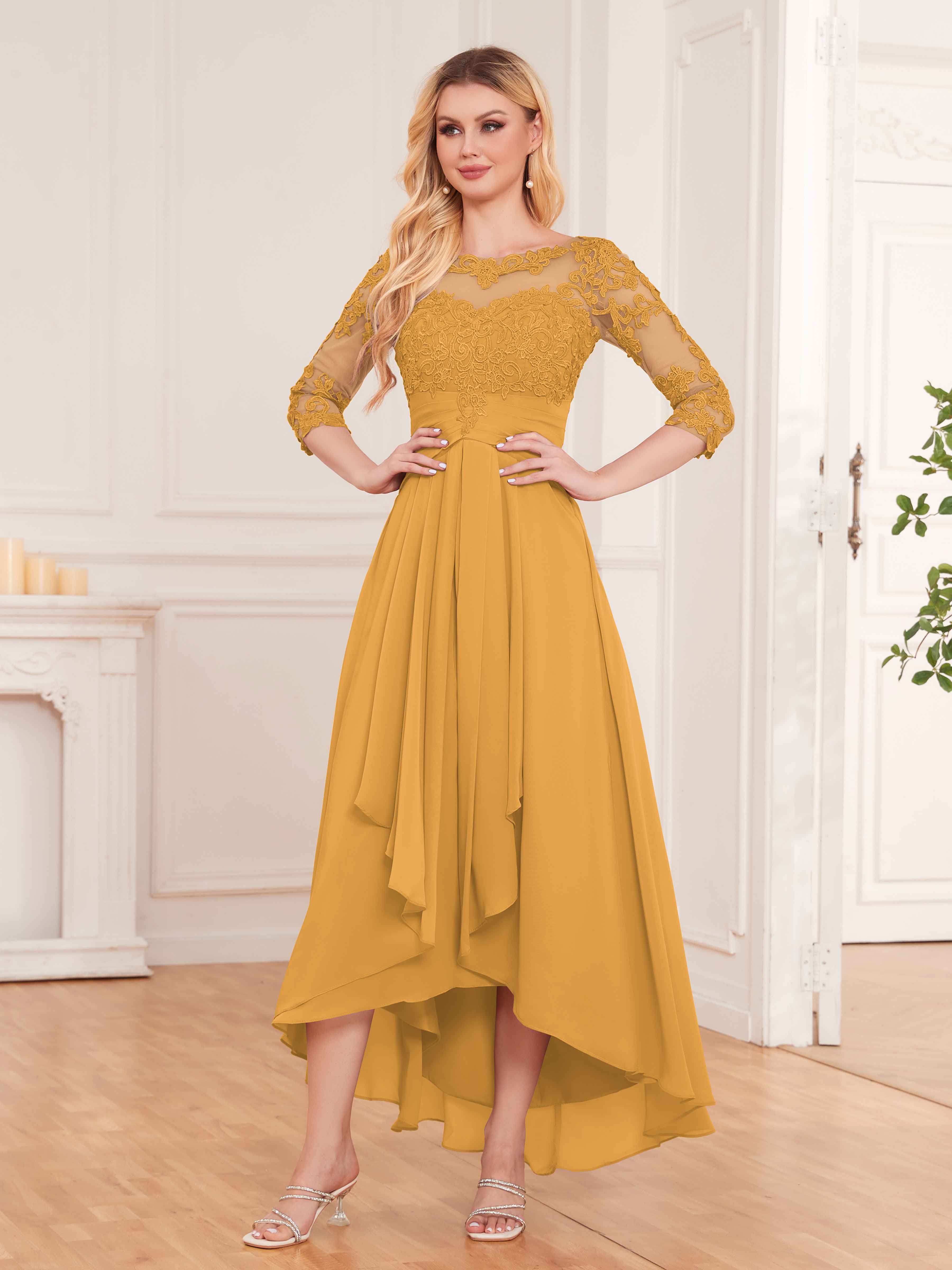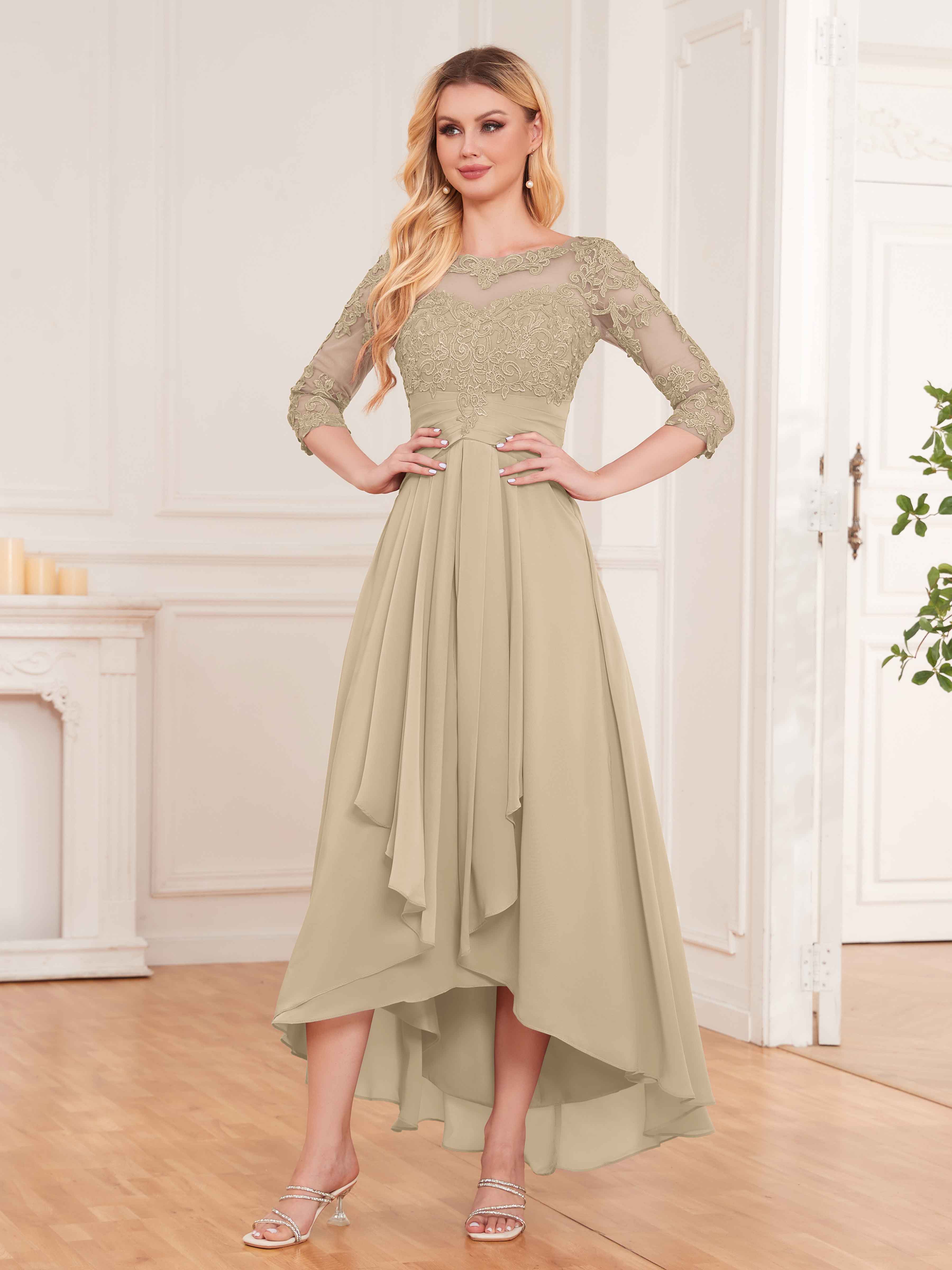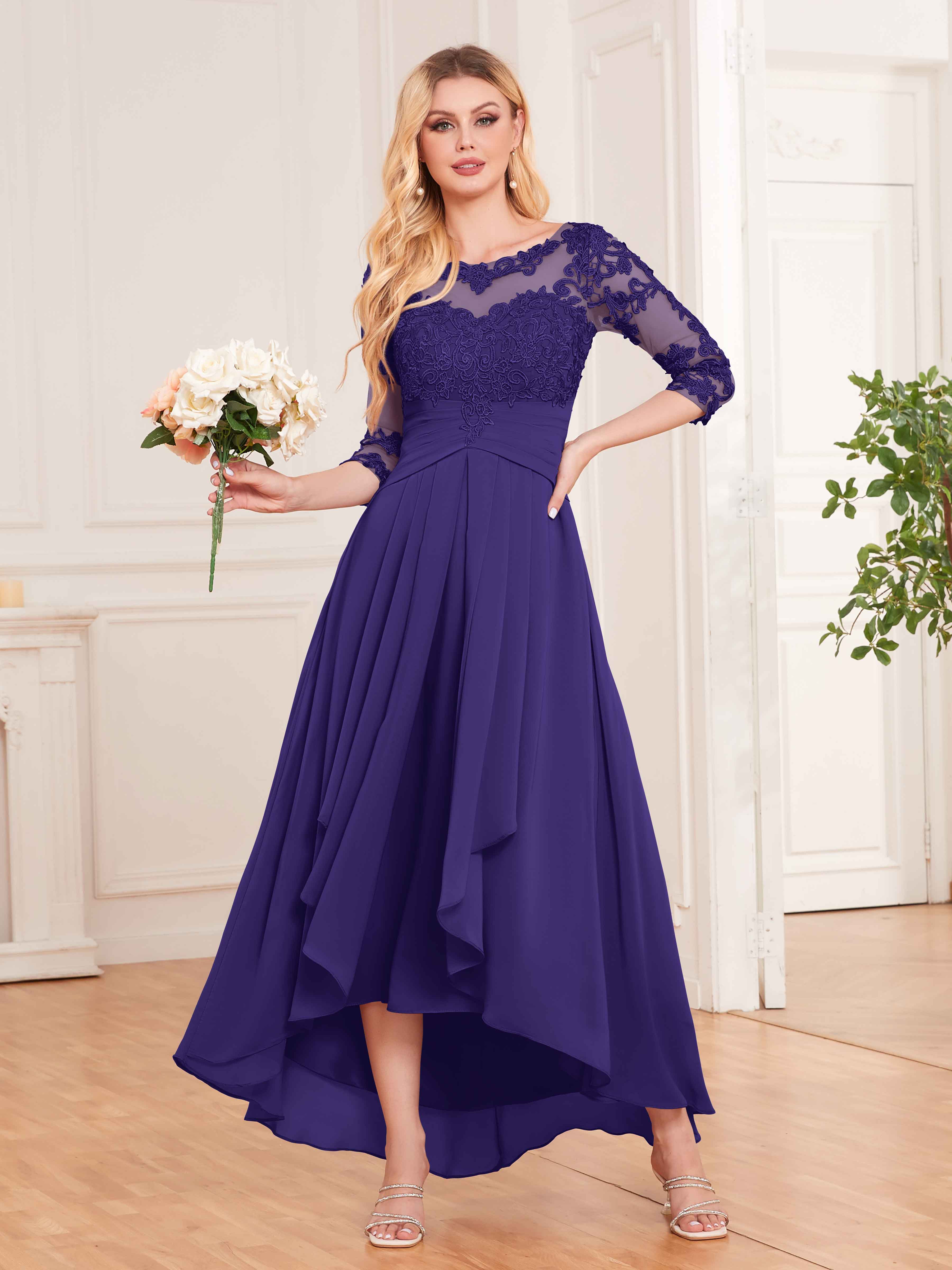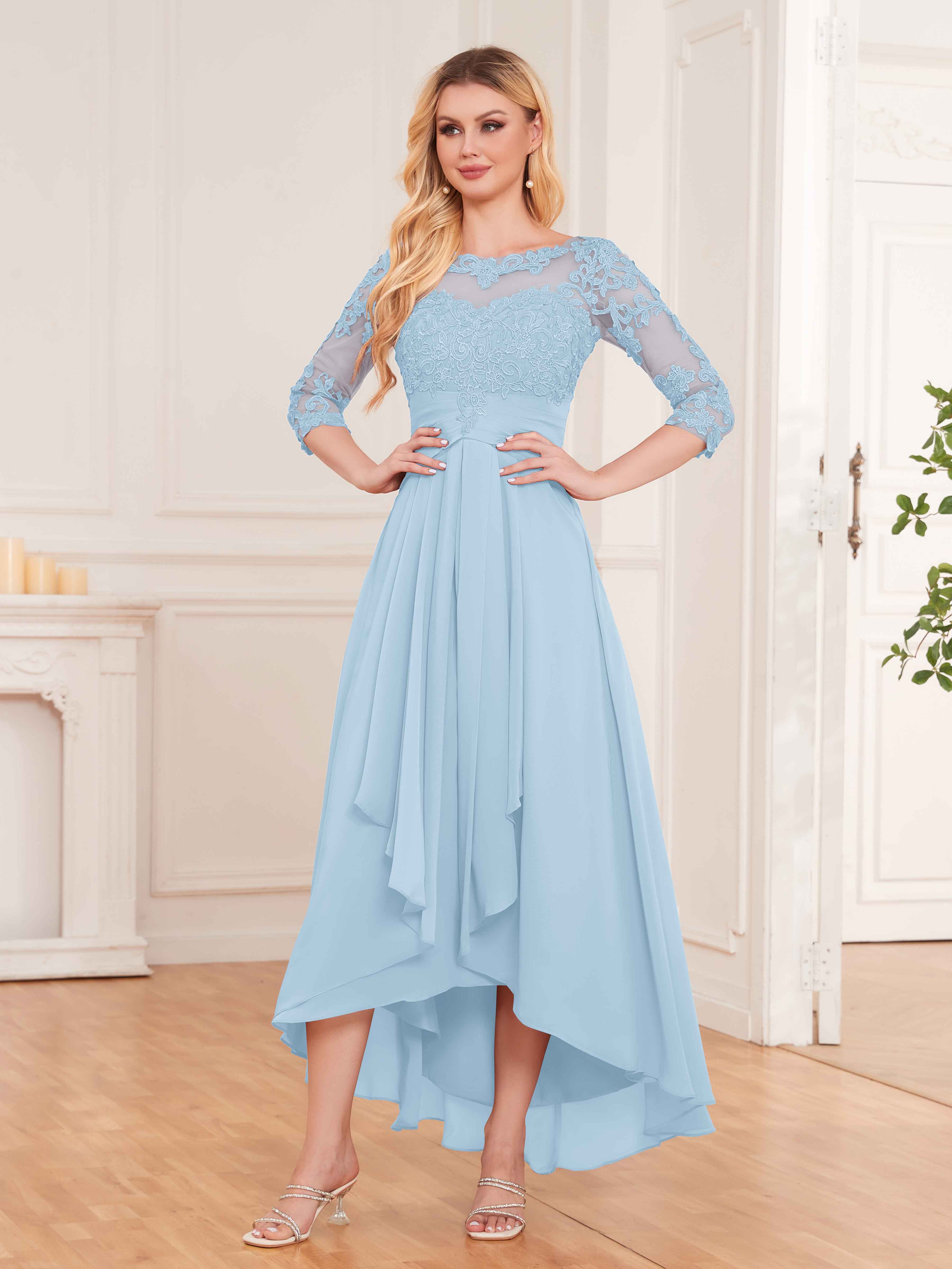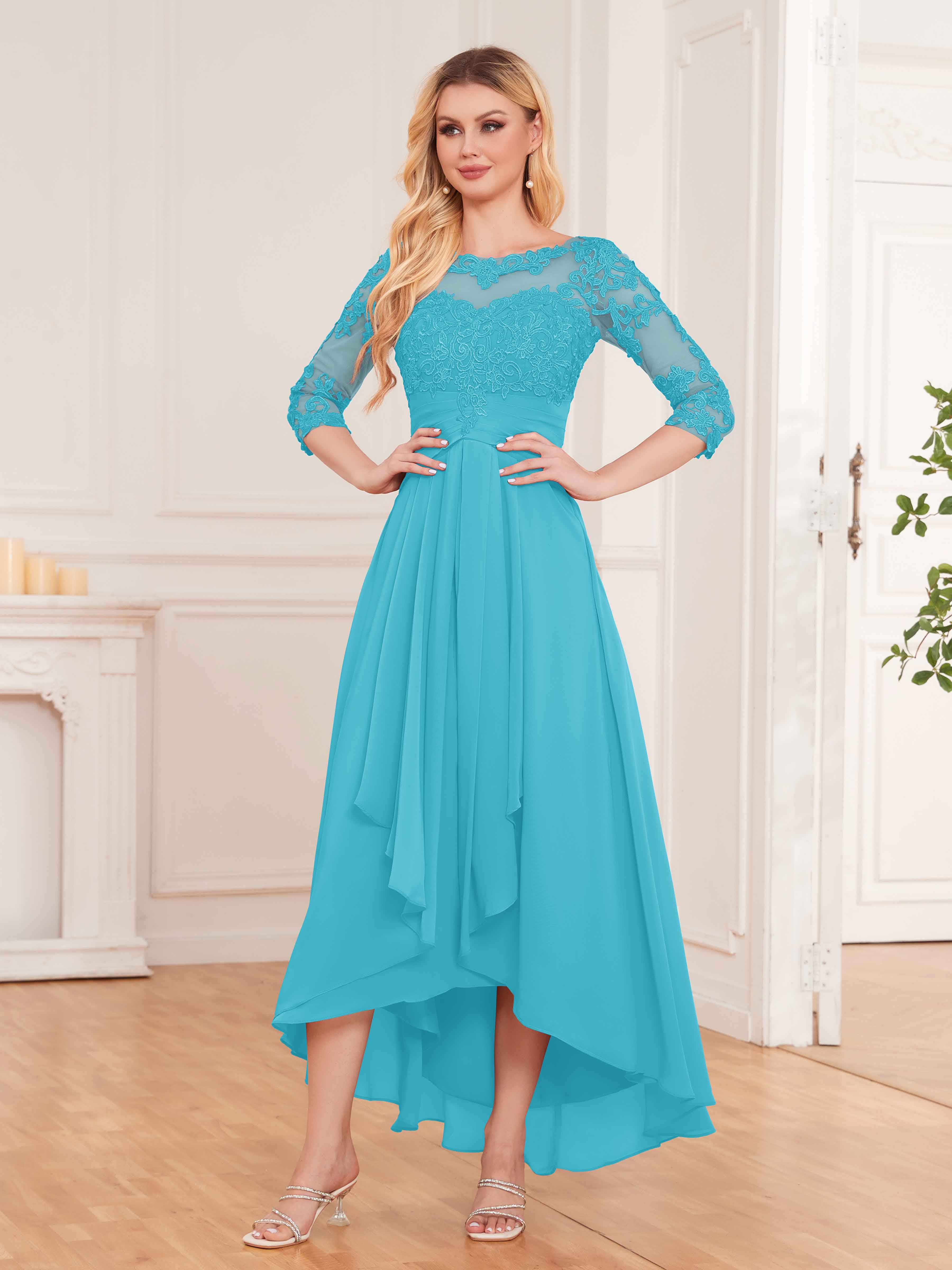 Emersyn Charming Keyhole Asymmetrical Lace Chiffon Bridesmaid Dresses