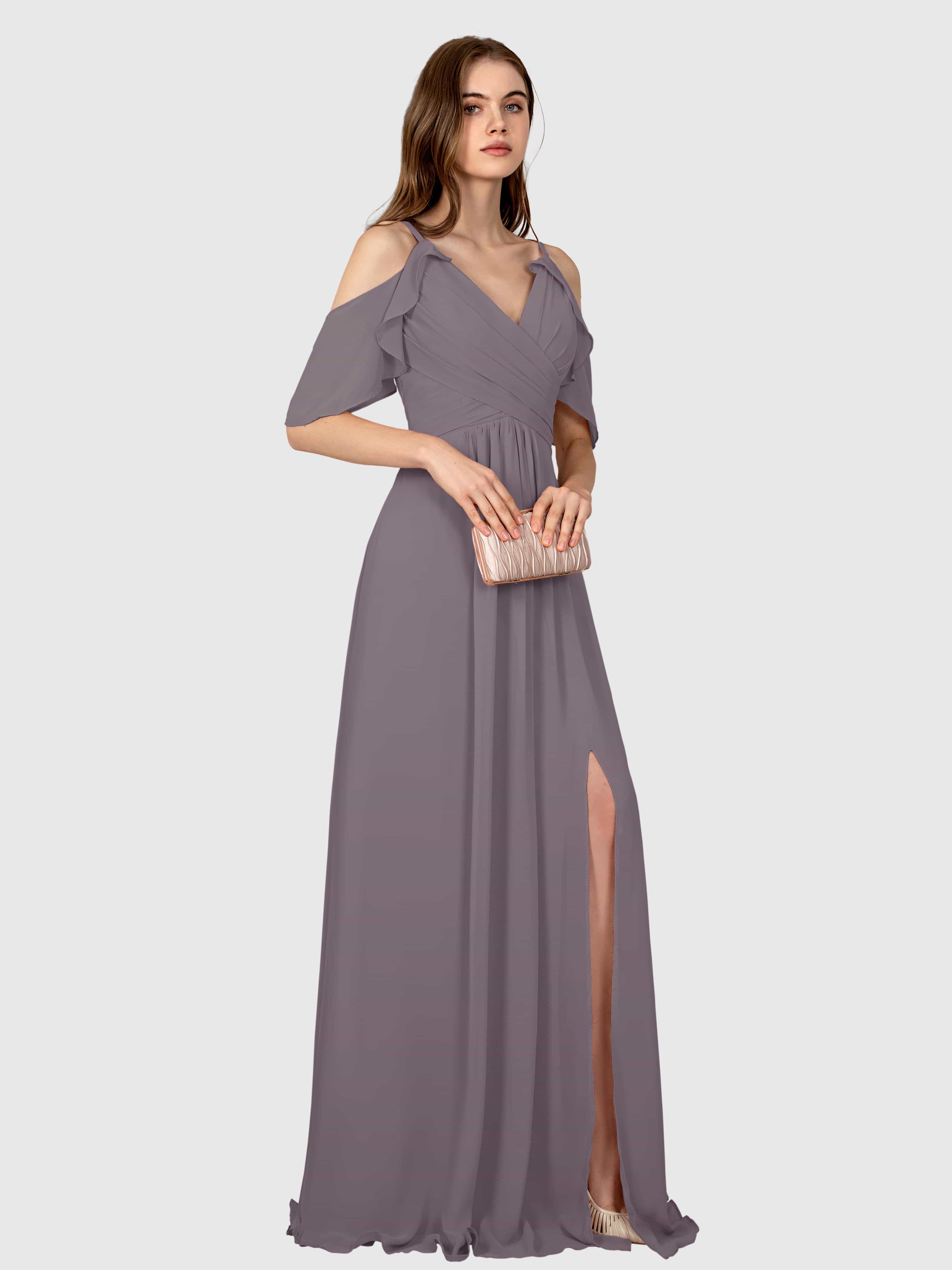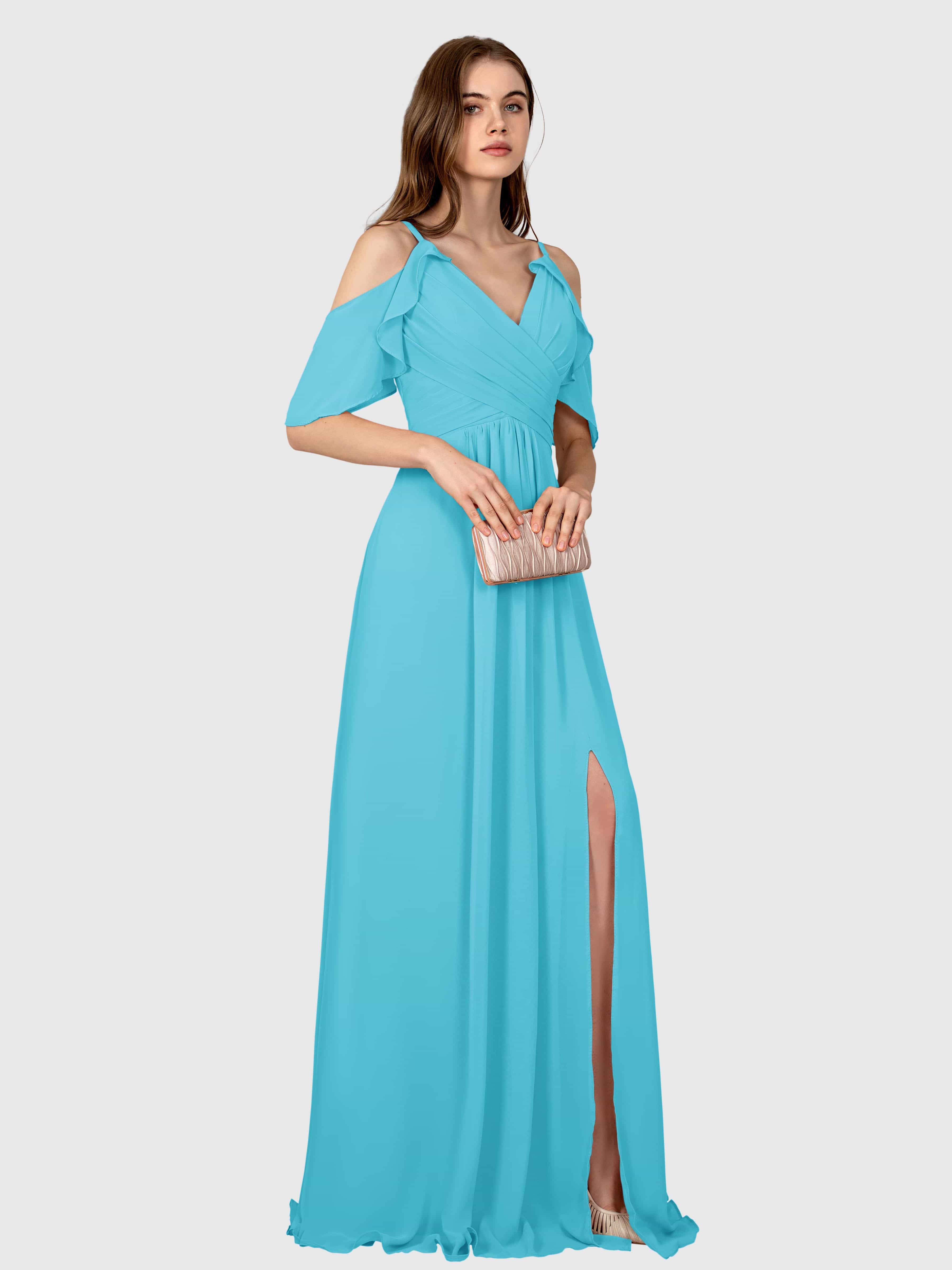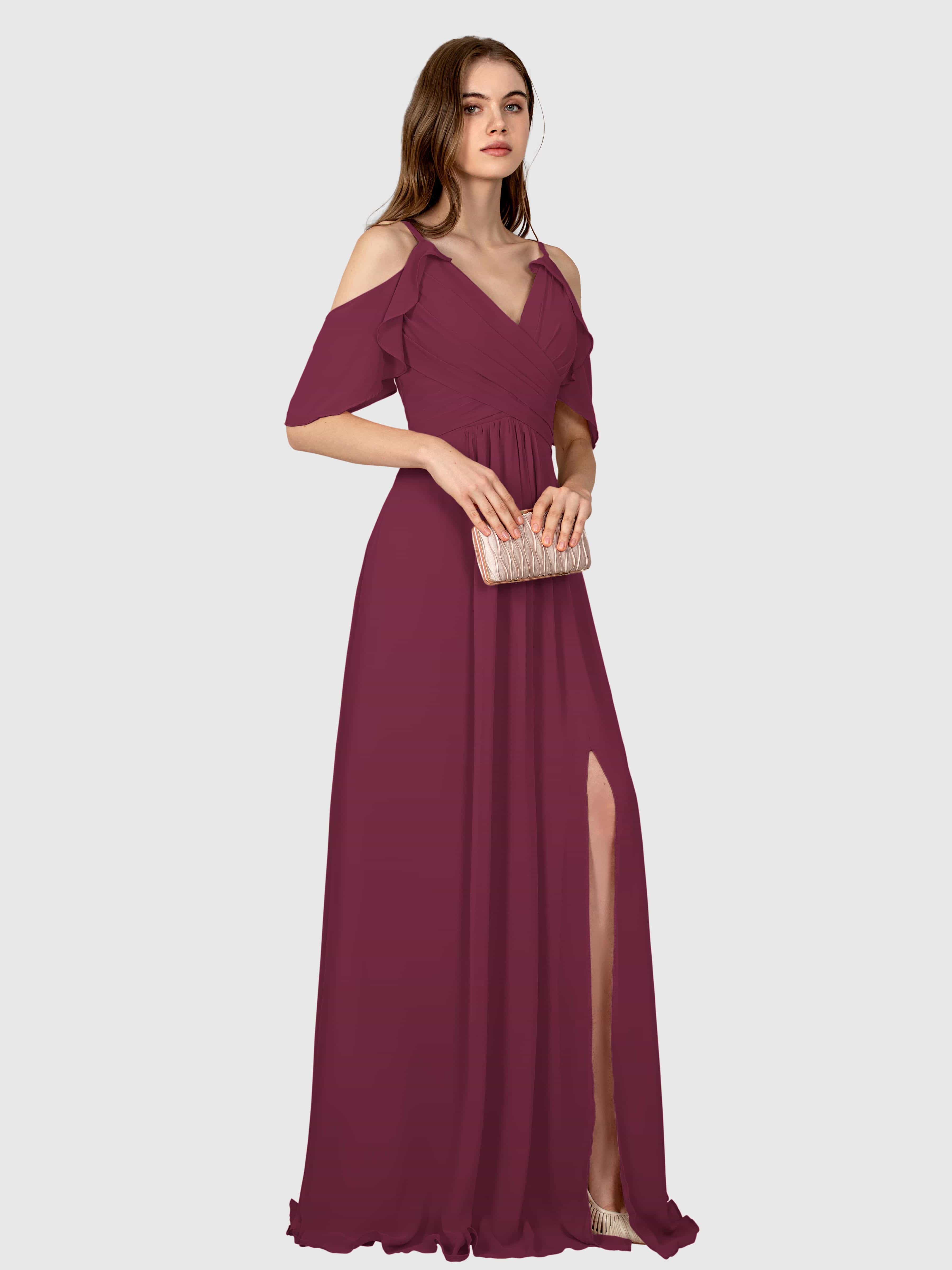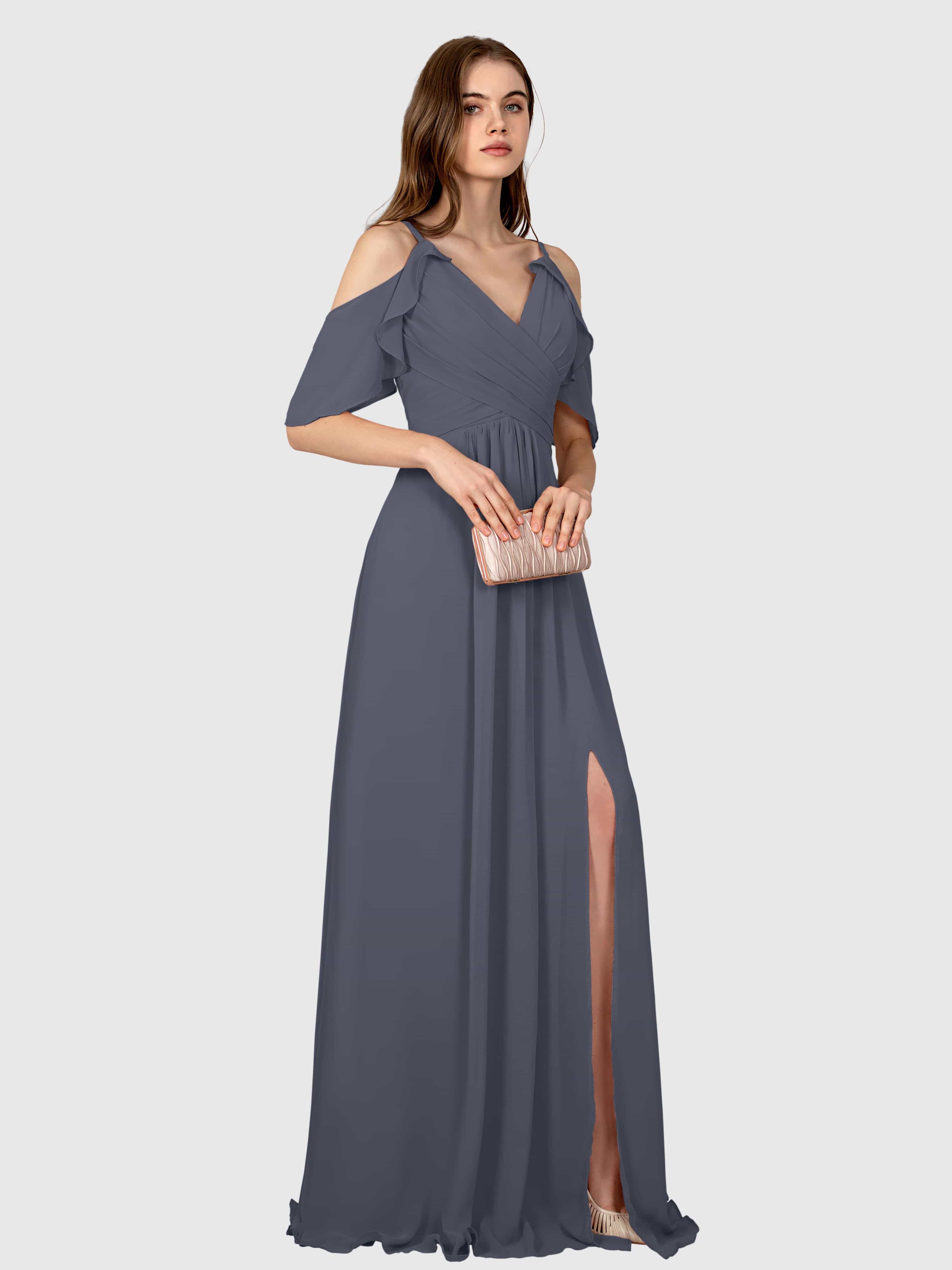 Evelyn Modern Slit Spaghetti Straps Chiffon Bridesmaid Dresses