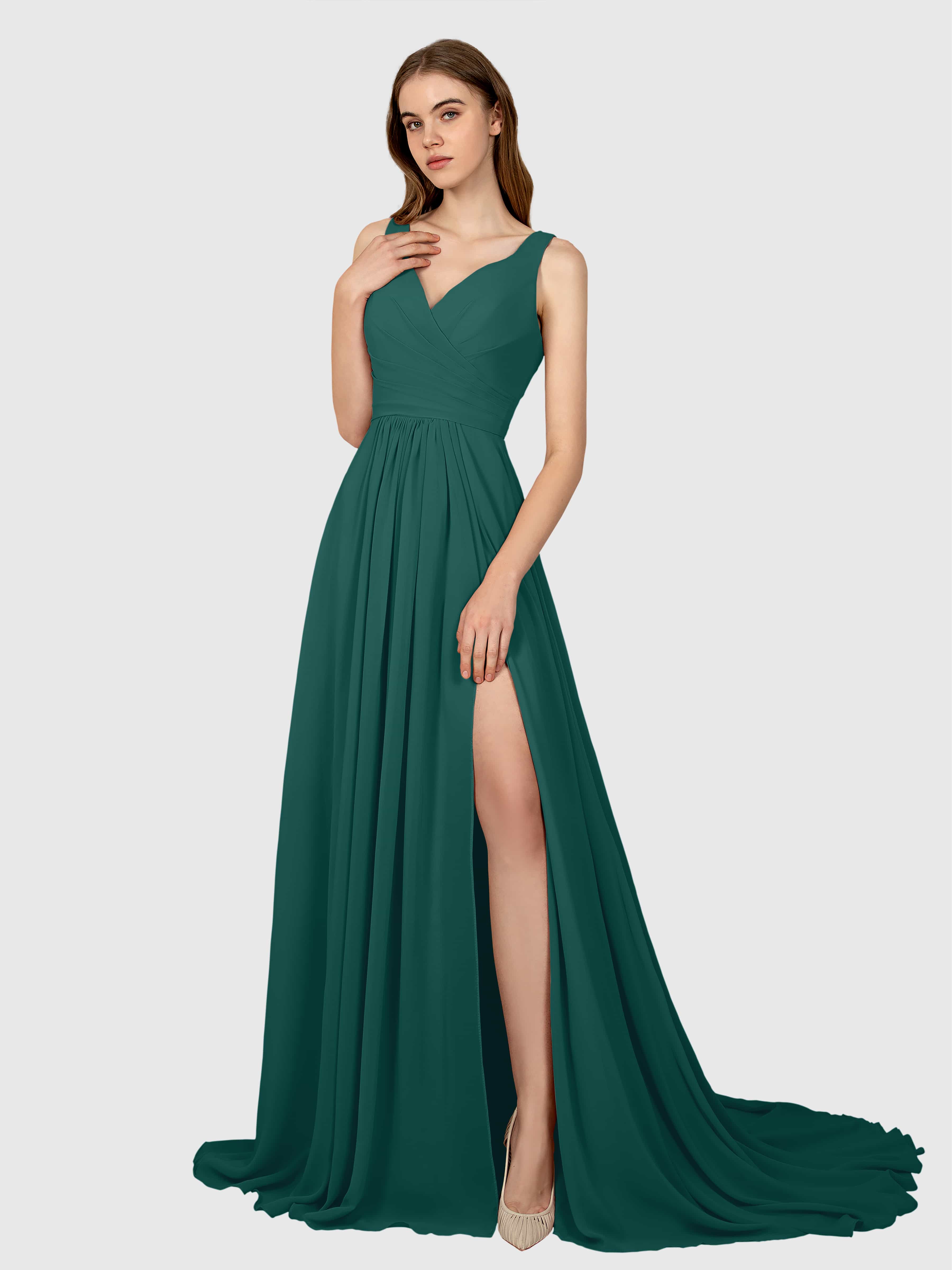 Gianna Flowing Ruched Slit Brush Train Bridesmaid Dresses