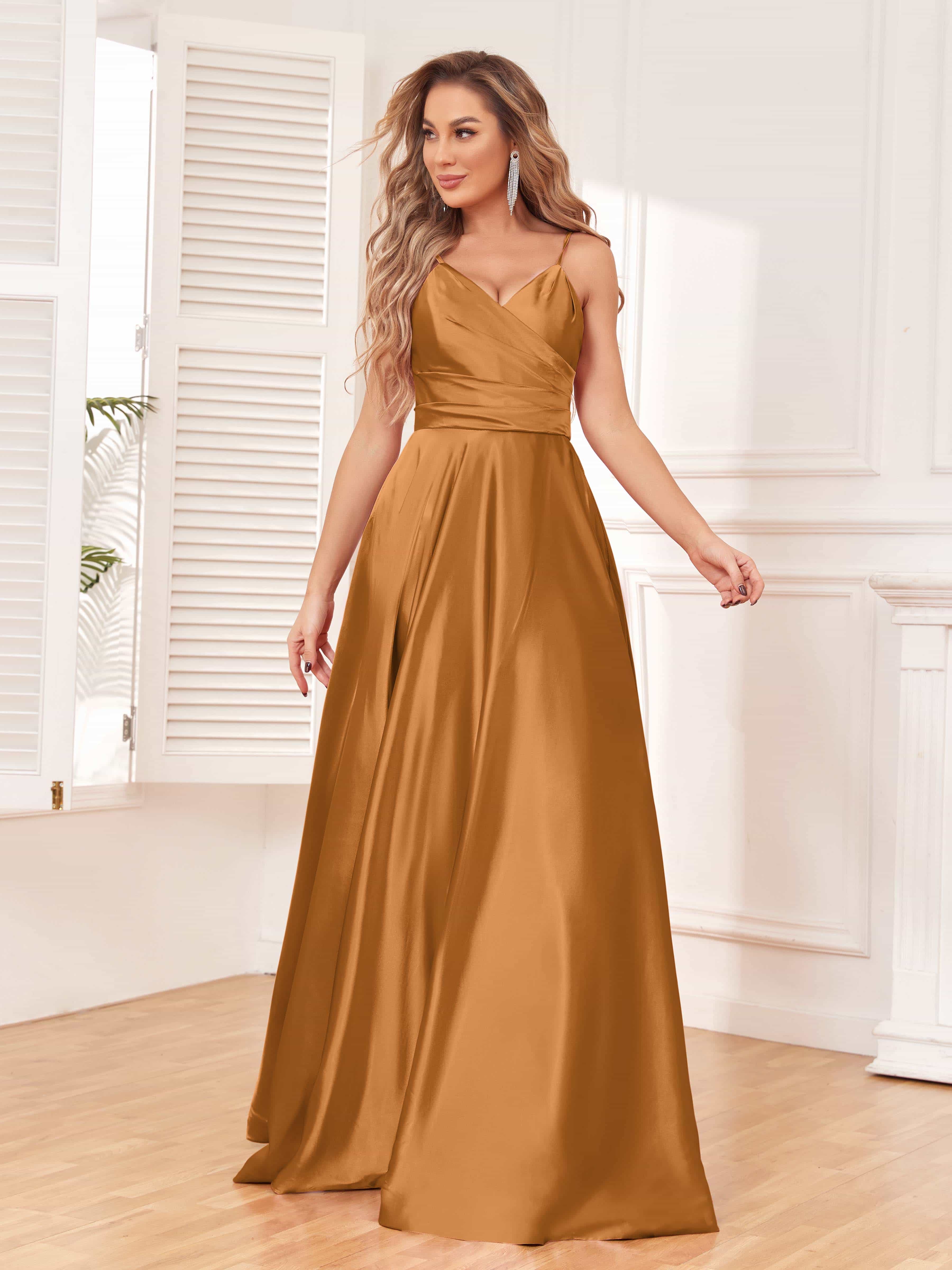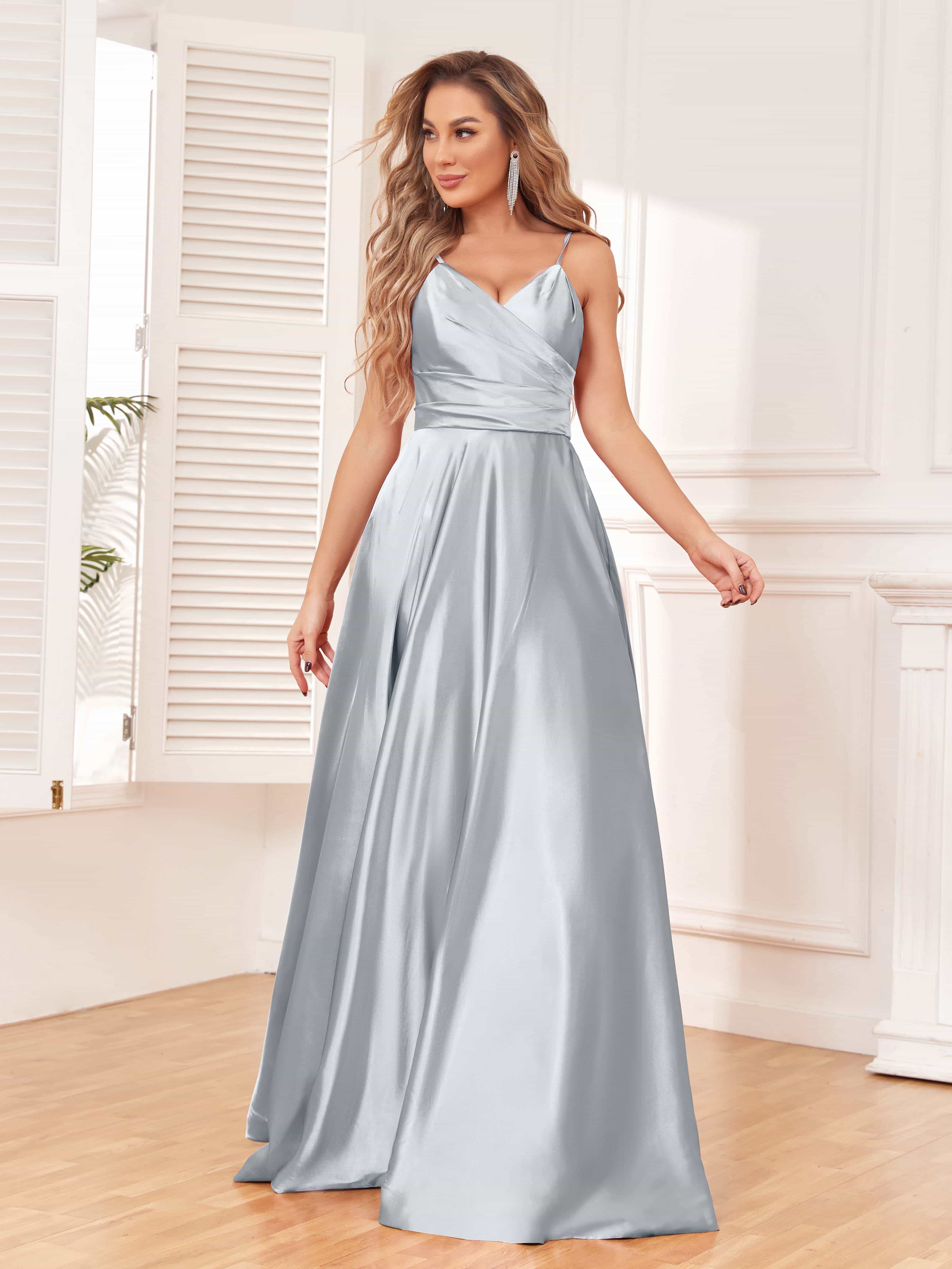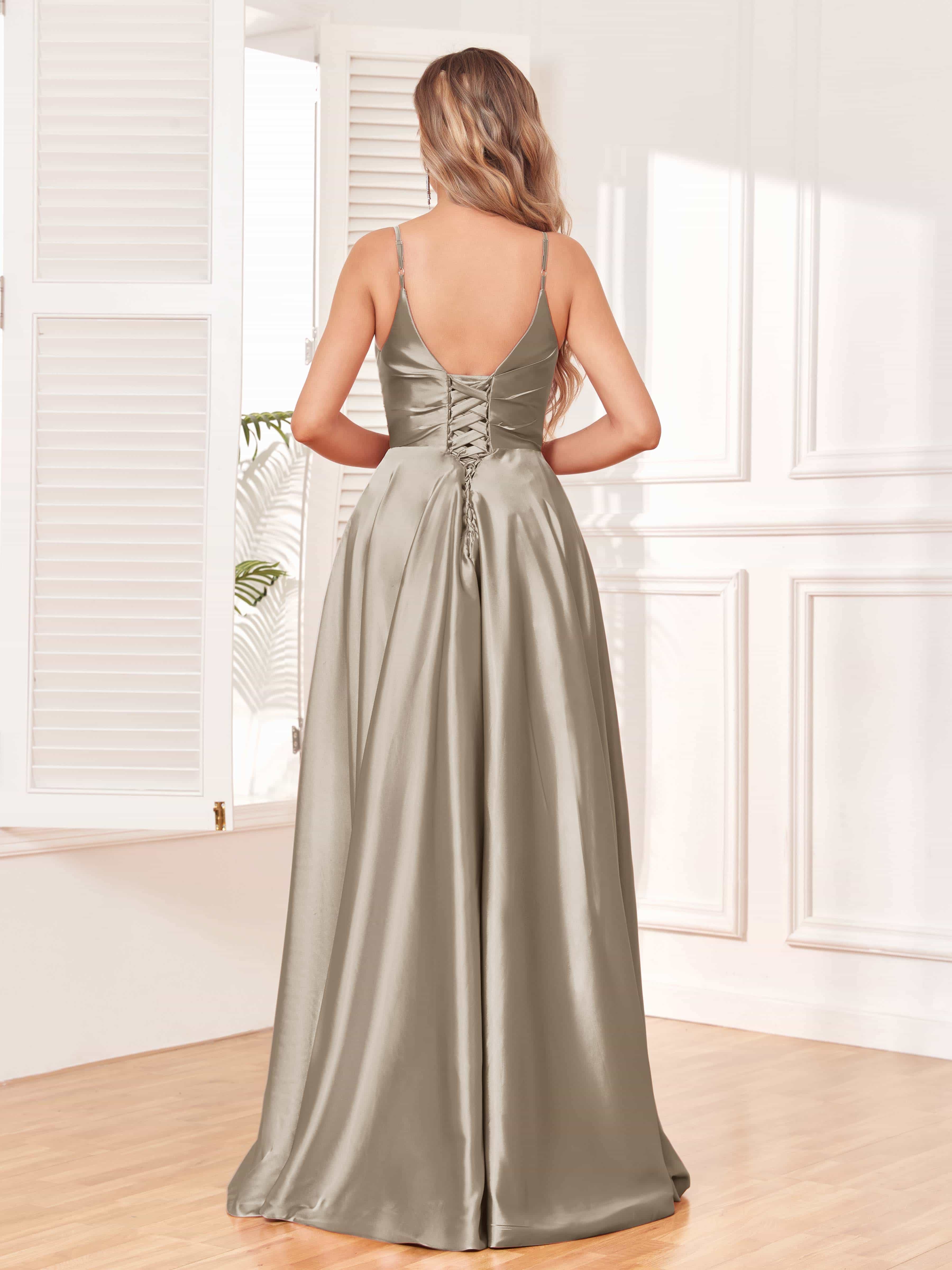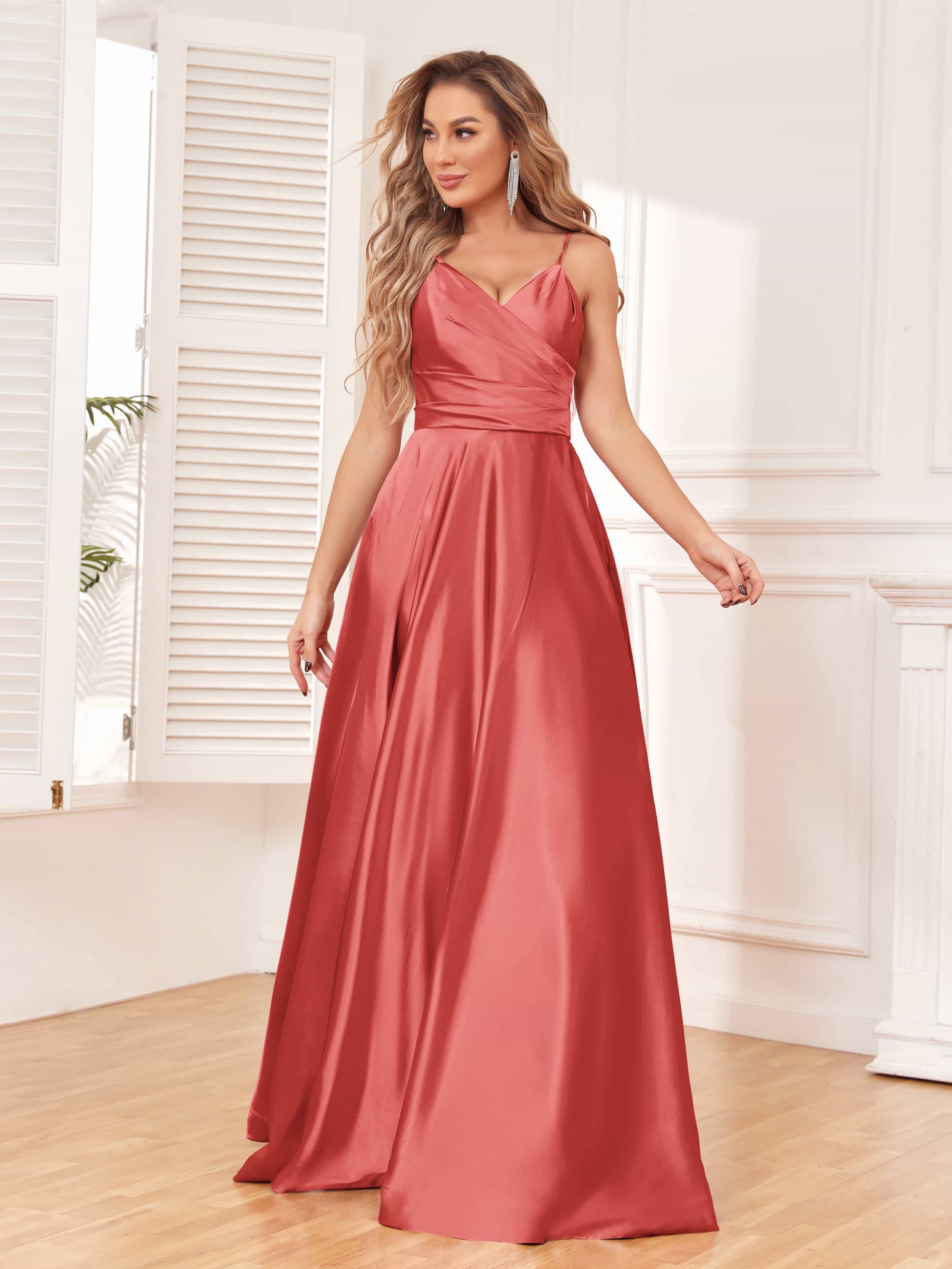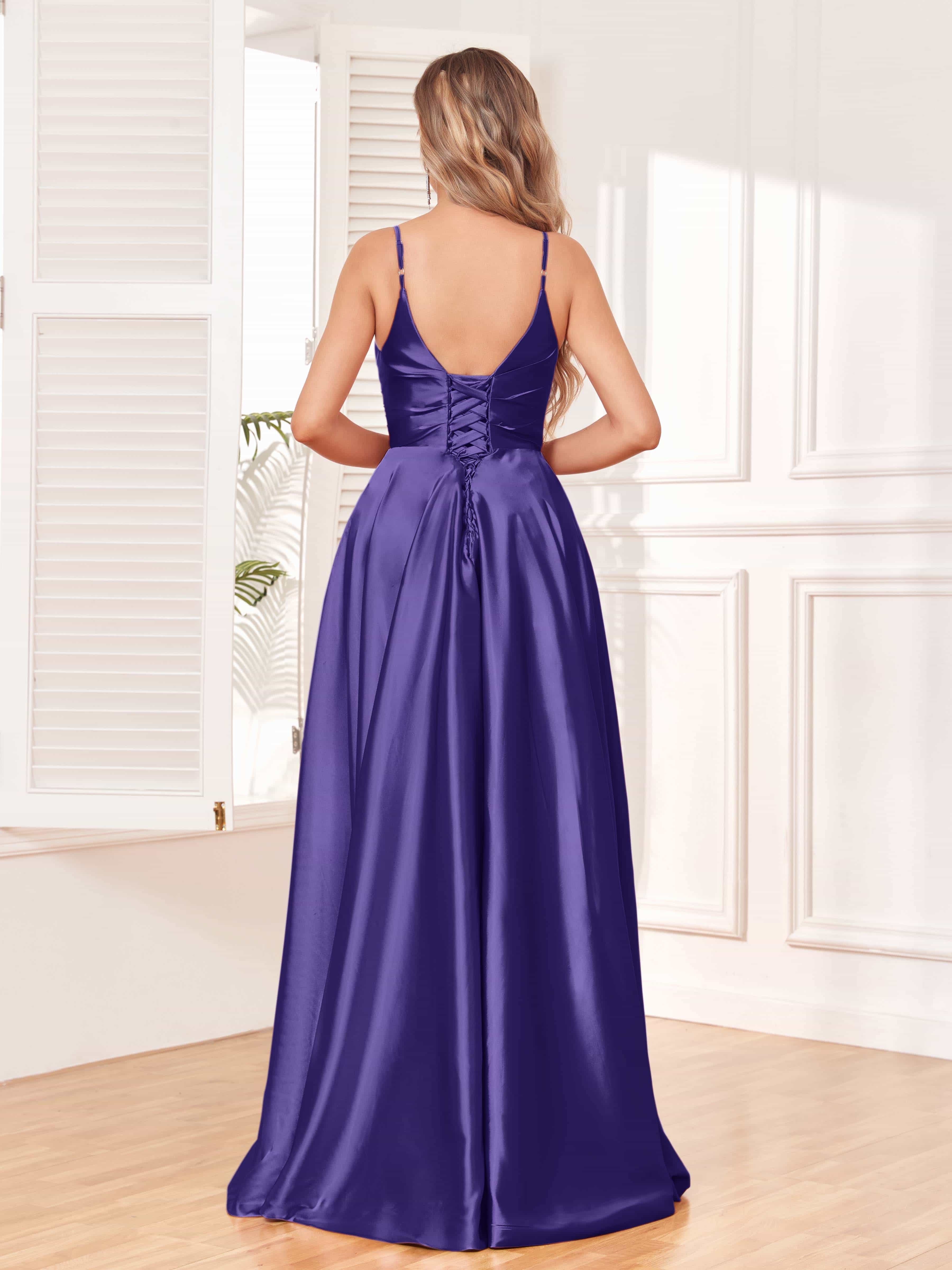Hazel V-Neck Crossed Straps Slit Satin Dresses