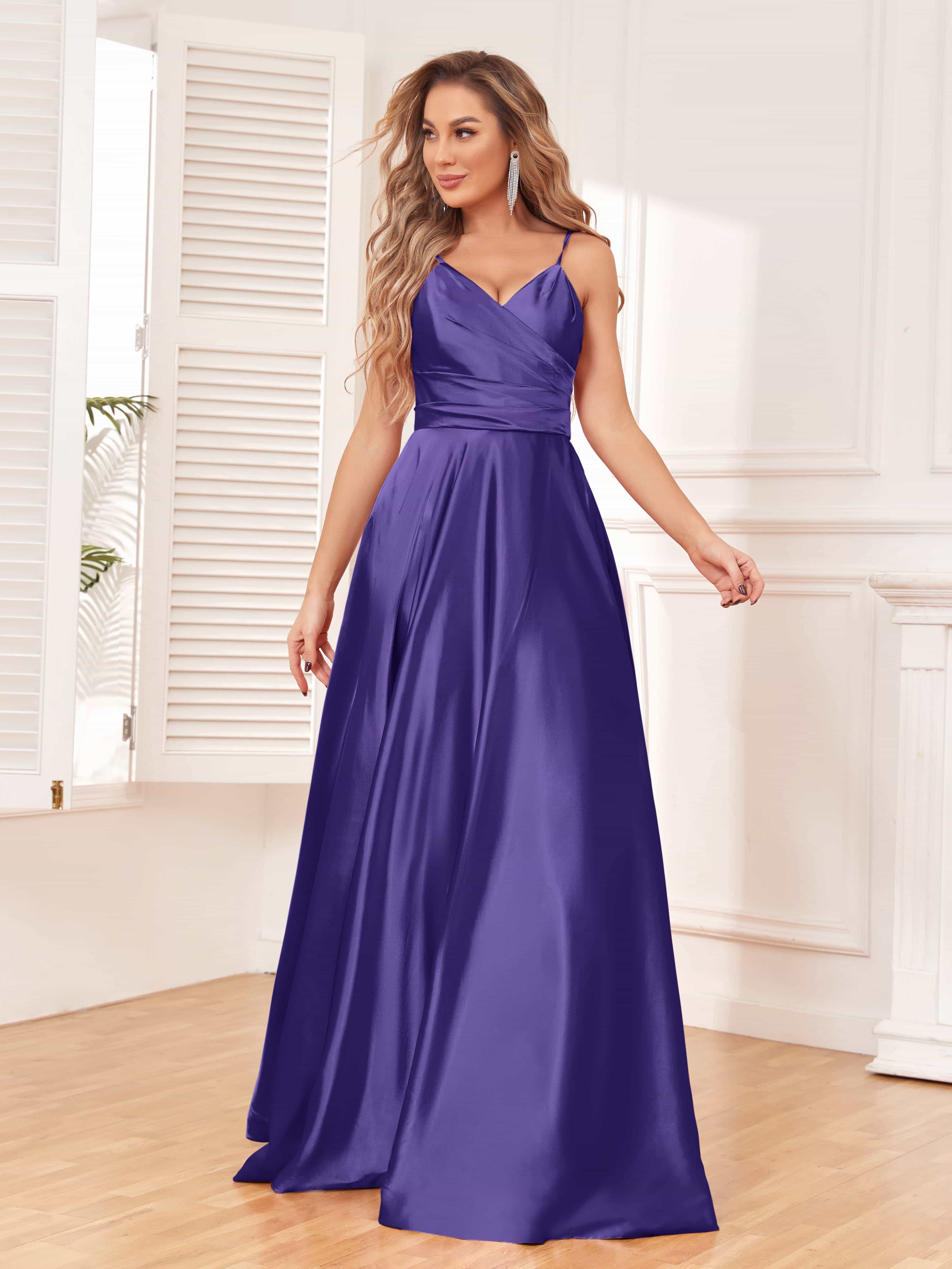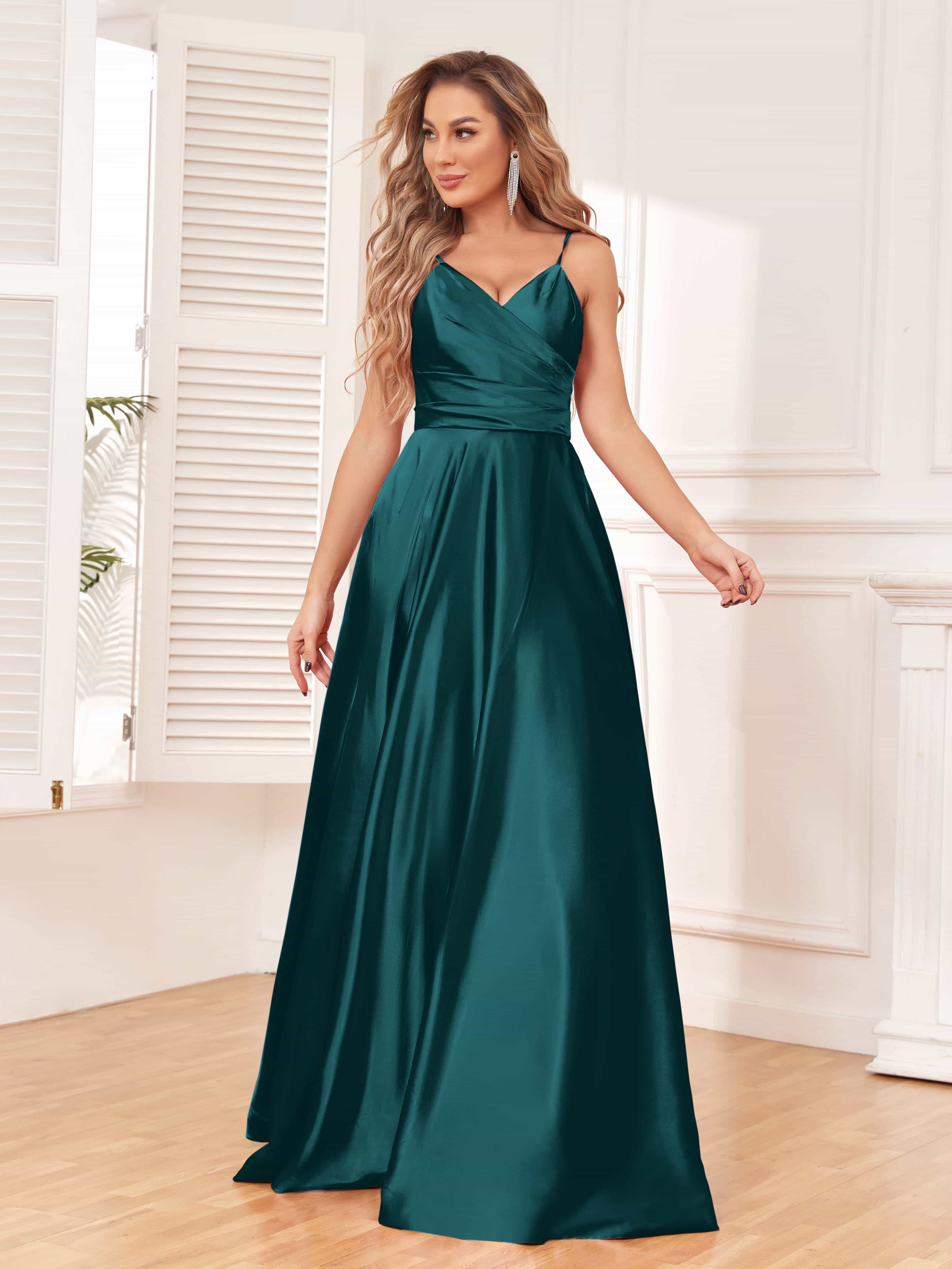 Look and feel timeless in this Hazel! Featuring an A-line silhouette, stretch satin fabric, V-neck neckline, ruched embellishment, this dress has no shortage of style. With the additional bonus of a fully-lined bodice and skirt, padding, and boning, it's sure to keep you looking your best.