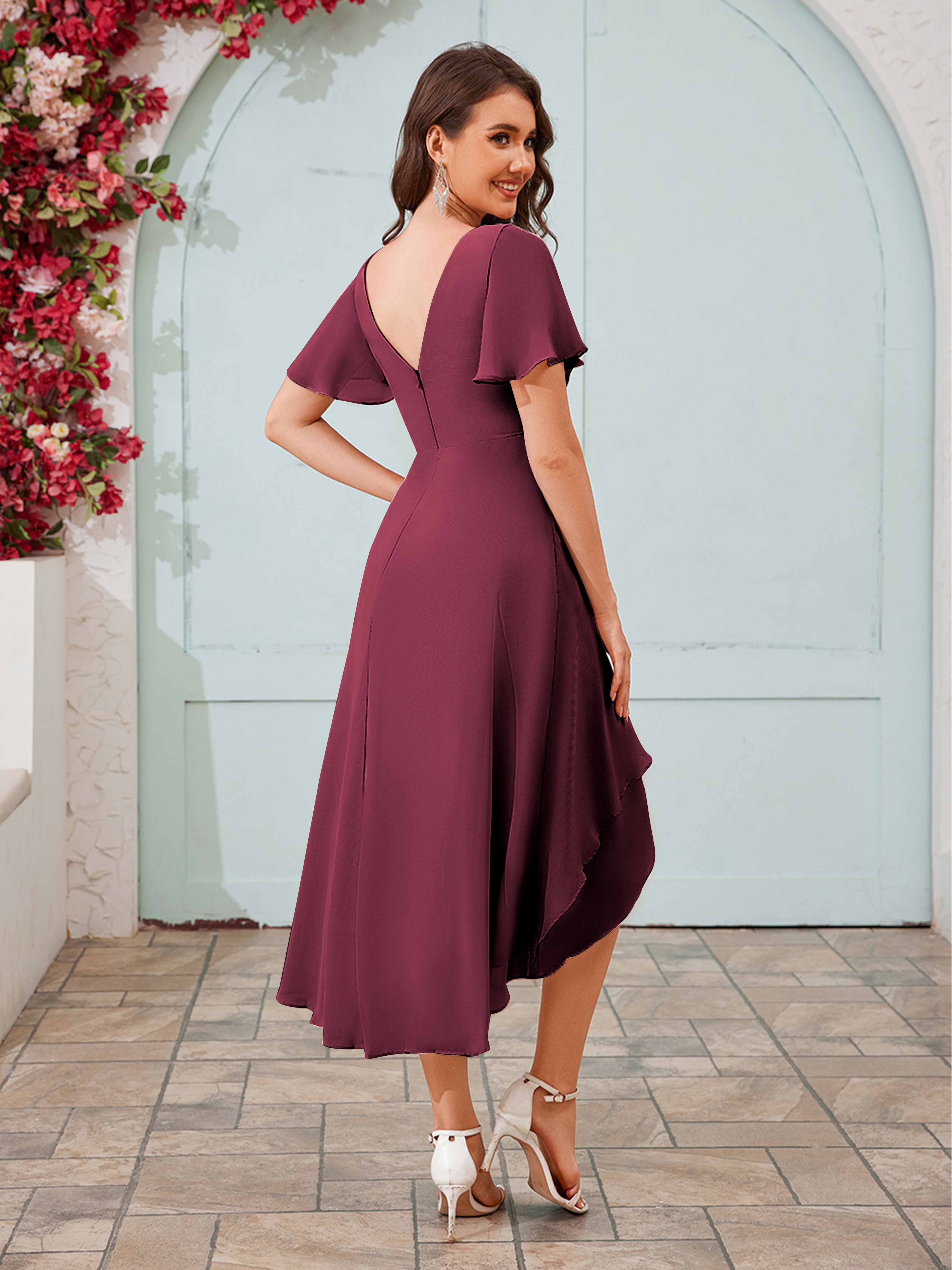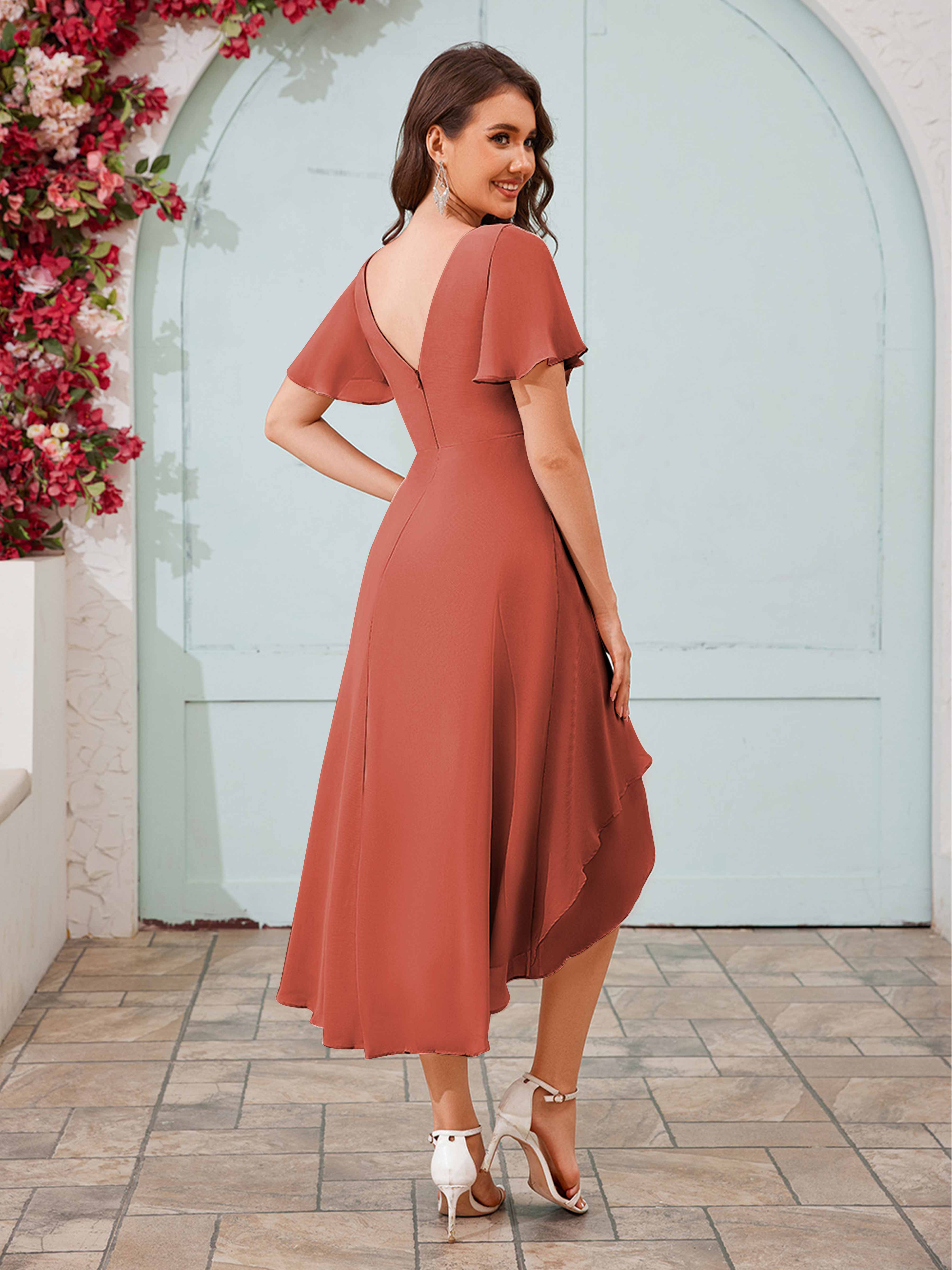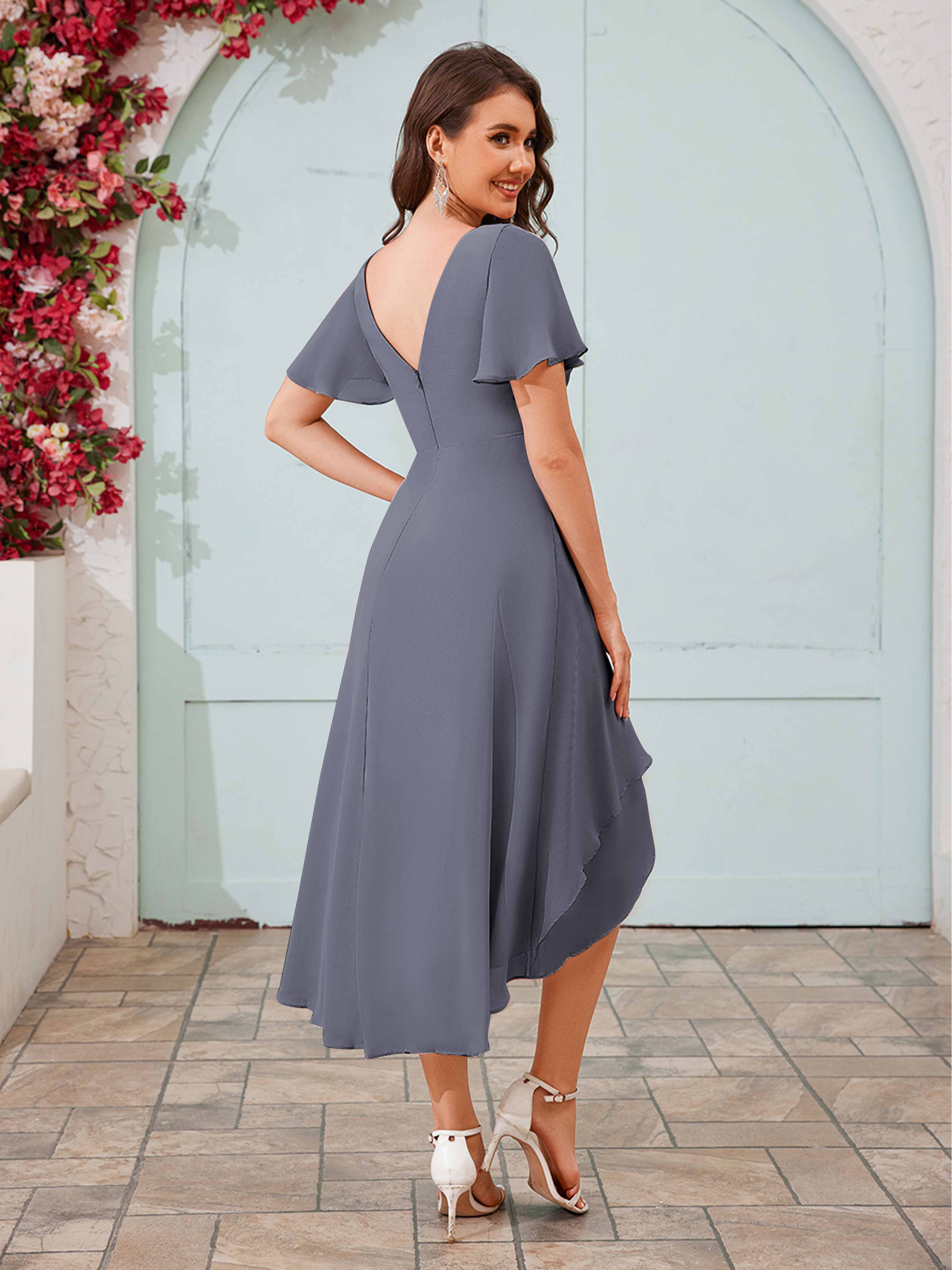 Helen Chic V Neck Ruched High Low Chiffon Bridesmaid Dresses