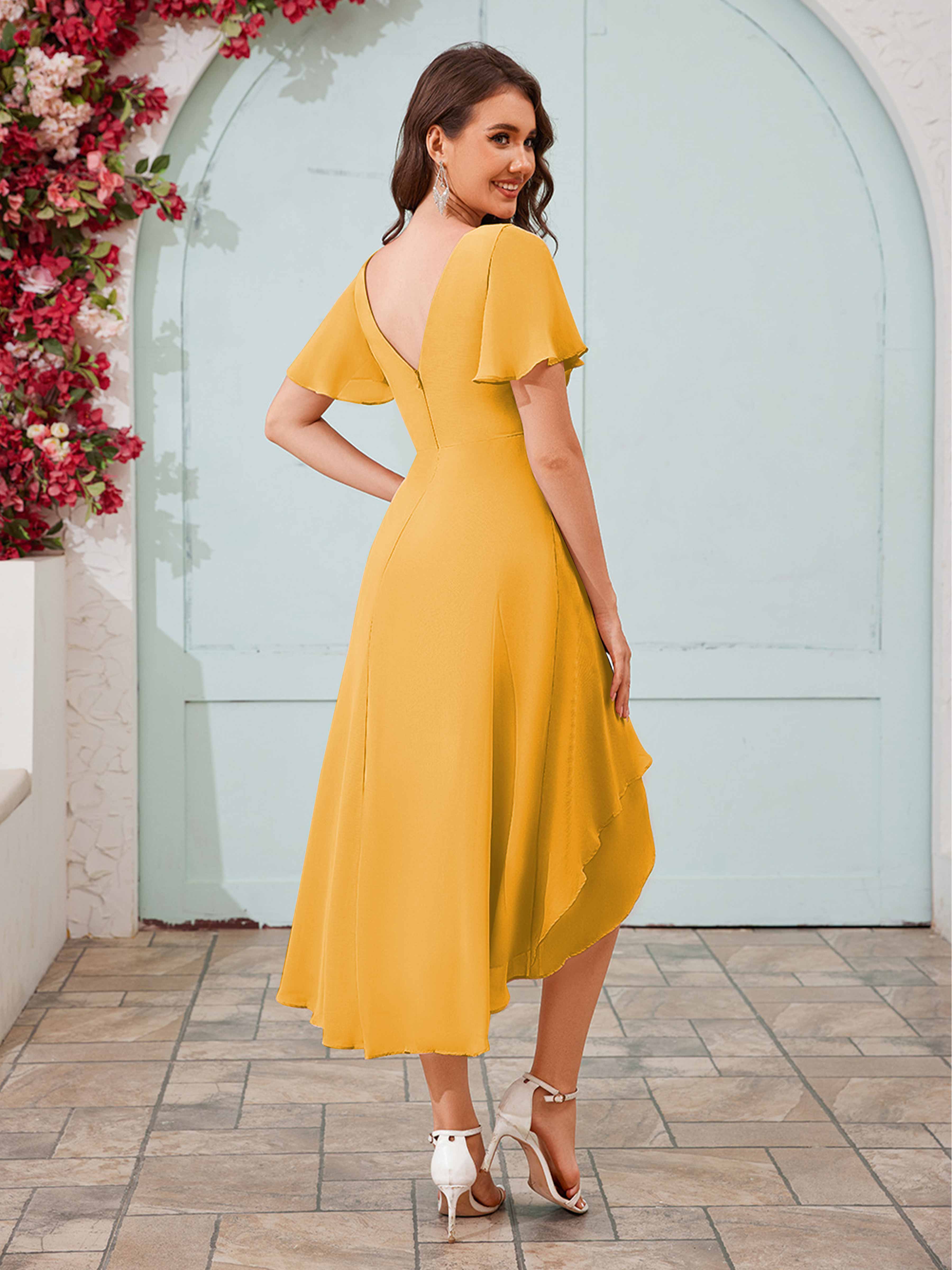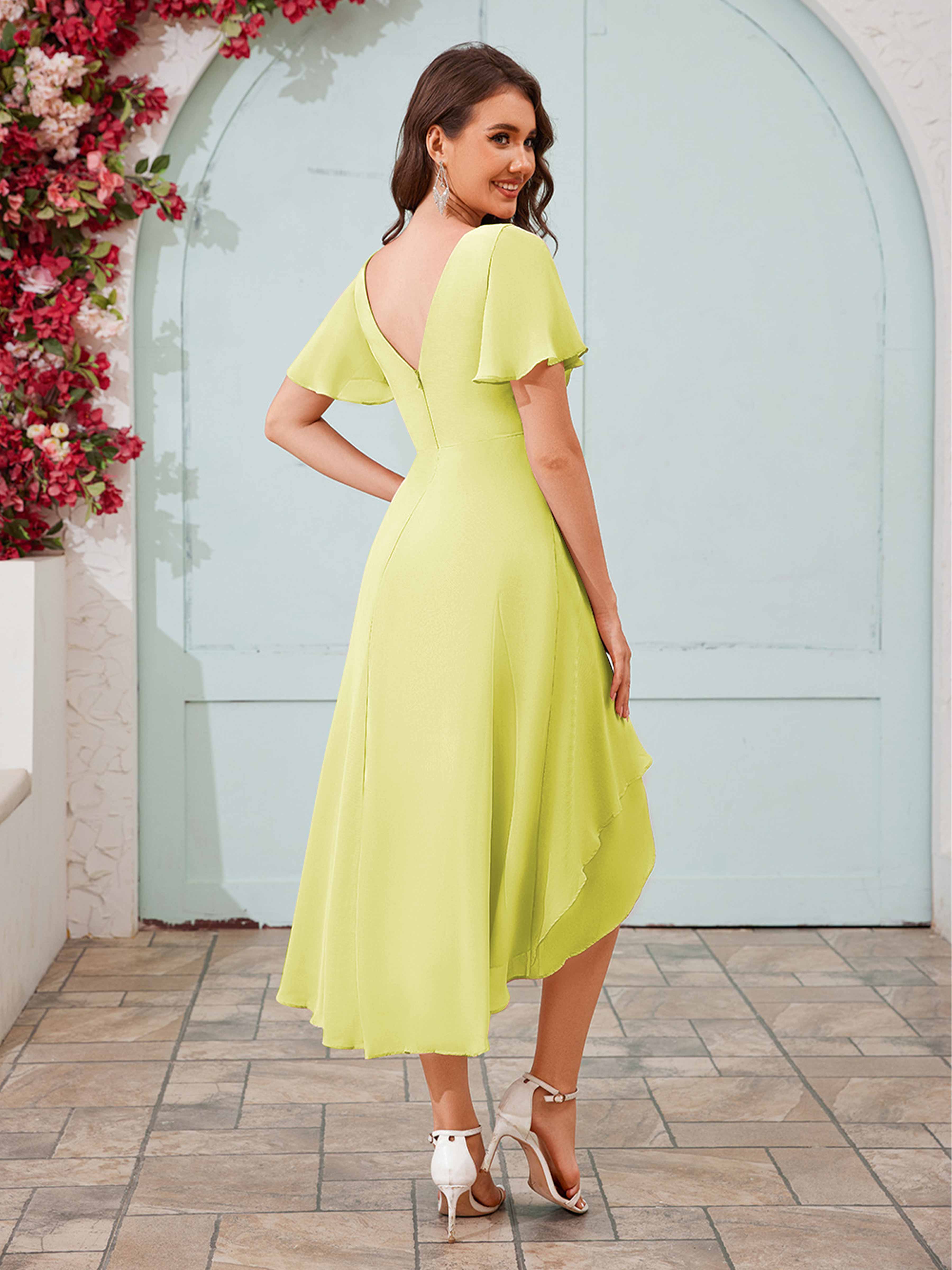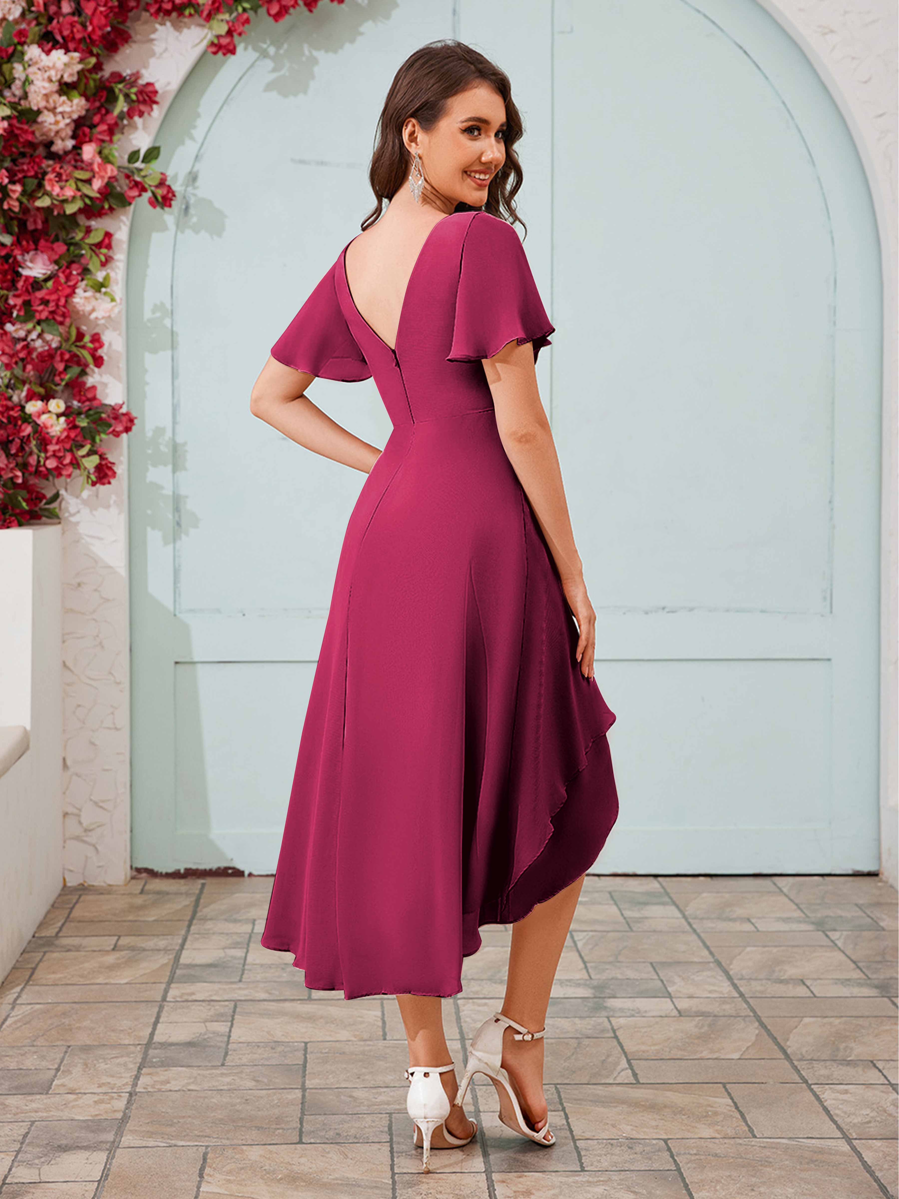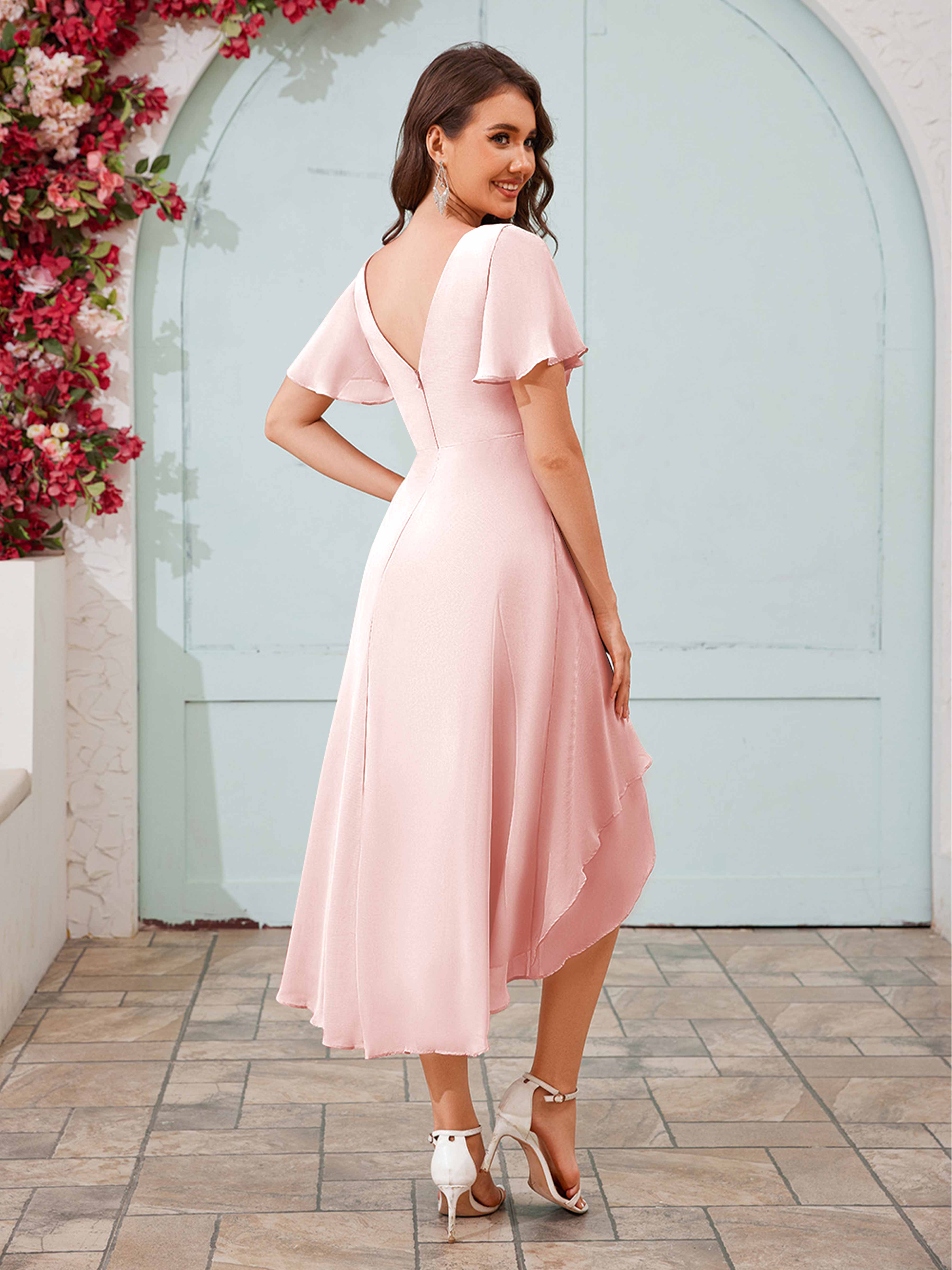 Helen Chic V Neck Ruched High Low Chiffon Bridesmaid Dresses