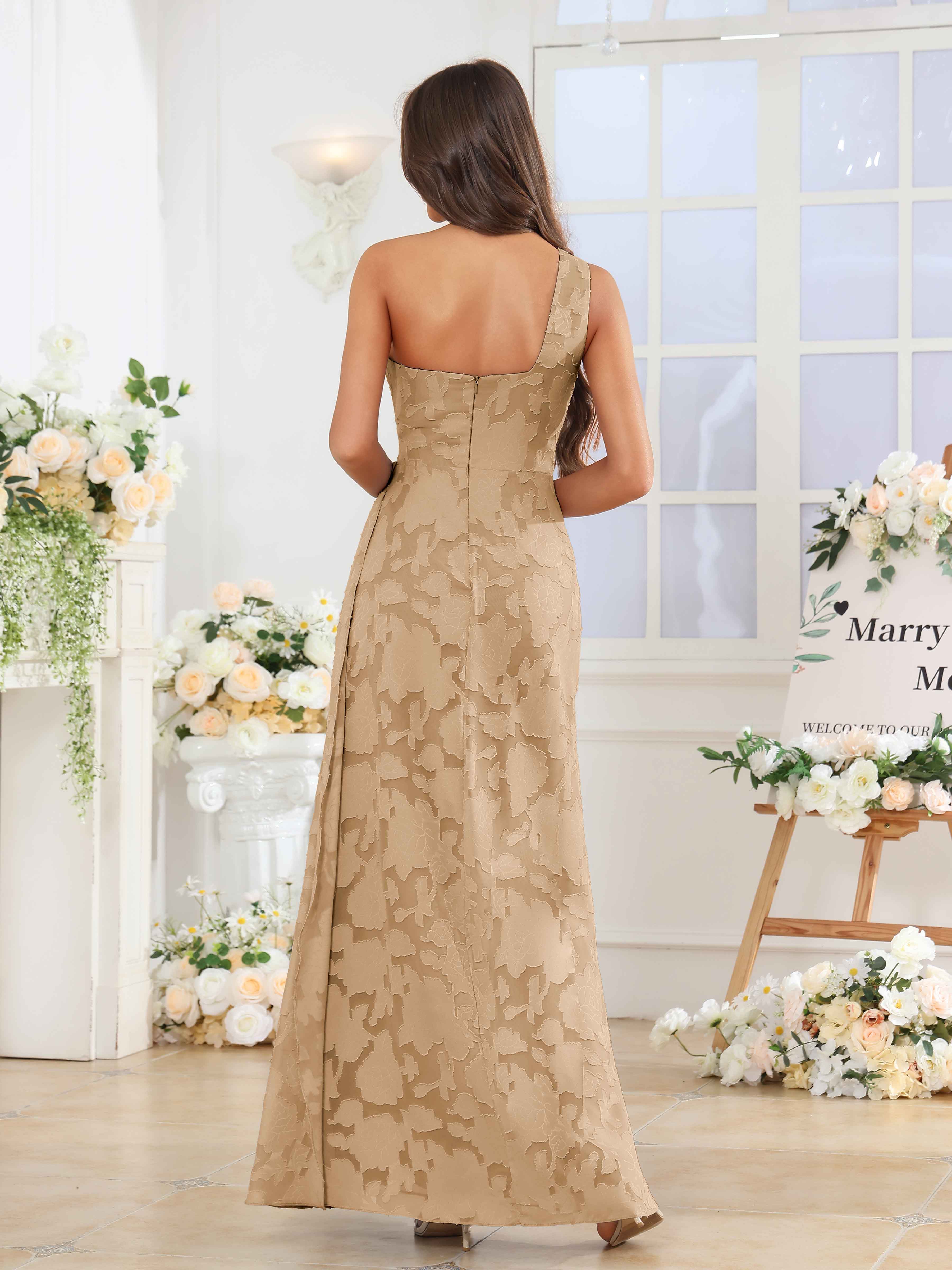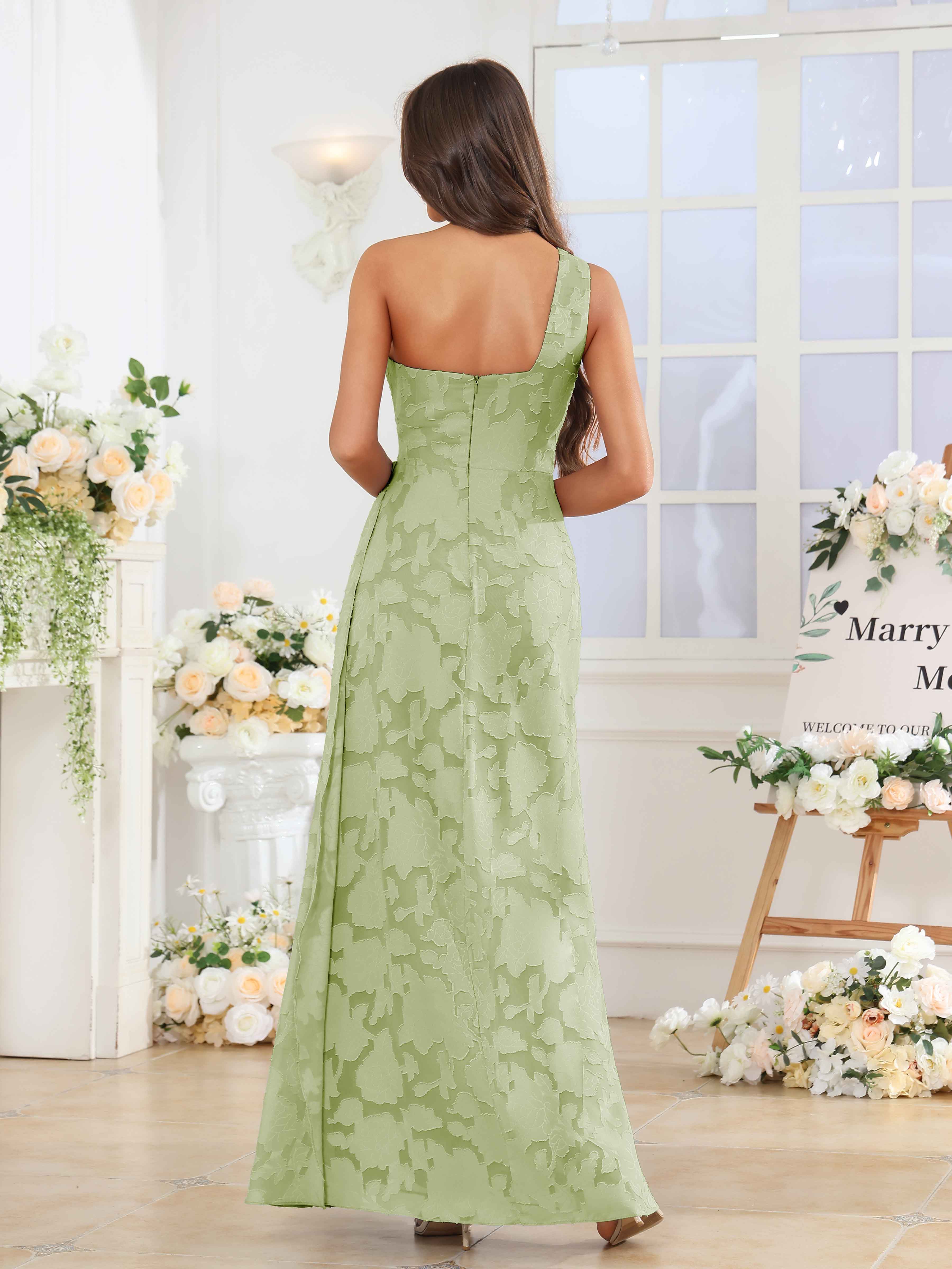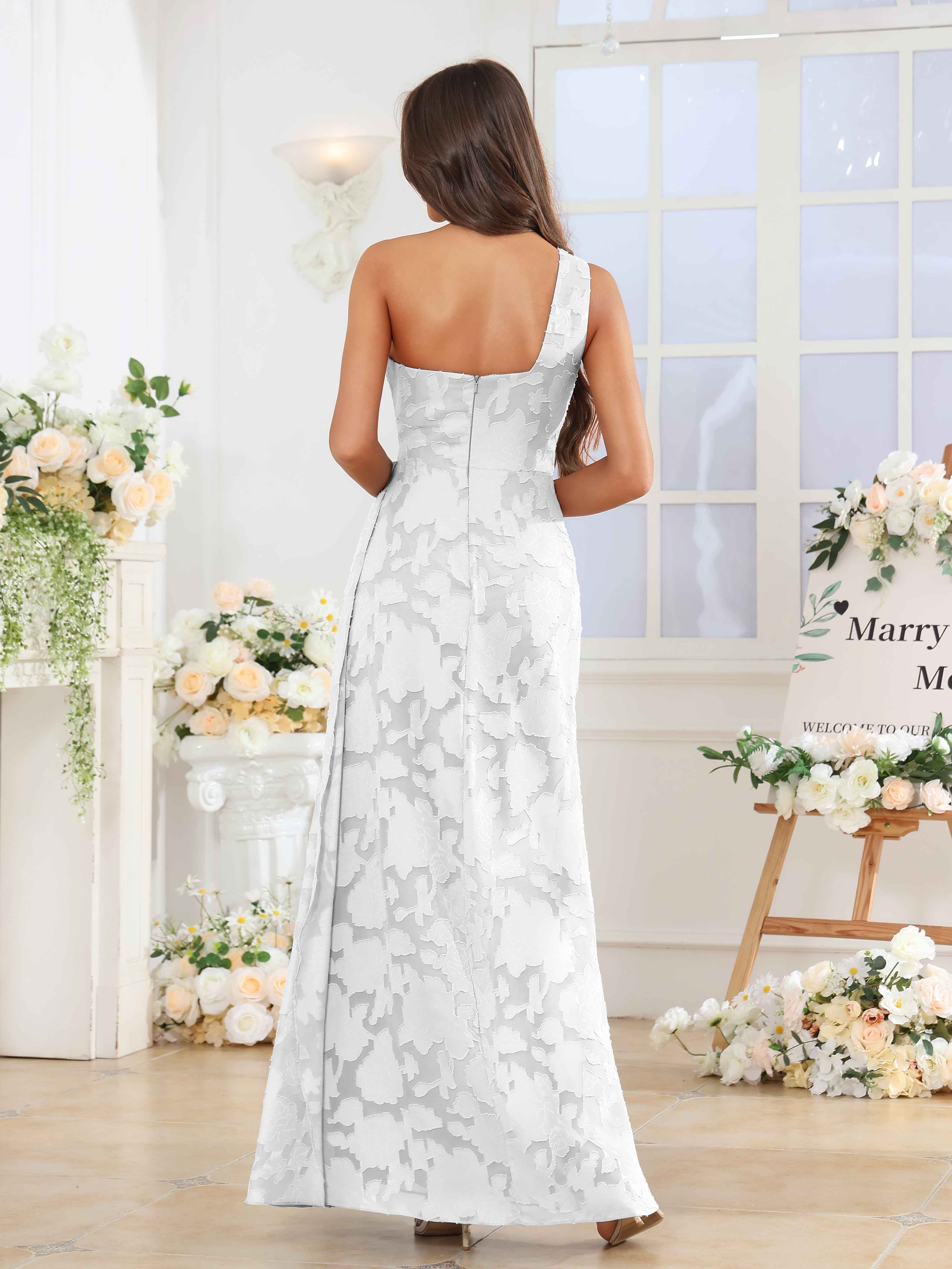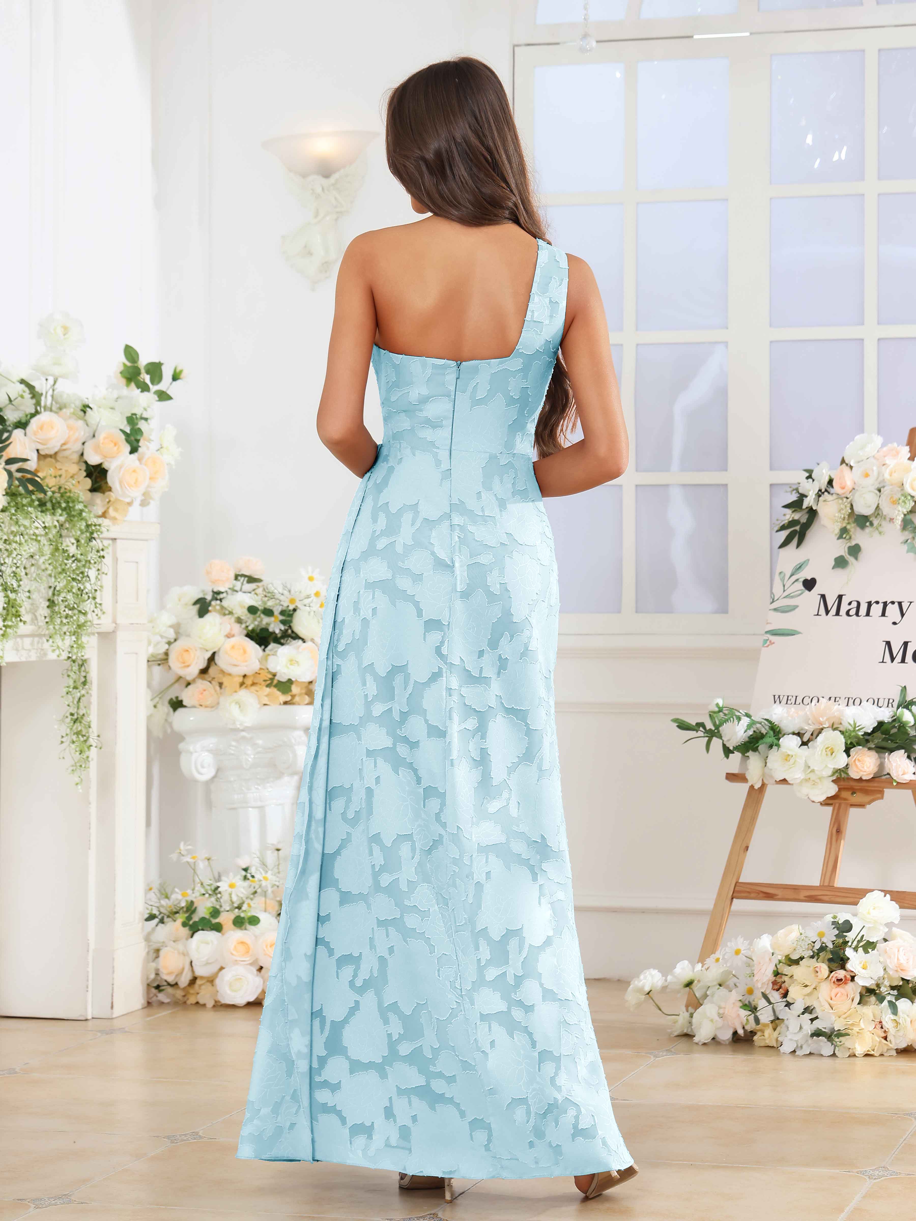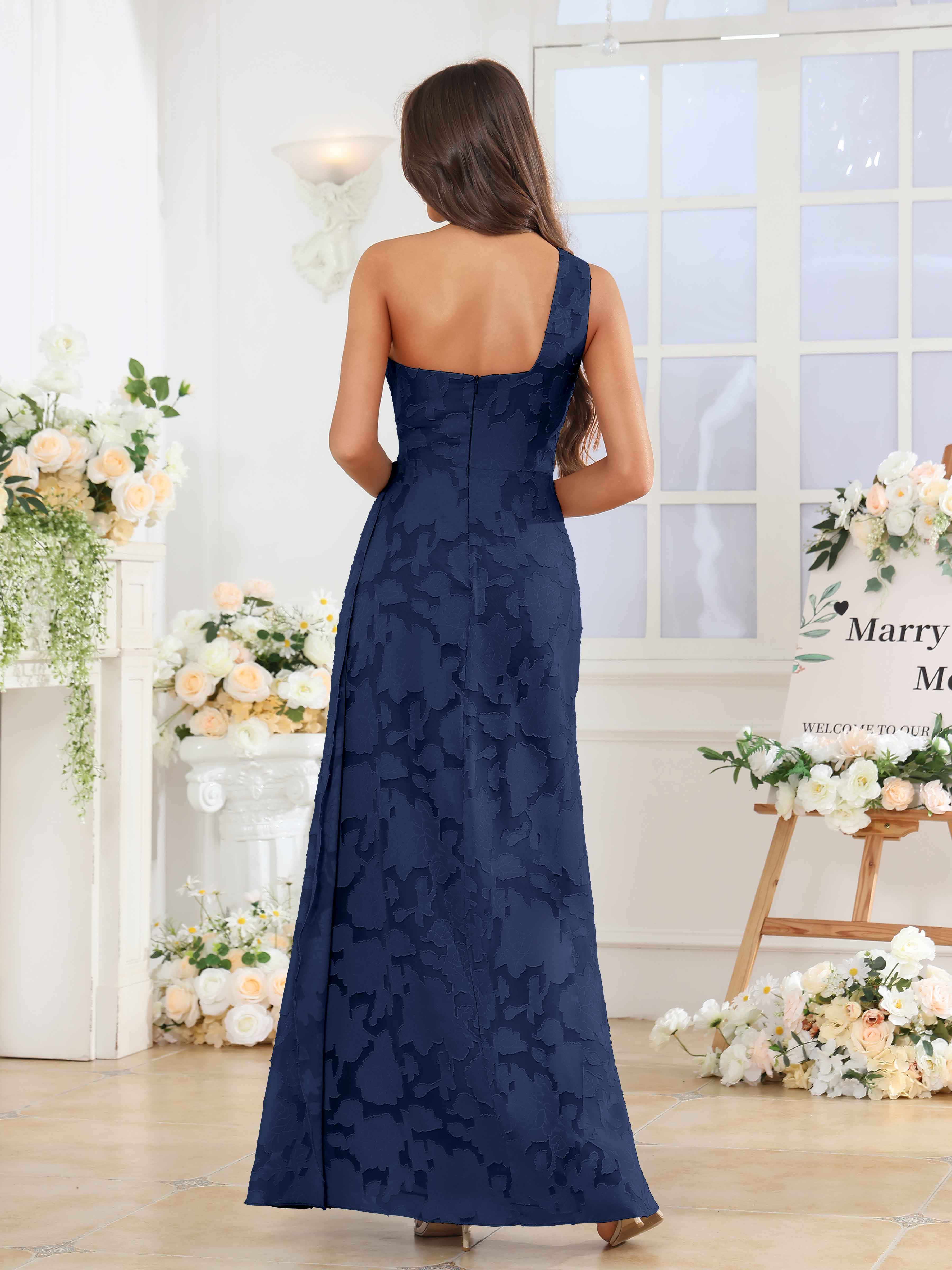Hollis Enchanting One Shoulder Pleated Slit Long Floral Lace Bridesmaid Dresses