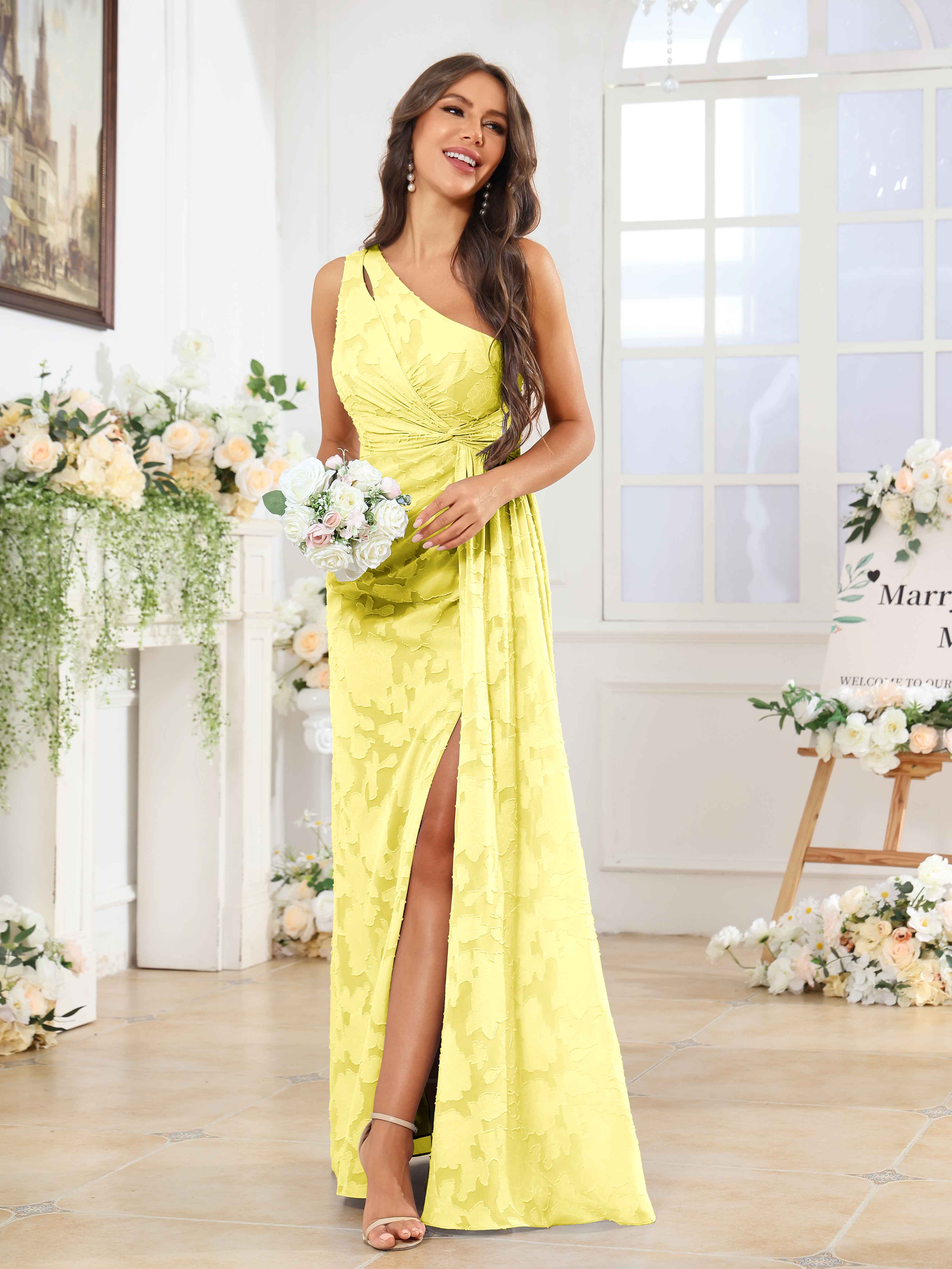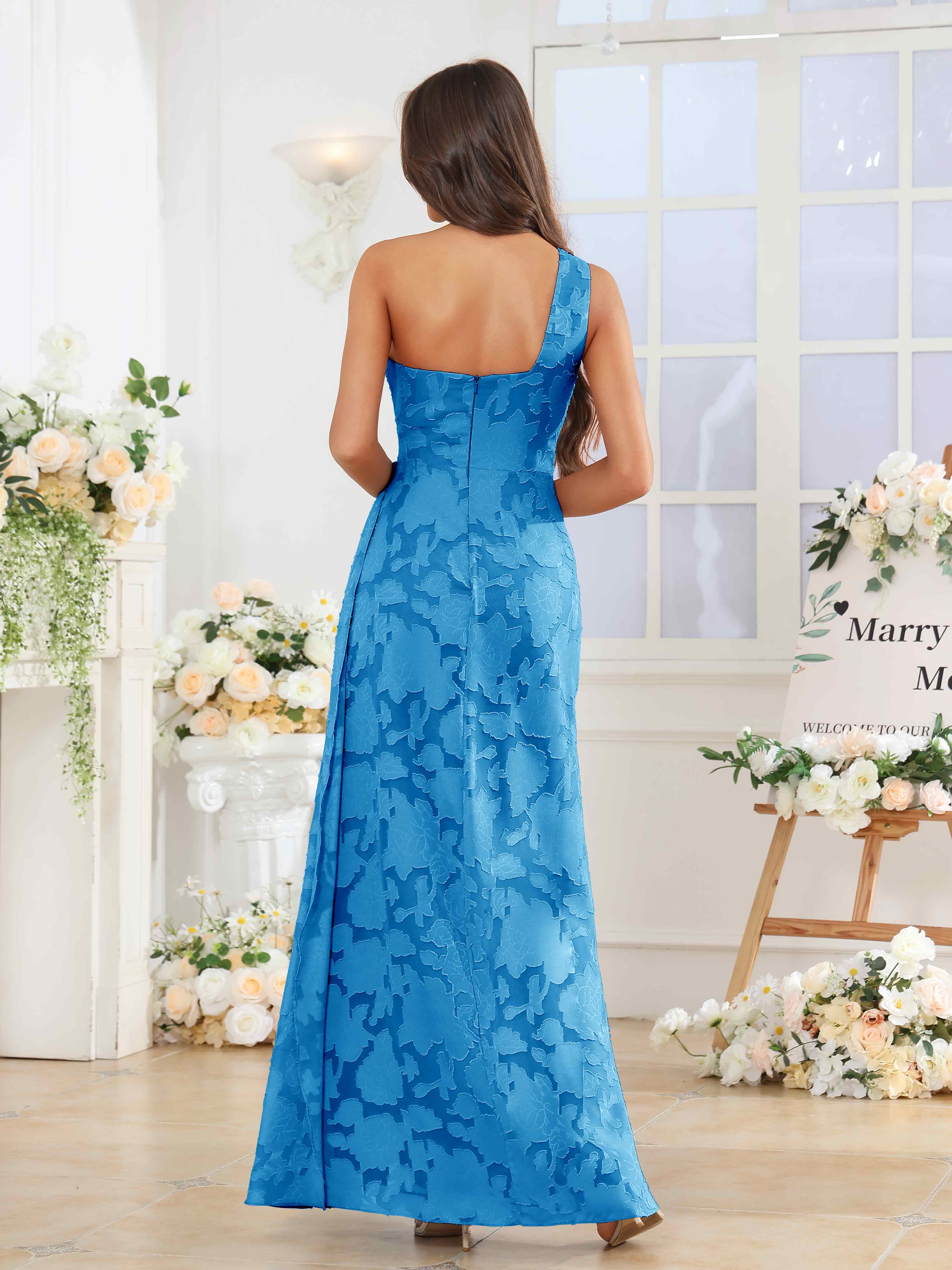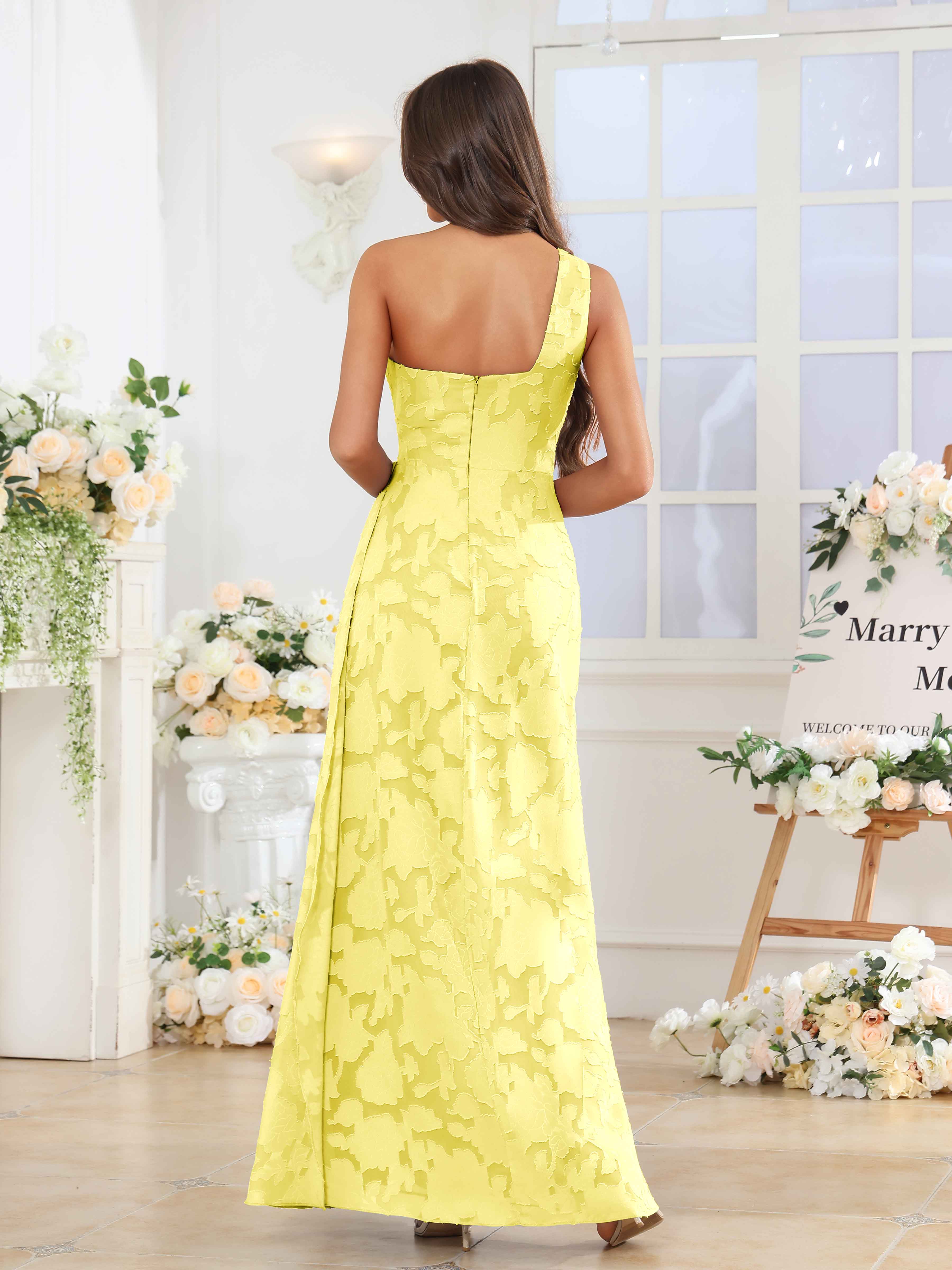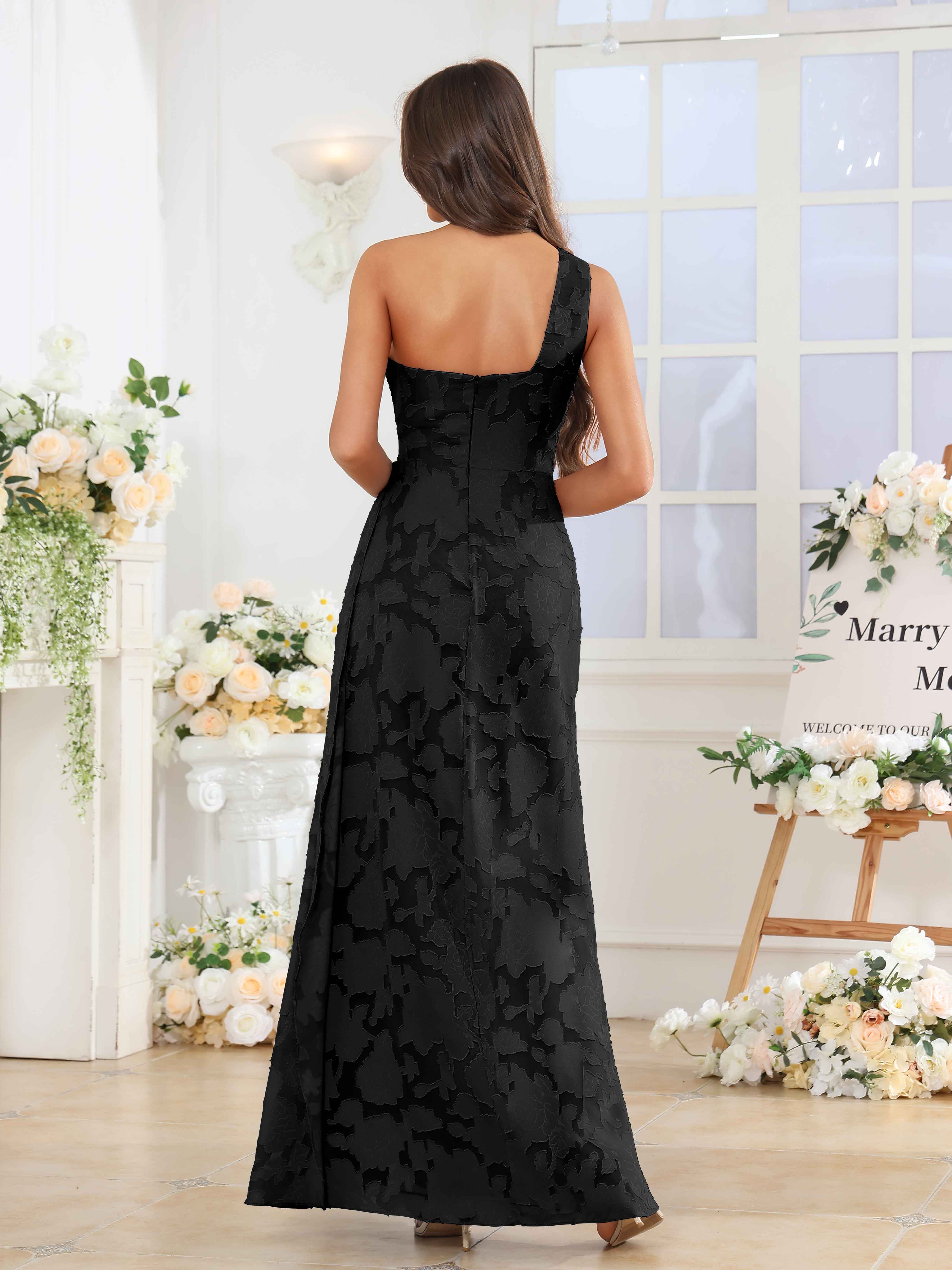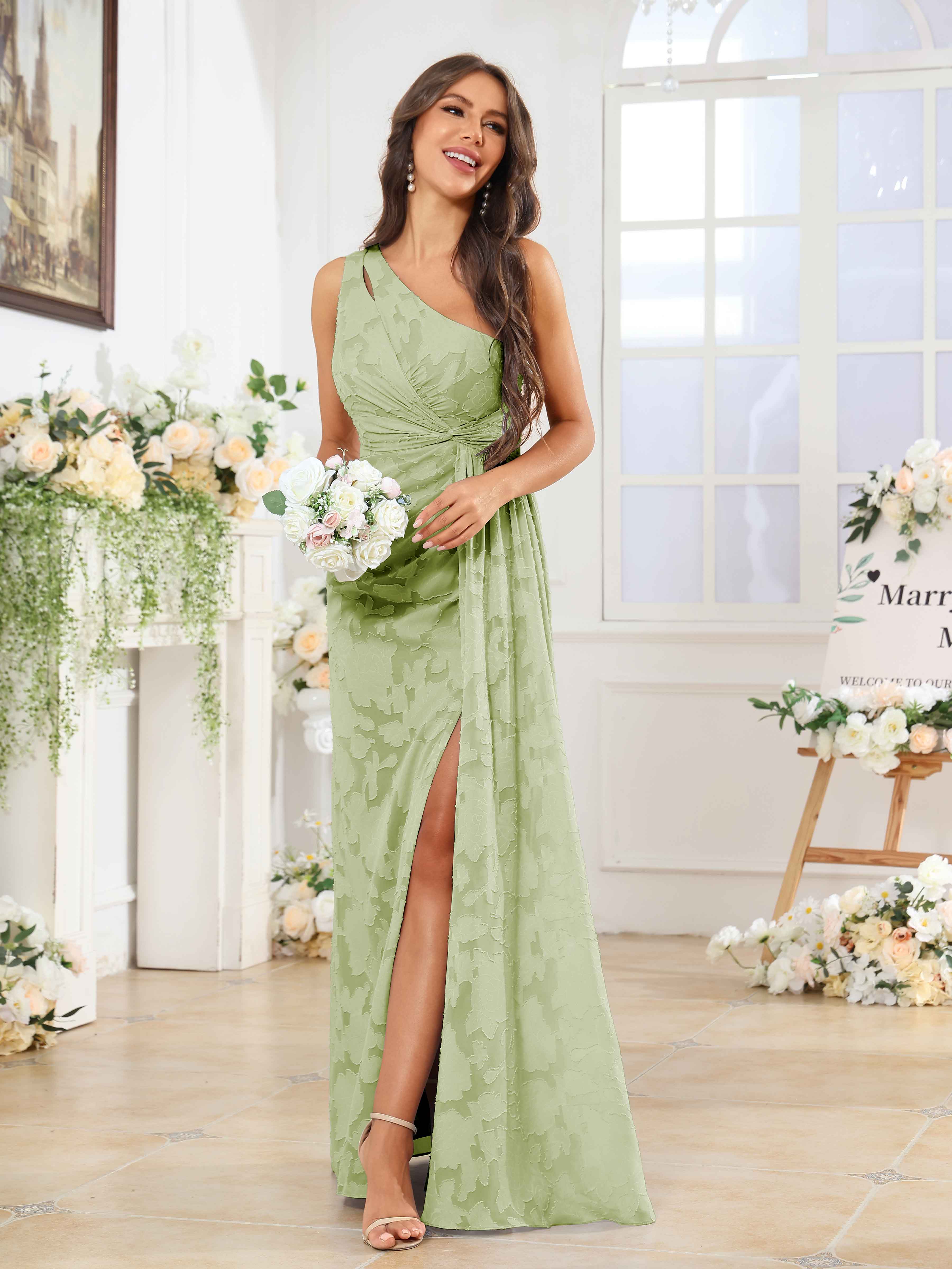 Hollis Enchanting One Shoulder Pleated Slit Long Floral Lace Bridesmaid Dresses