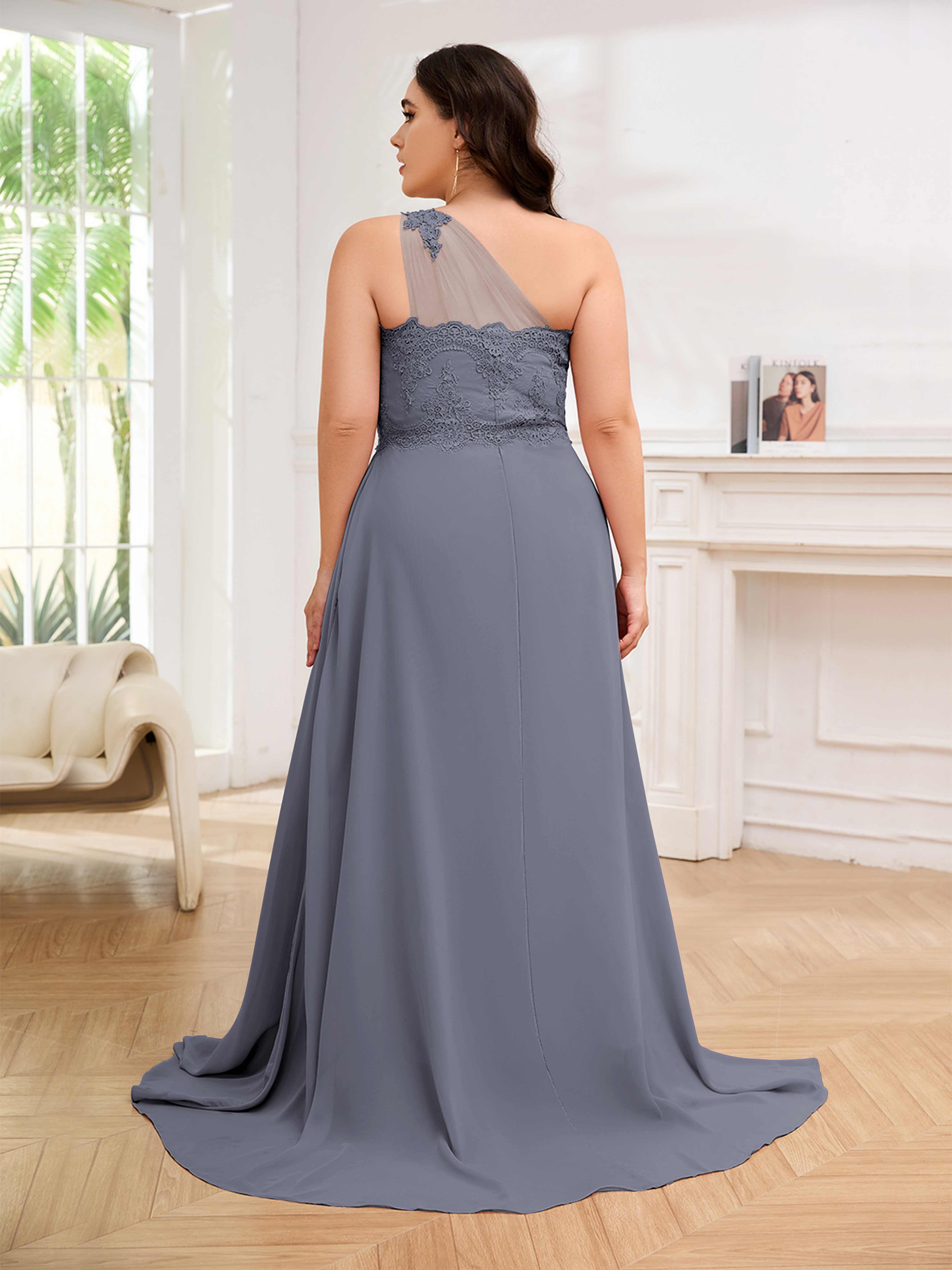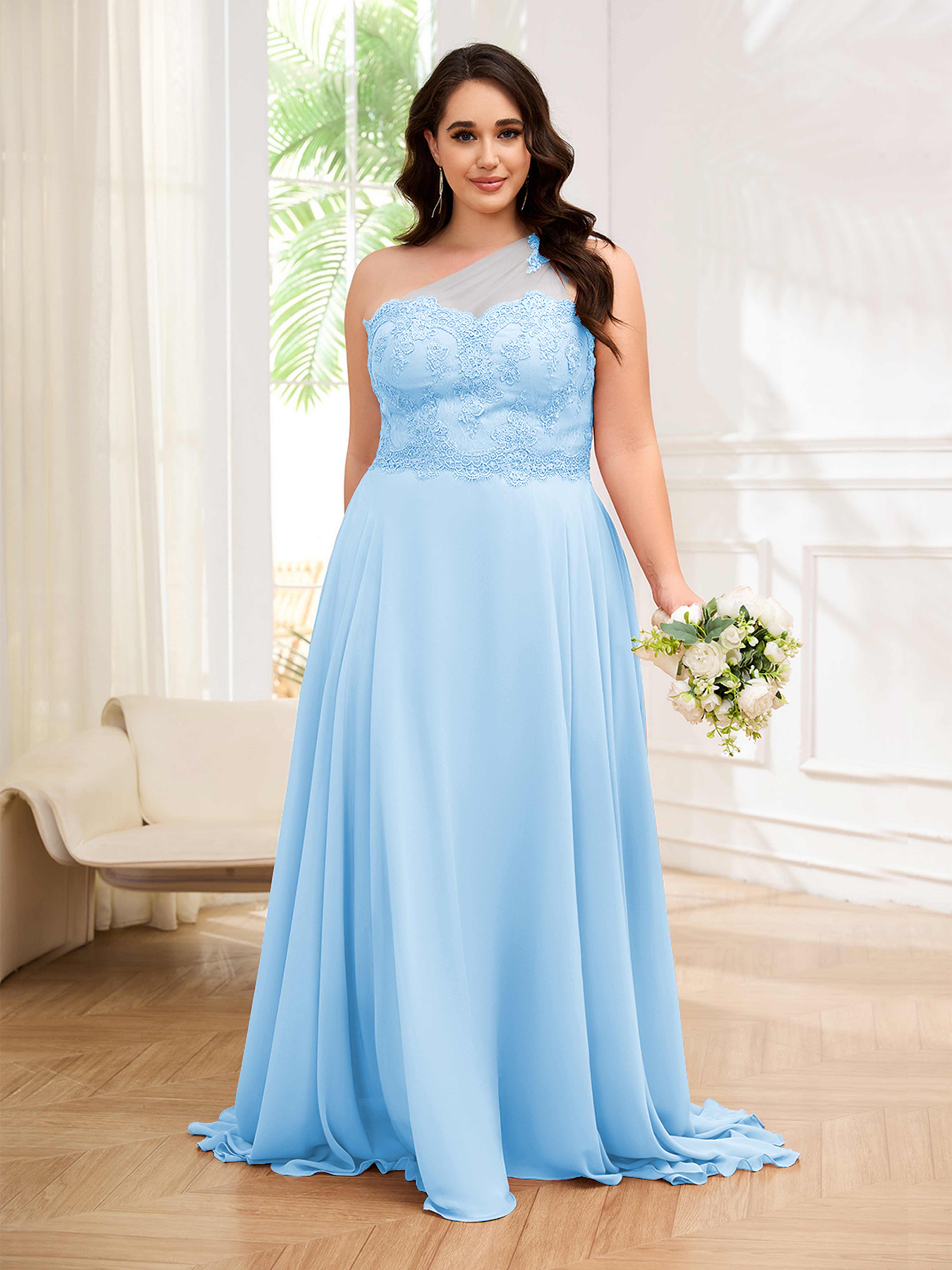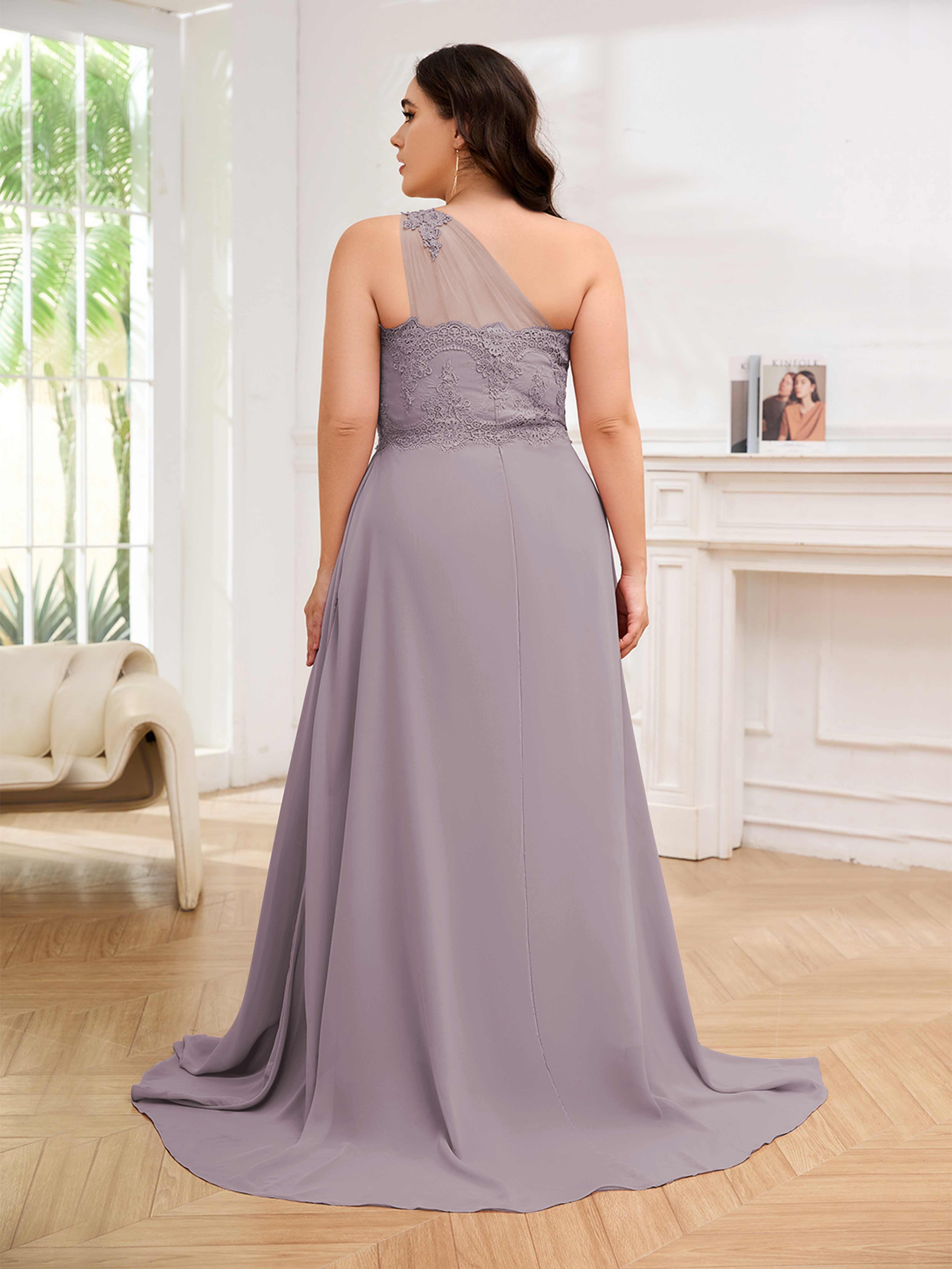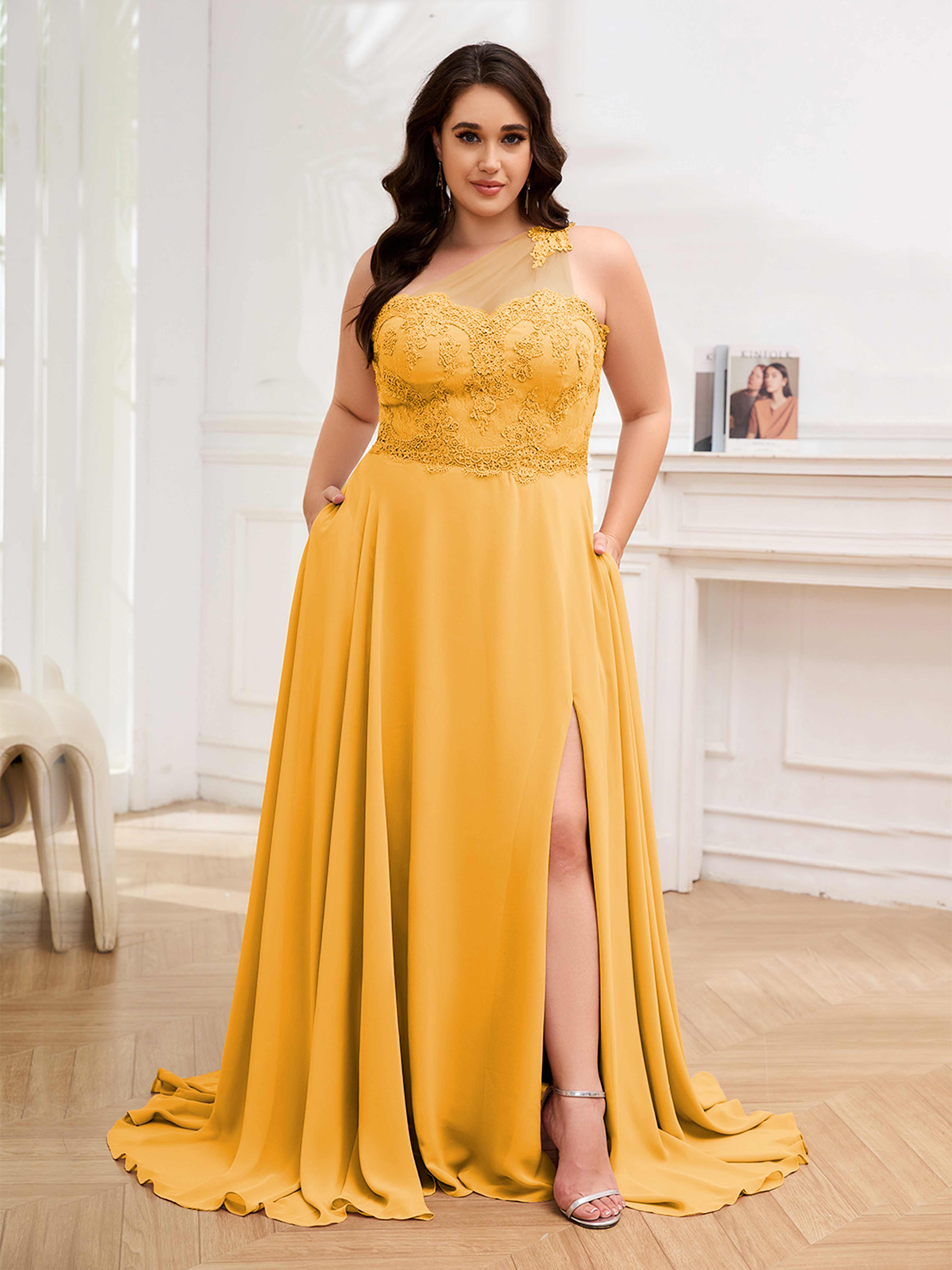 Imani Elegant One Shoulder Pockets Floor Length Lace Plus Size Bridesmaid Dresses