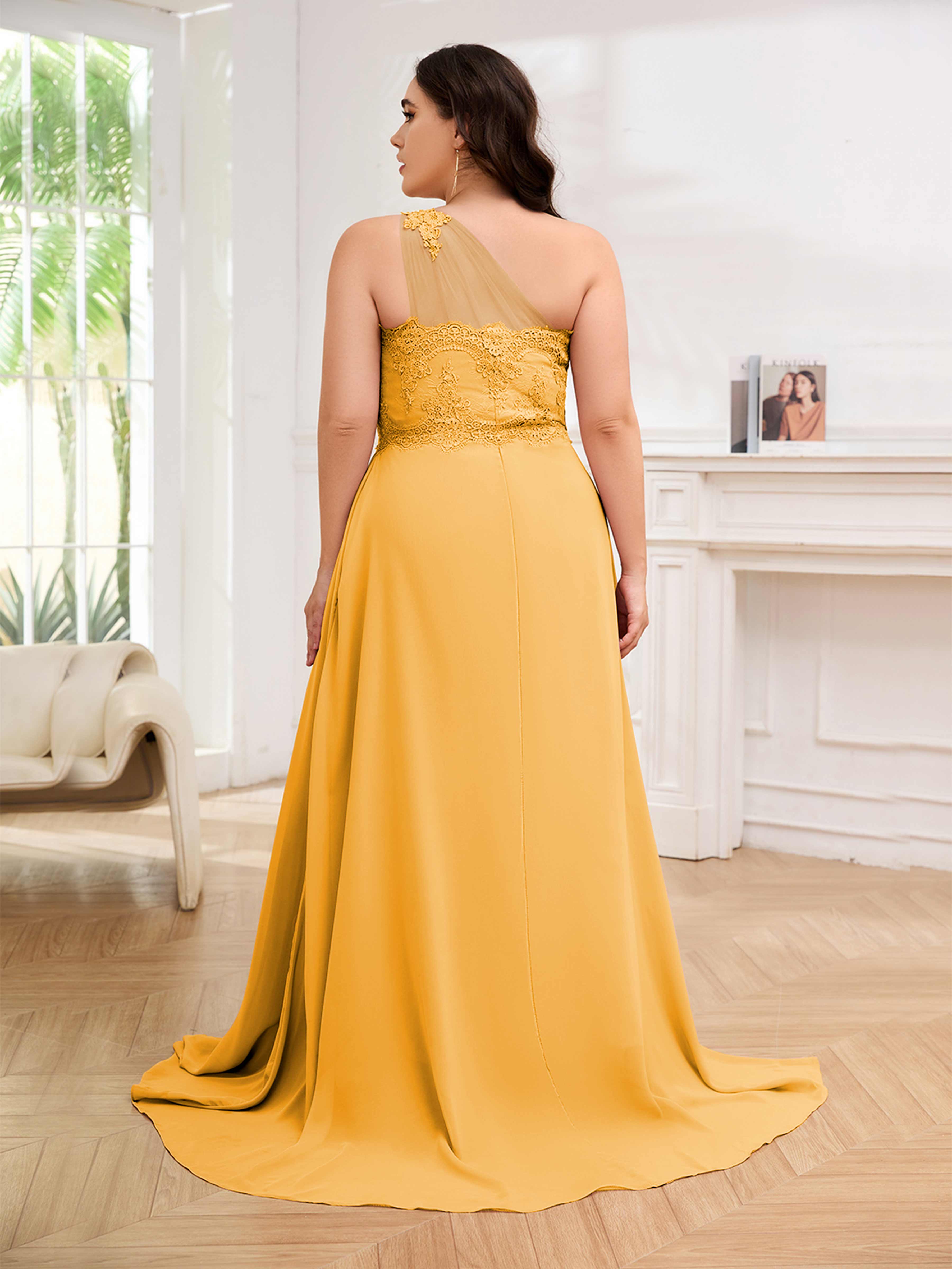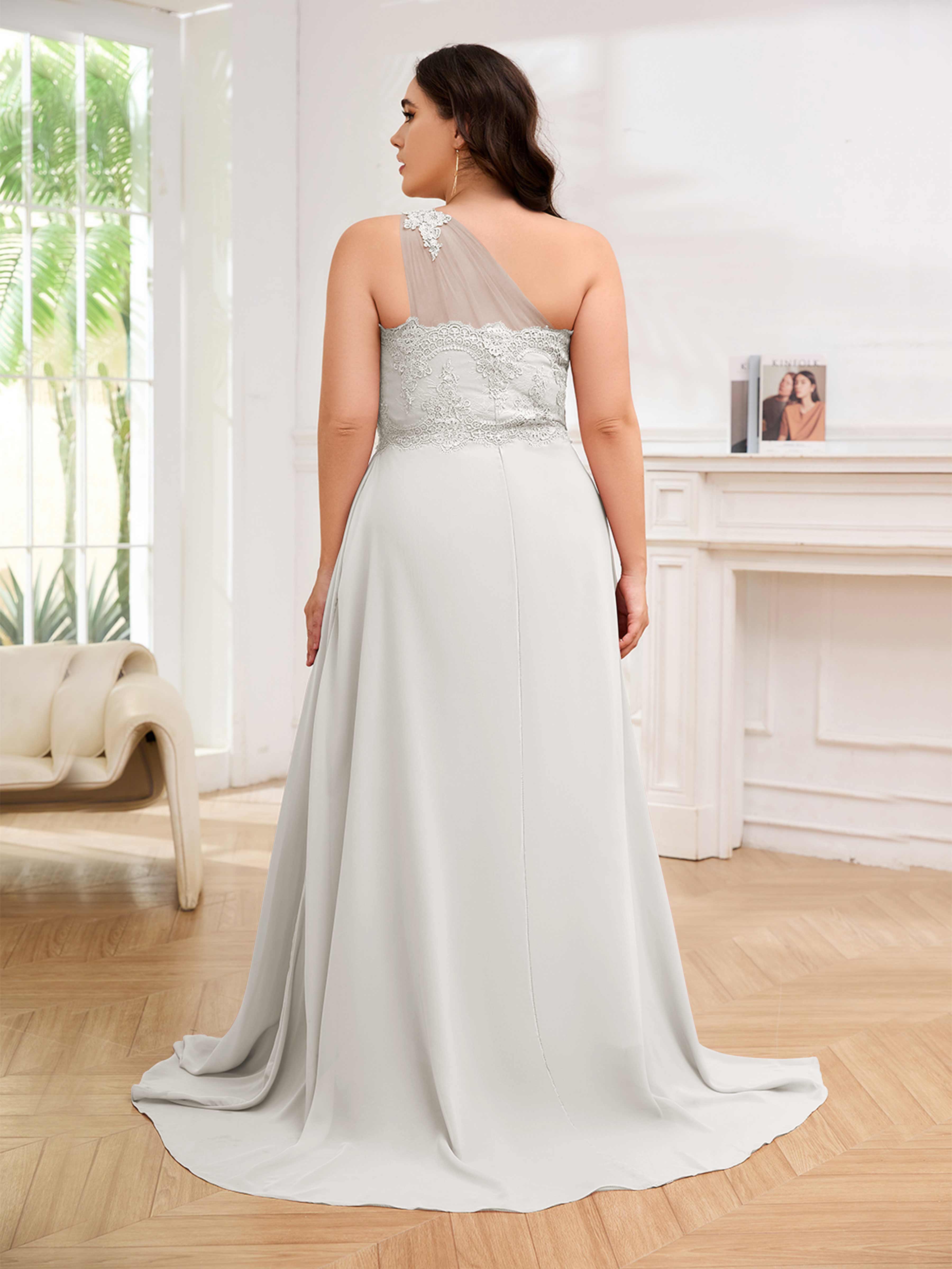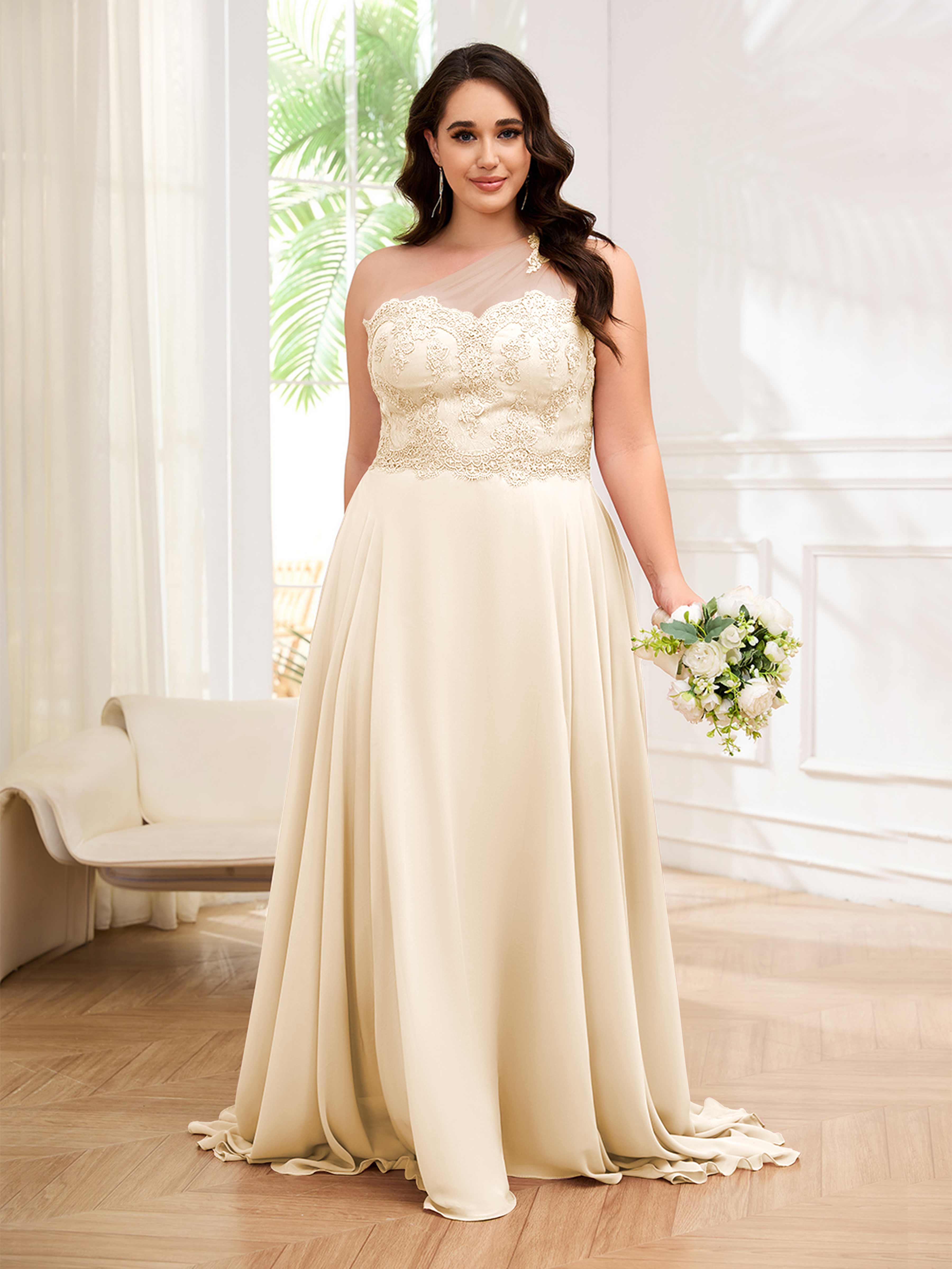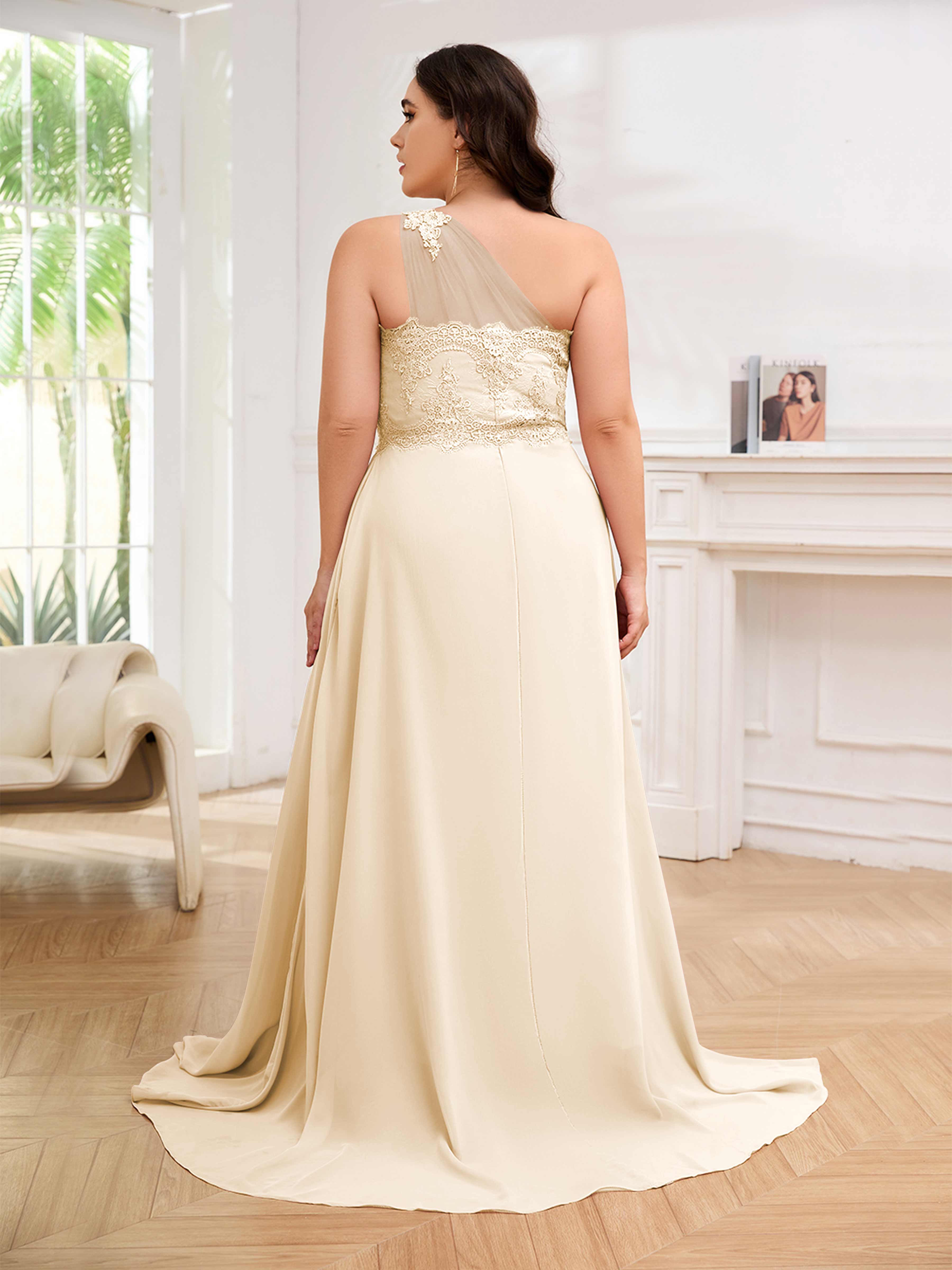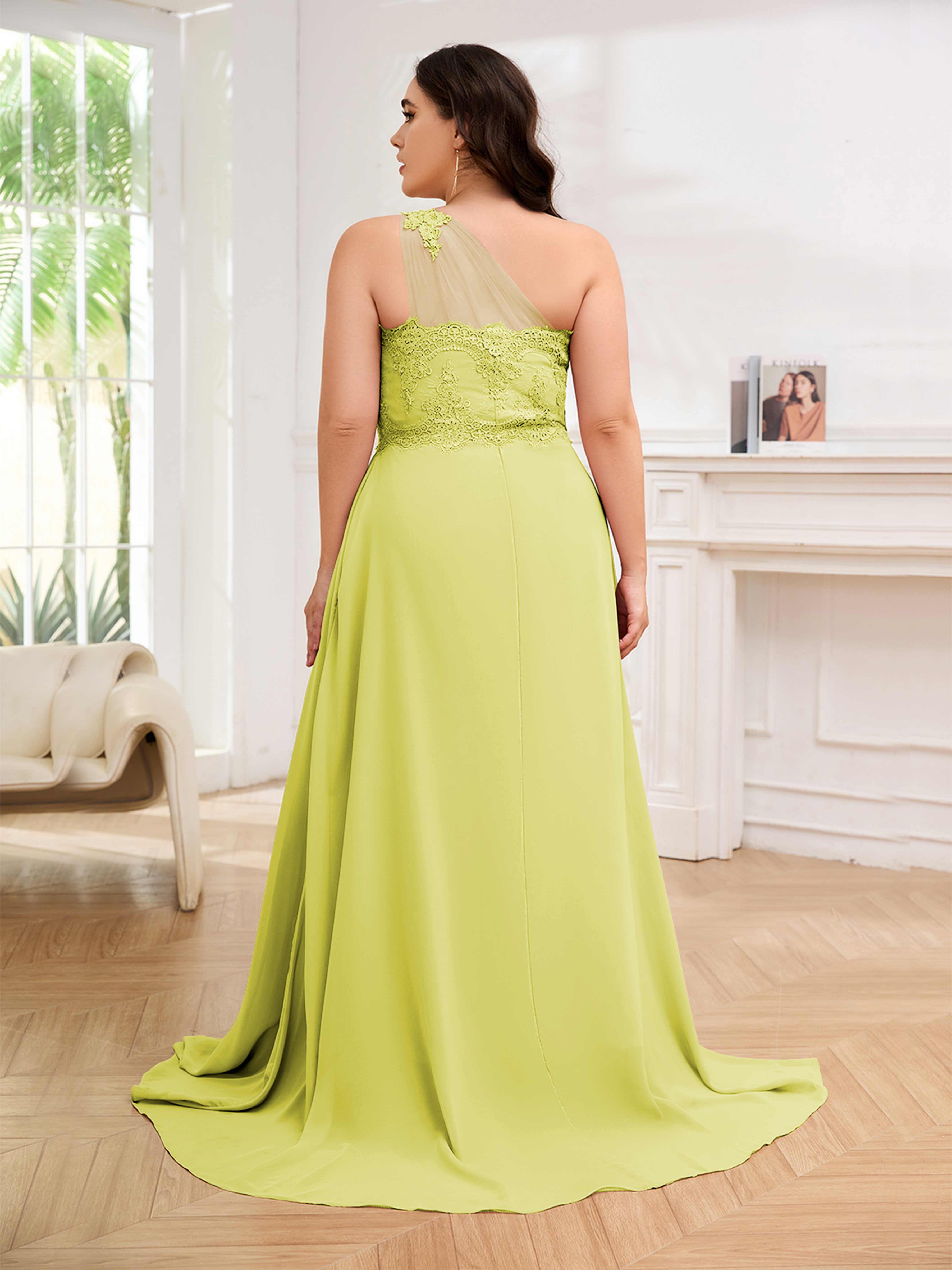 Imani Elegant One Shoulder Pockets Floor Length Lace Plus Size Bridesmaid Dresses