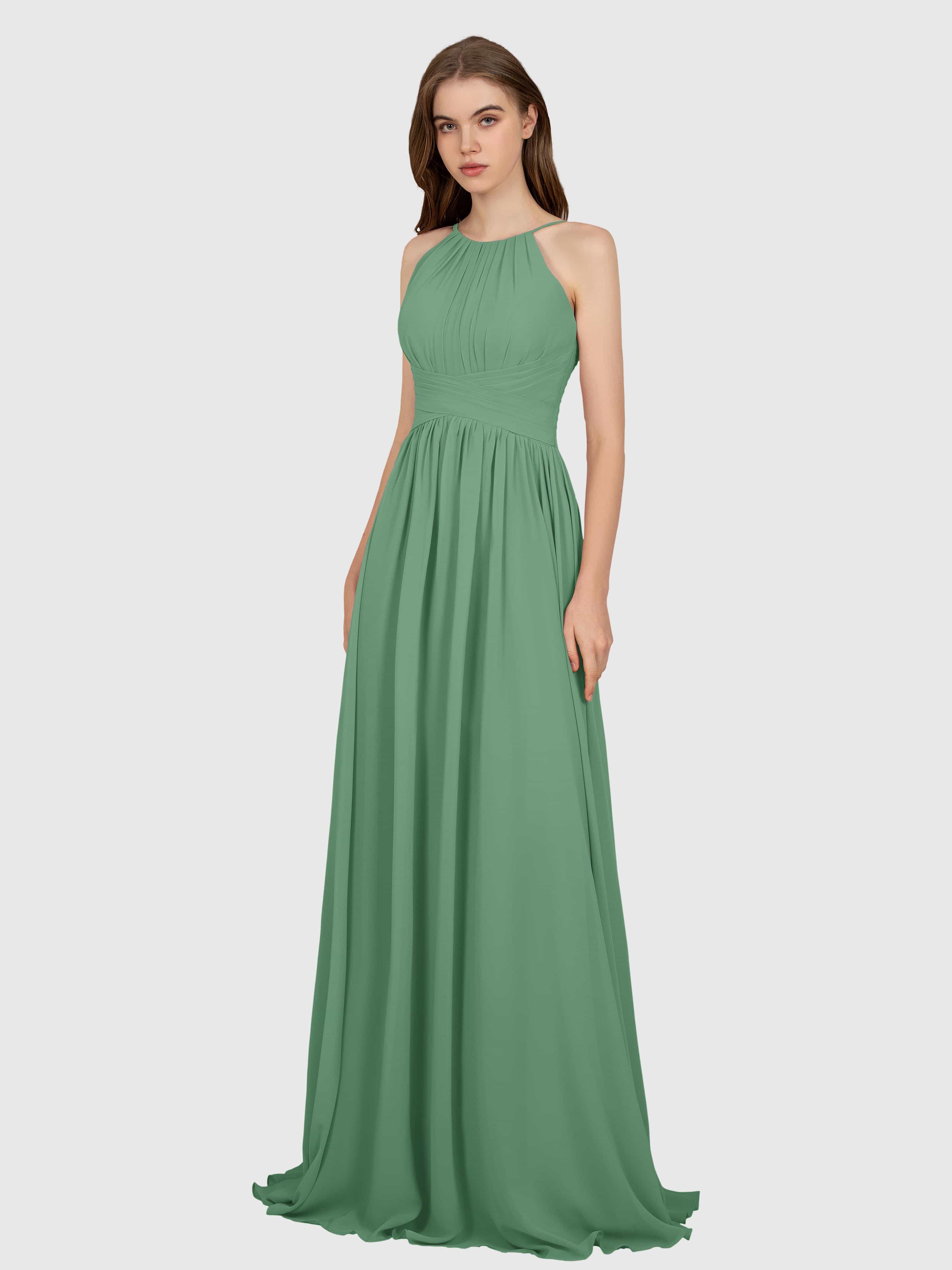 Isabella Dreamy A-line Halter Sleeveless Bridesmaid Dresses