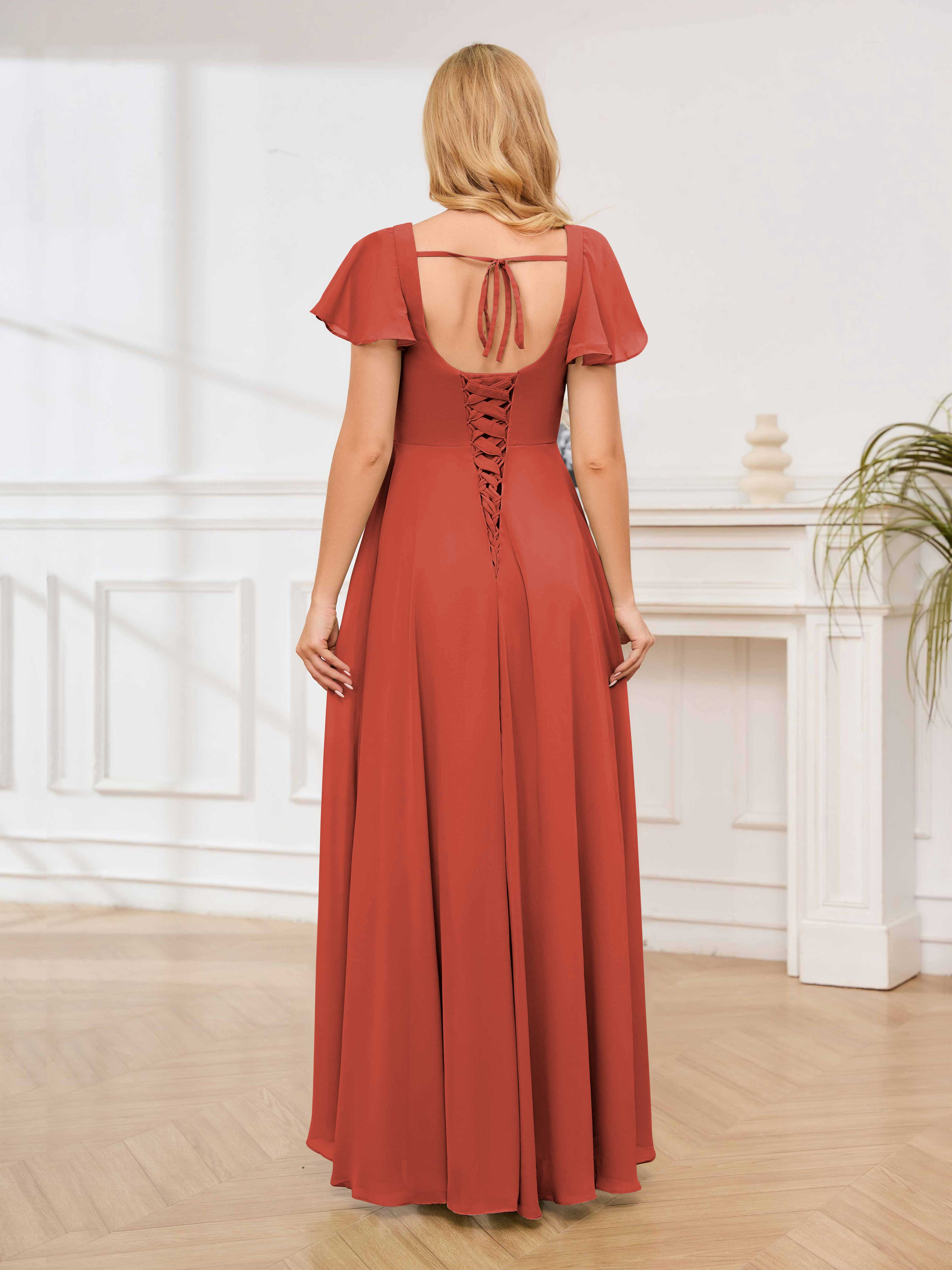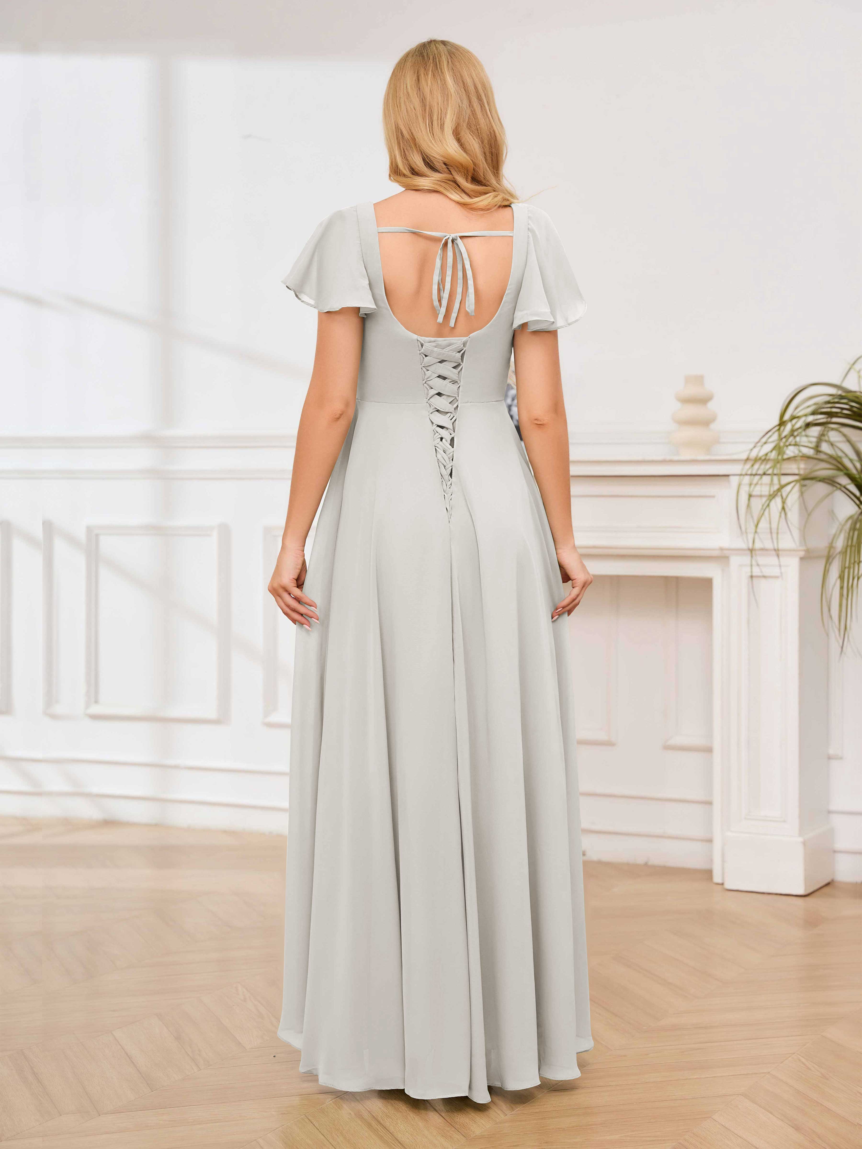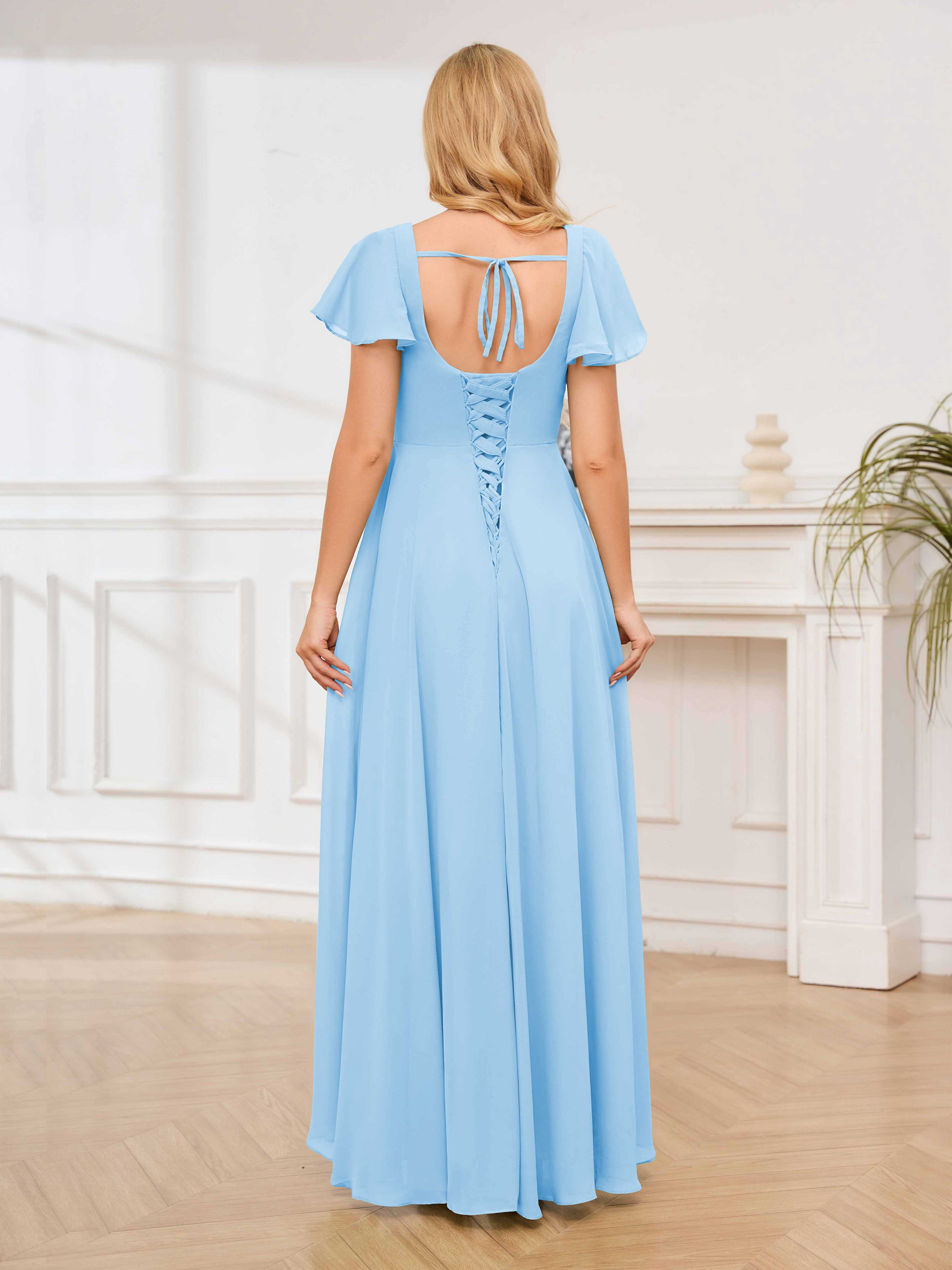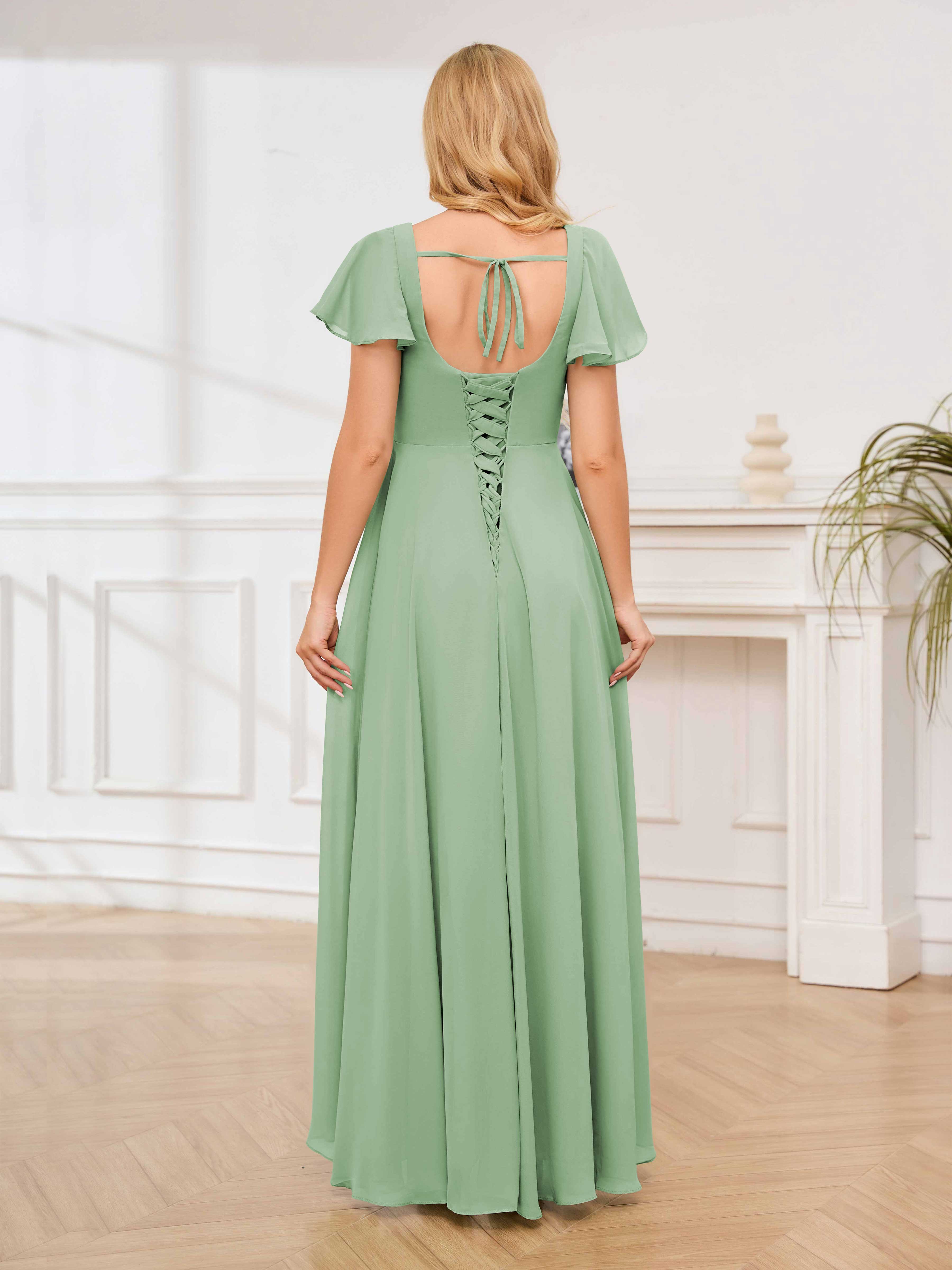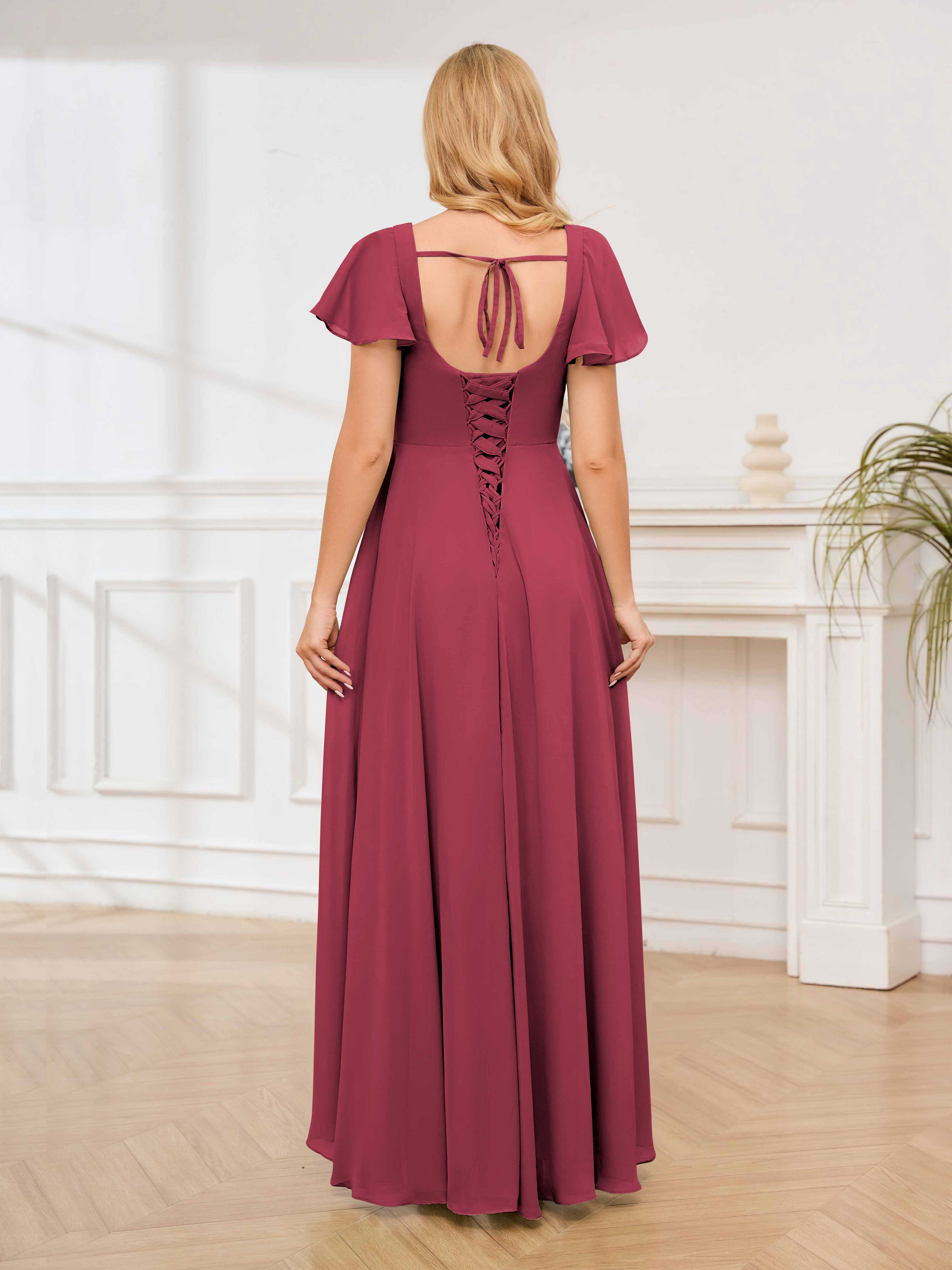 Itzel Modern Square Short Sleeves Pleated High Low Chiffon Bridesmaid Dresses