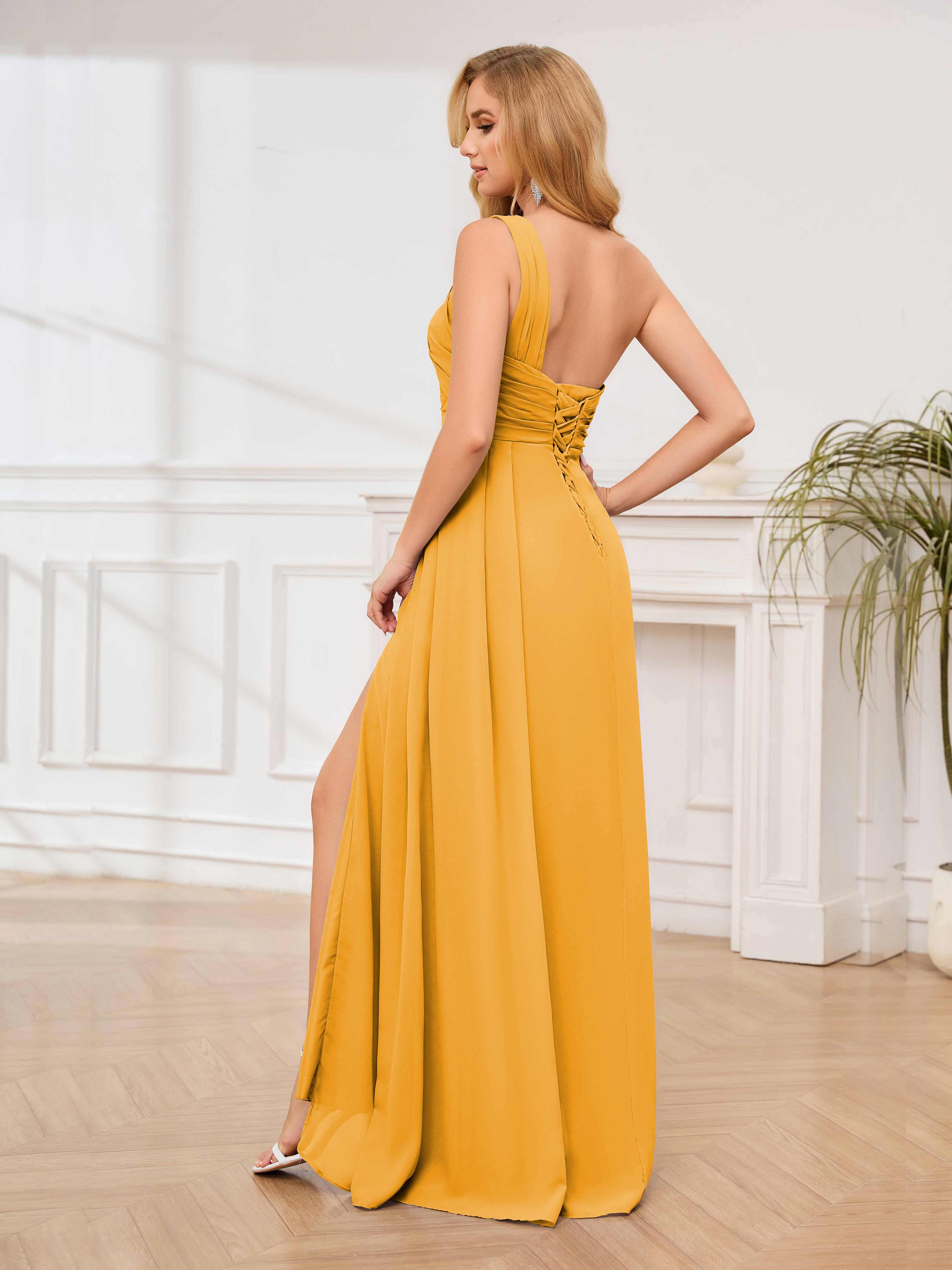 Jayleen Enchanting One Shoulder Ruched Long Chiffon Bridesmaid Dresses