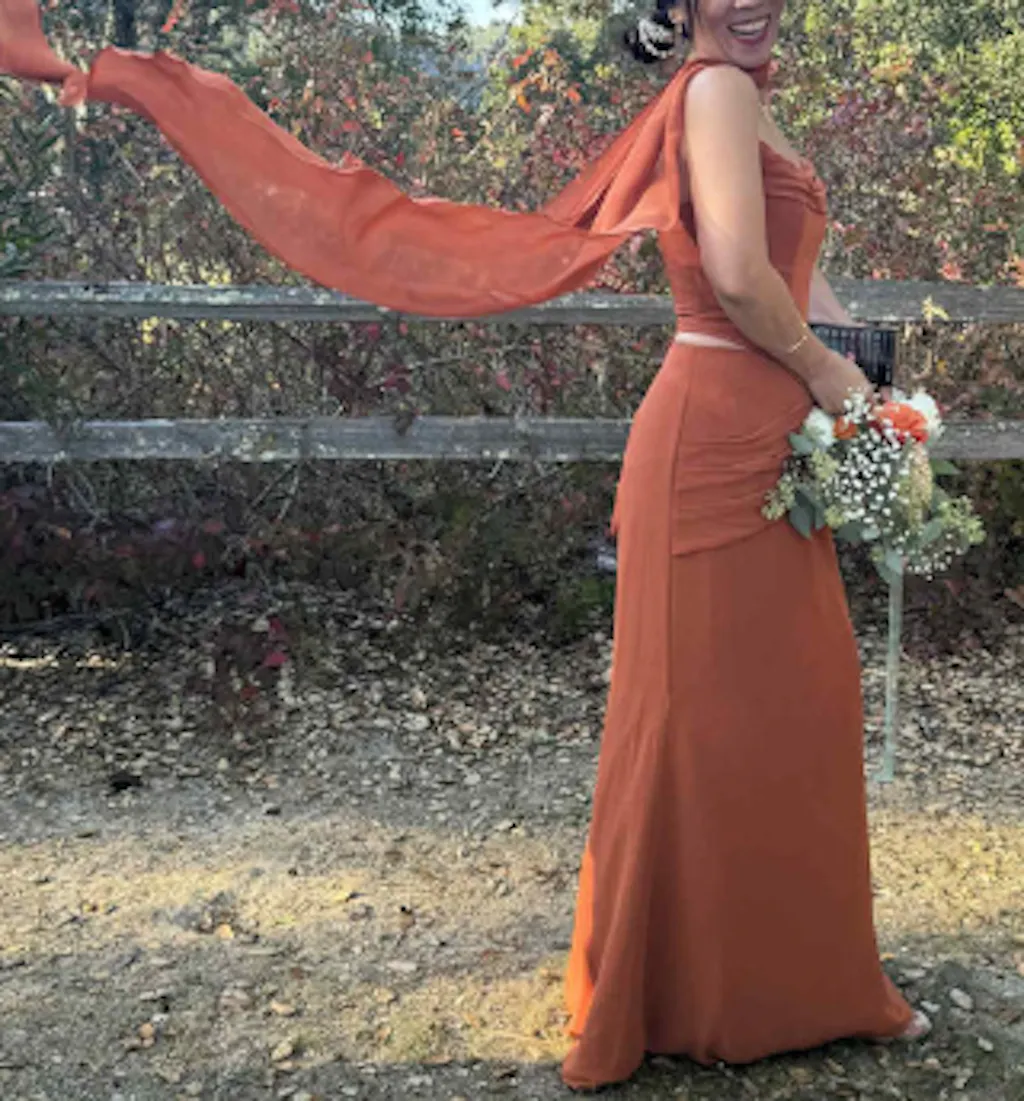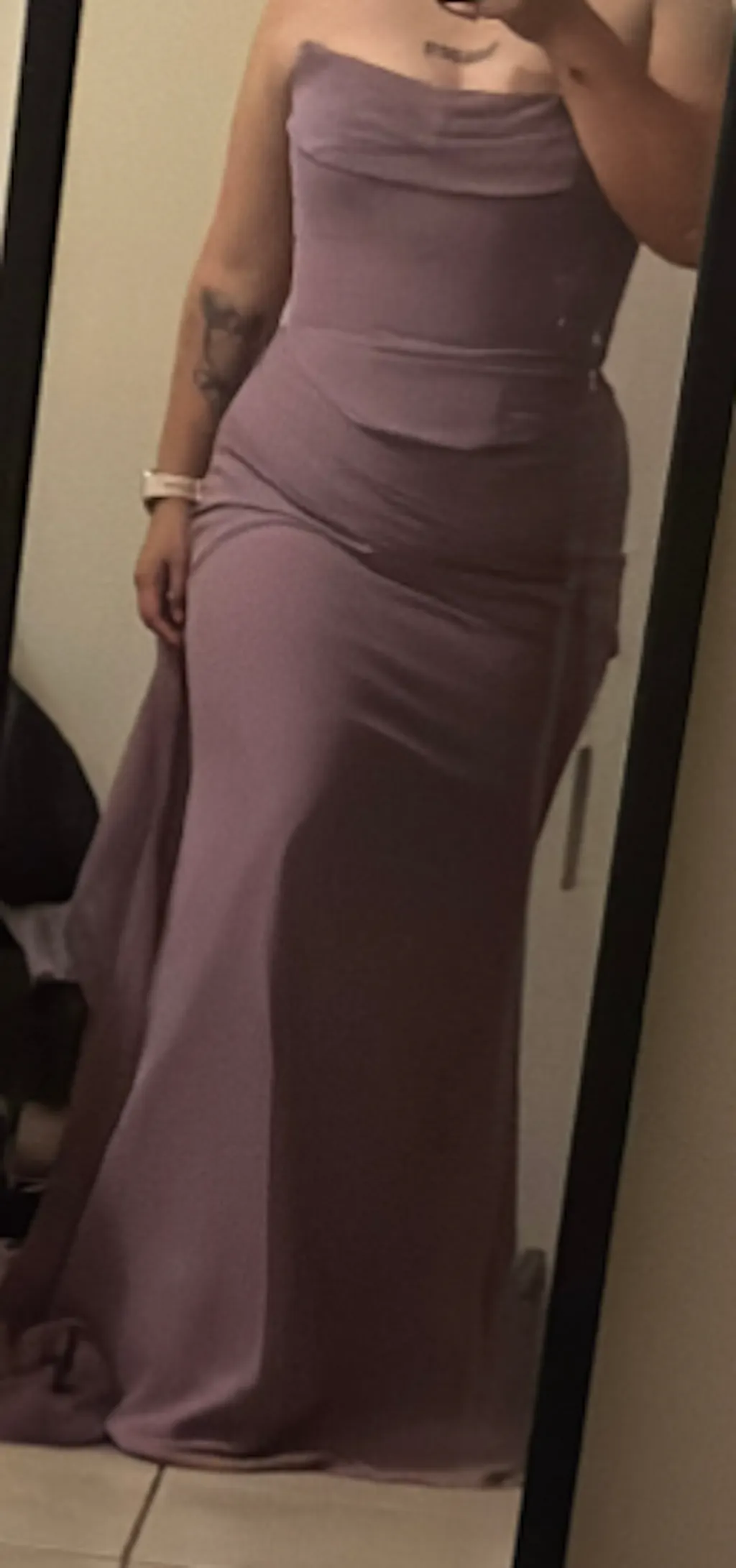 Make a striking impression with the Jessamine mermaid dress. Its strapless design and pleated chiffon fabric create a flattering silhouette that hugs your curves beautifully. The long, flowing skirt adds elegance and sophistication, perfect for any formal occasion where you want to stand out with confidence and grace.