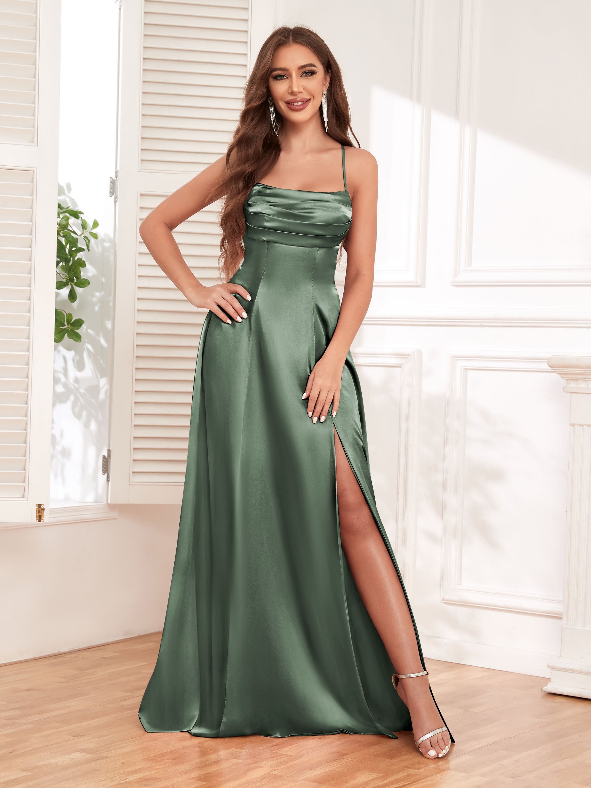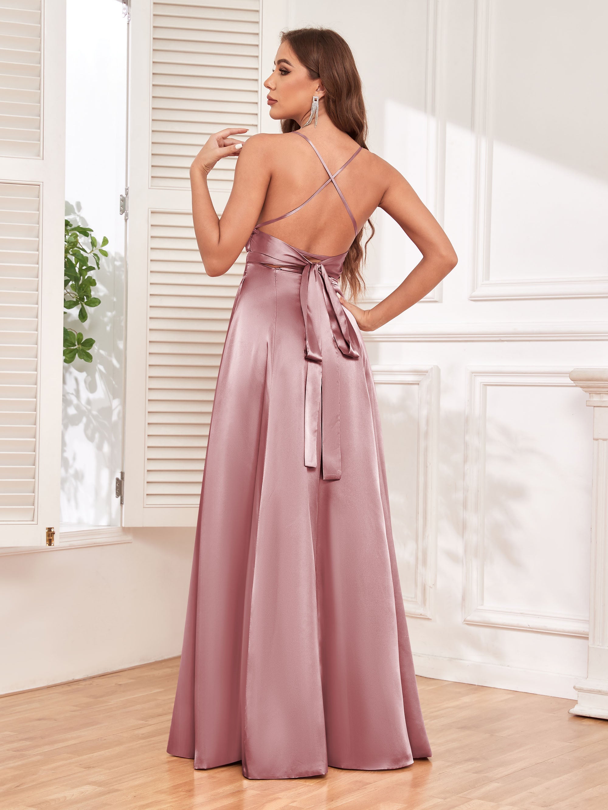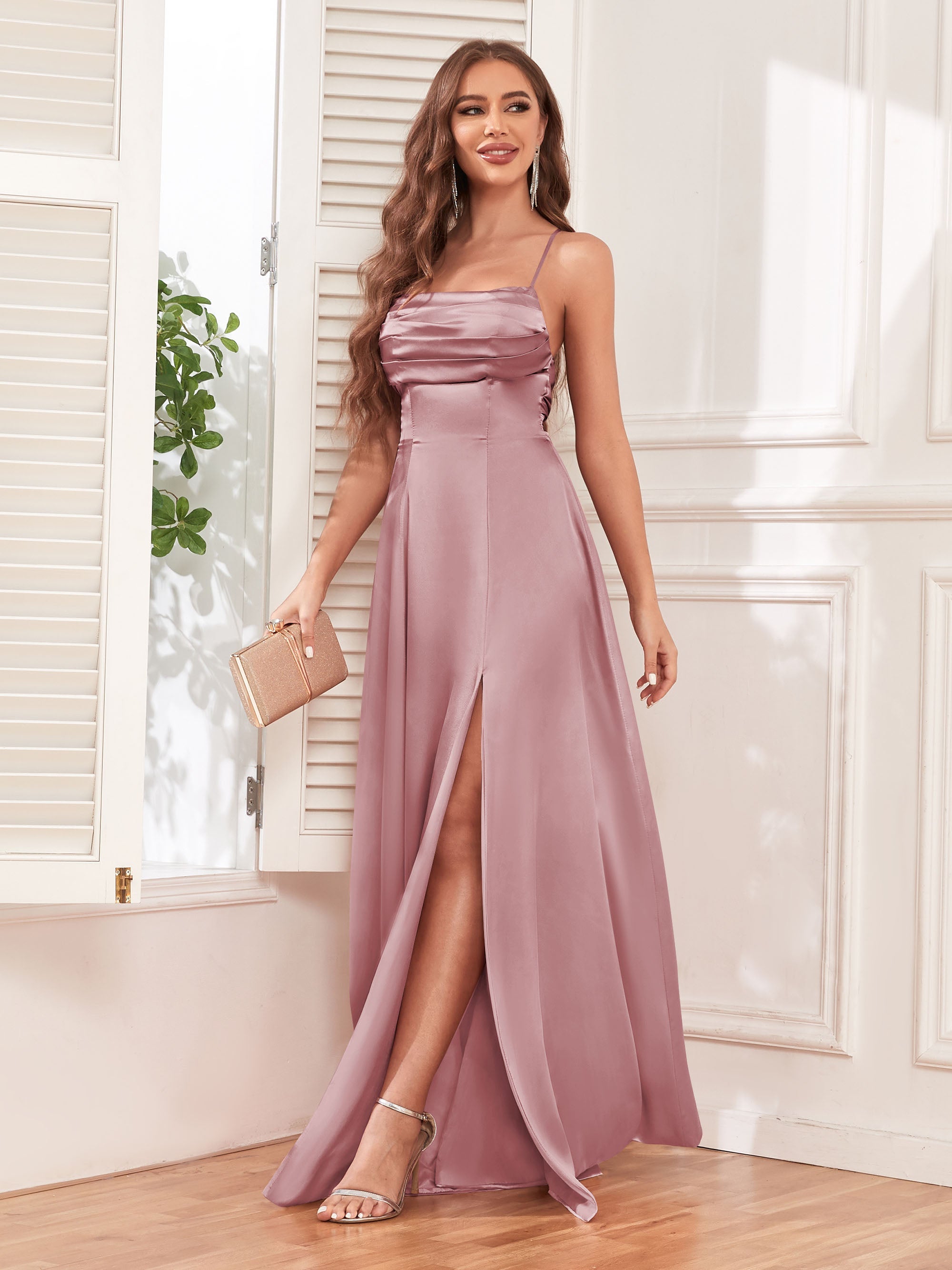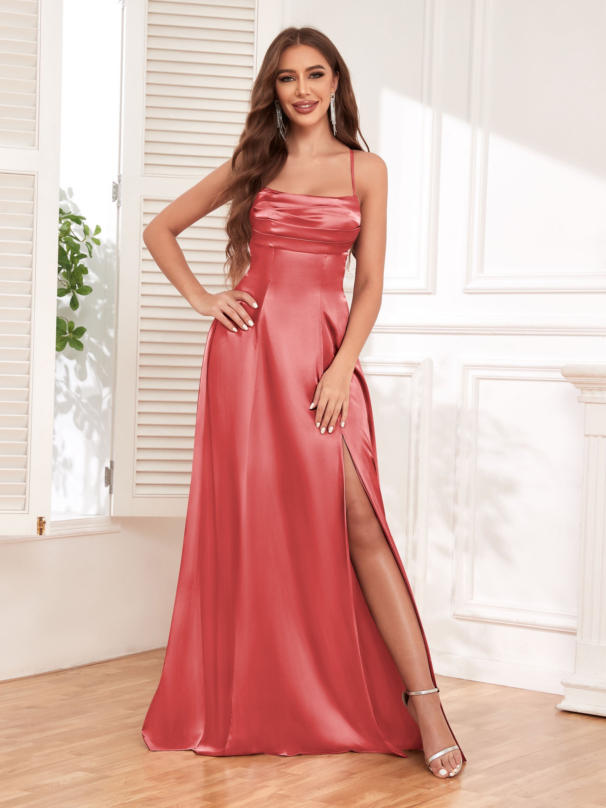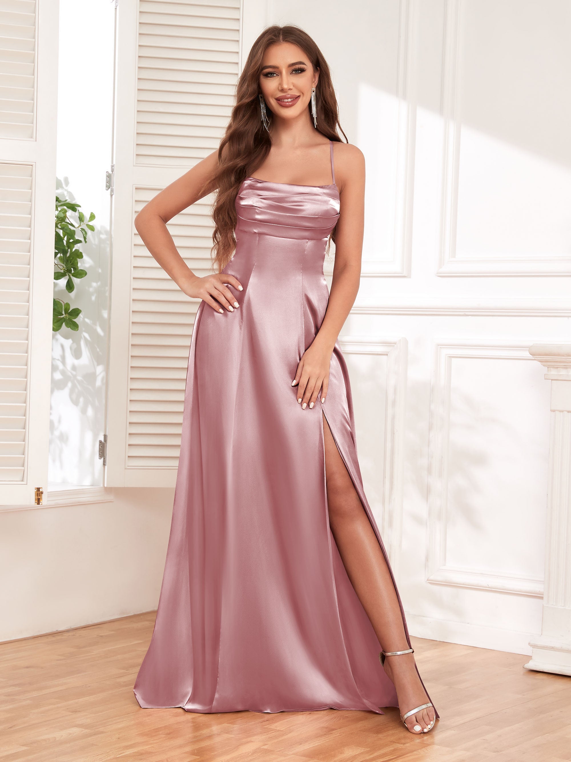 Jocelyn Romantic A-Line Ruched Open Back Satin Formal Dresses