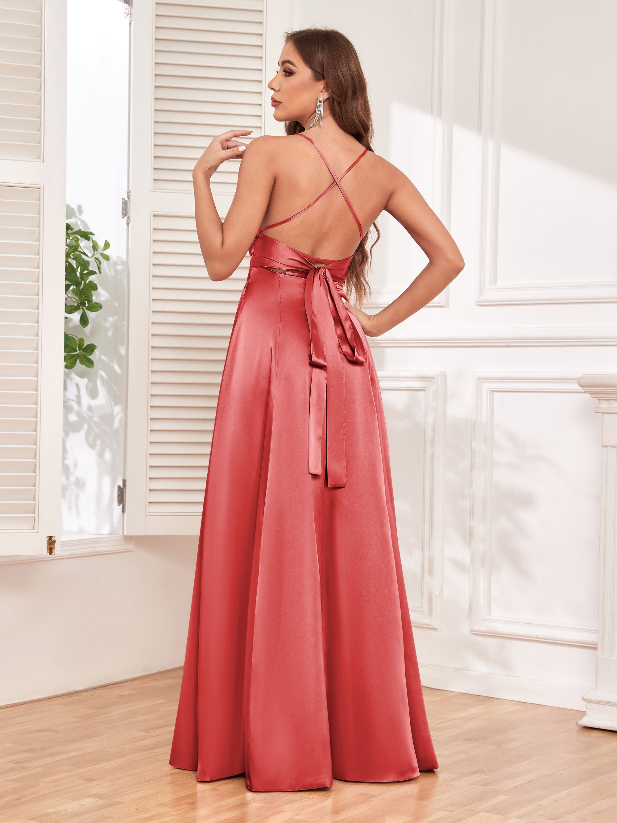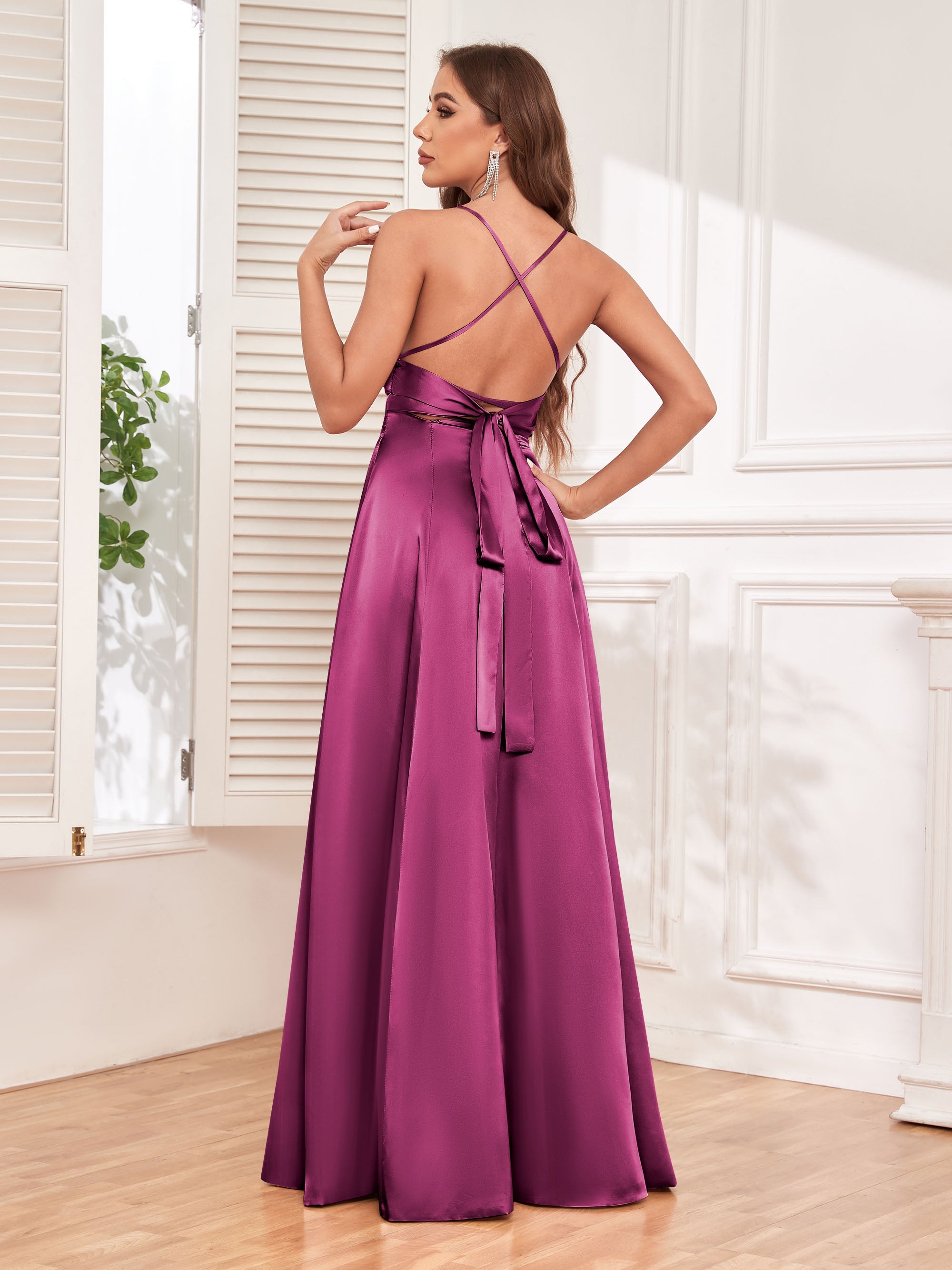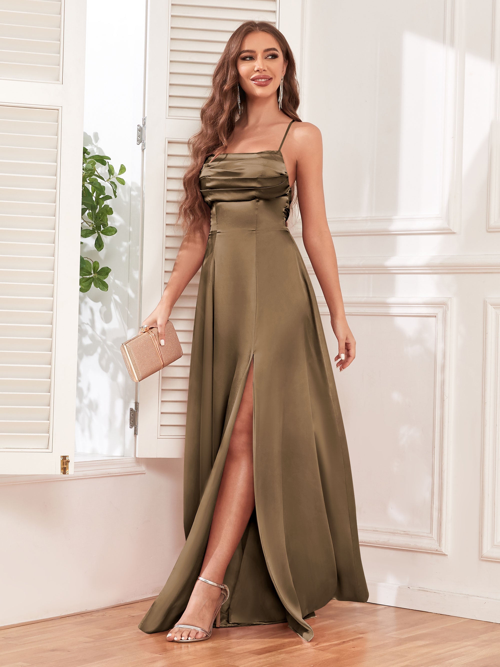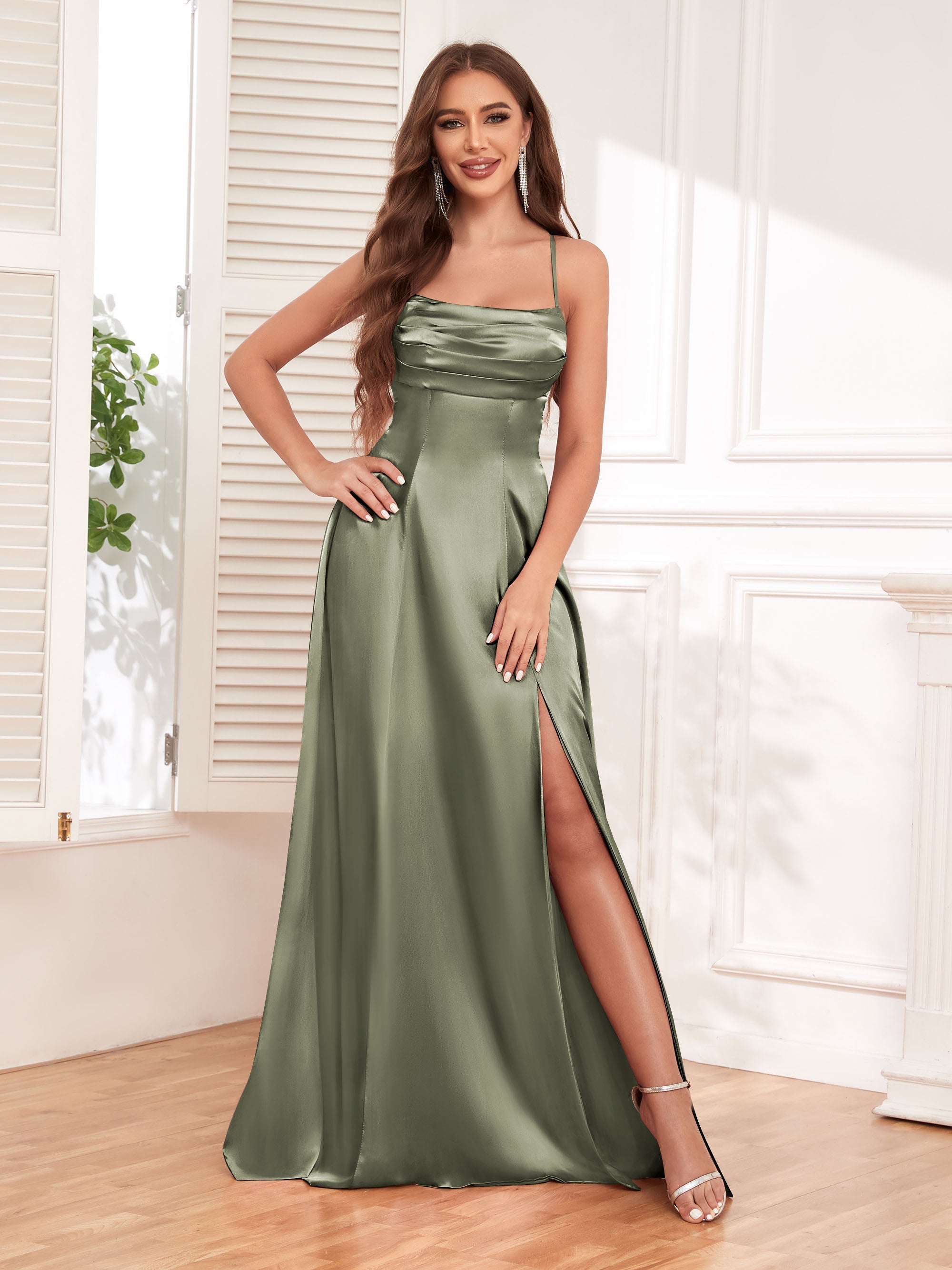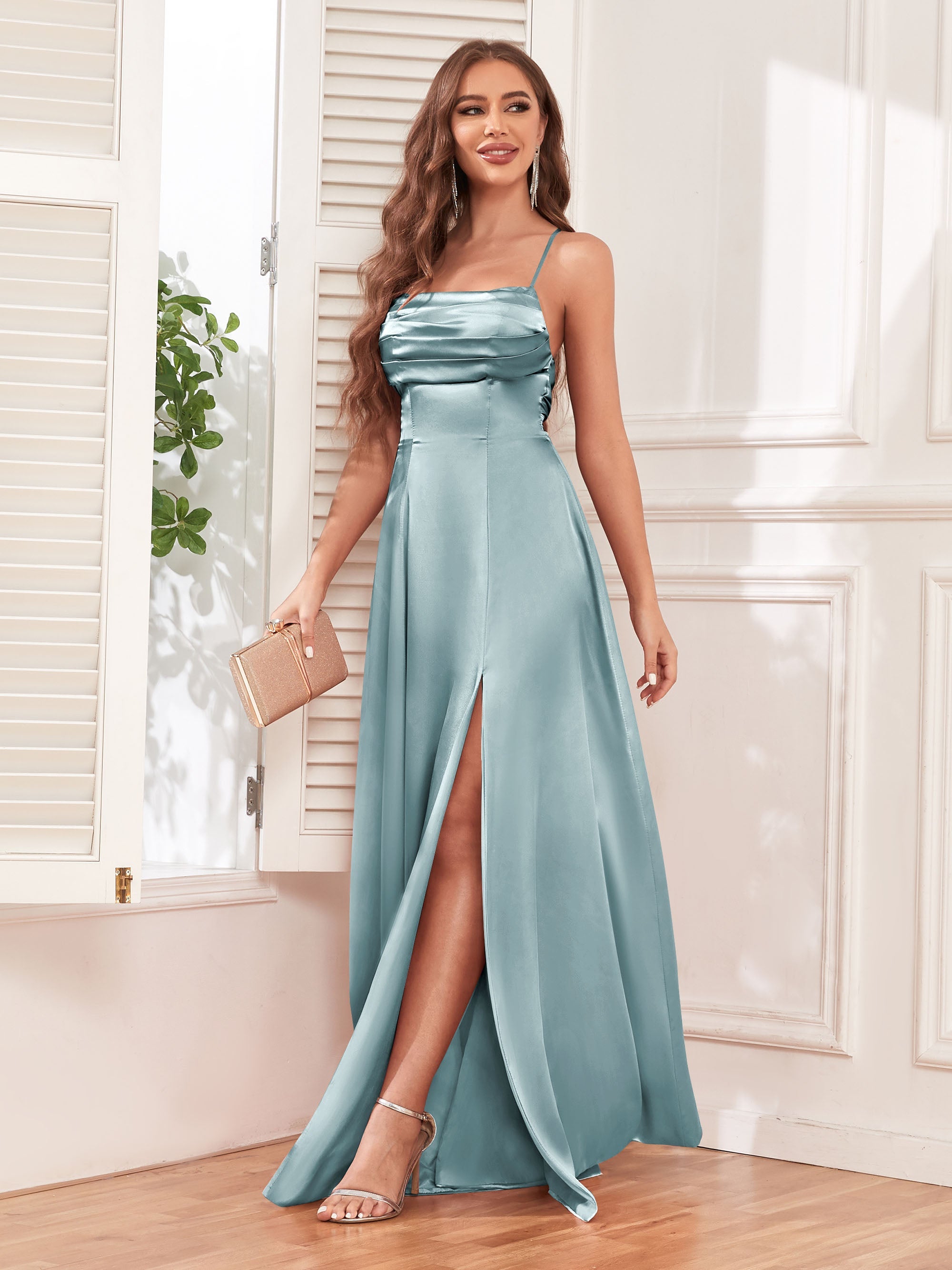 Jocelyn Romantic A-Line Ruched Open Back Satin Formal Dresses