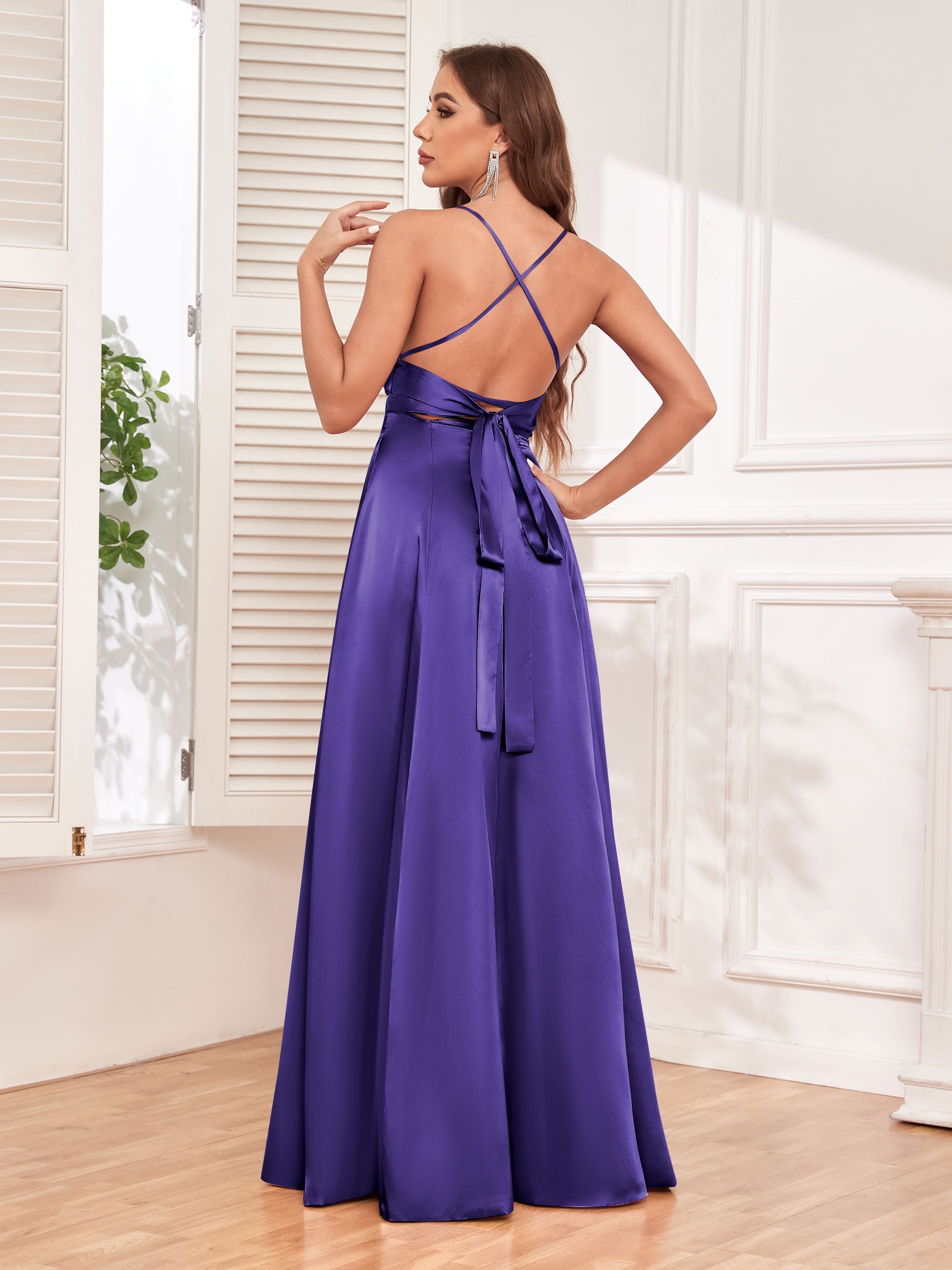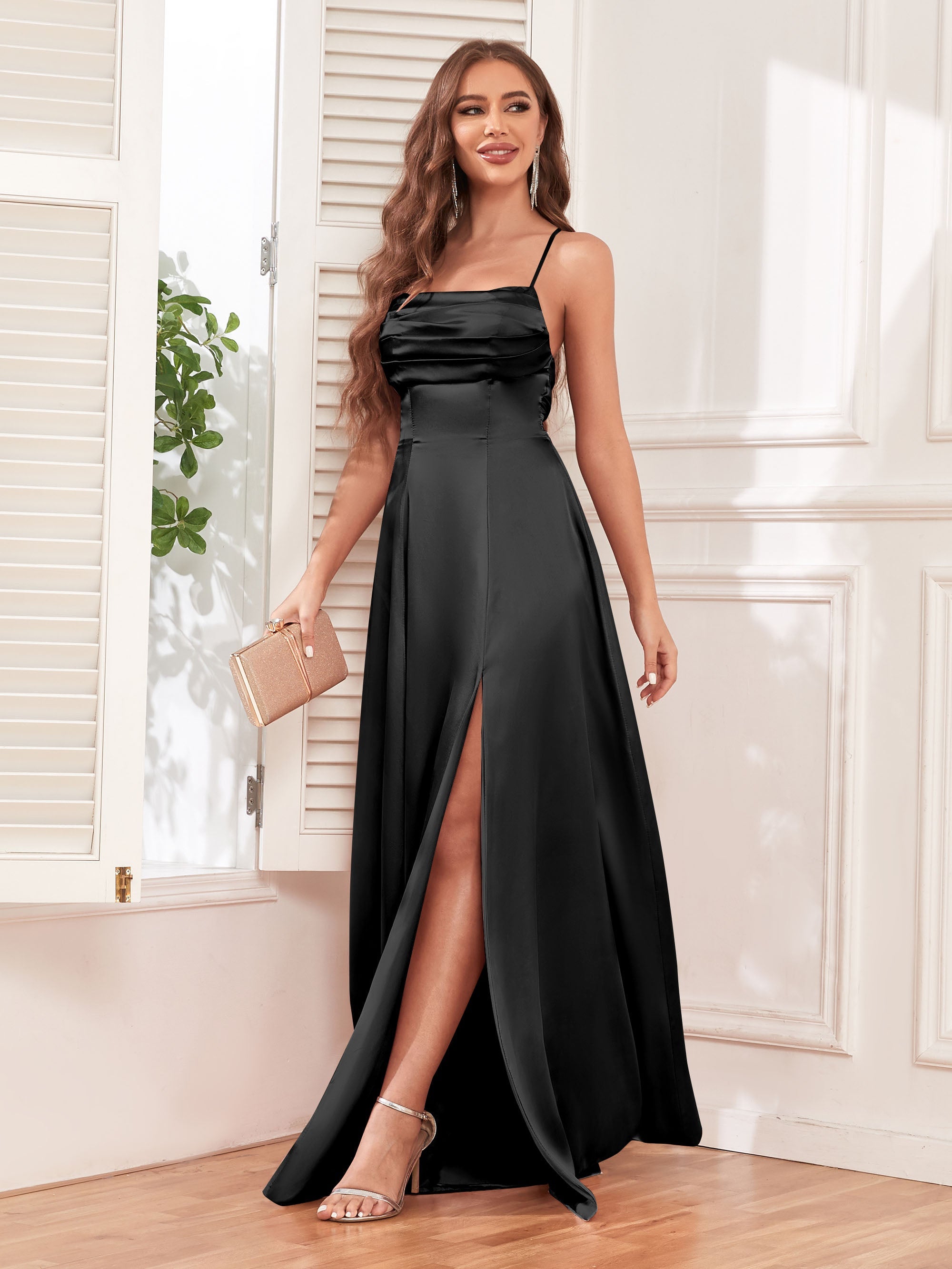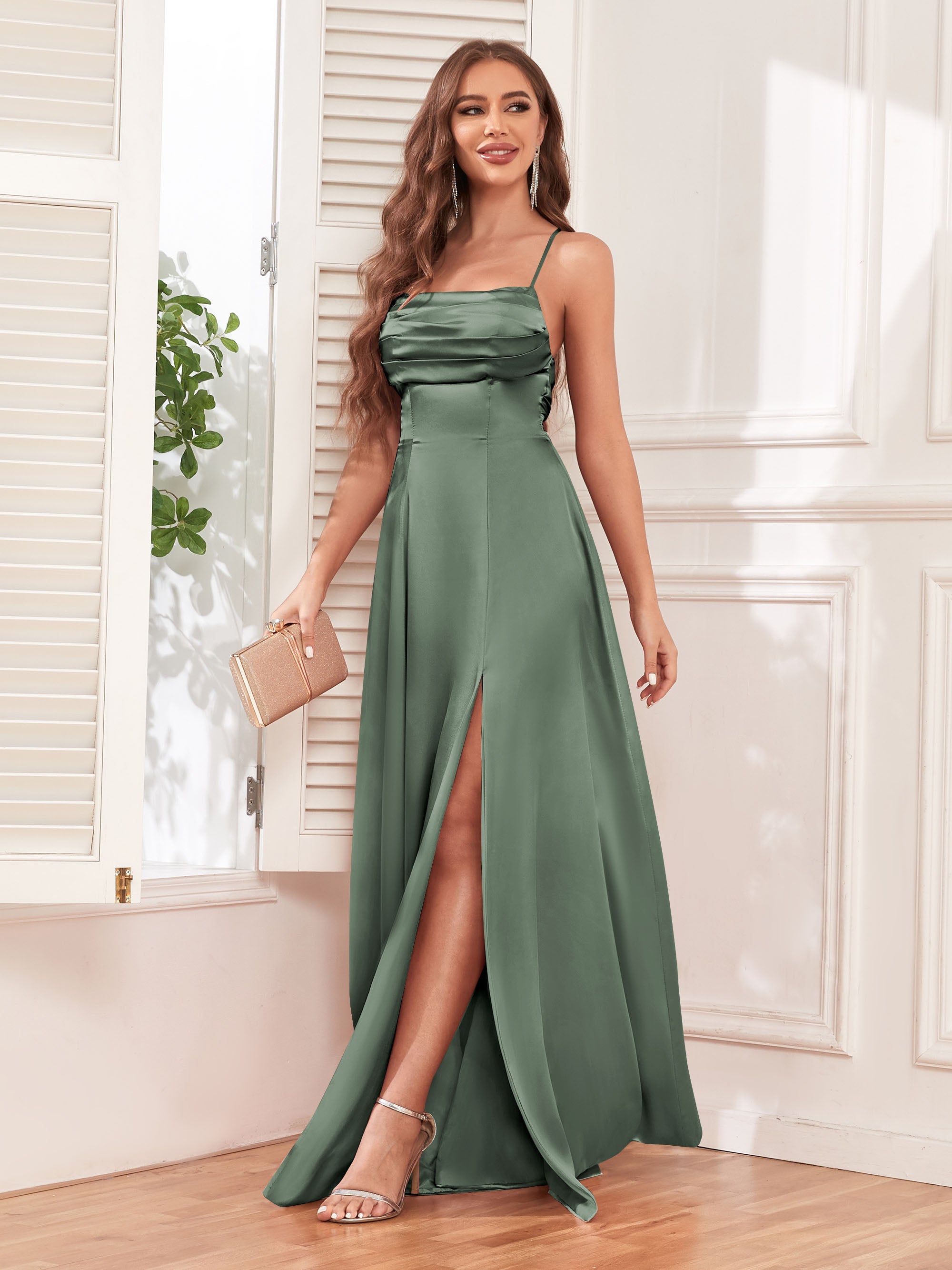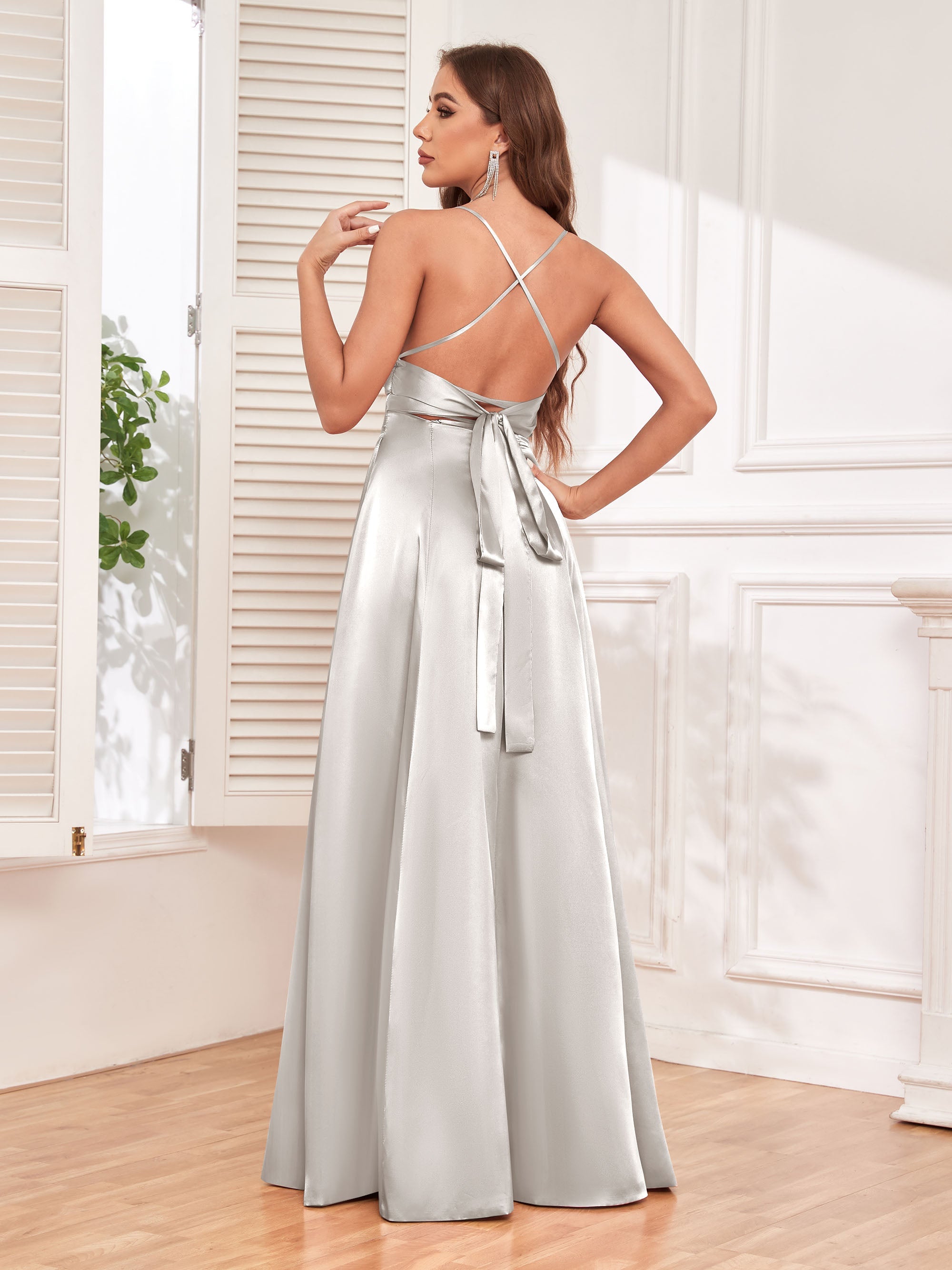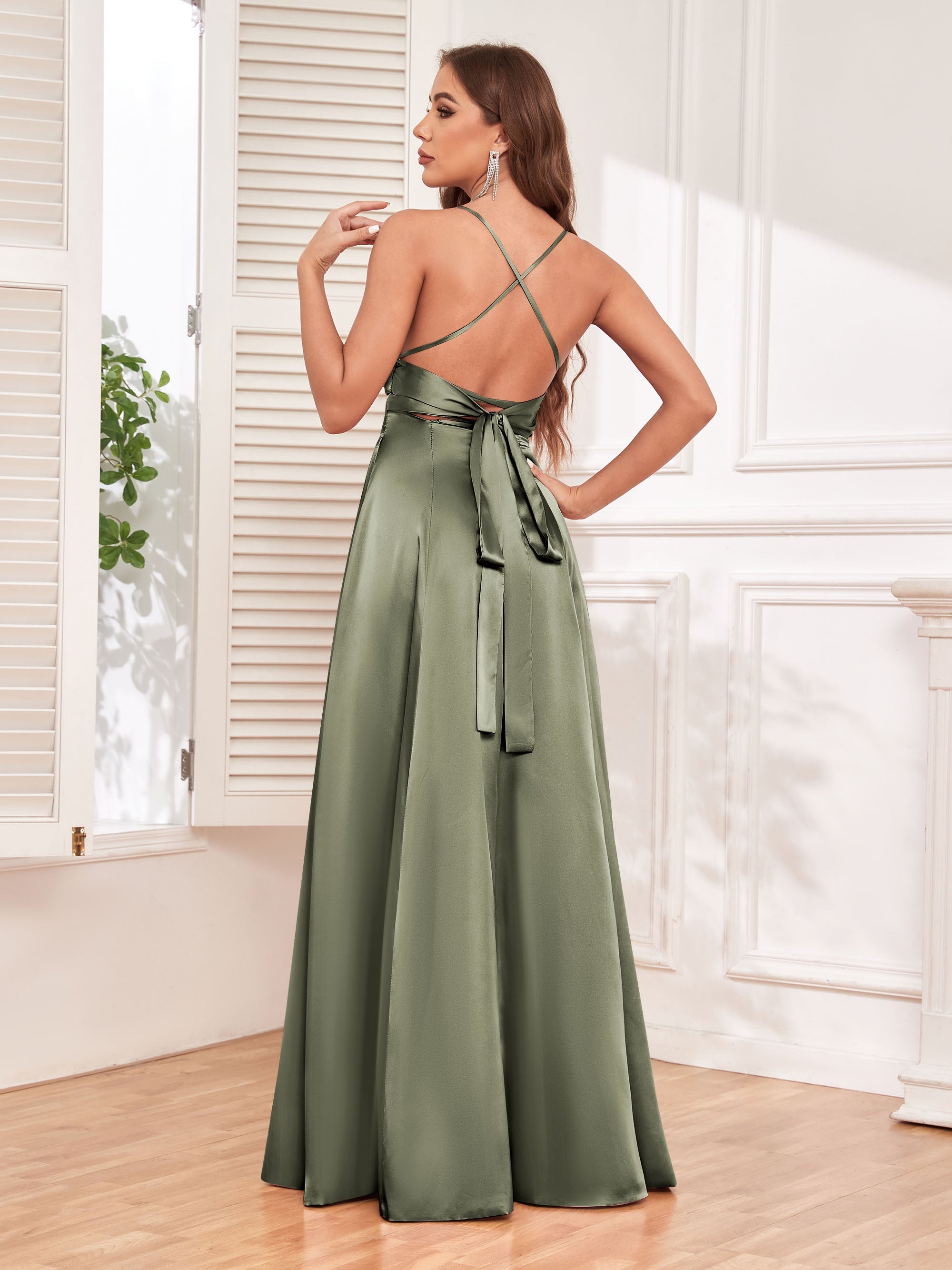 Jocelyn Romantic A-Line Ruched Open Back Satin Formal Dresses