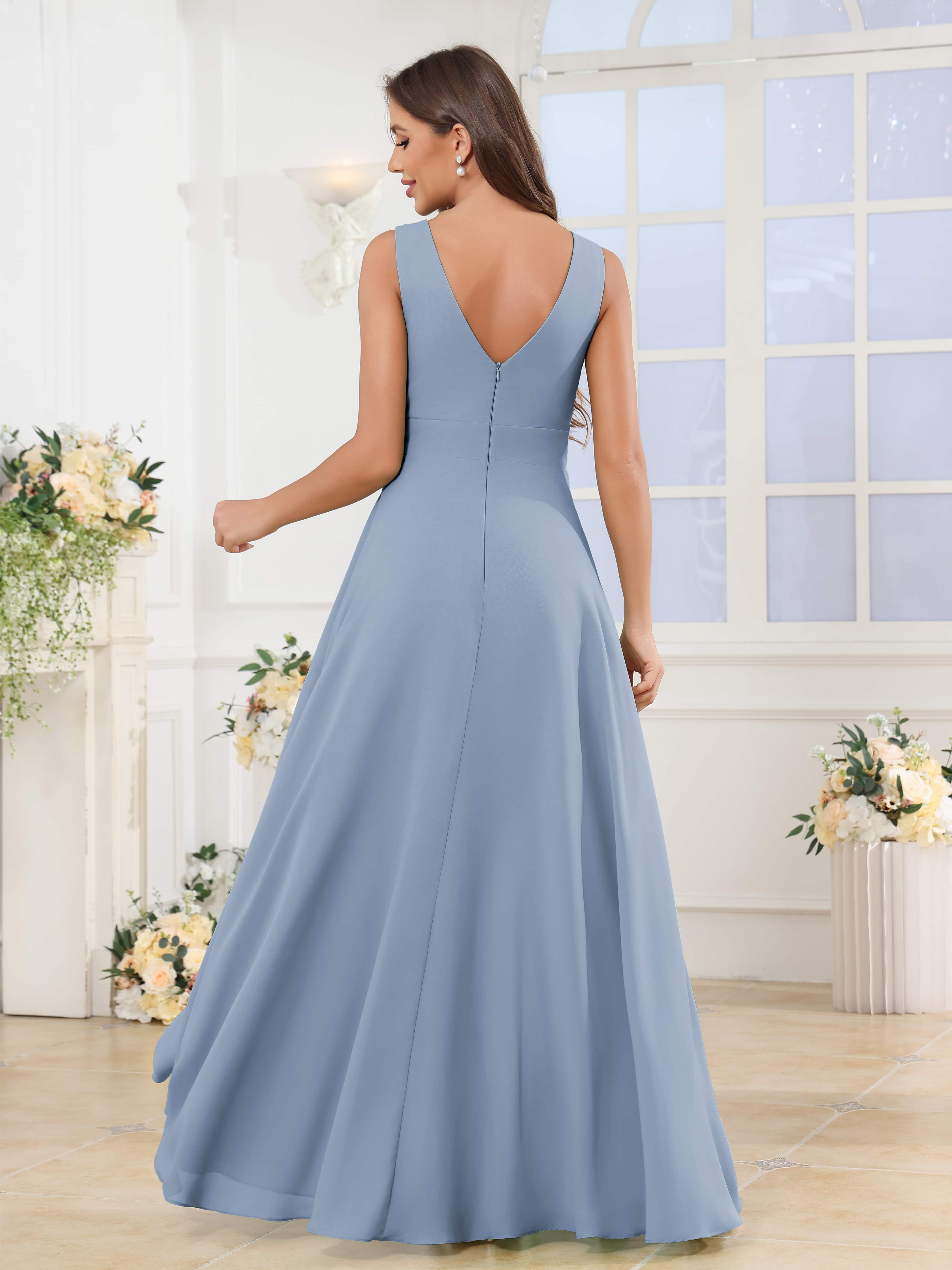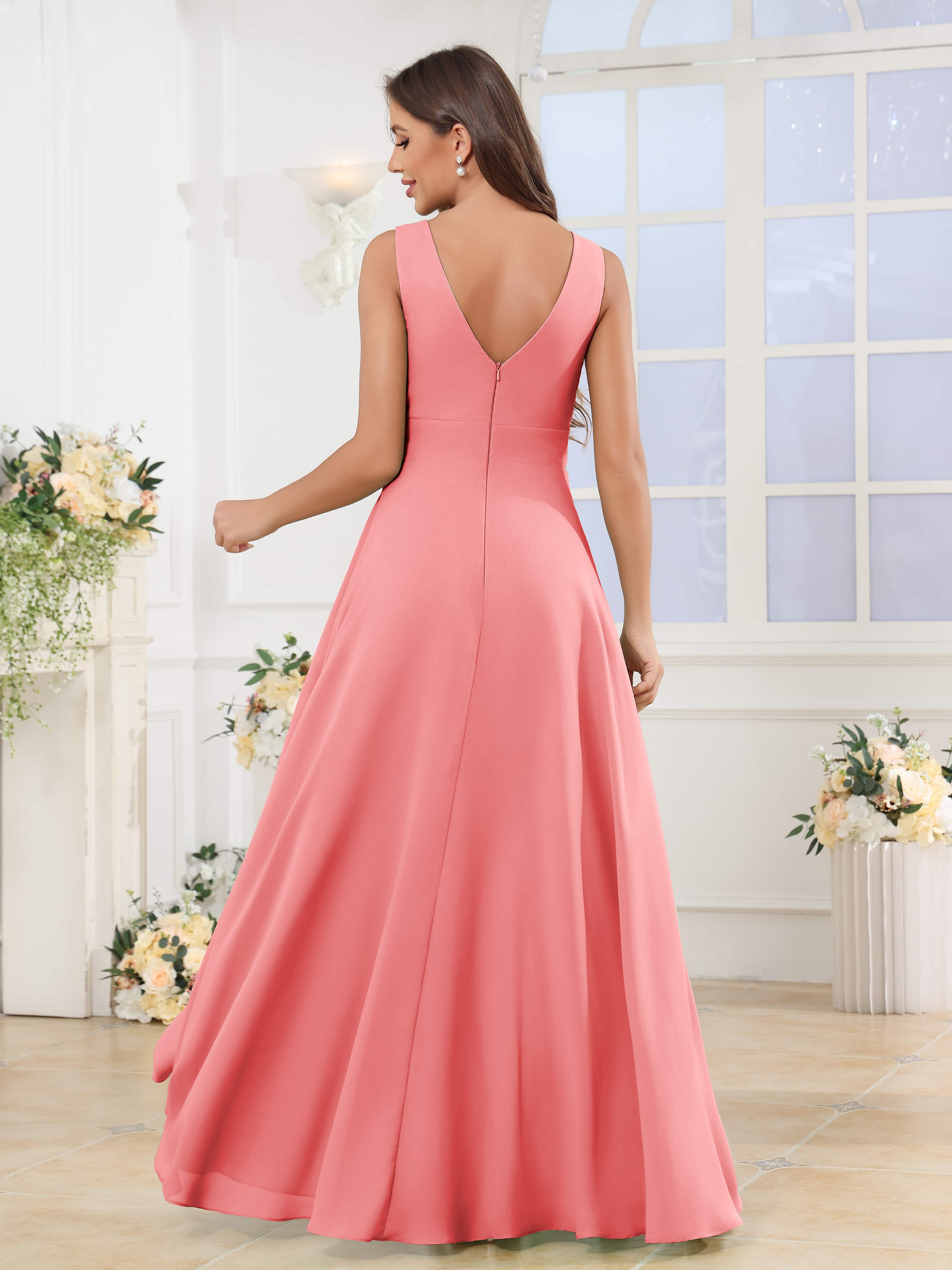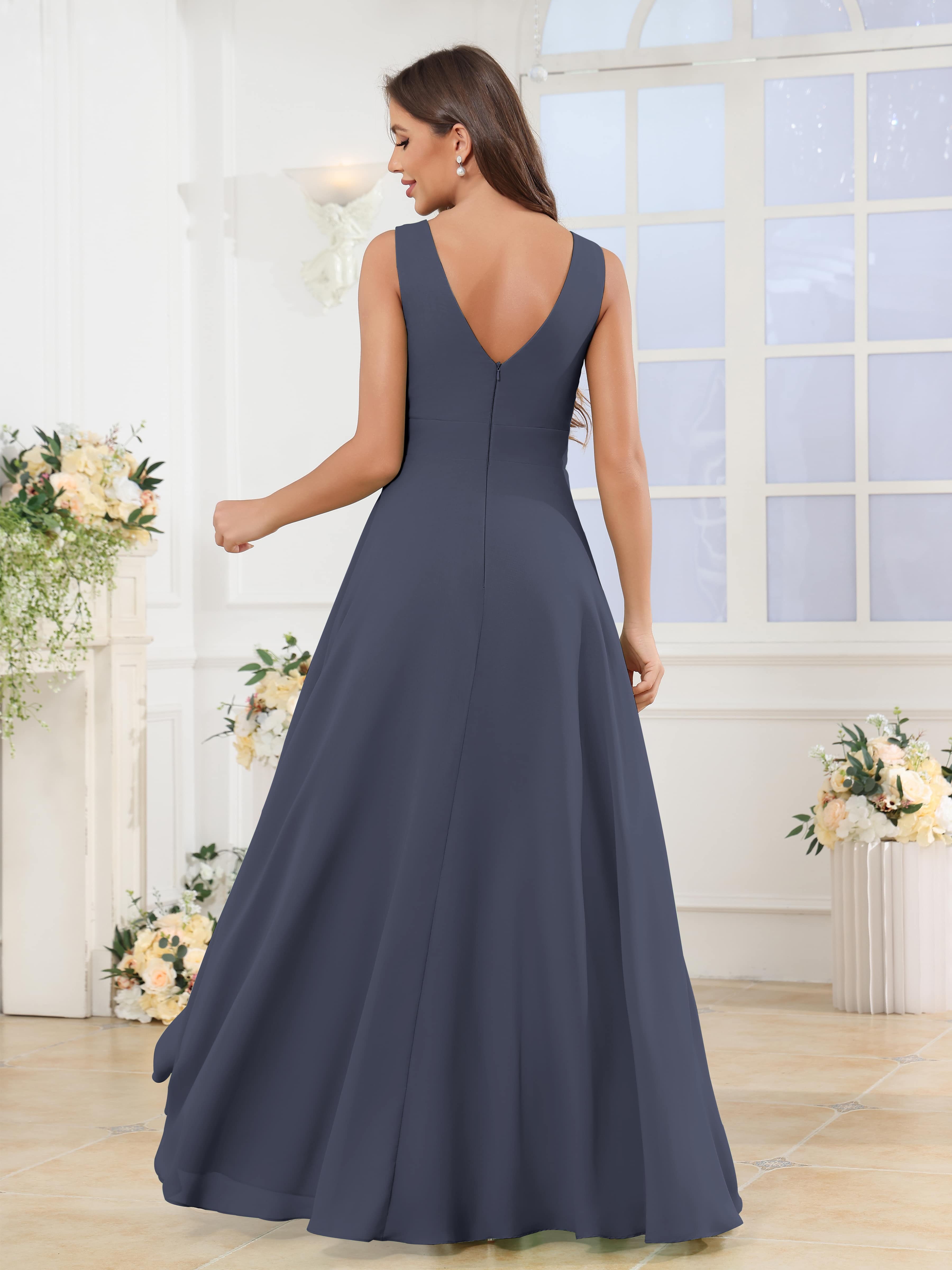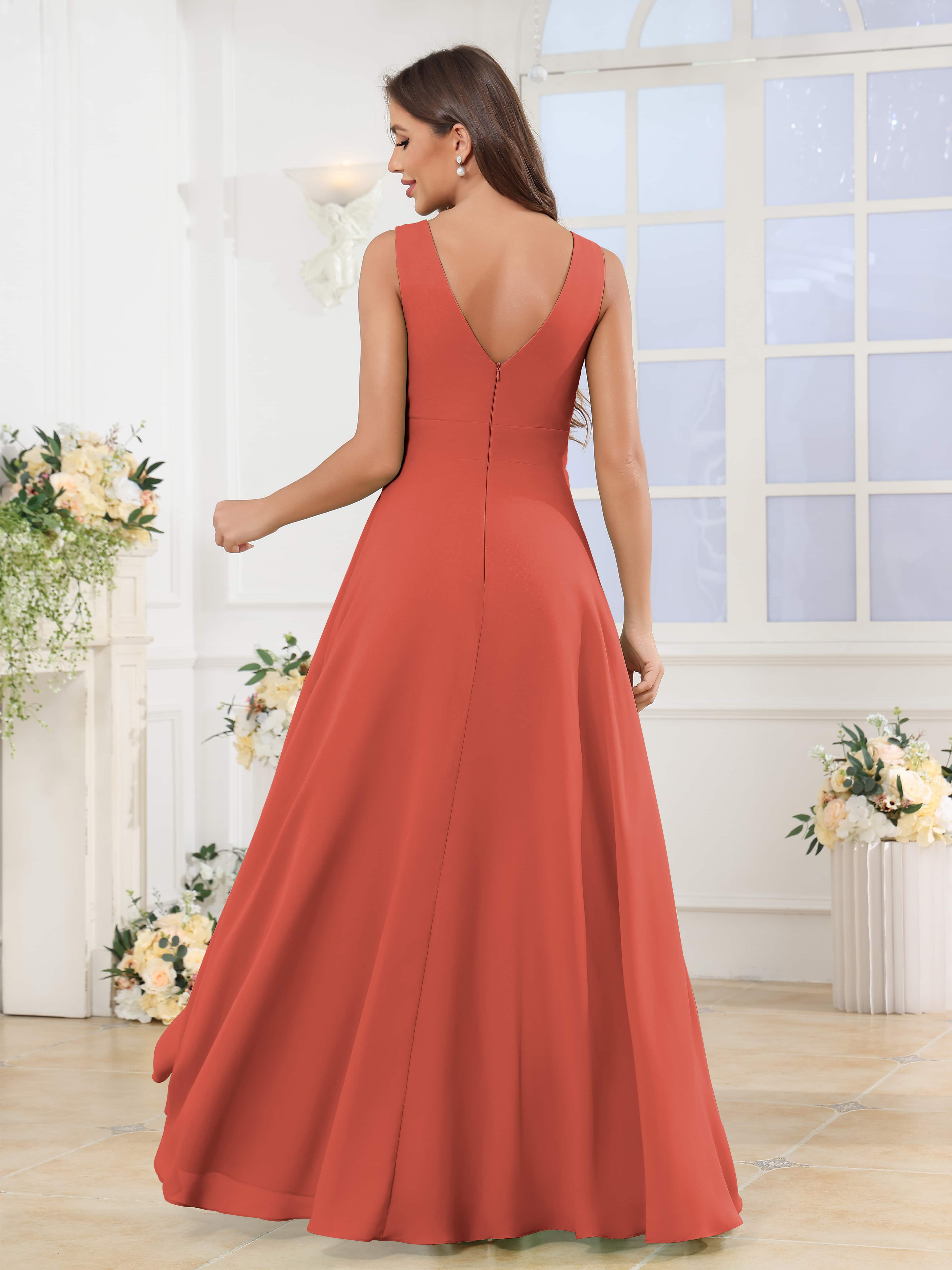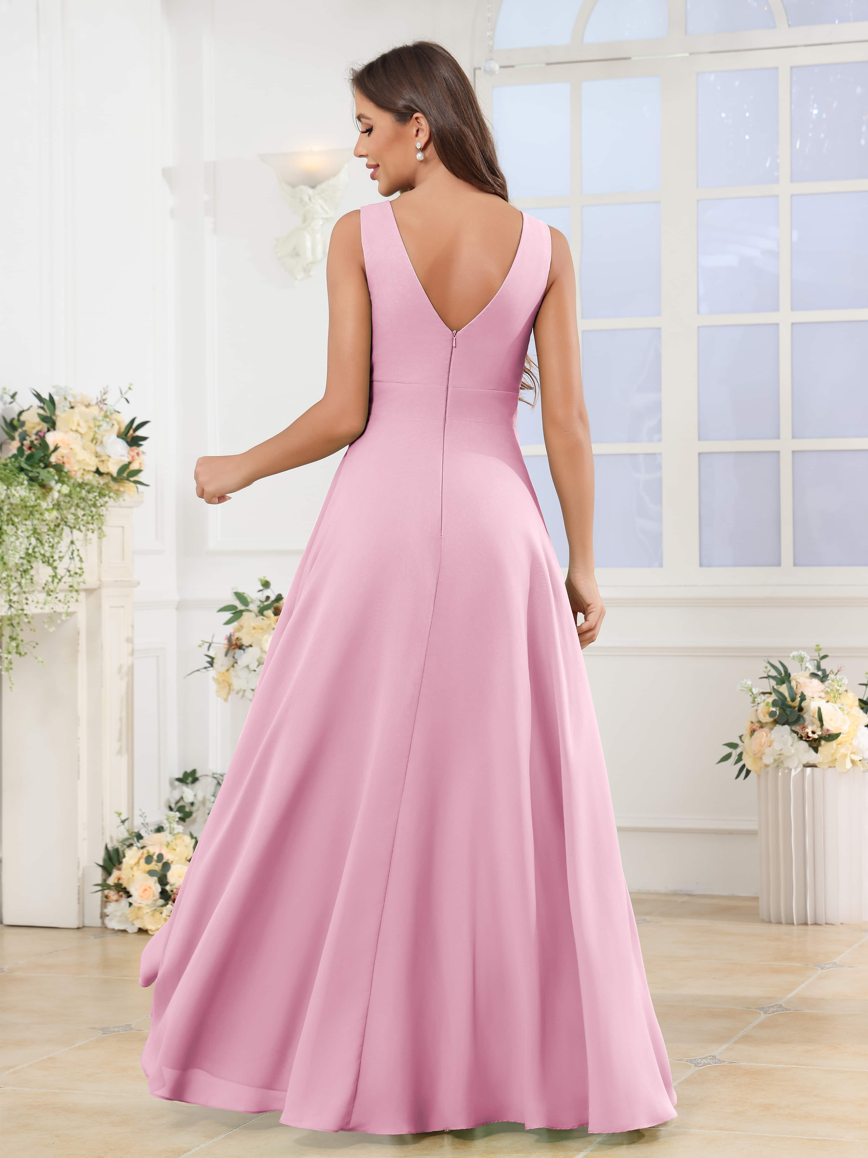 Jolie Timeless V-Neck Pleated Ruffles Long Chiffon Bridesmaid Dresses