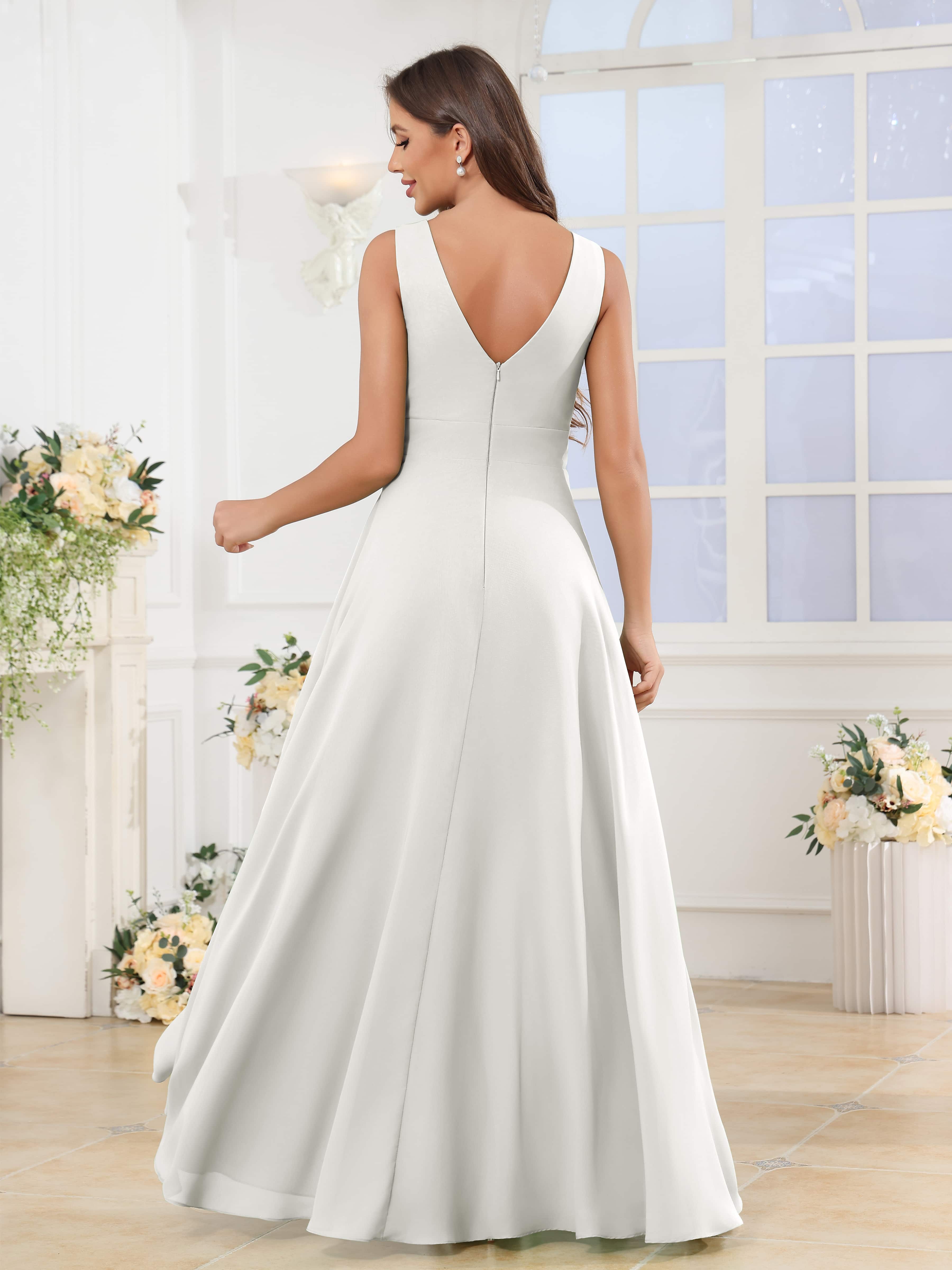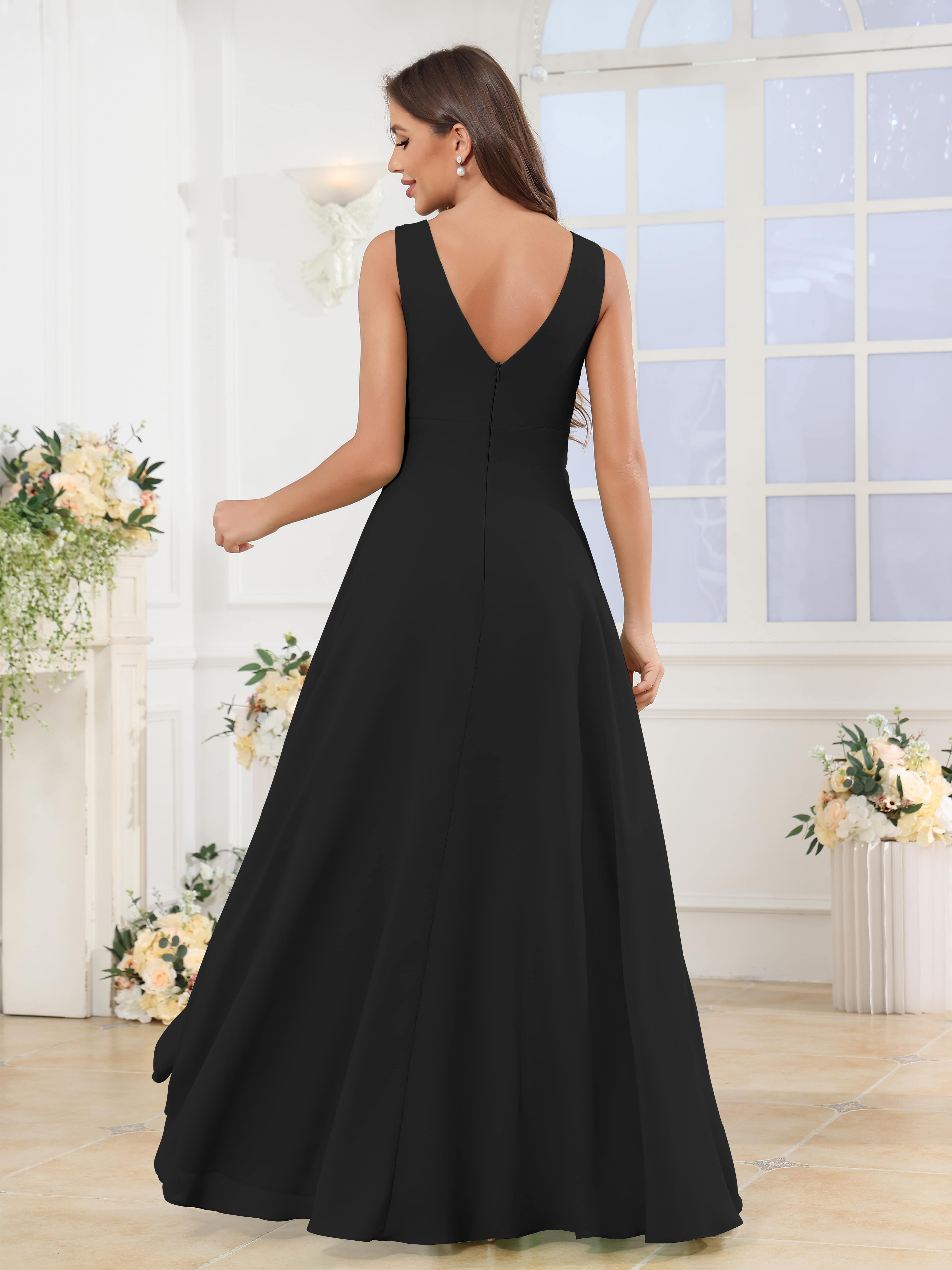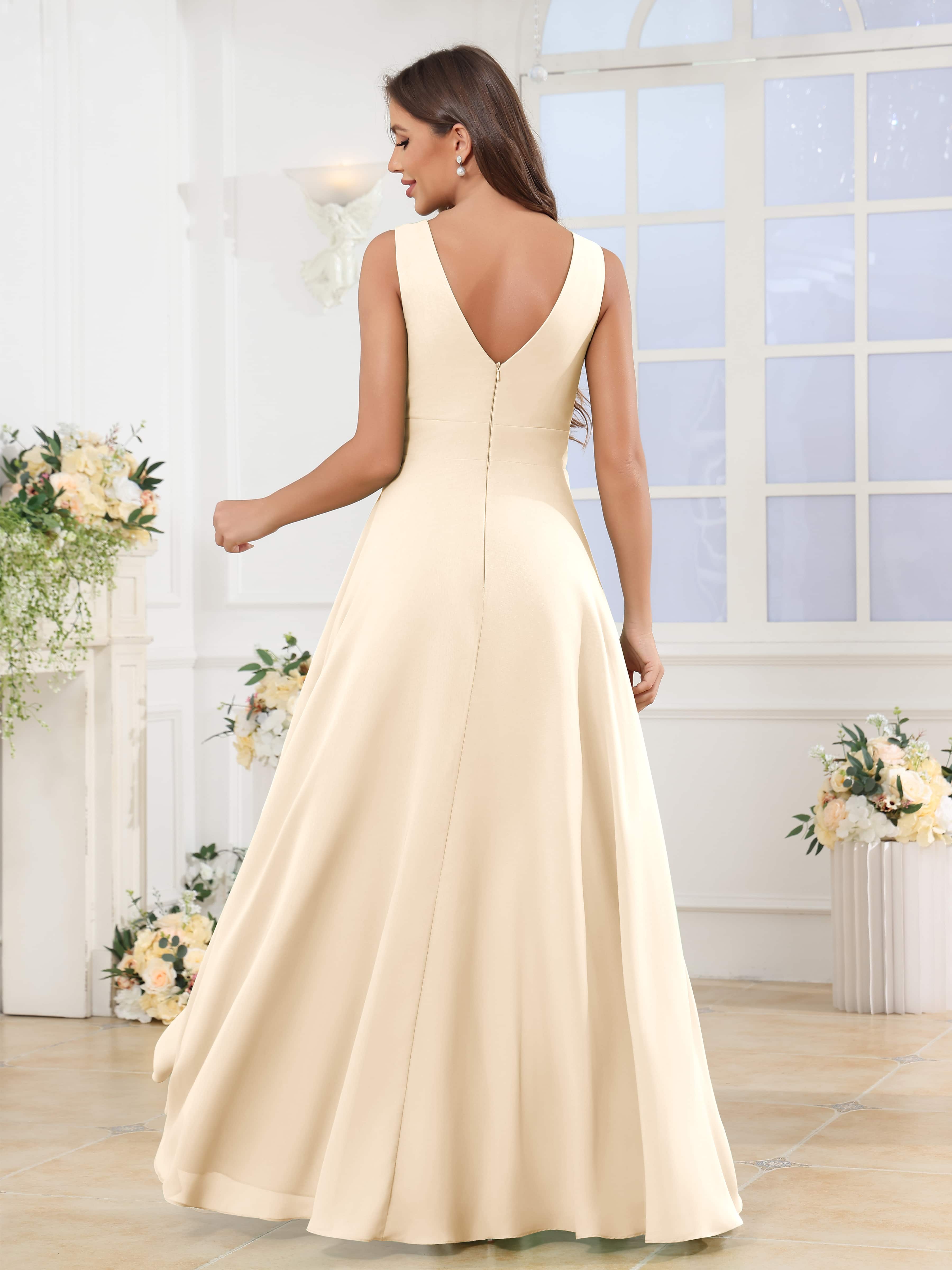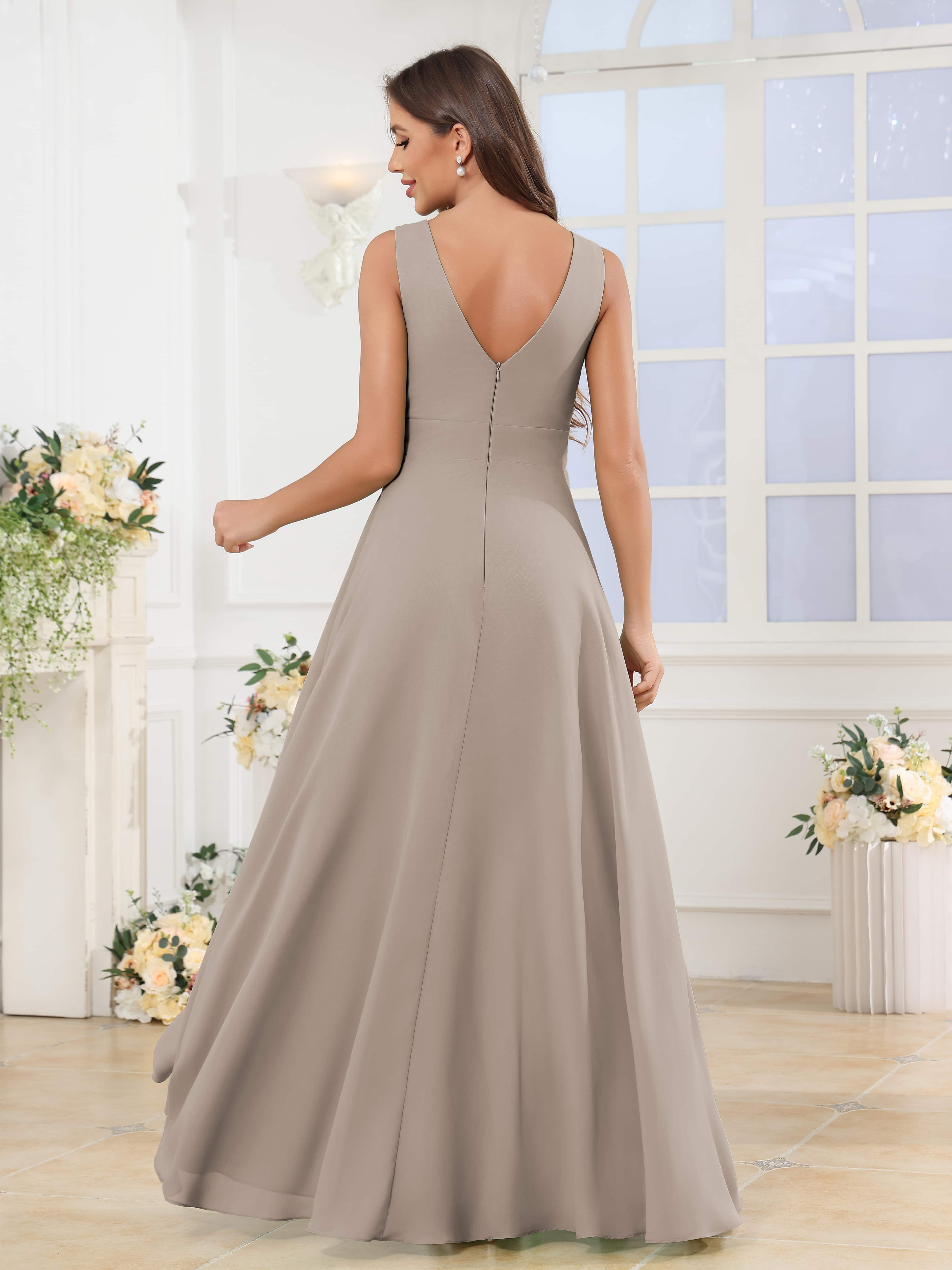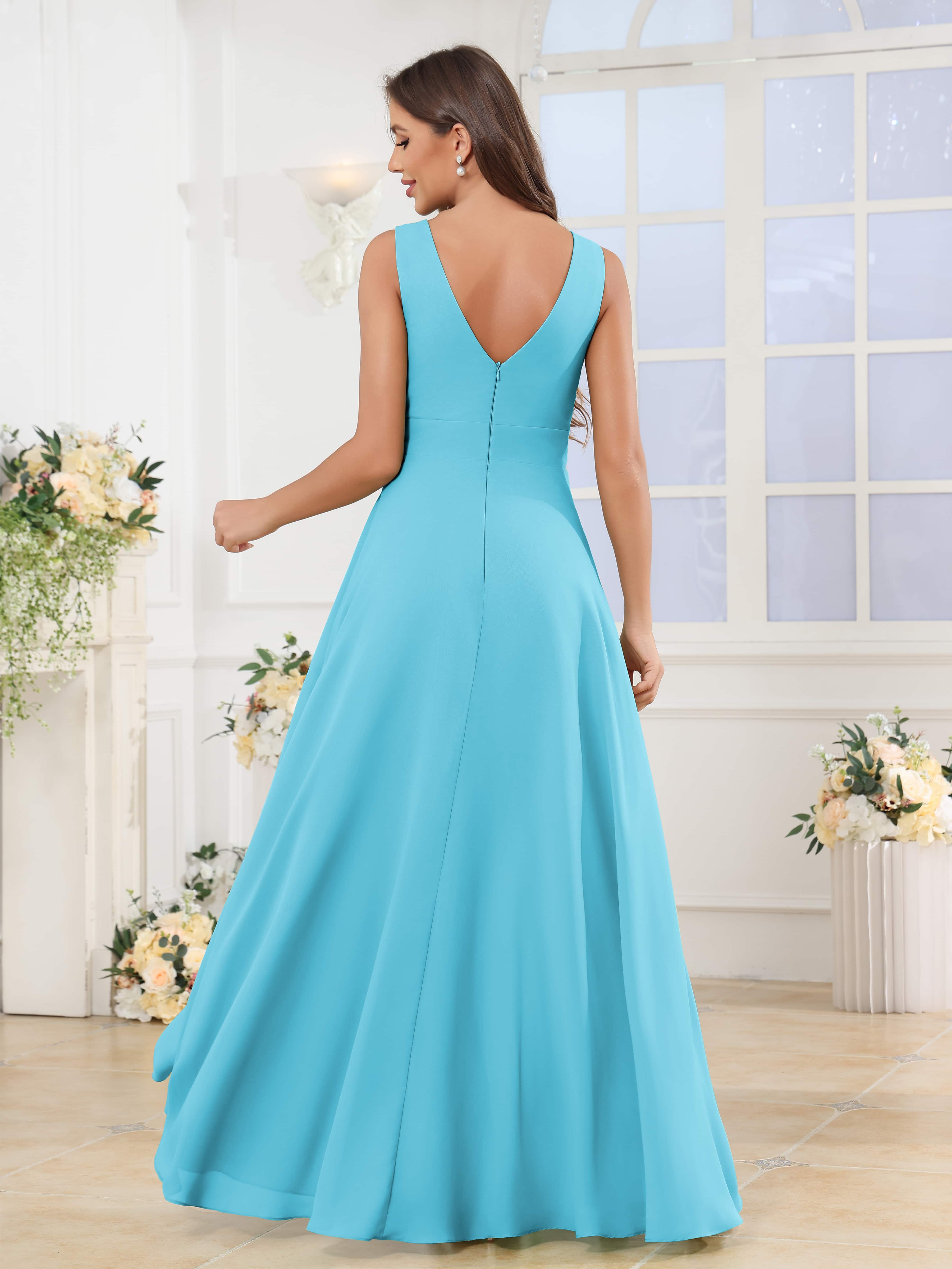 Jolie Timeless V-Neck Pleated Ruffles Long Chiffon Bridesmaid Dresses
