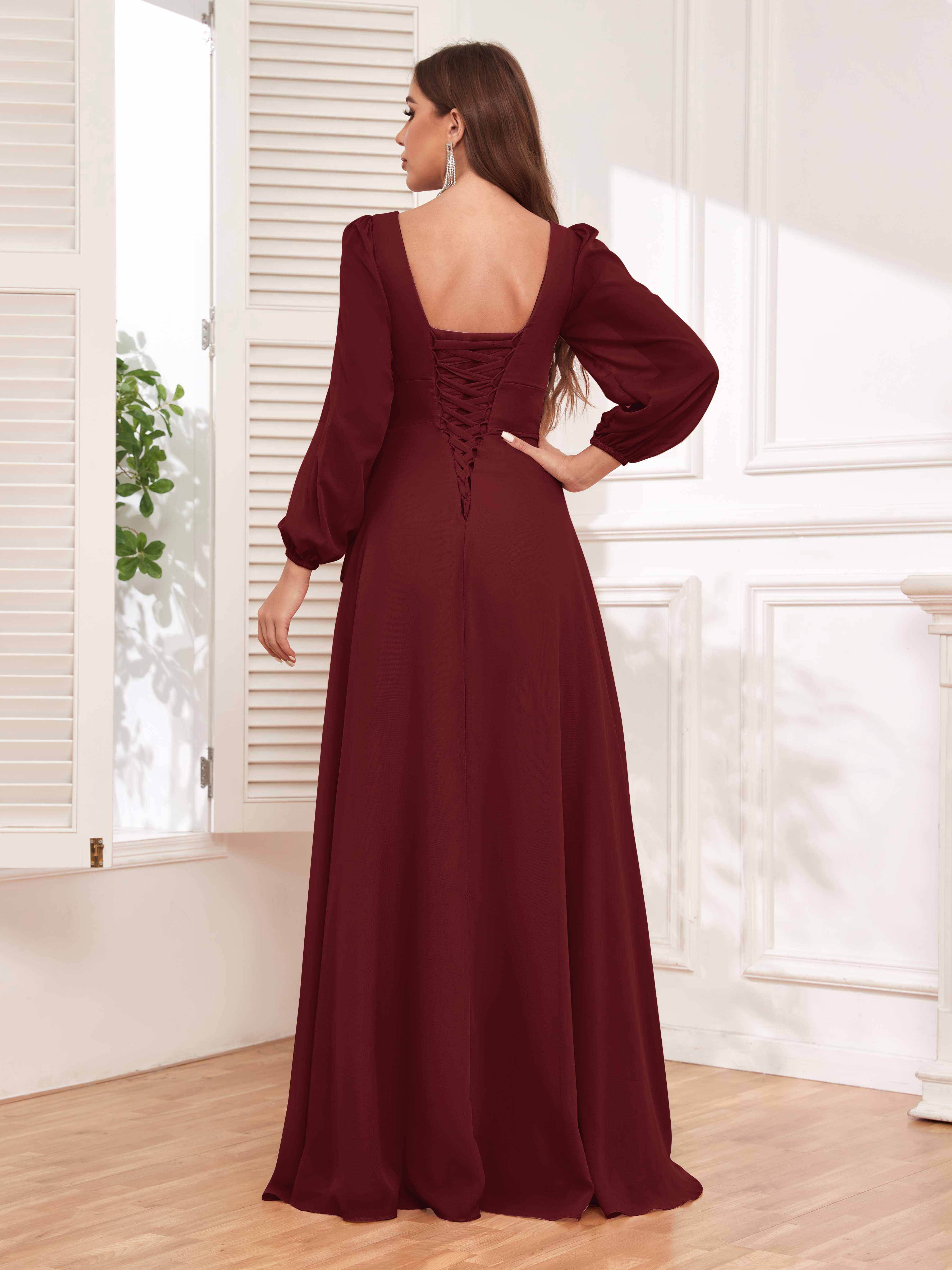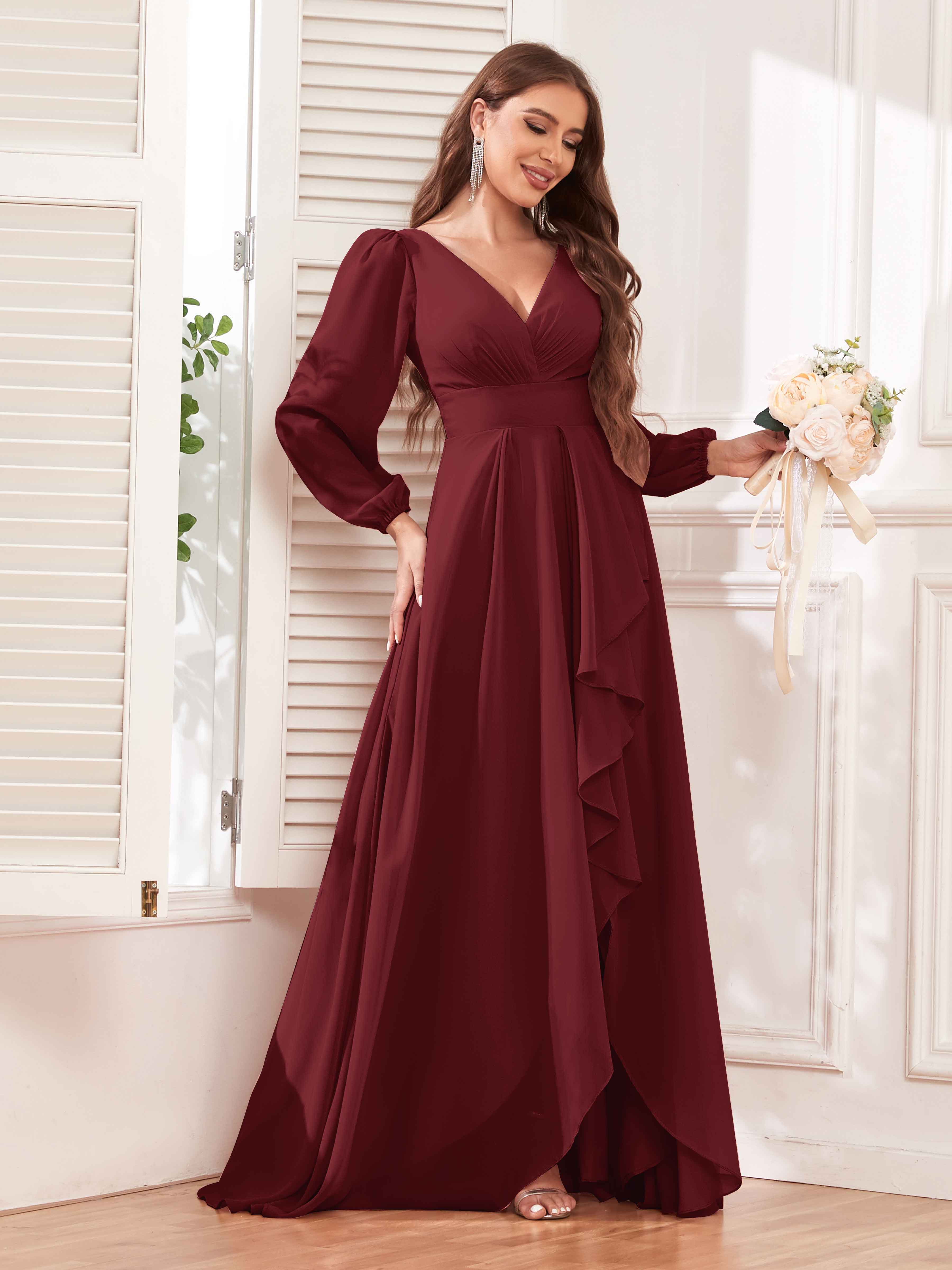 Julianna Trendy A-Line Long Sleeves Ruffles Chiffon Bridesmaid Dresses