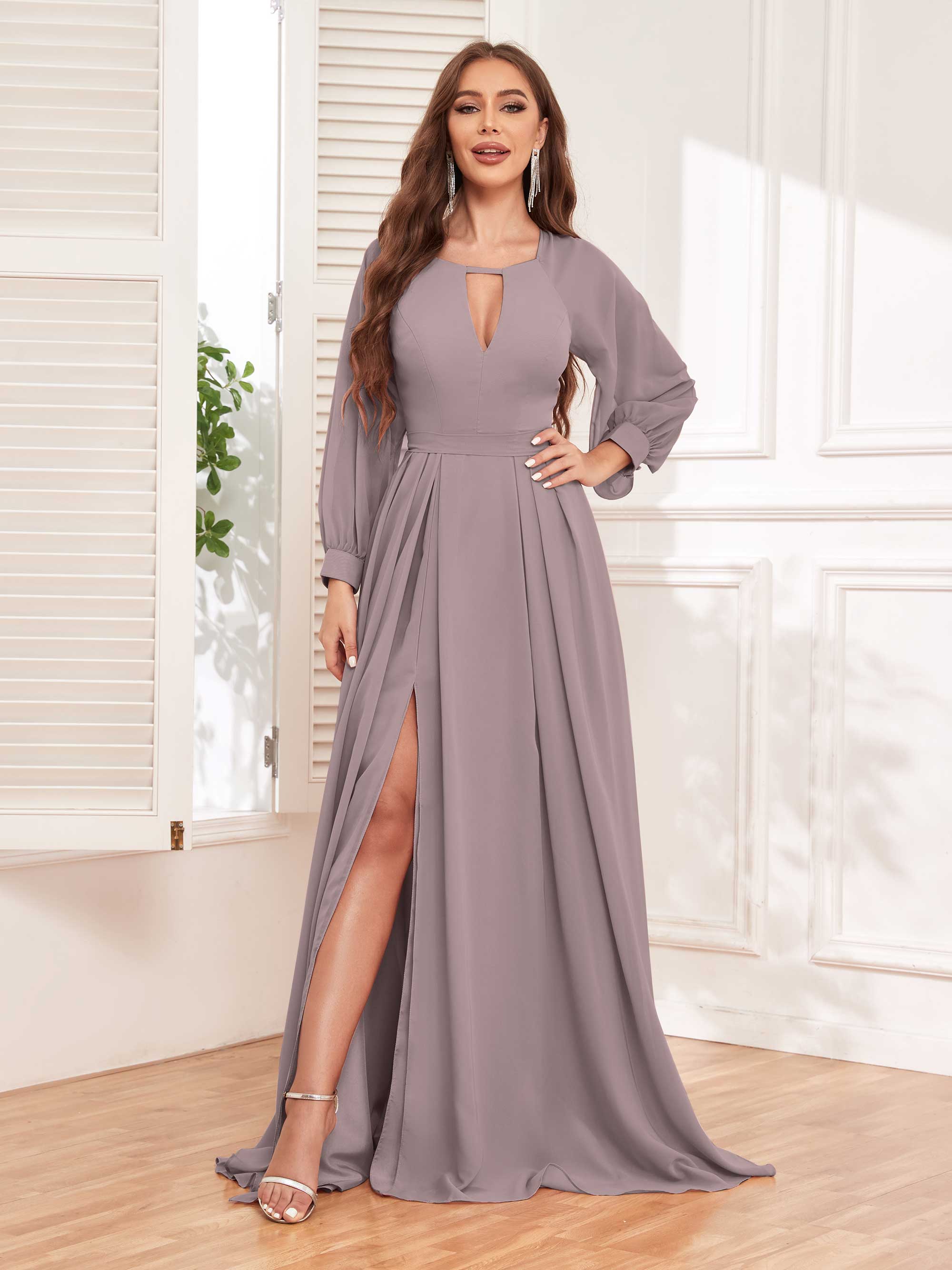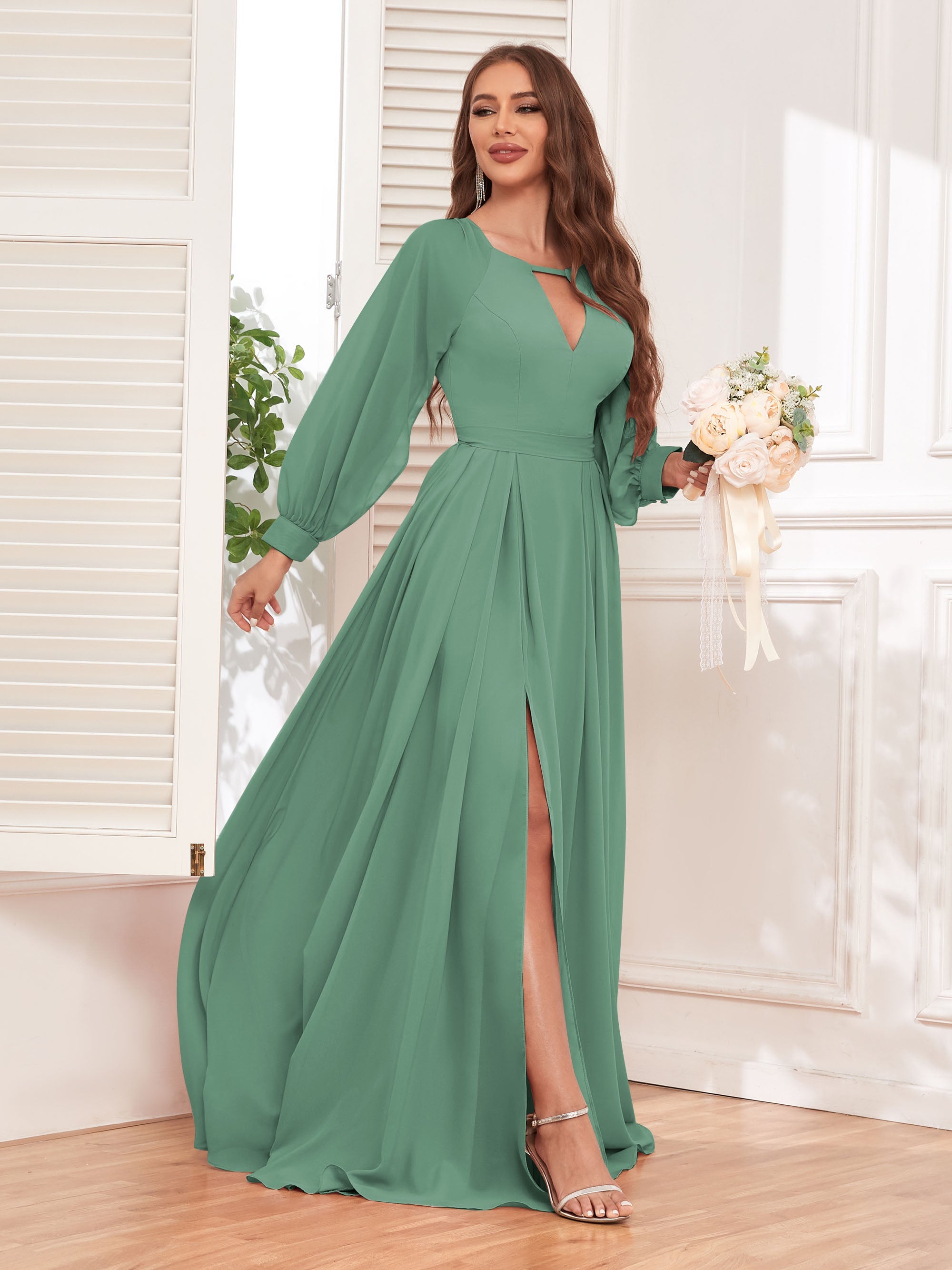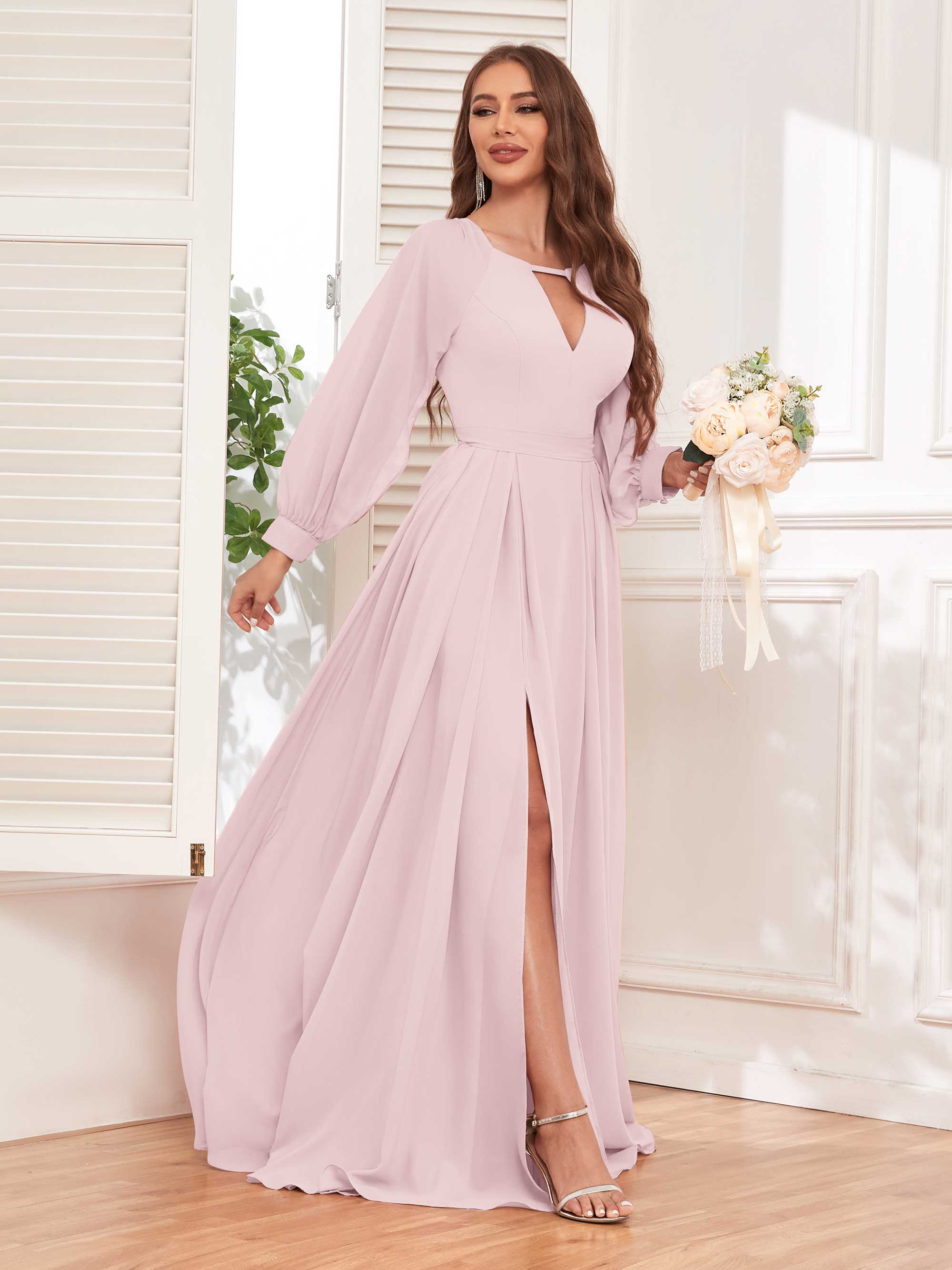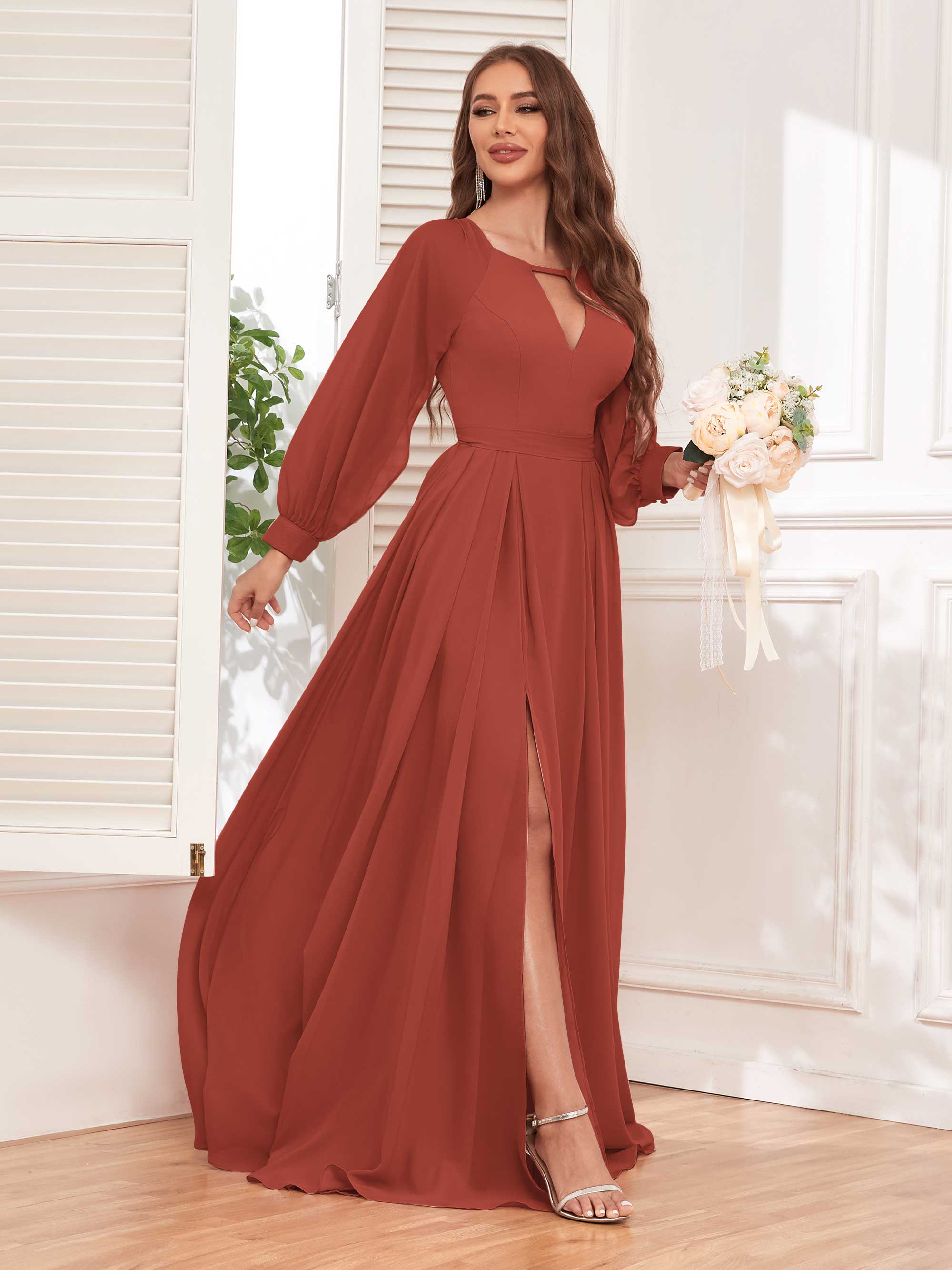 Juliet Charming Long Sleeves Keyhole Back Chiffon Bridesmaid Dresses