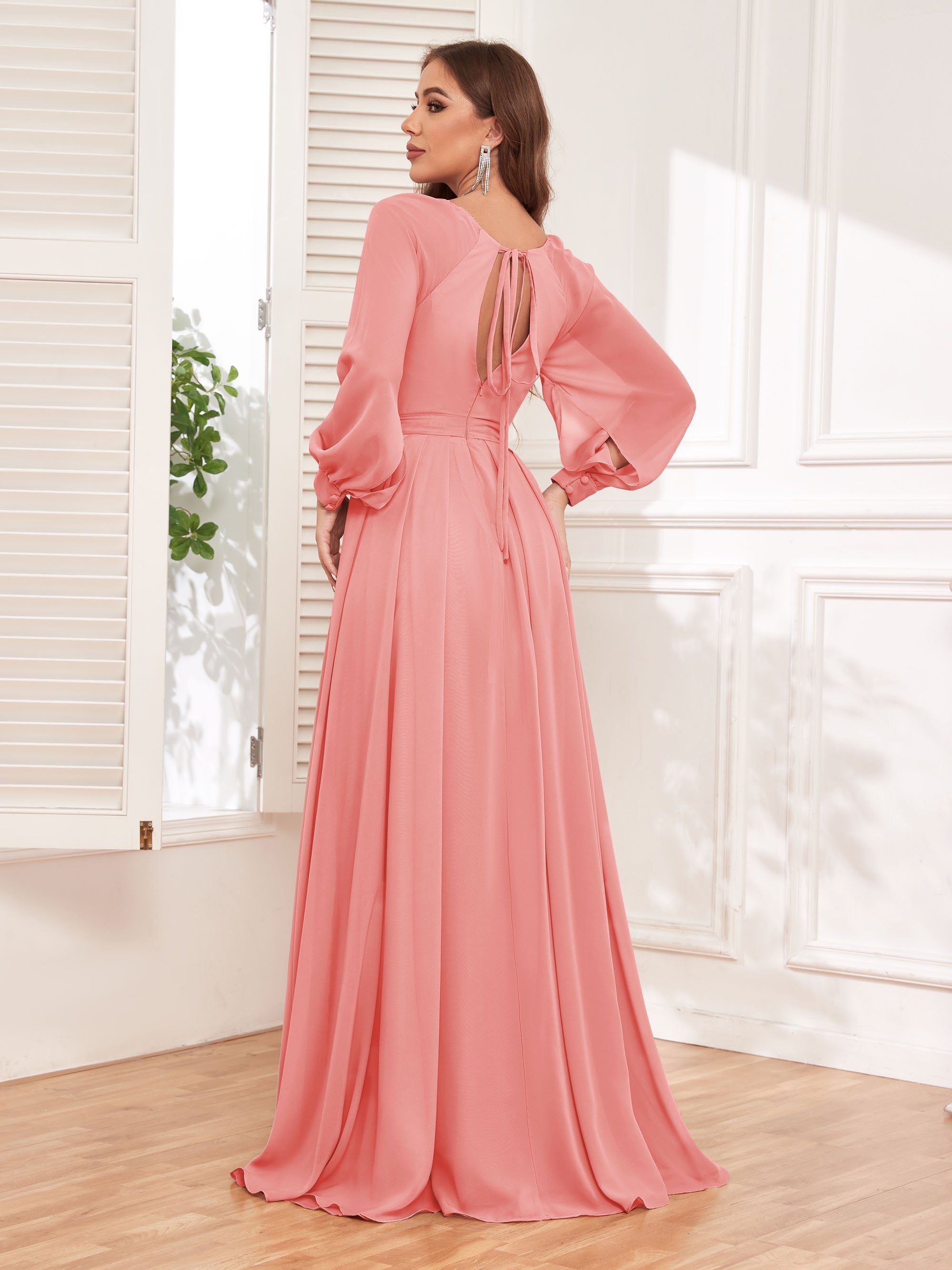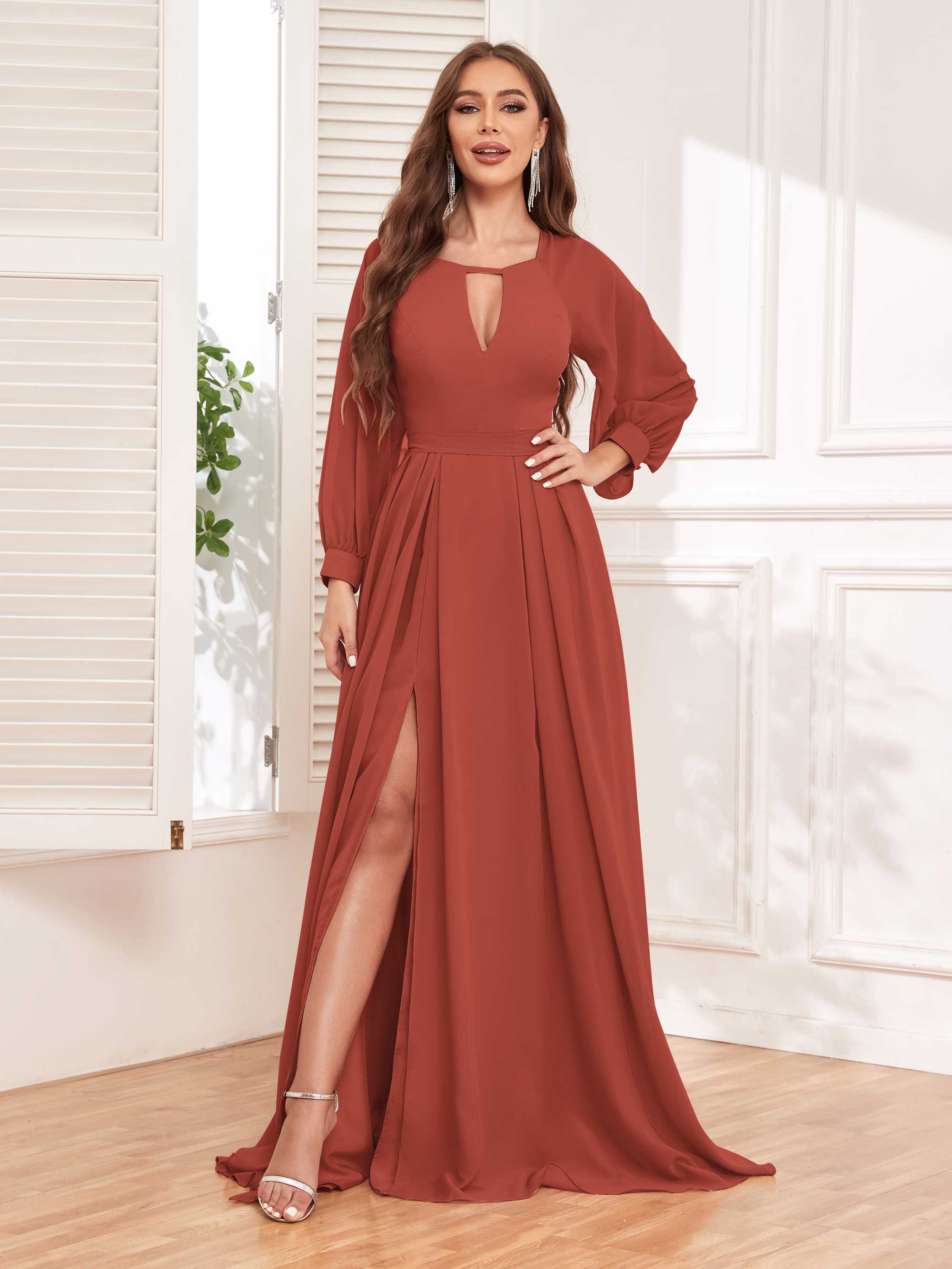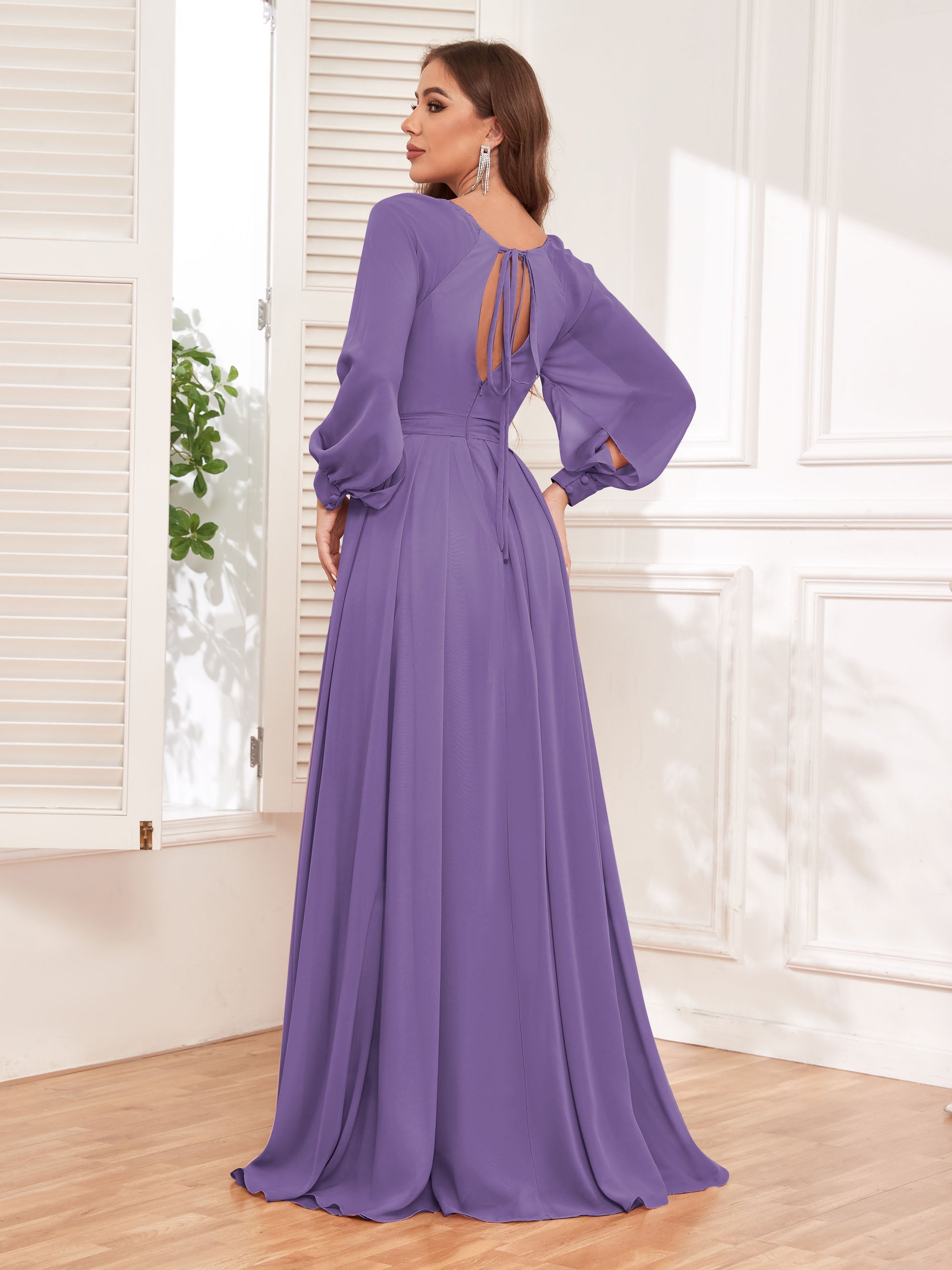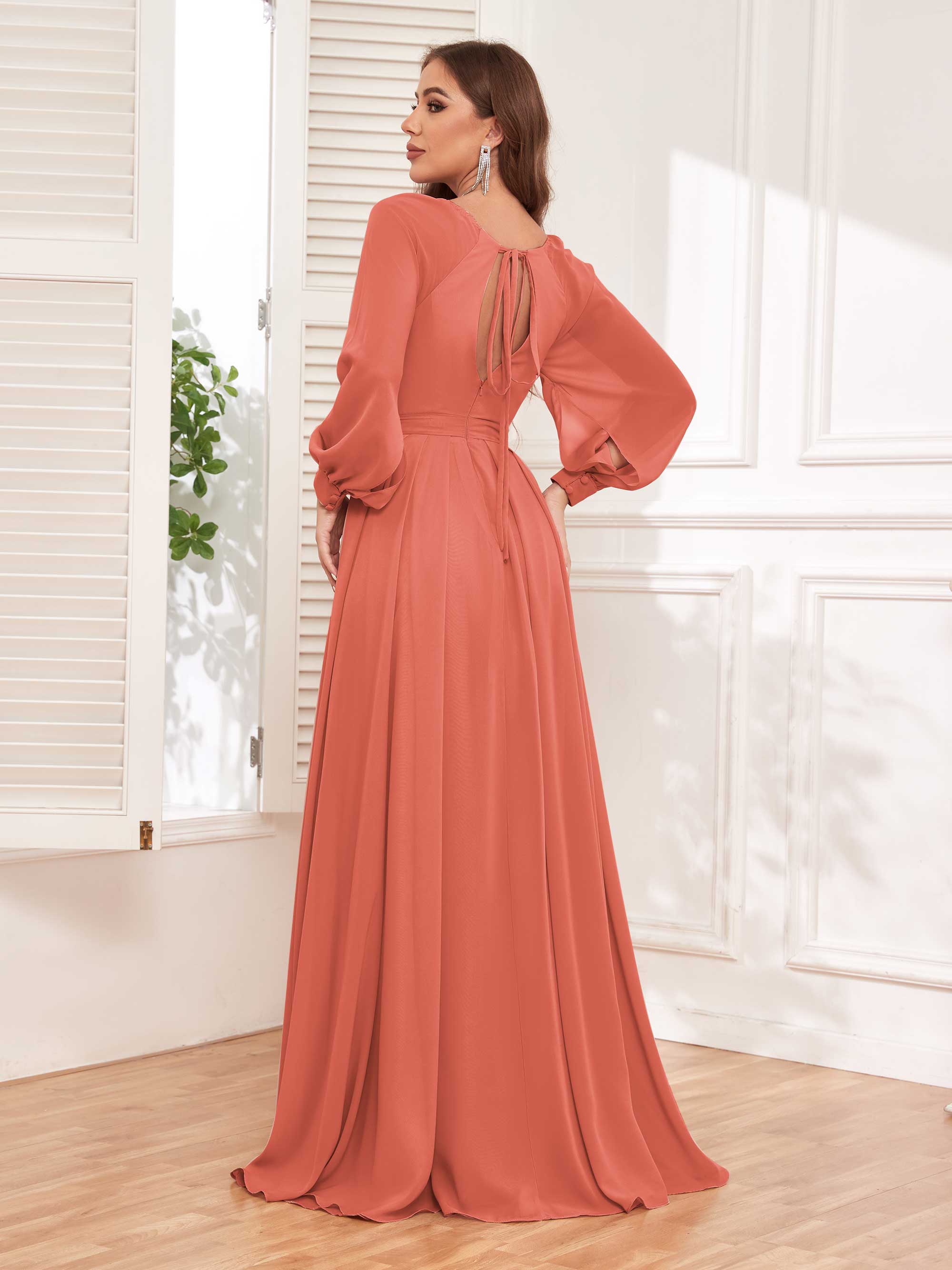 Juliet Charming Long Sleeves Keyhole Back Chiffon Bridesmaid Dresses