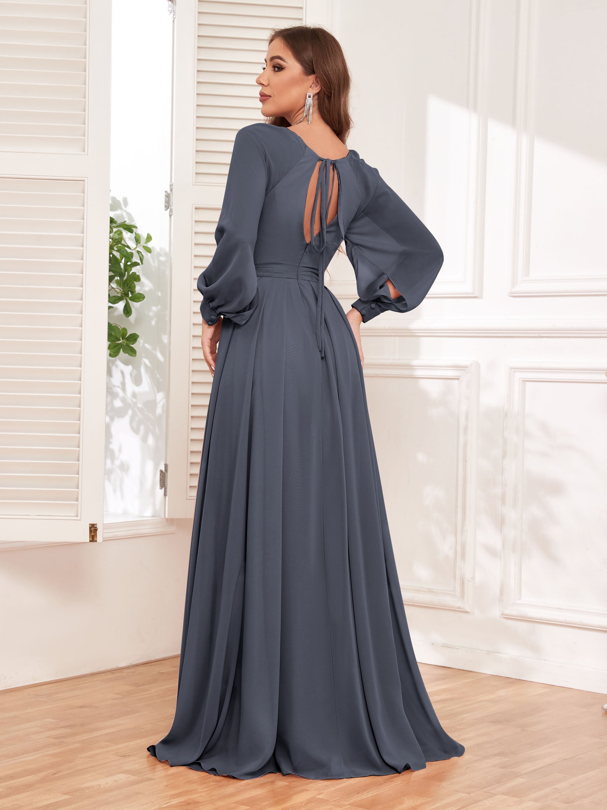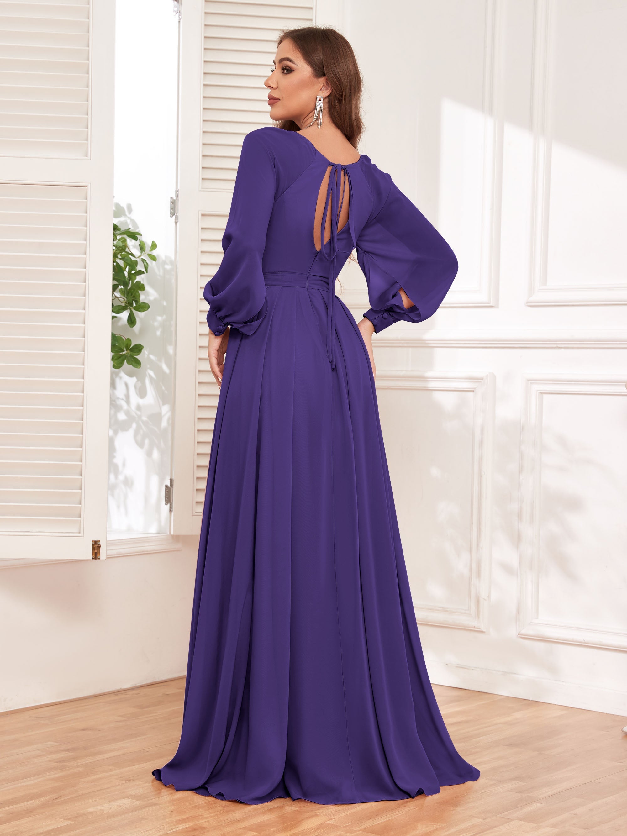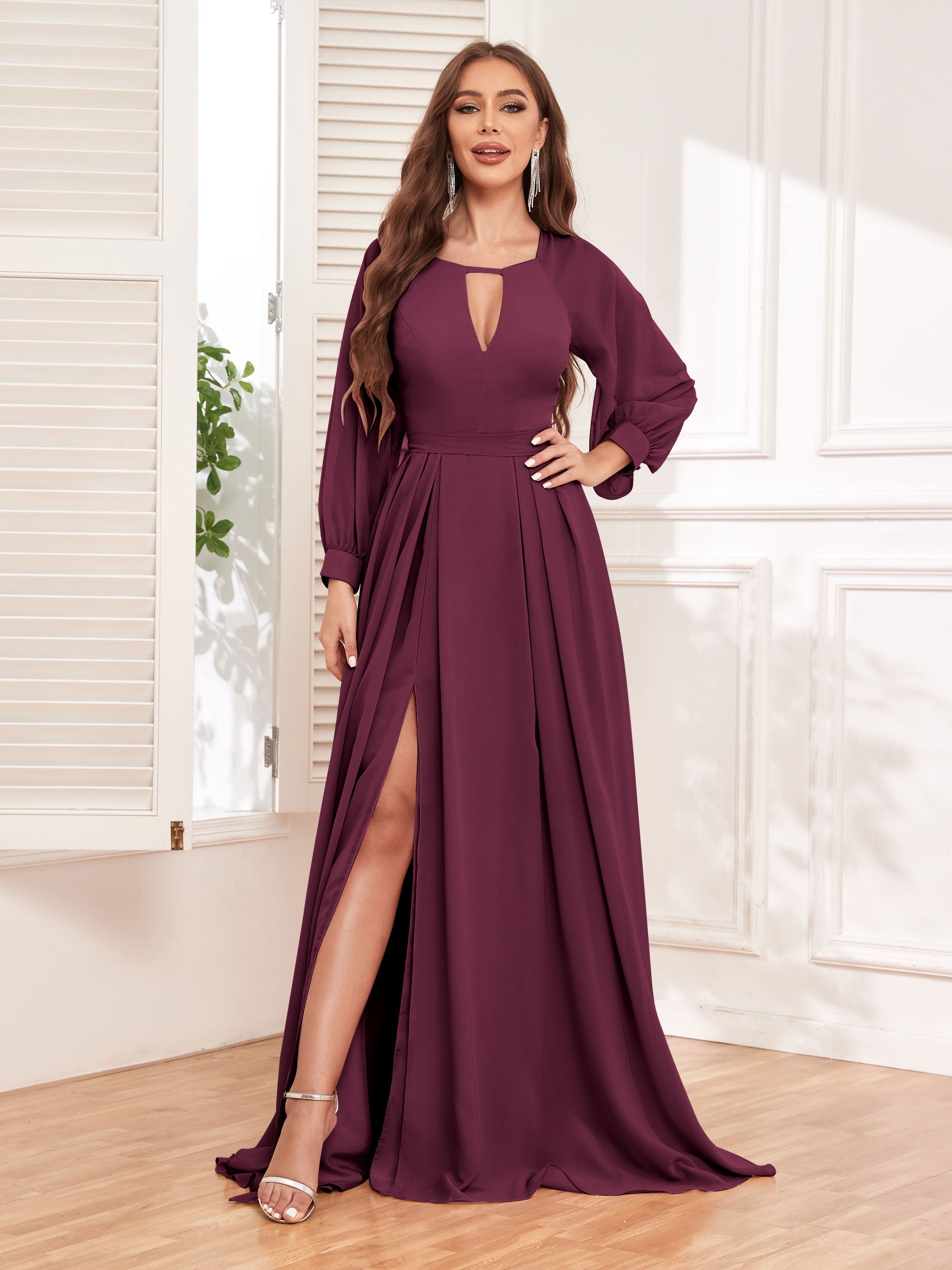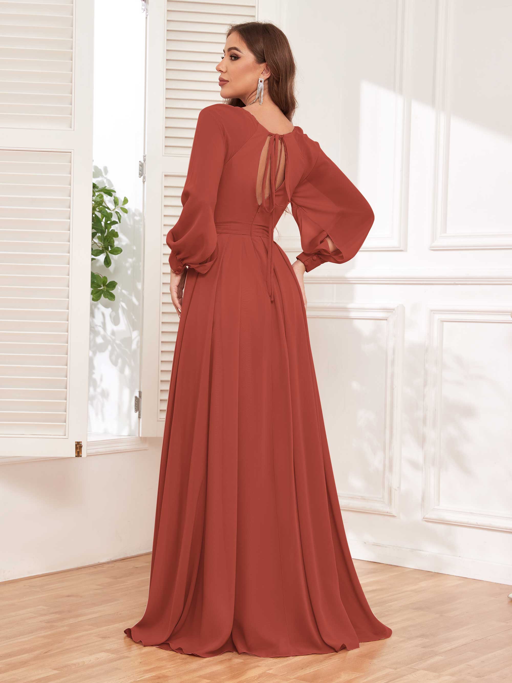 Juliet Charming Long Sleeves Keyhole Back Chiffon Bridesmaid Dresses
