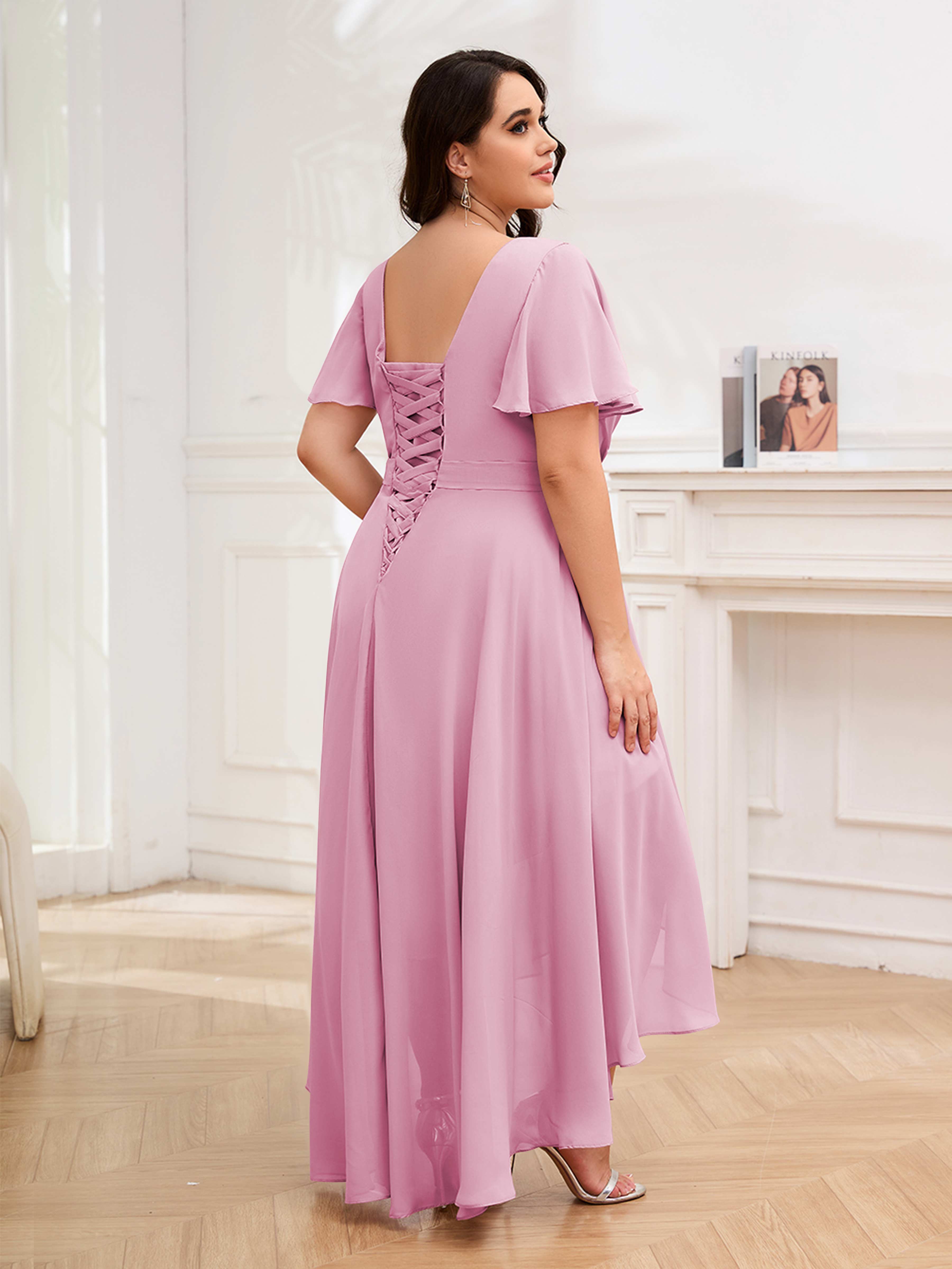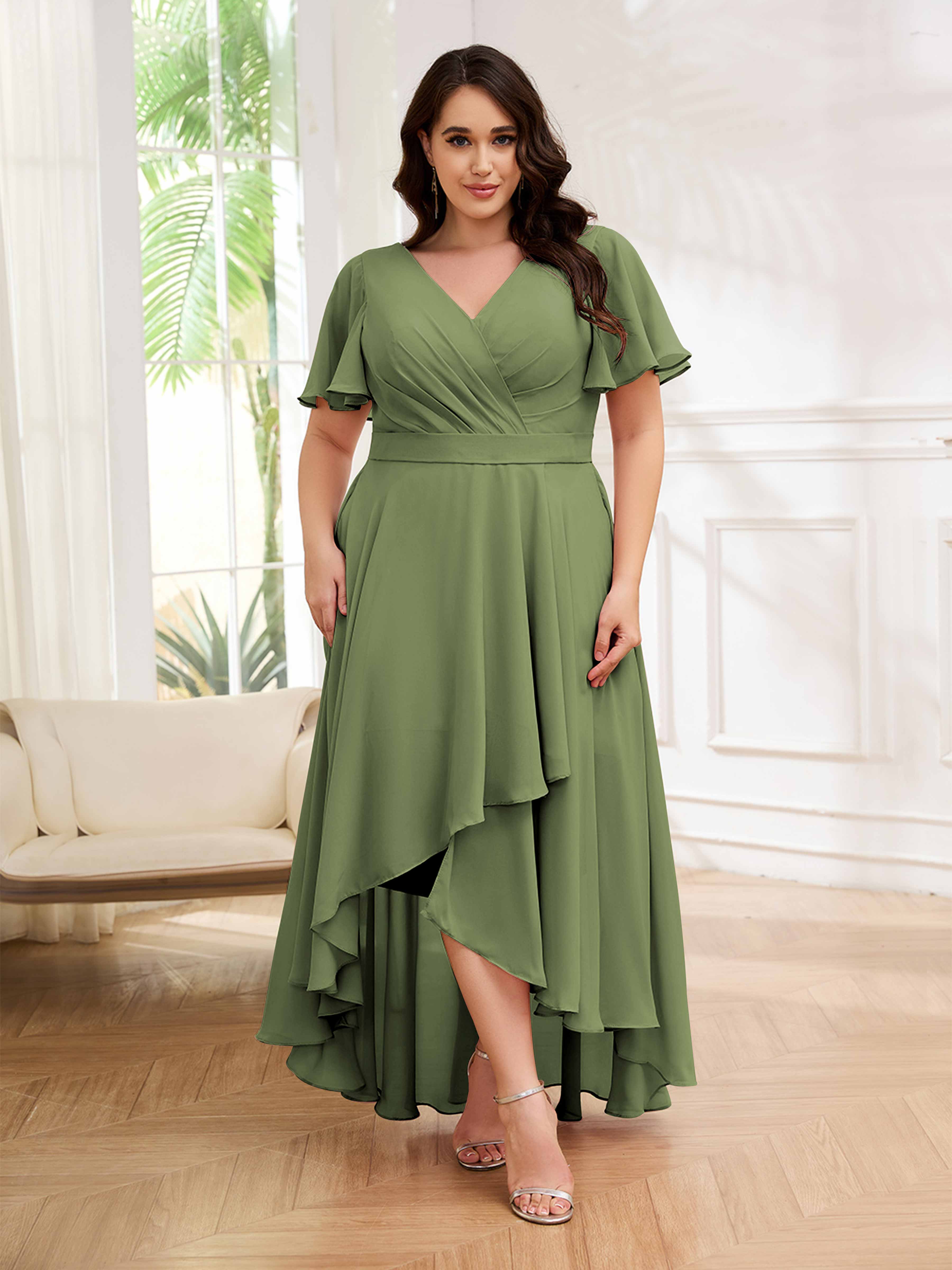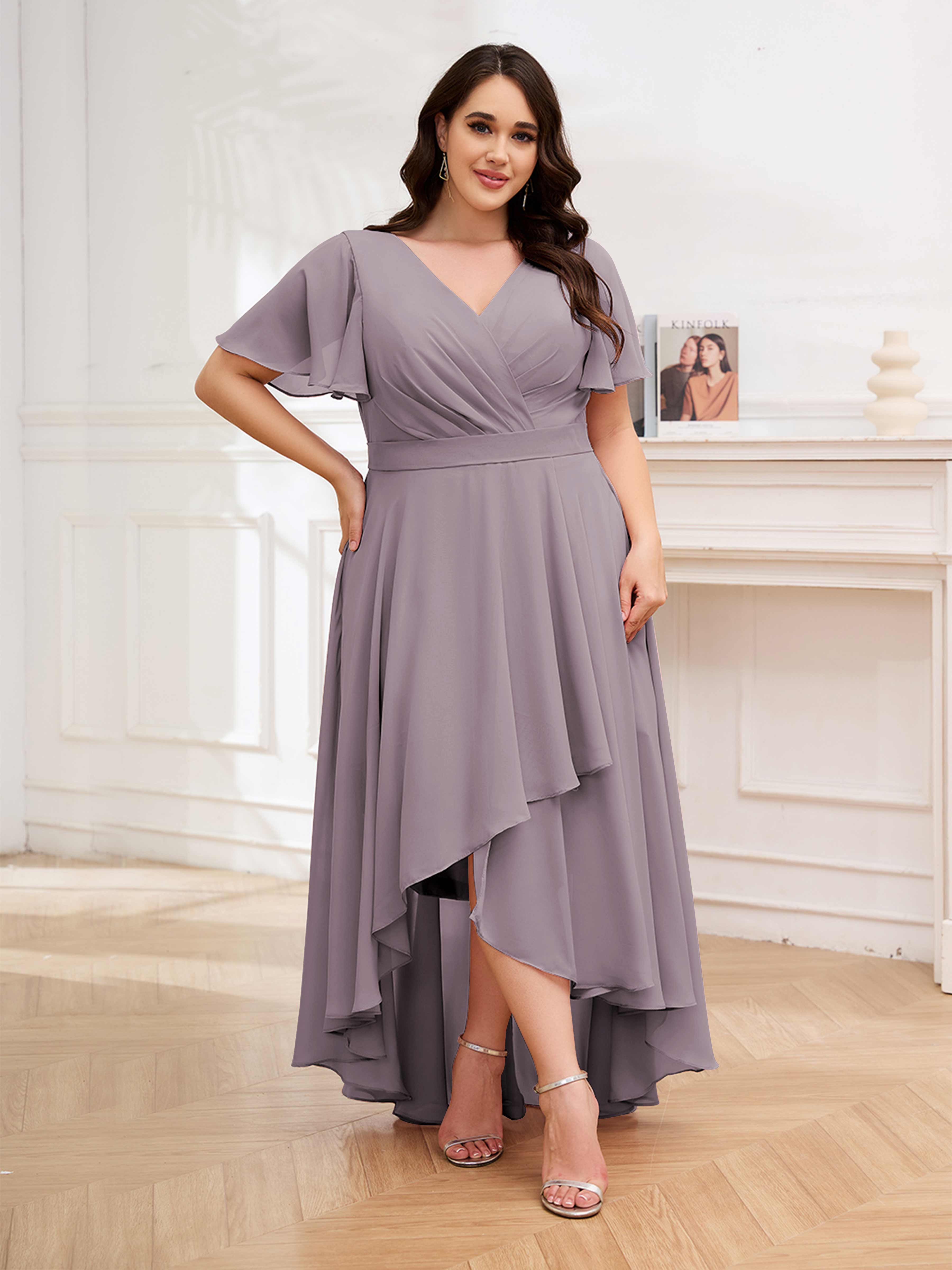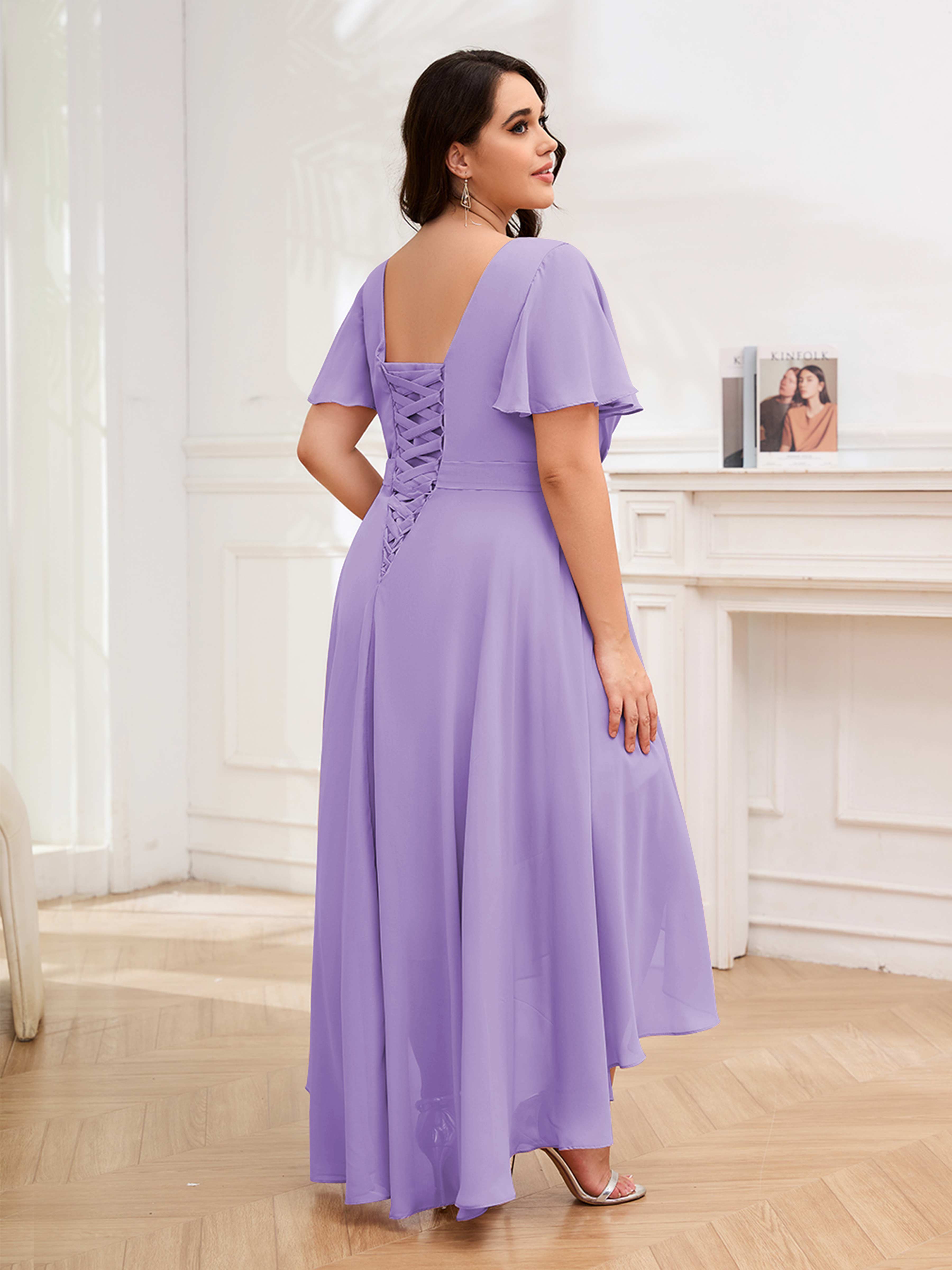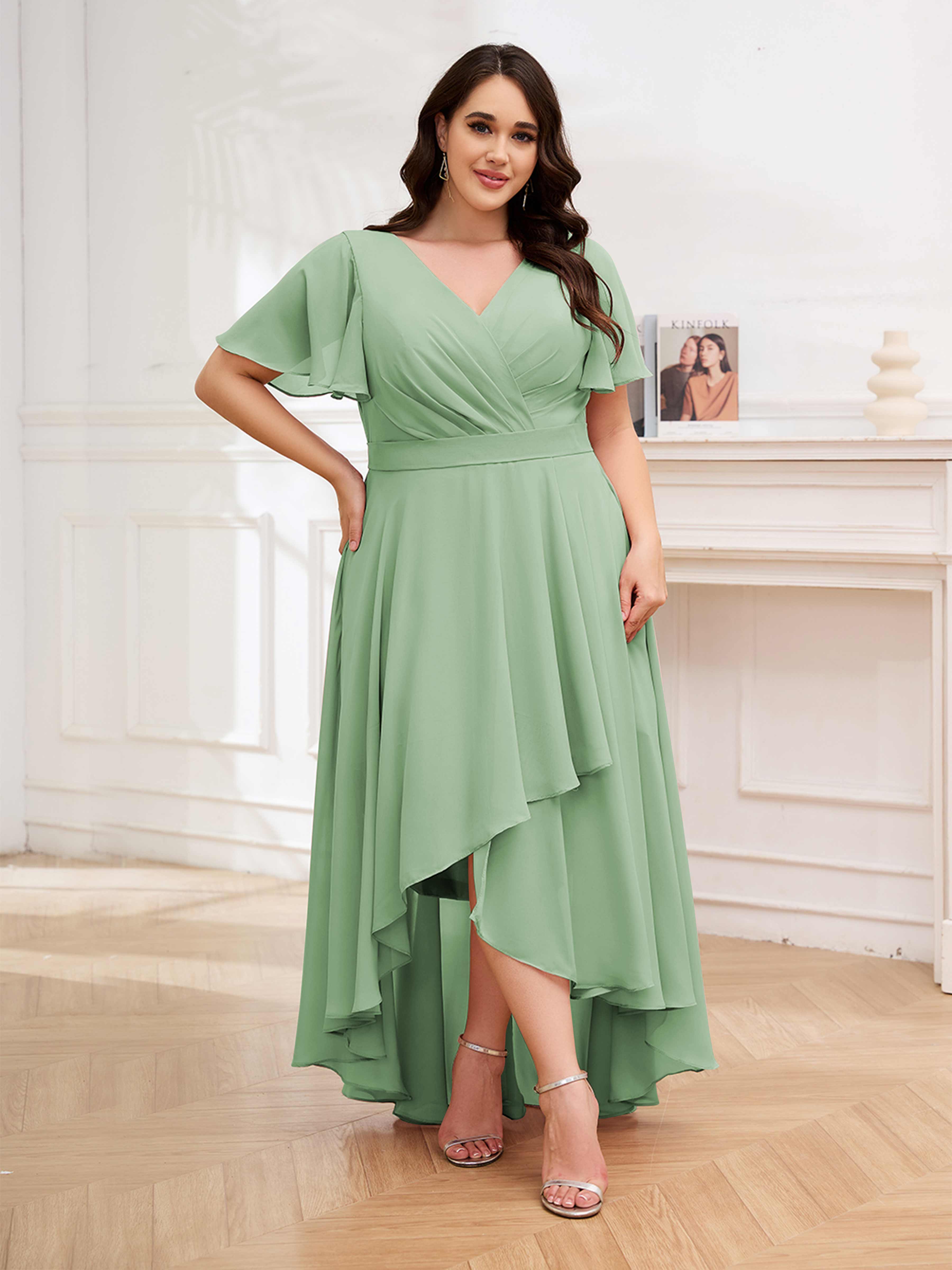 Katalina A-Line Short Sleeves Ruched High Low Chiffon Plus Size Bridesmaid Dresses