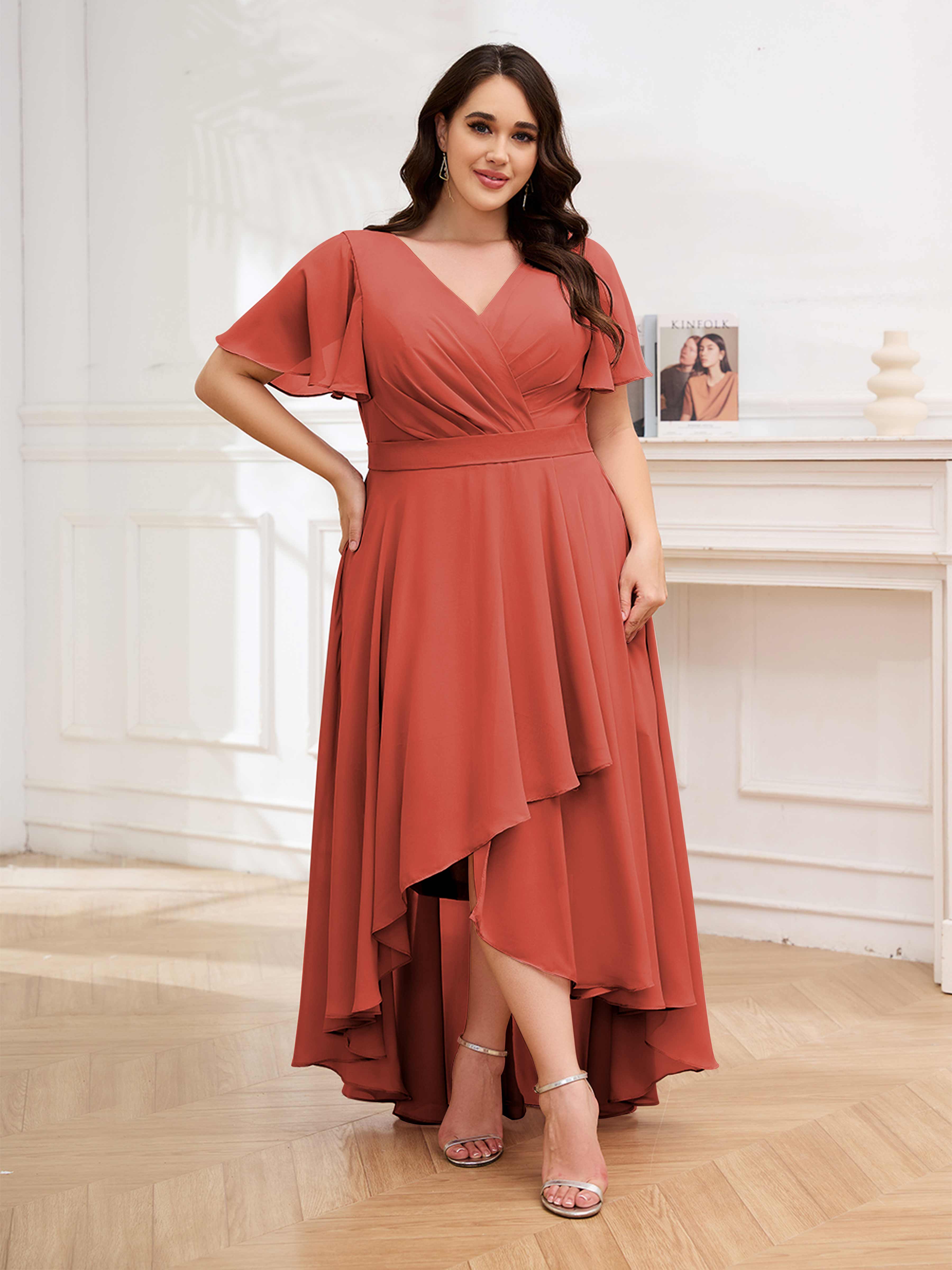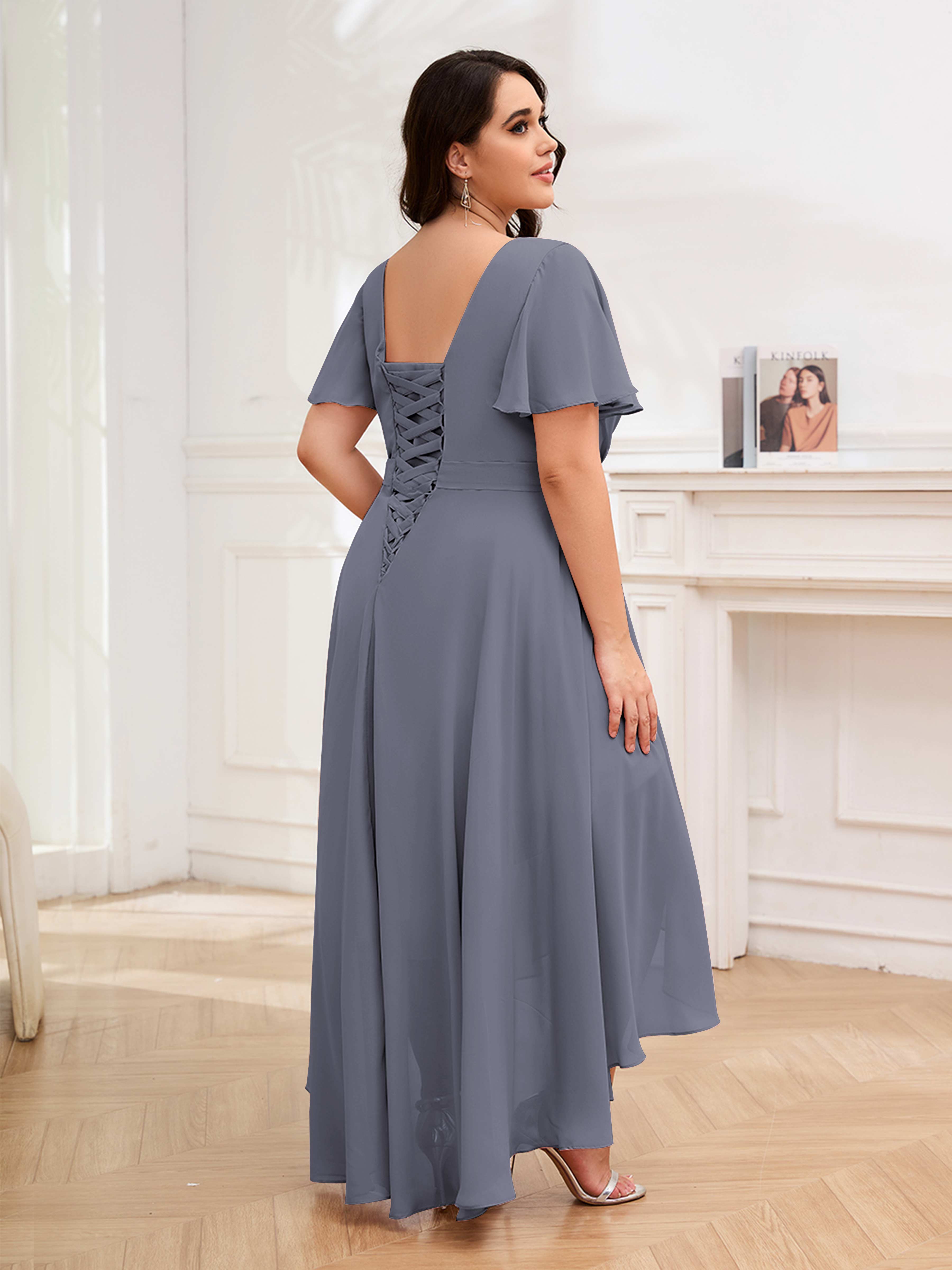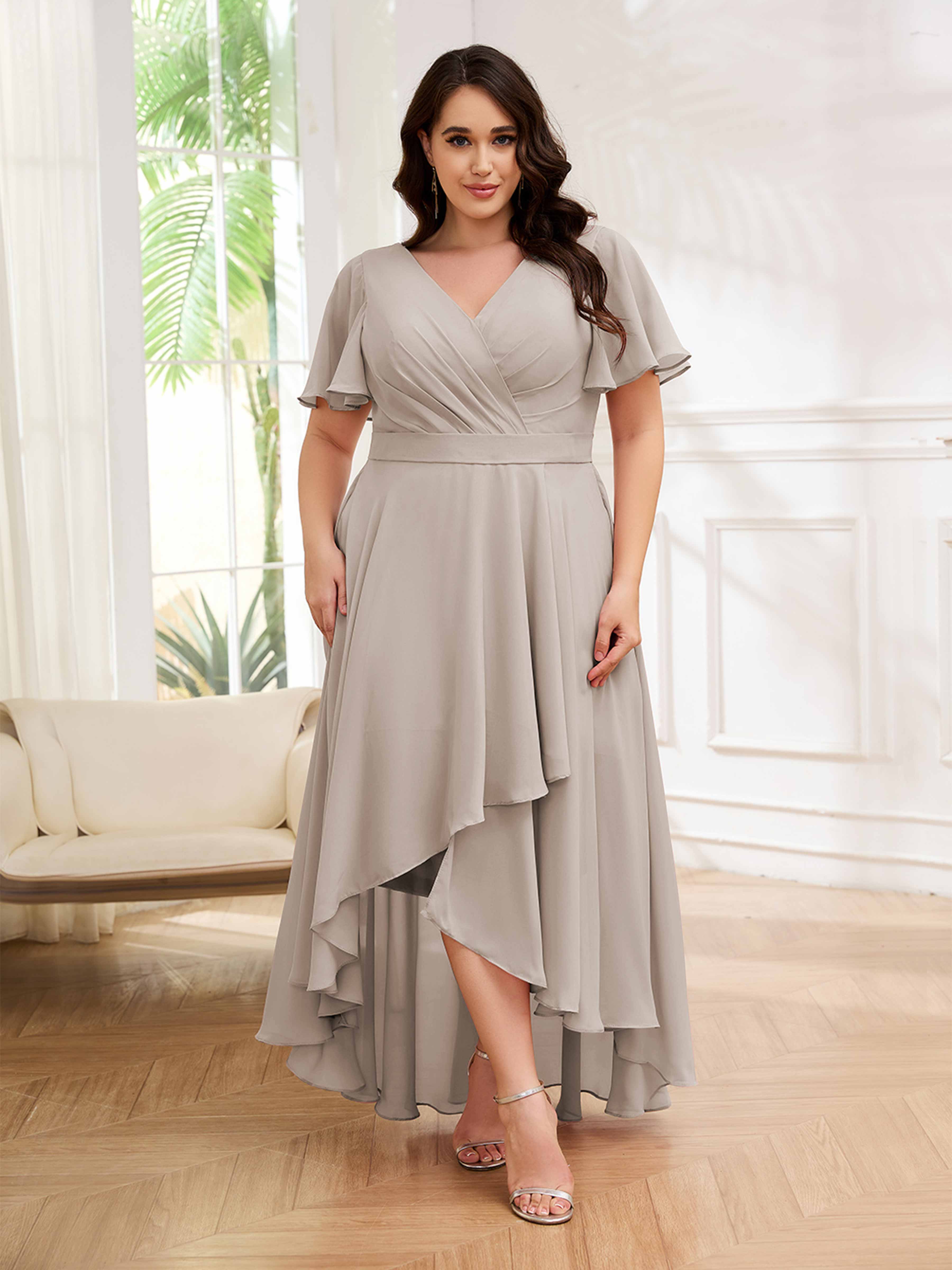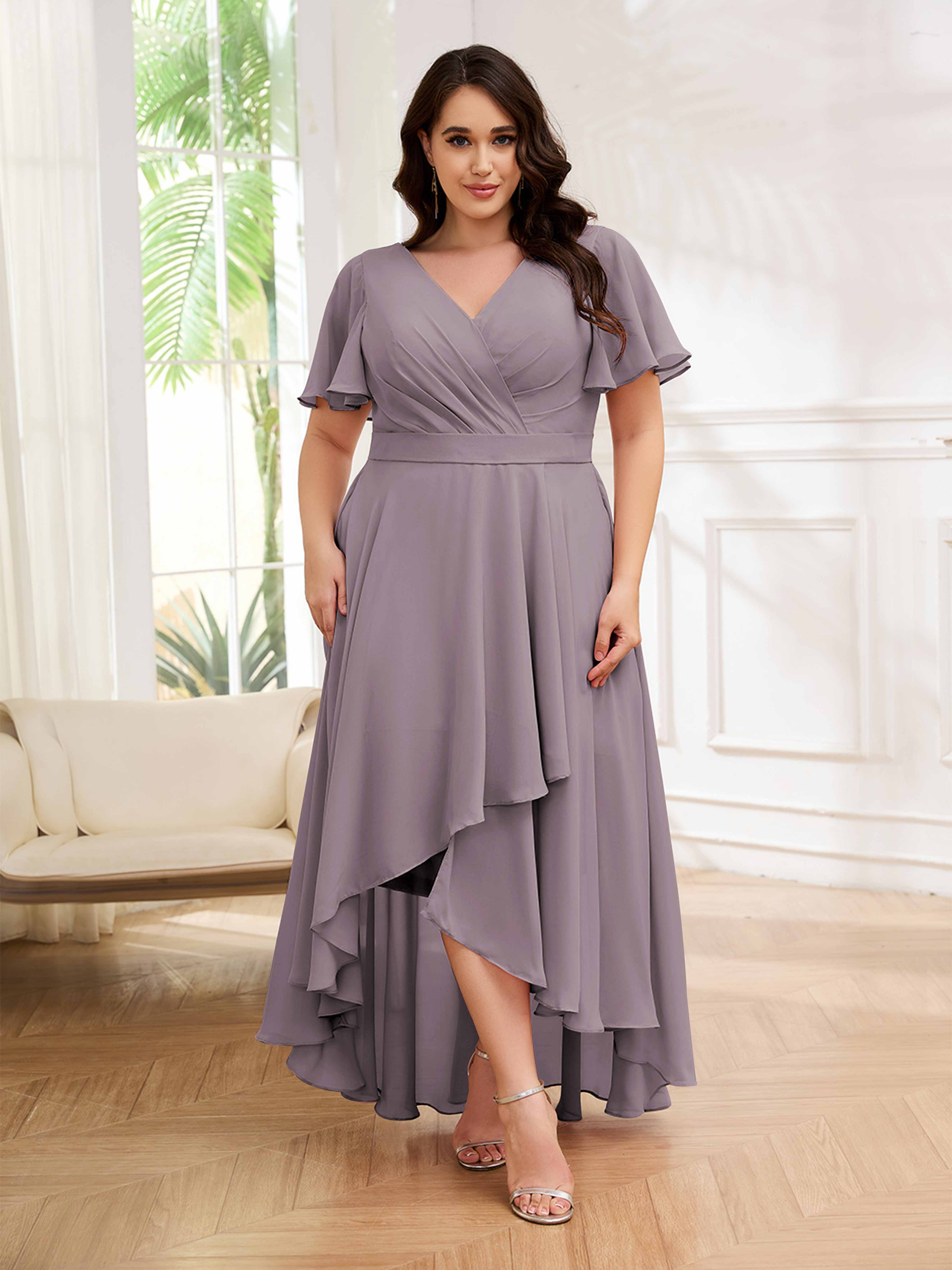 Katalina A-Line Short Sleeves Ruched High Low Chiffon Plus Size Bridesmaid Dresses