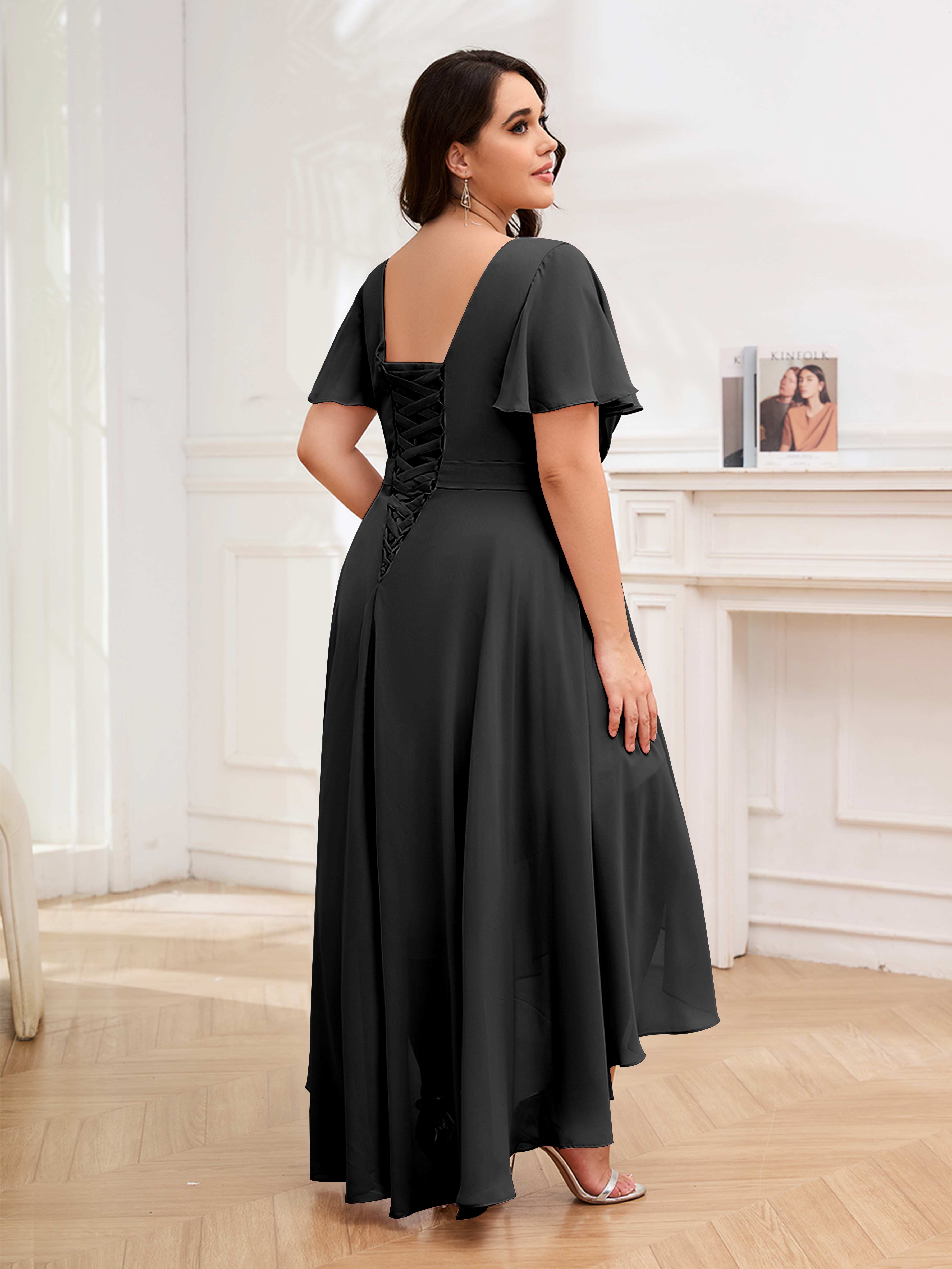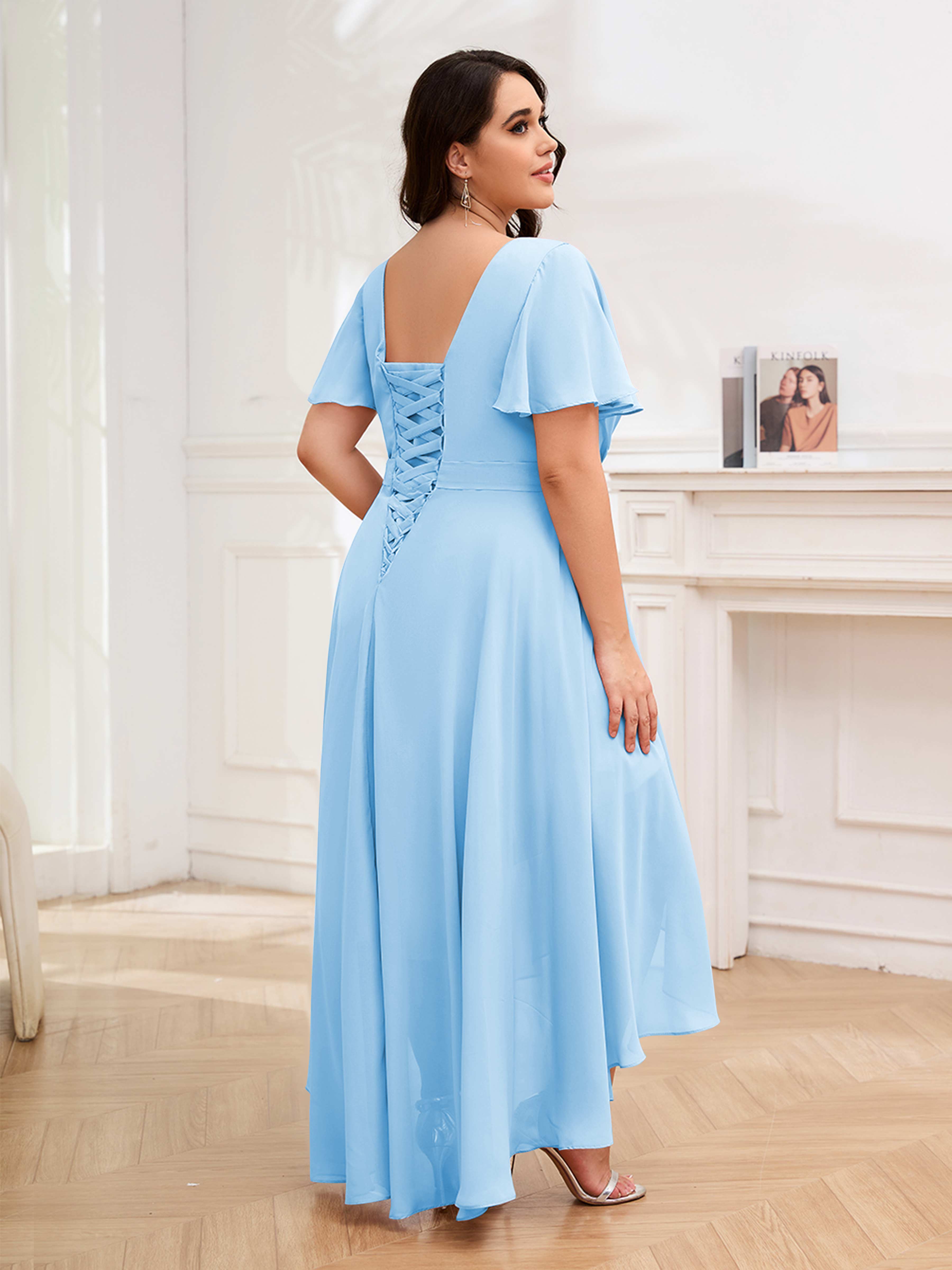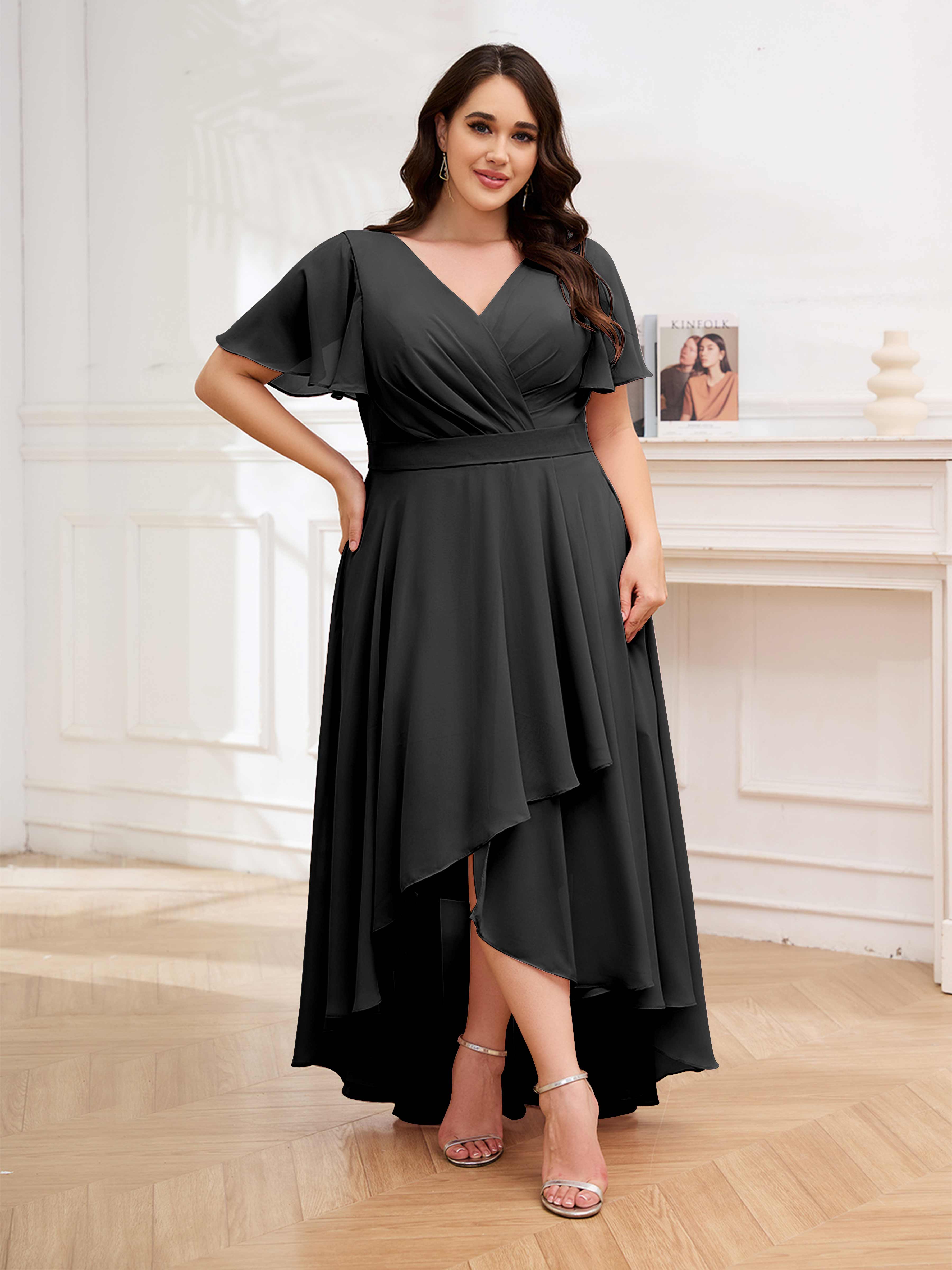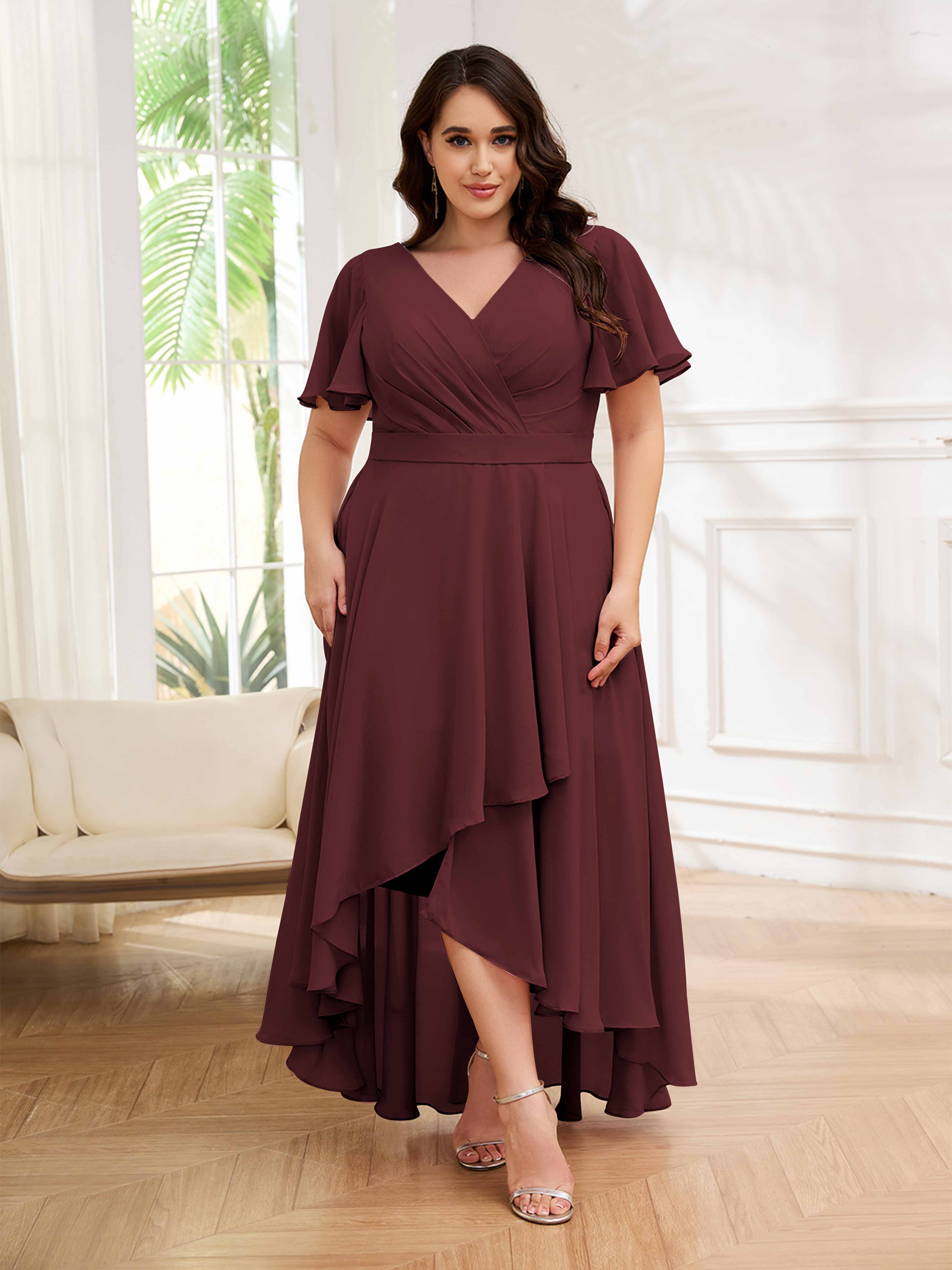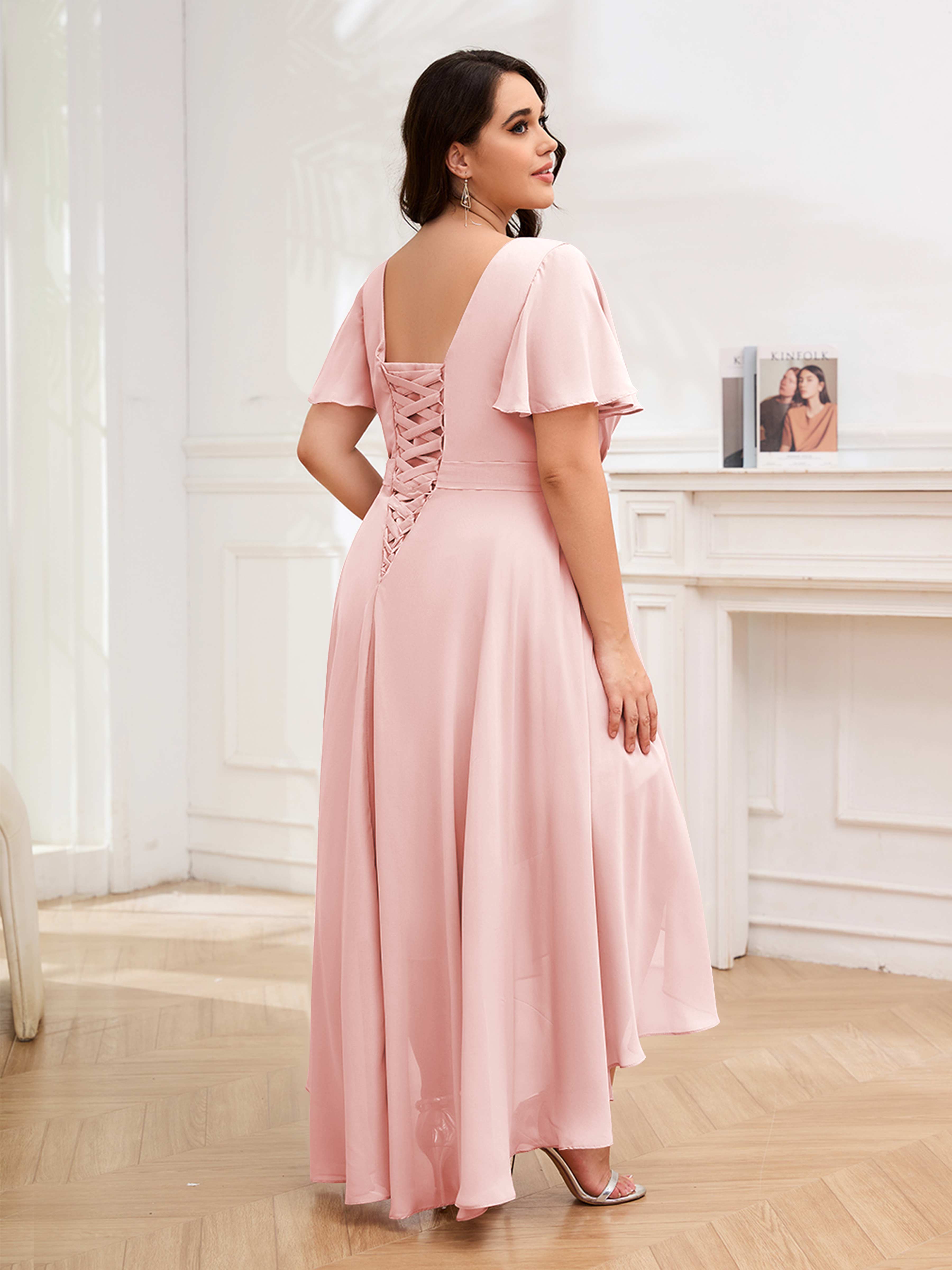 Katalina A-Line Short Sleeves Ruched High Low Chiffon Plus Size Bridesmaid Dresses