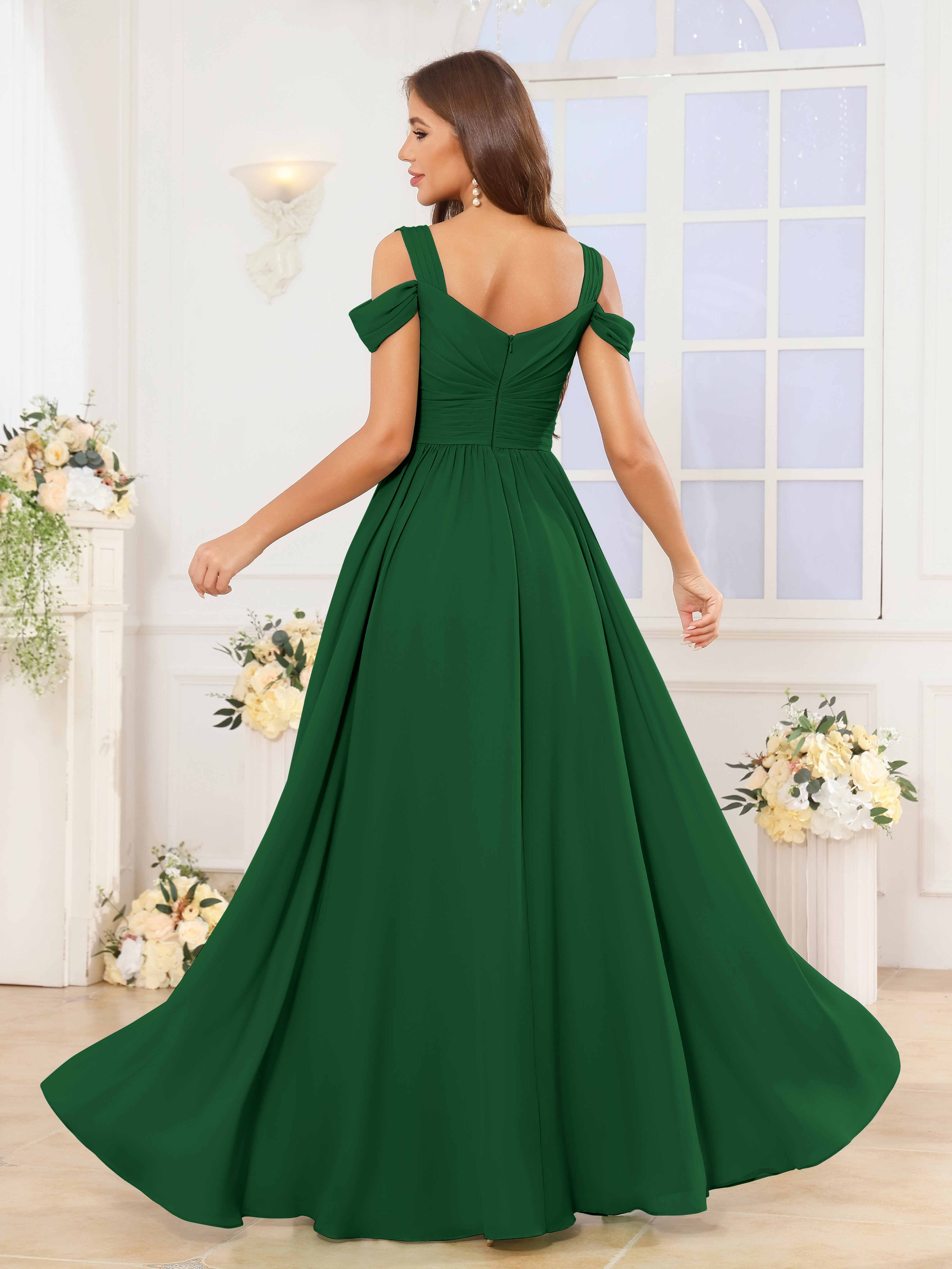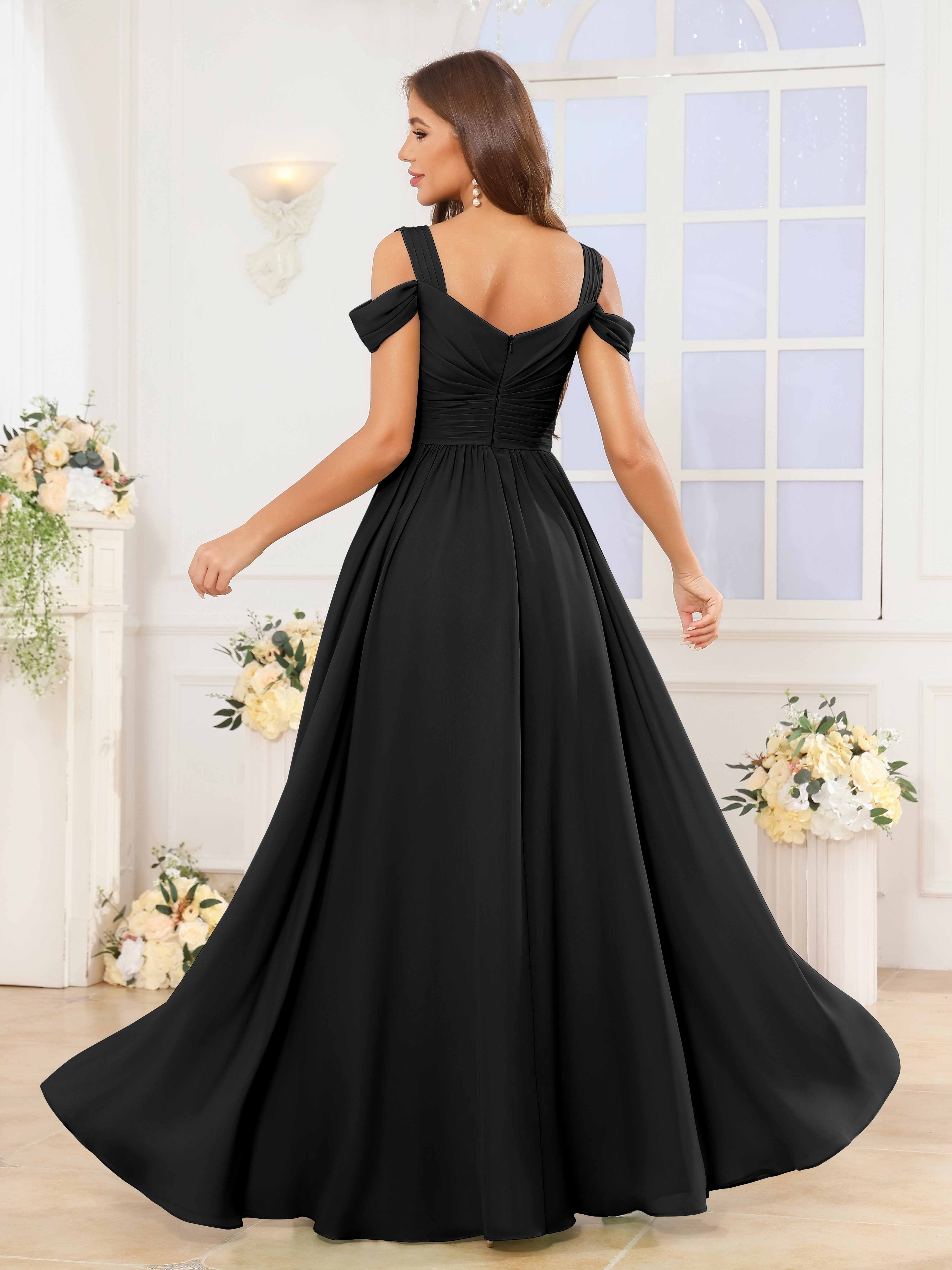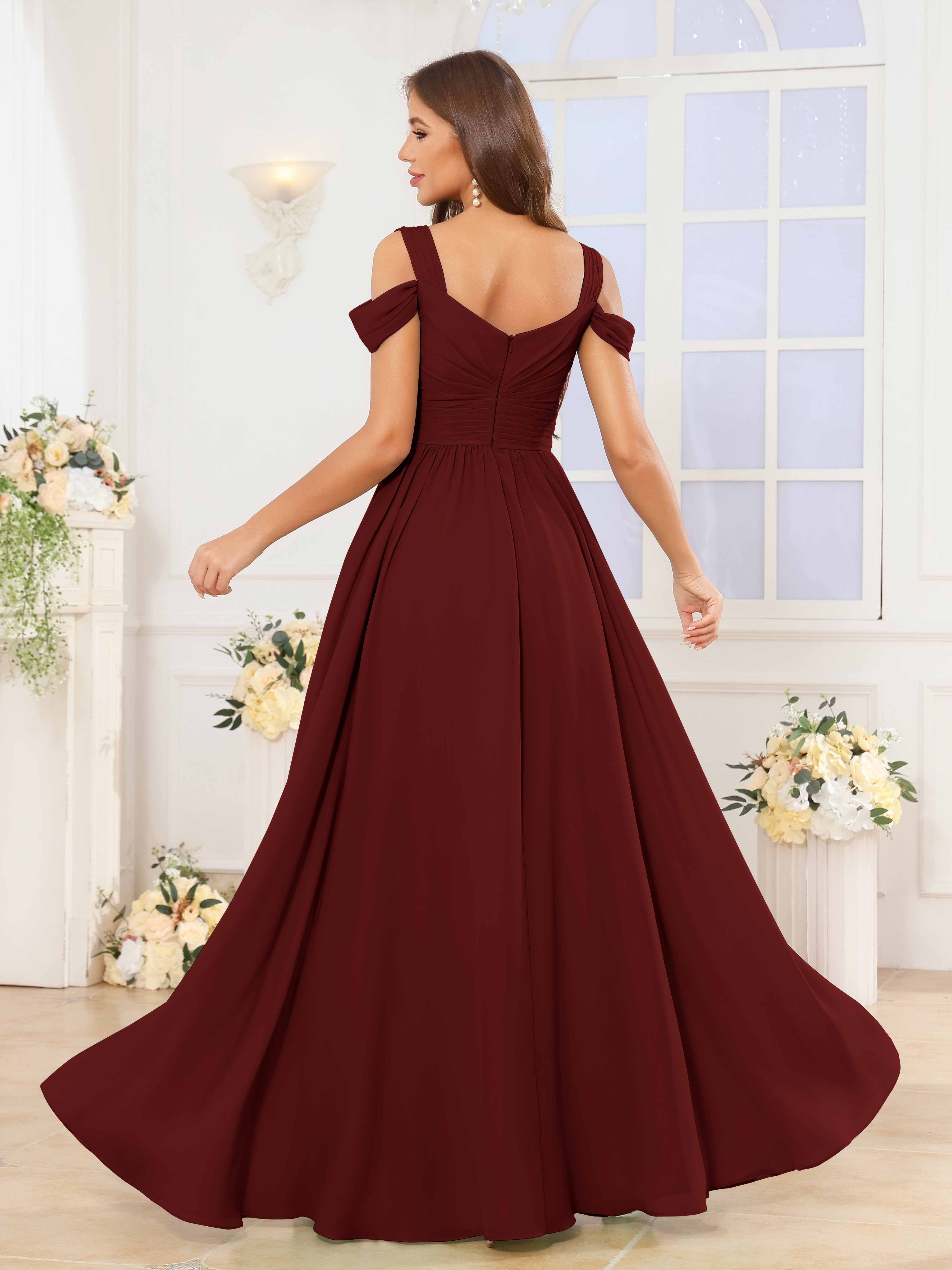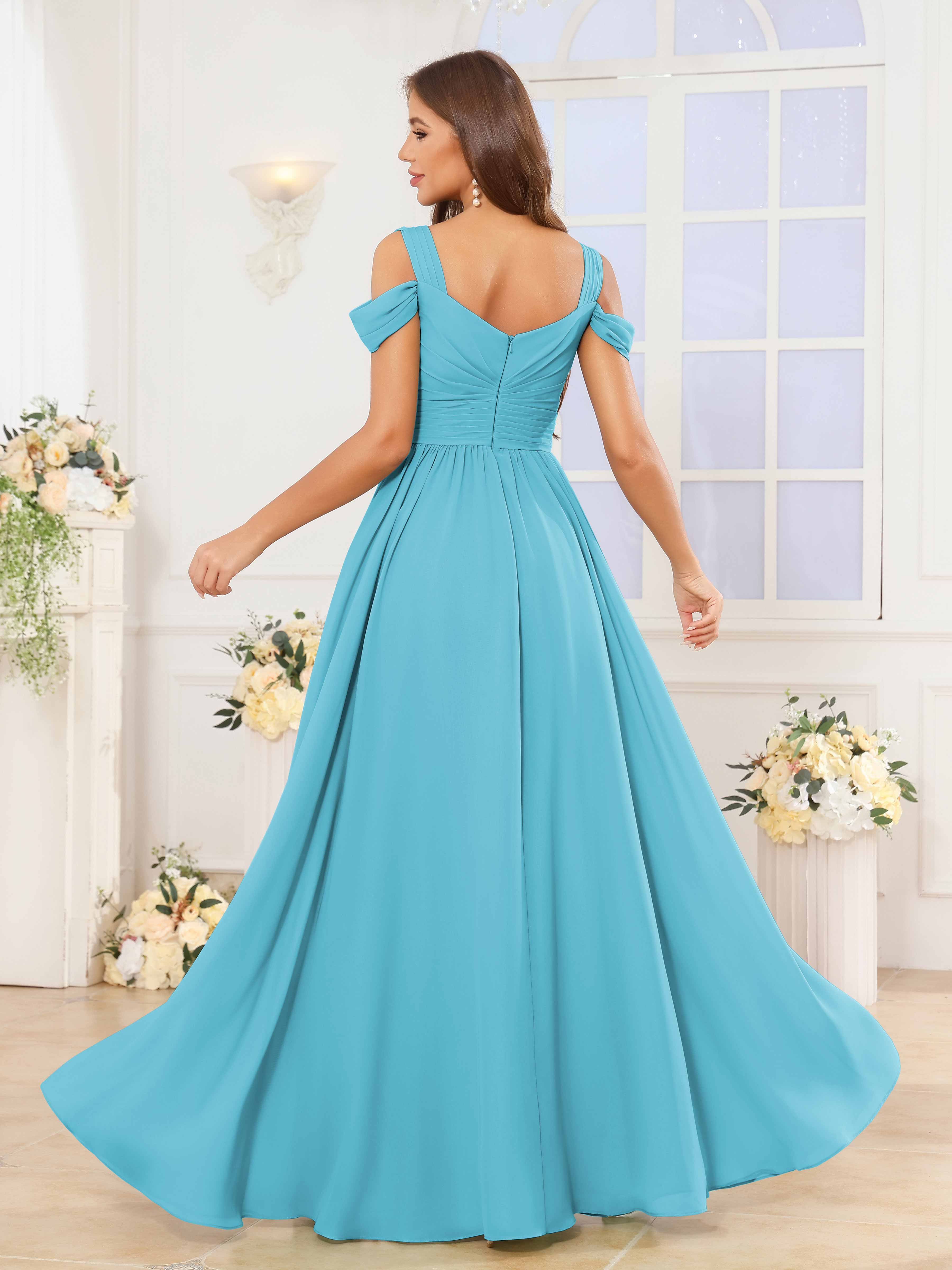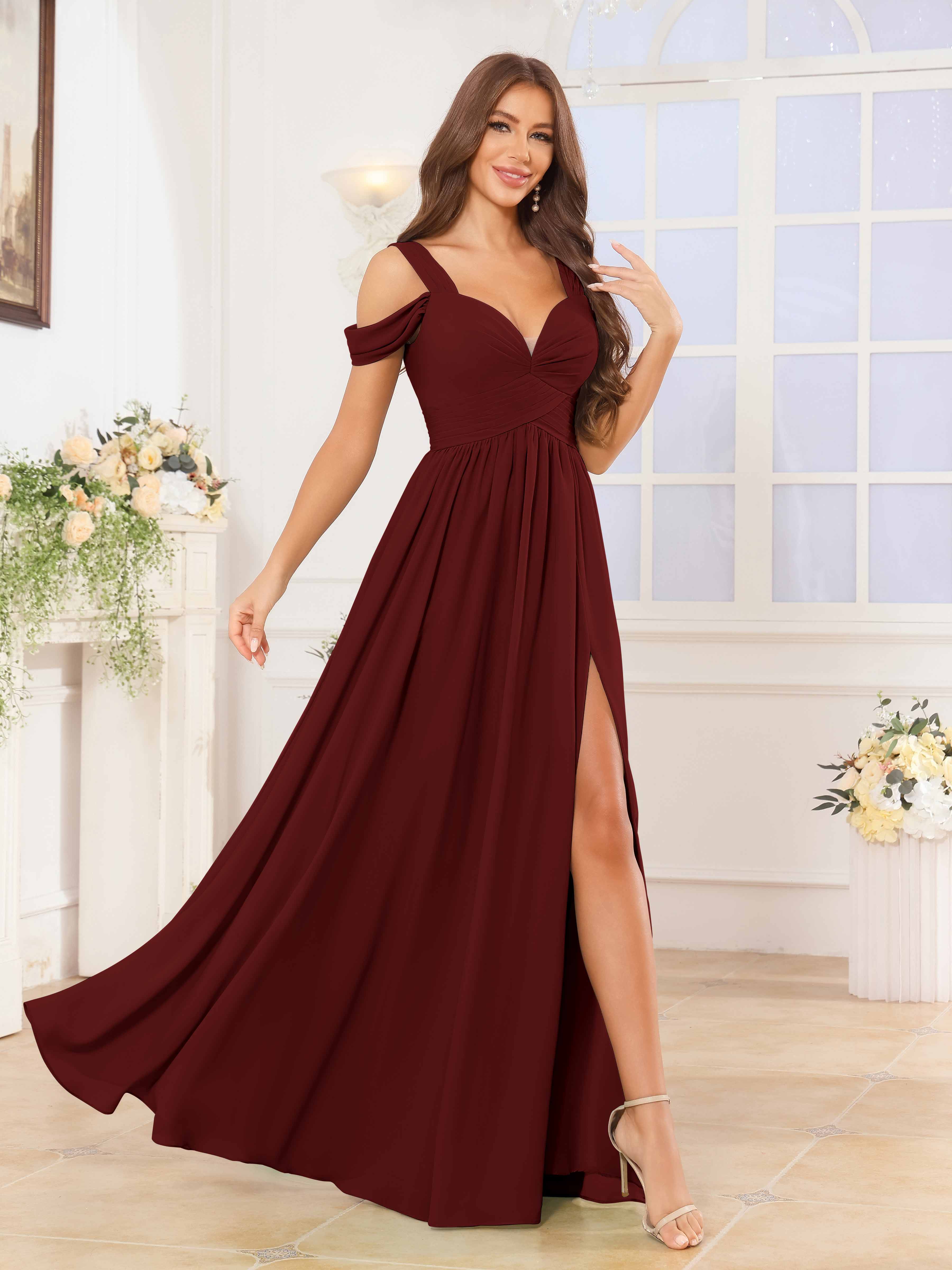 The Katelyn bridesmaid dress features a flowing chiffon fabric that drapes elegantly to the floor, creating a graceful silhouette. Its V-neckline and ruched detailing enhance the figure, while the slit adds a subtle touch of allure and ease of movement. Designed for comfort and style, this dress is an expert choice for sophisticated wedding parties seeking timeless elegance.