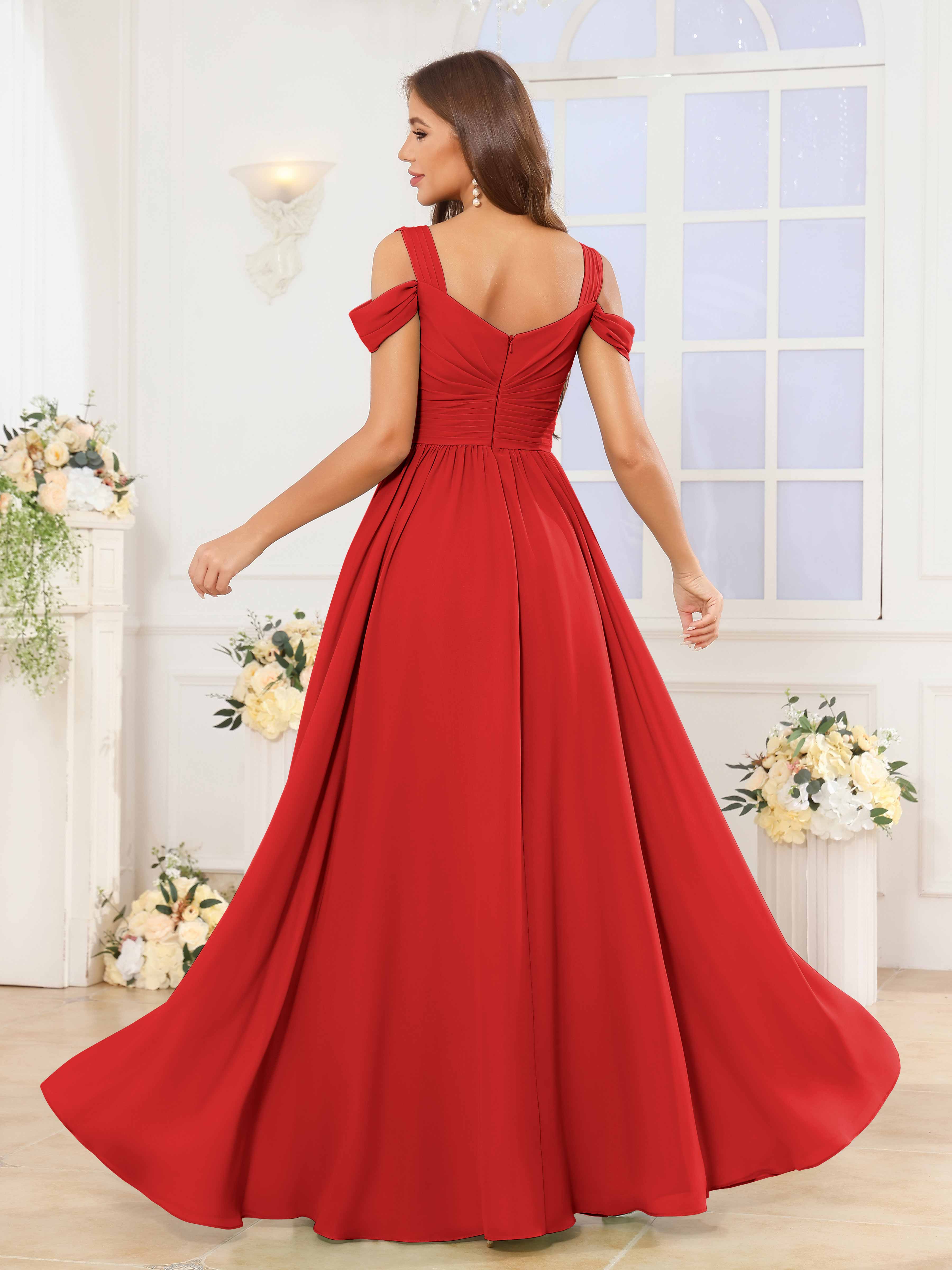 Katelyn Flowing V Neck Ruched Slit Floor Length Chiffon Bridesmaid Dresses