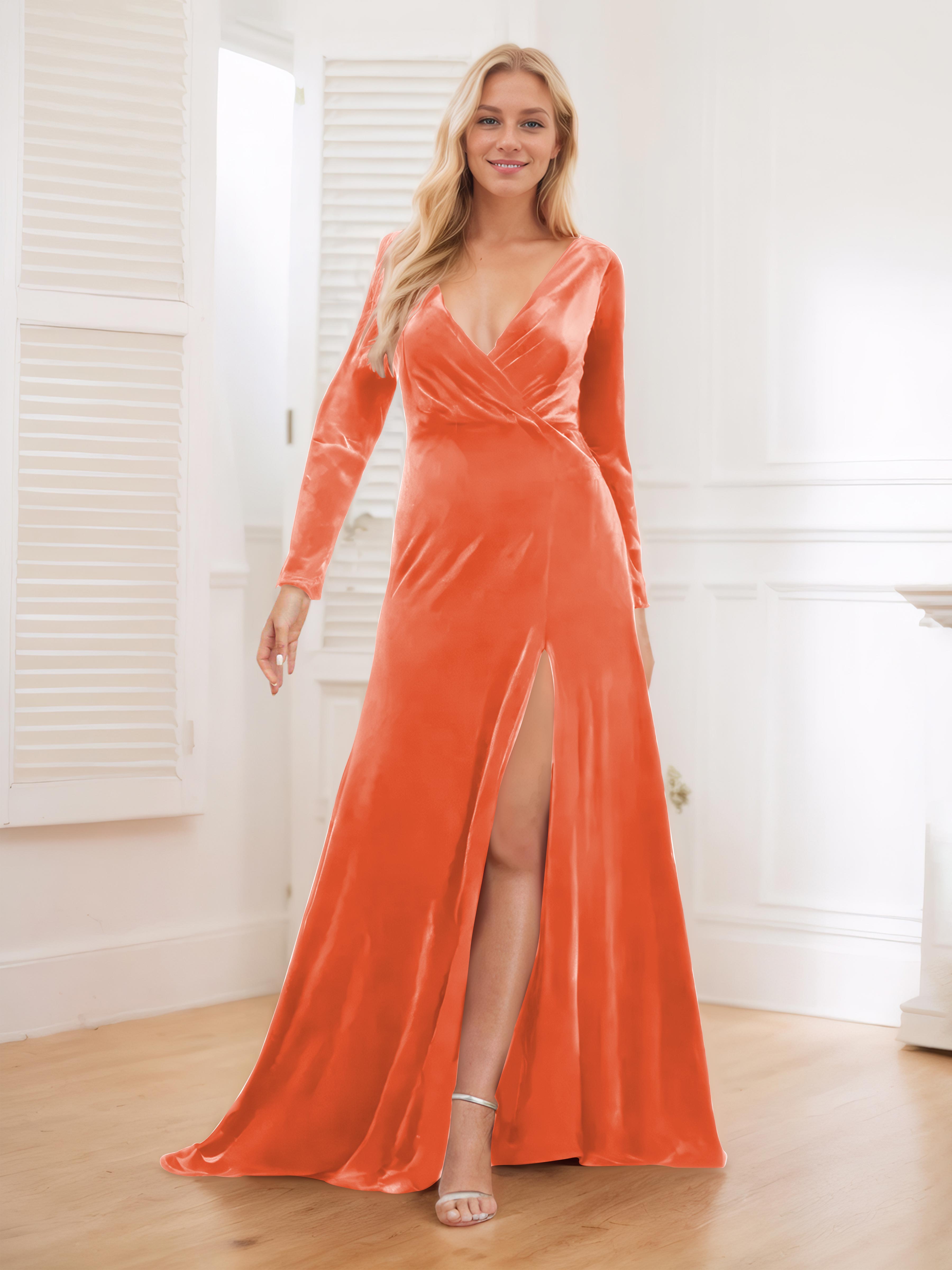 Kathryn Chic Long Sleeves Long Velvet Bridesmaid Dresses