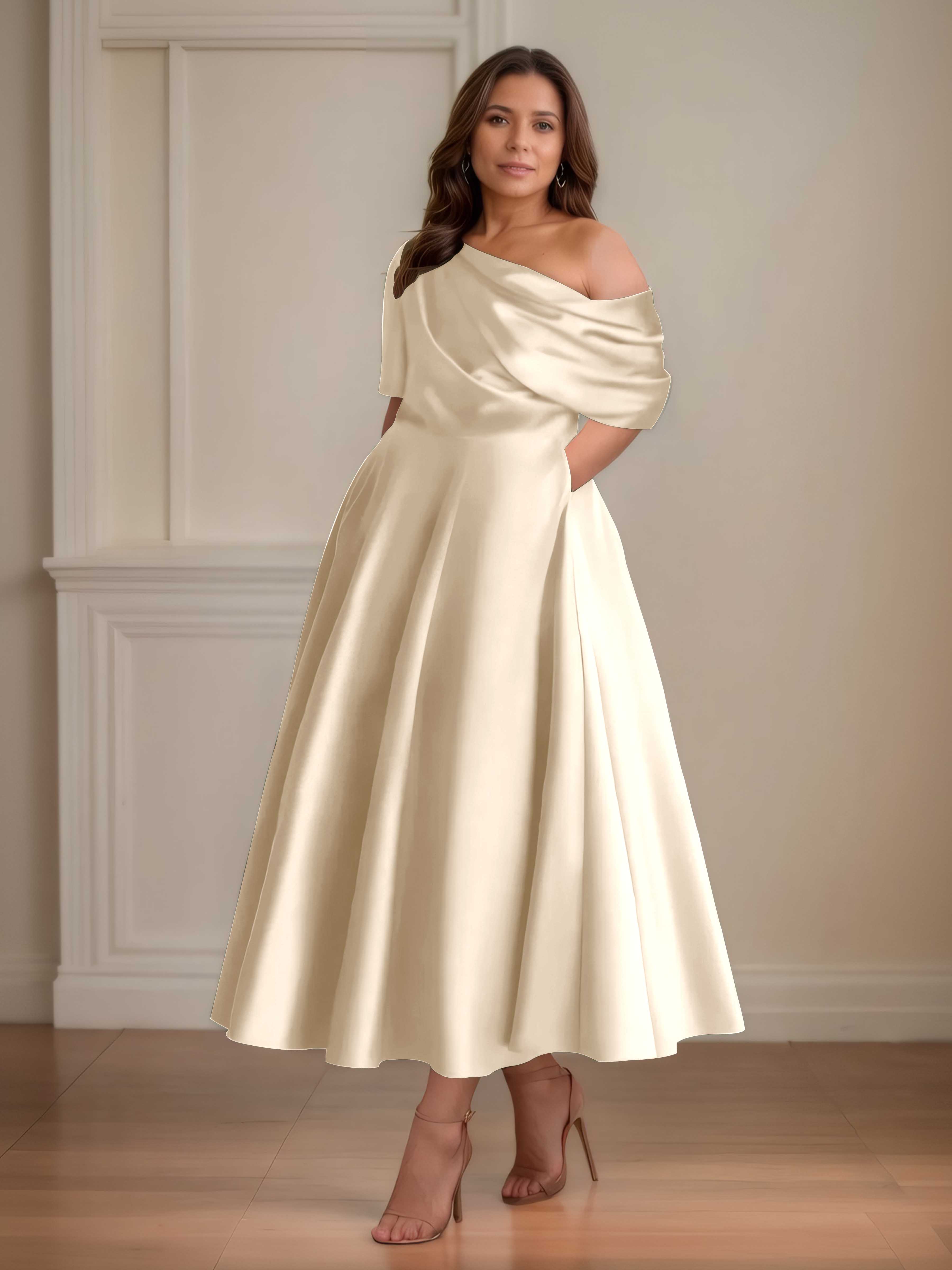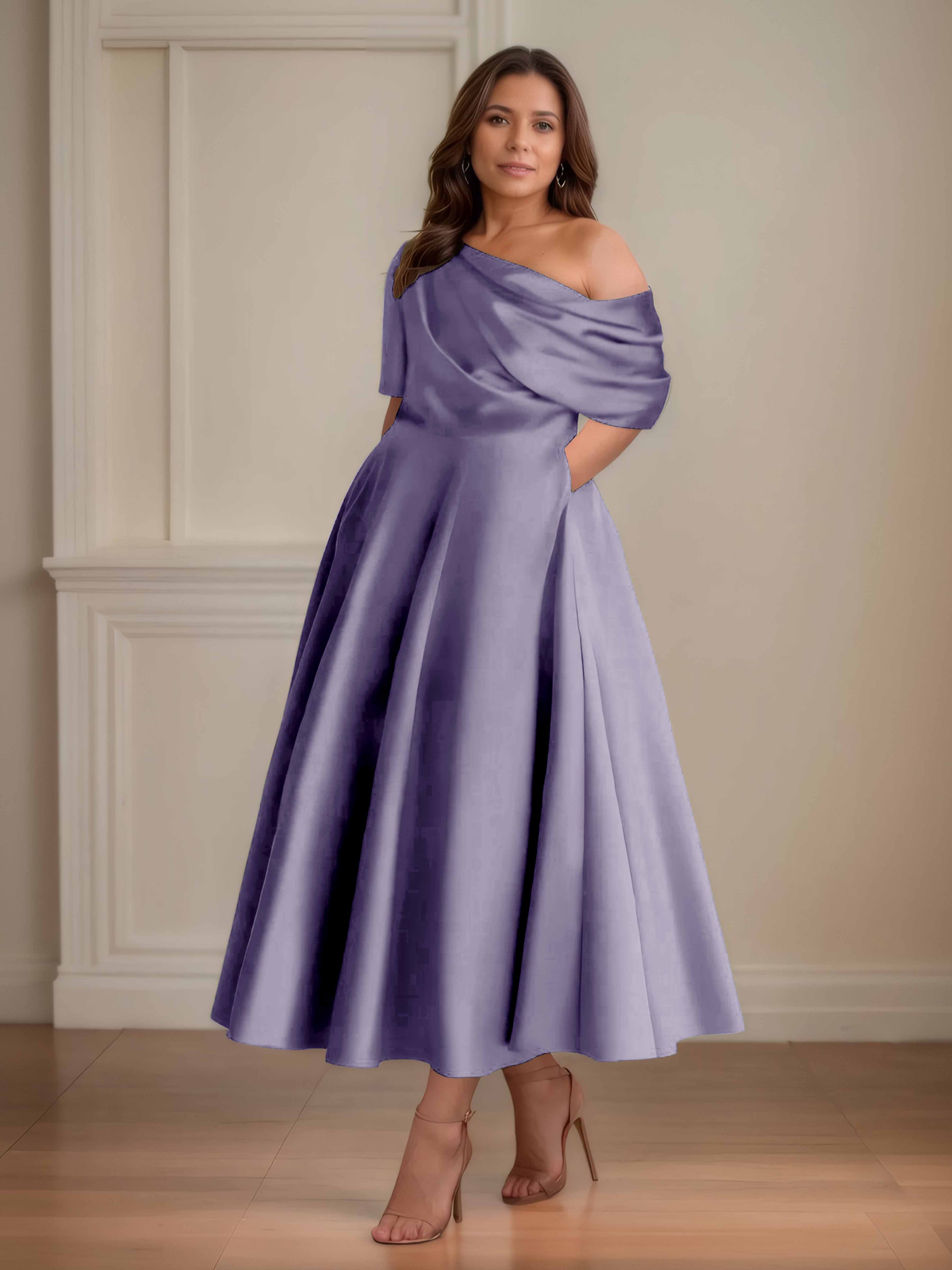 Kenna Charming A-Line One Shoulder Half Sleeves Satin Mother of the Bride Dresses
