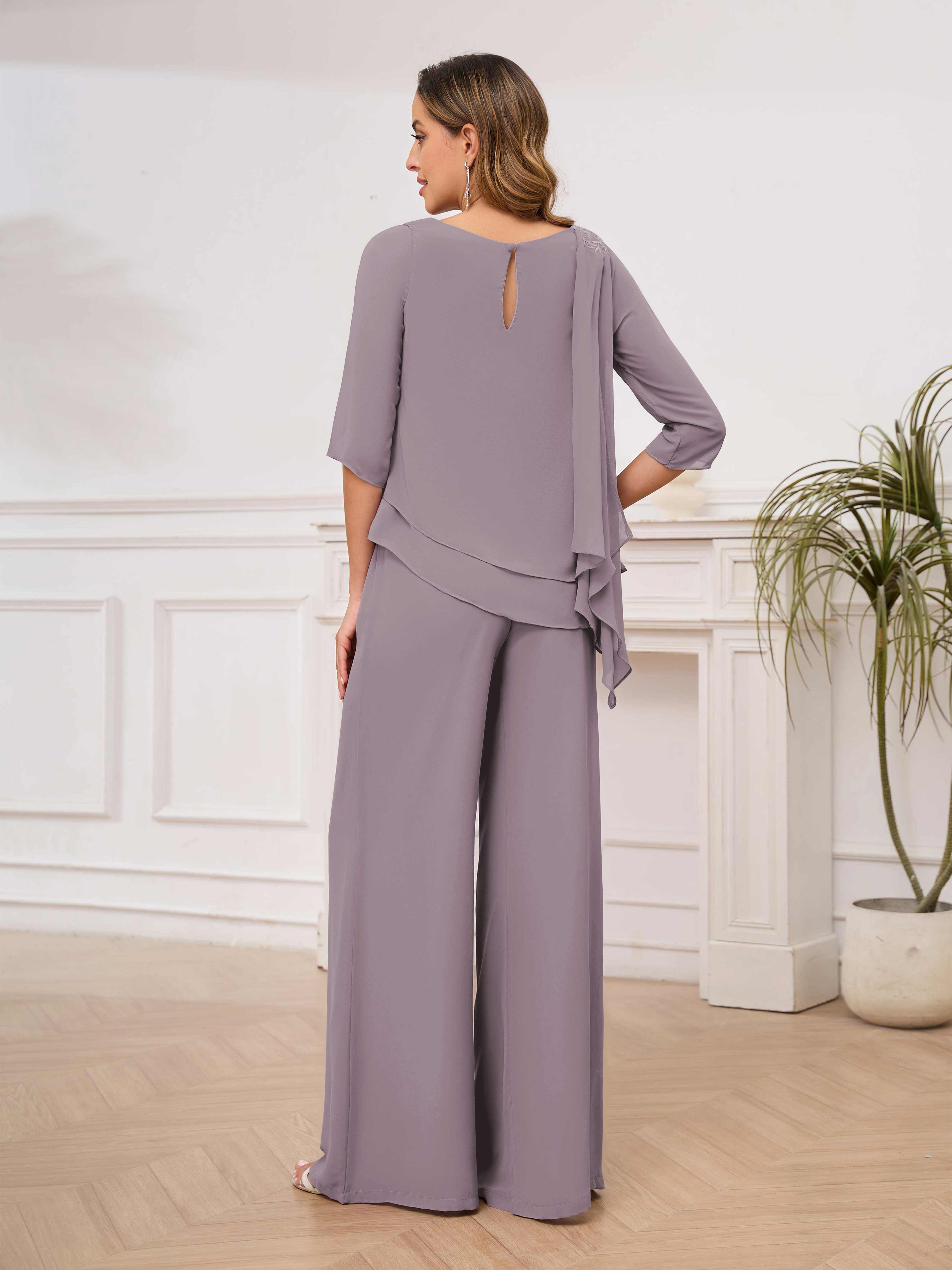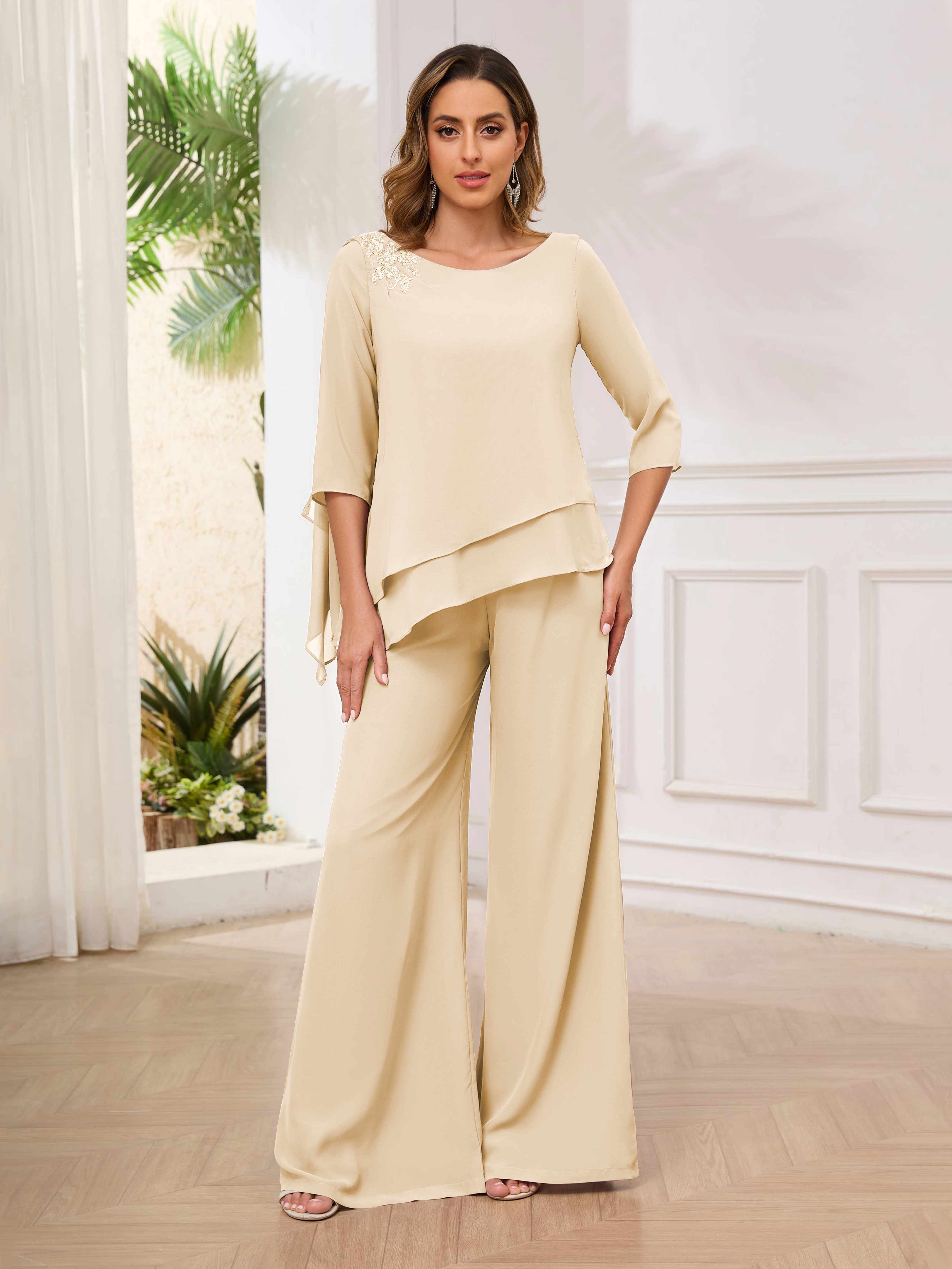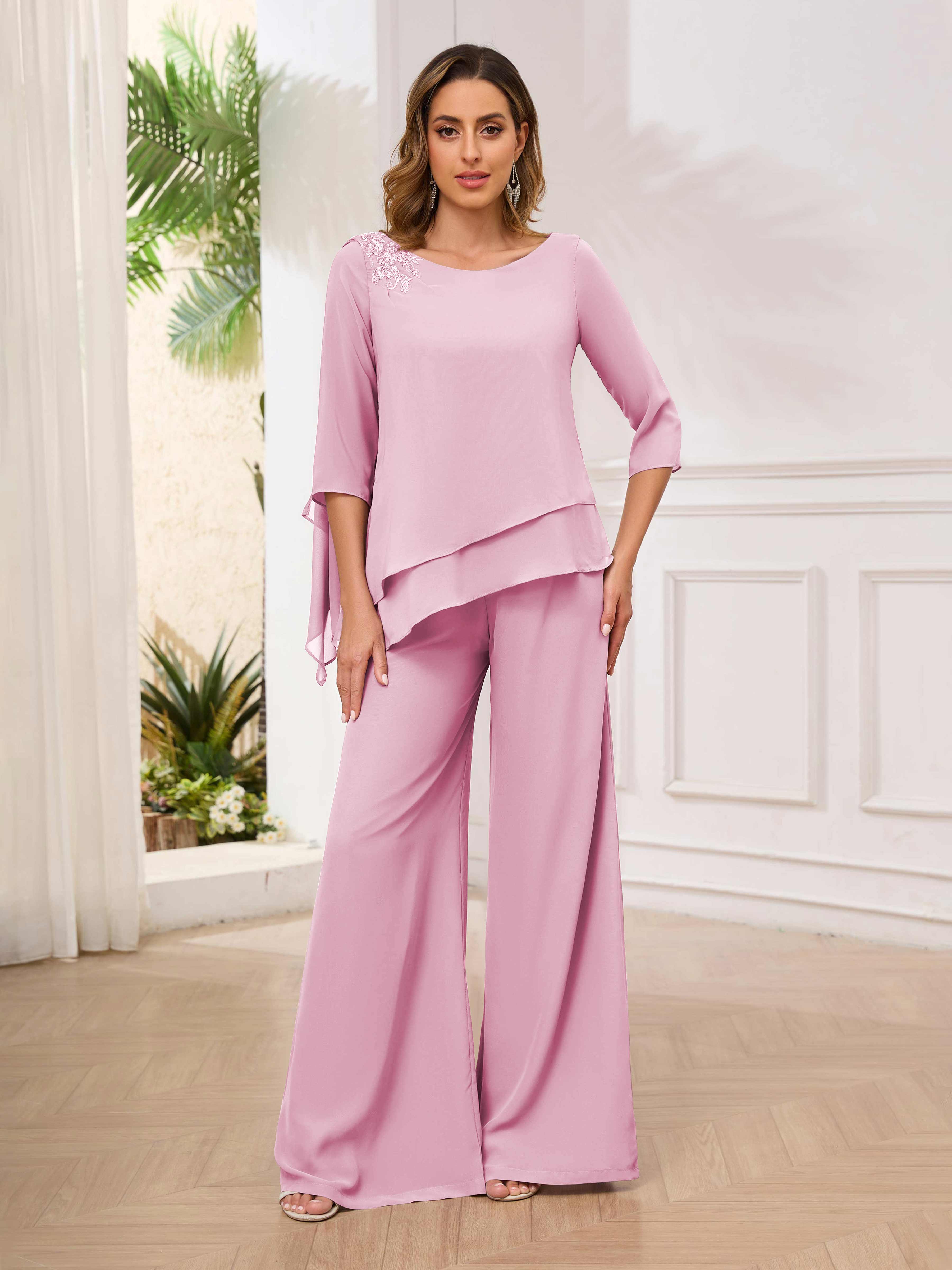 Lilian Modern 3/4 Sleeves Appliques Mother of the Bride Pantsuit